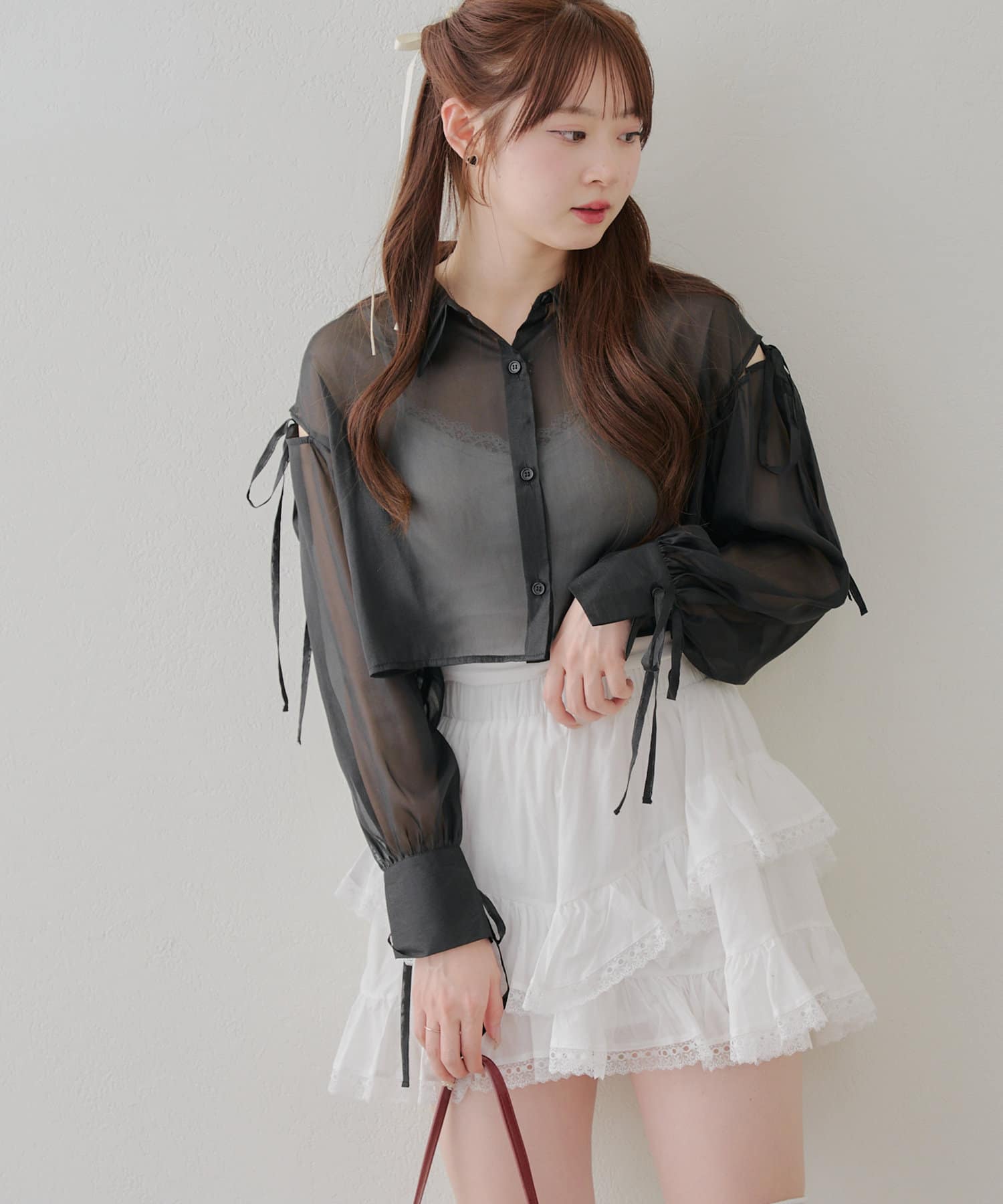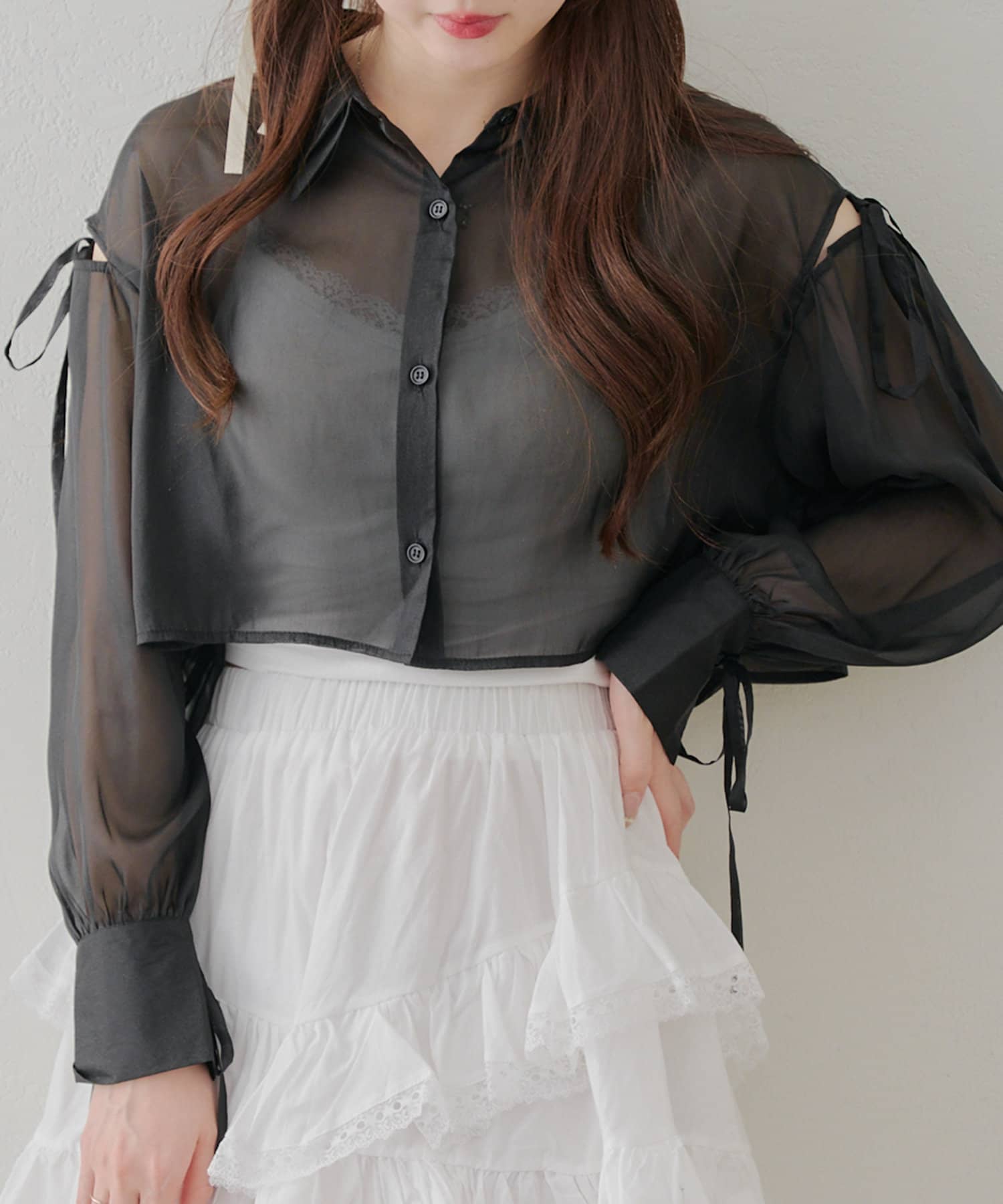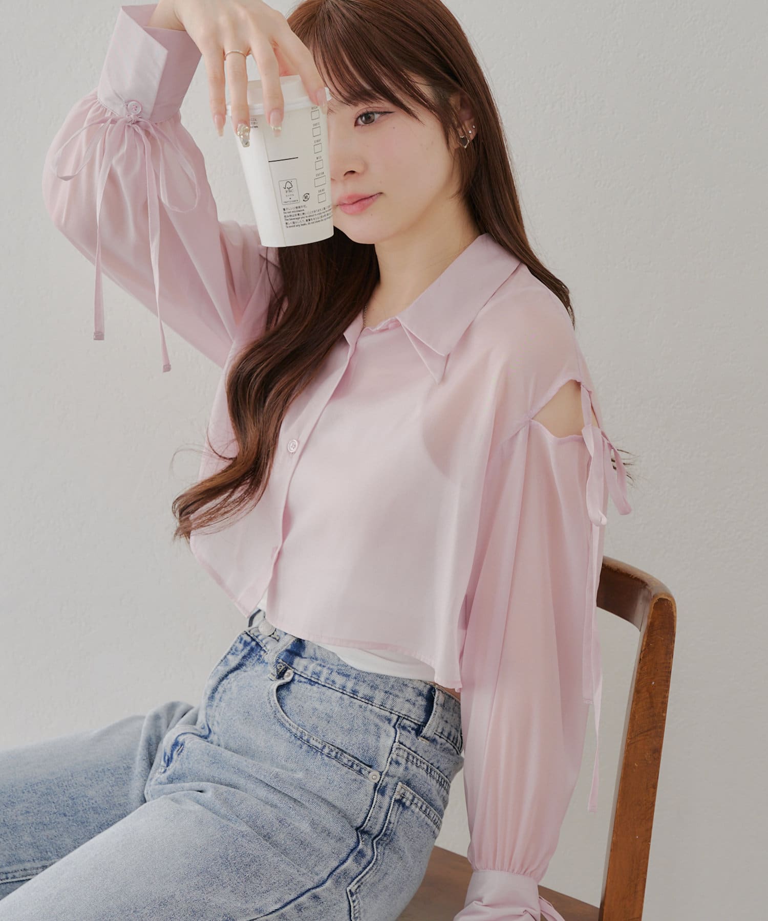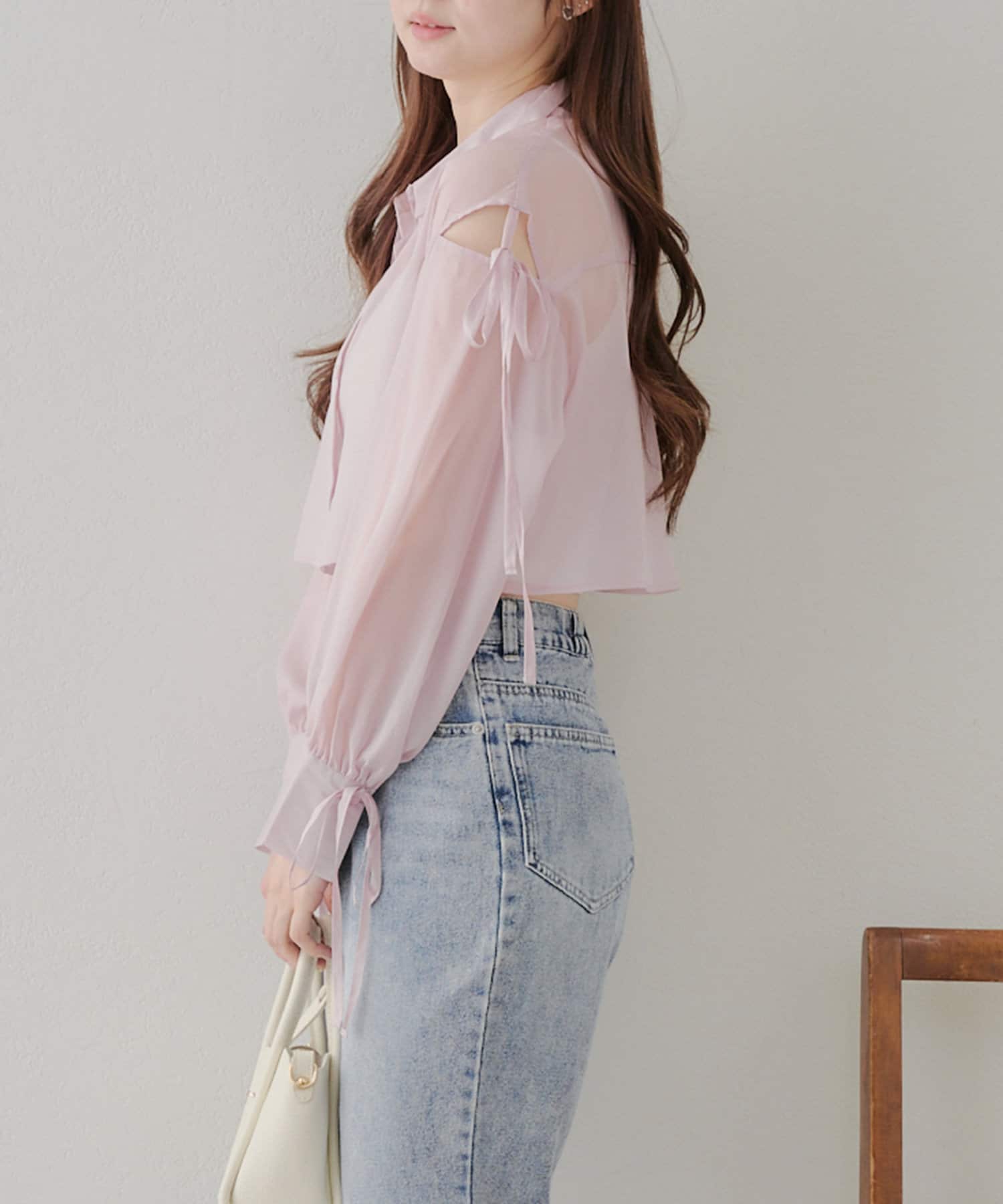 【RMAF】【MARCHES】肩リボンクロップドシャツ