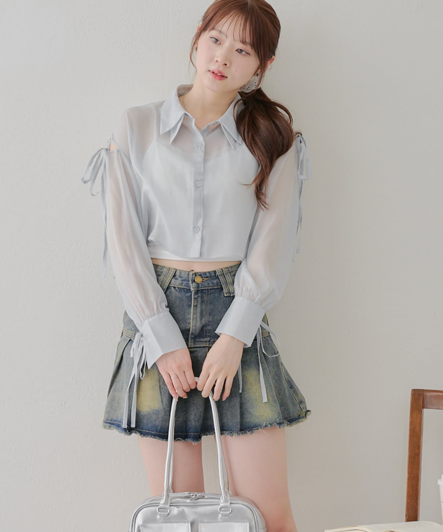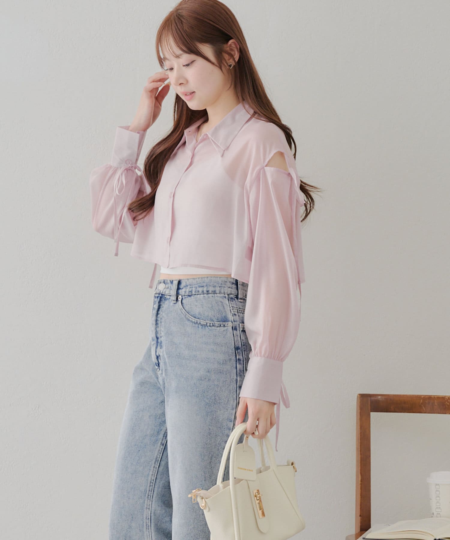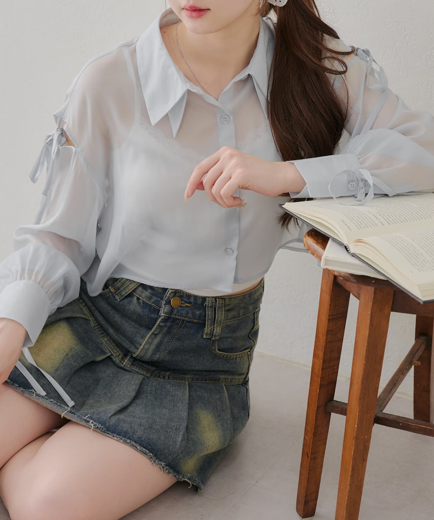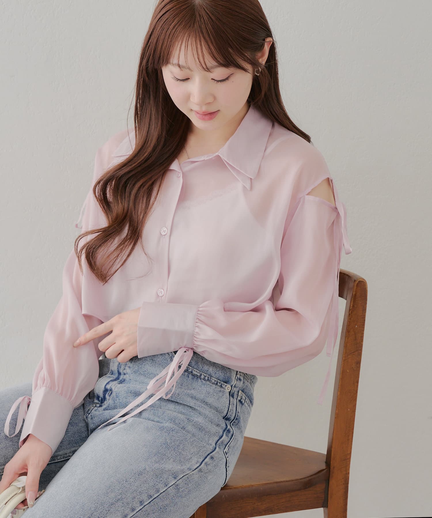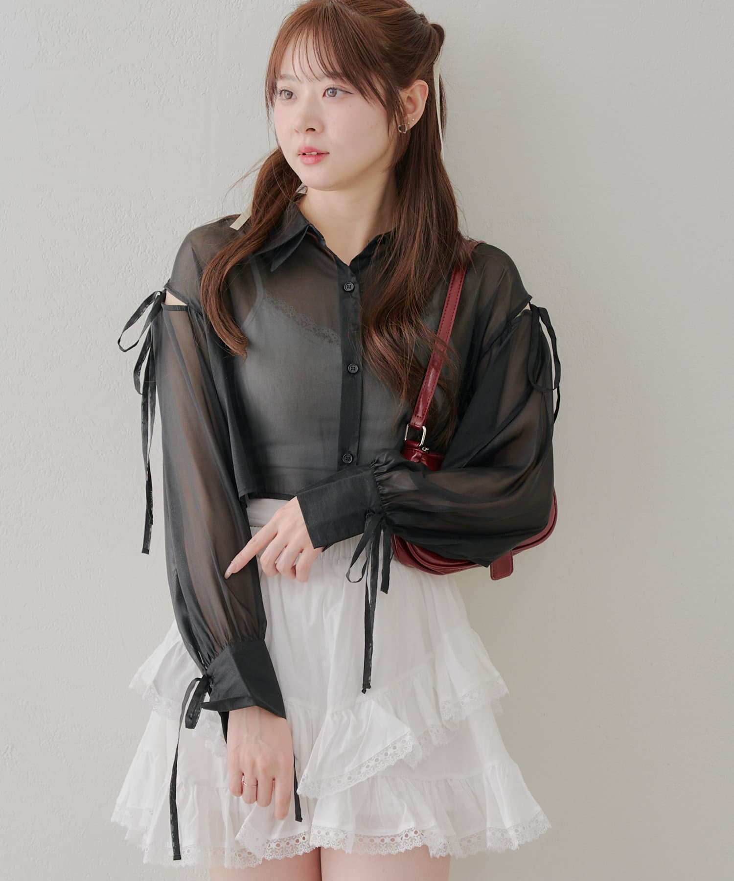 【RMAF】【MARCHES】肩リボンクロップドシャツ