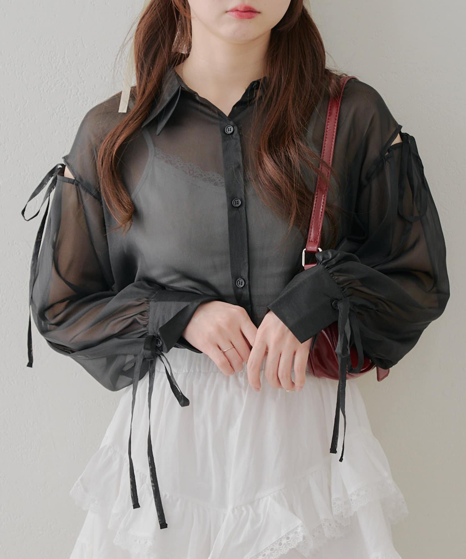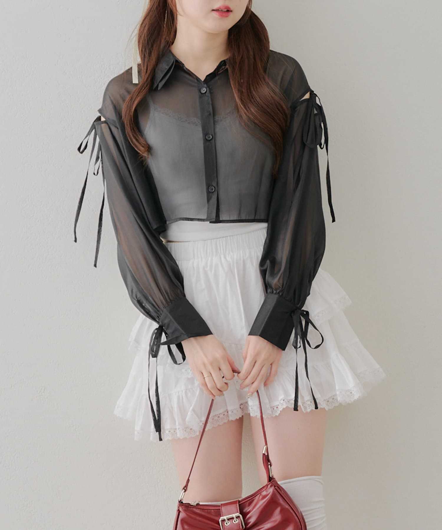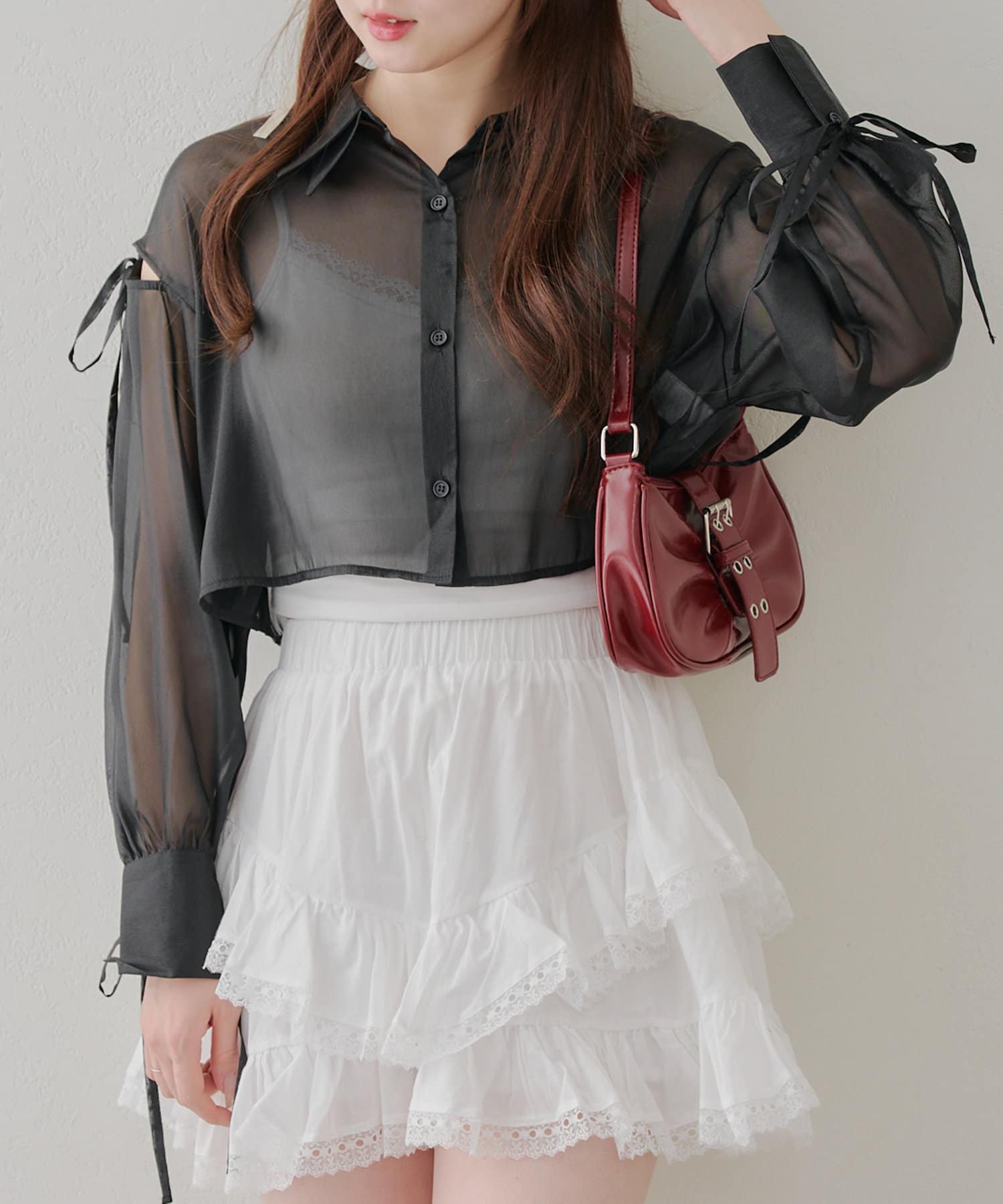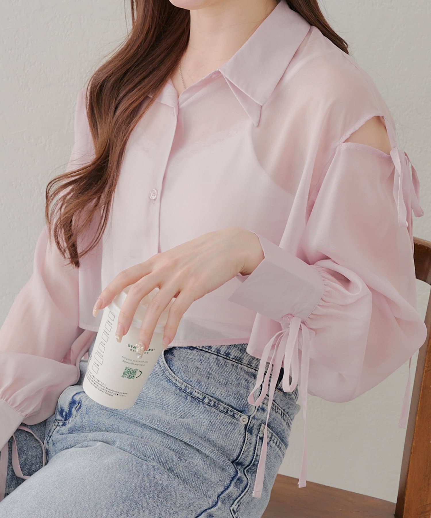【RMAF】【MARCHES】肩リボンクロップドシャツ