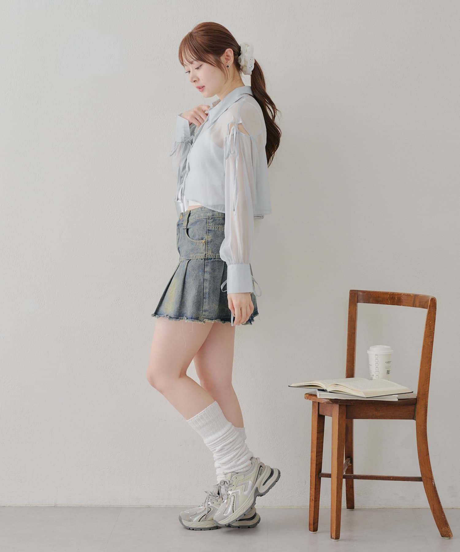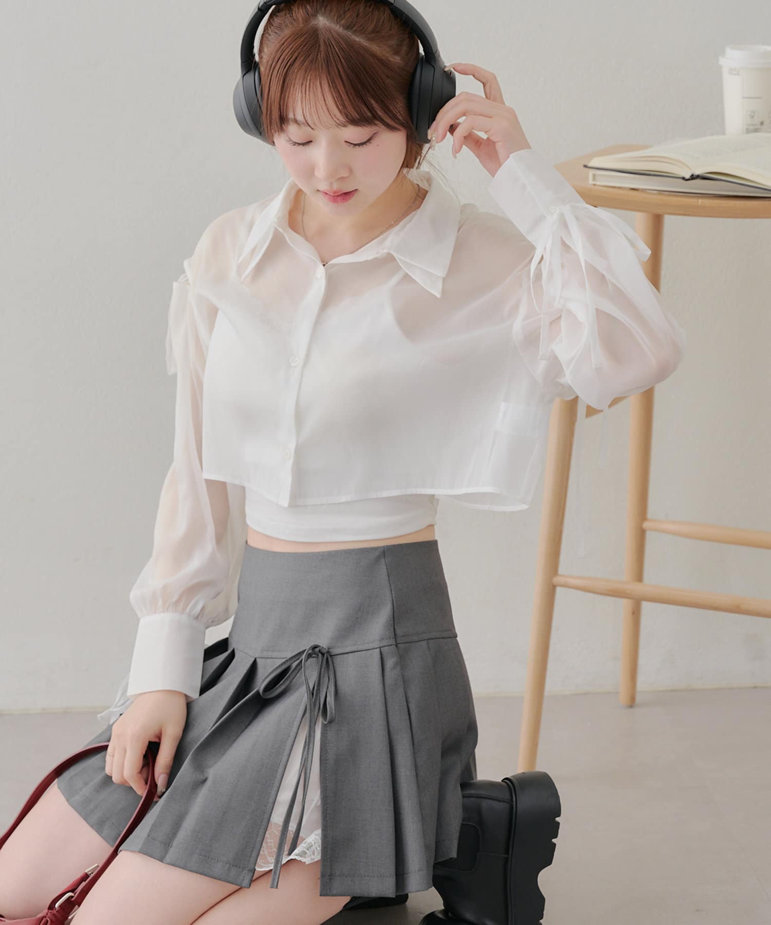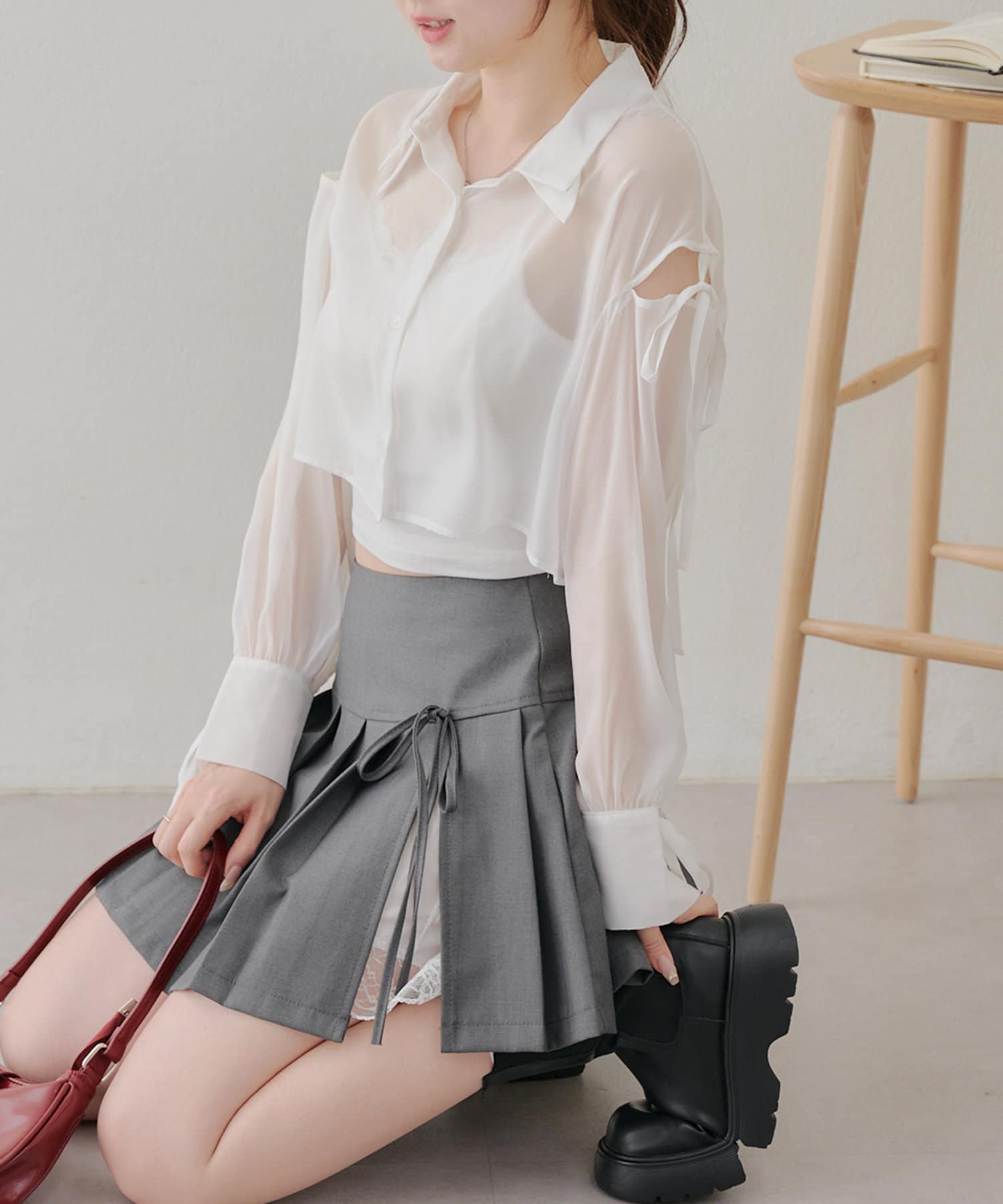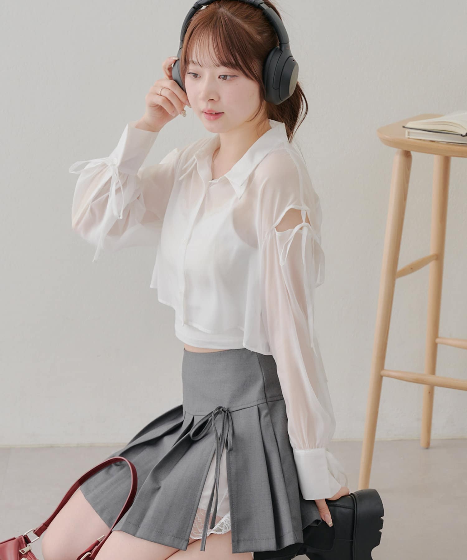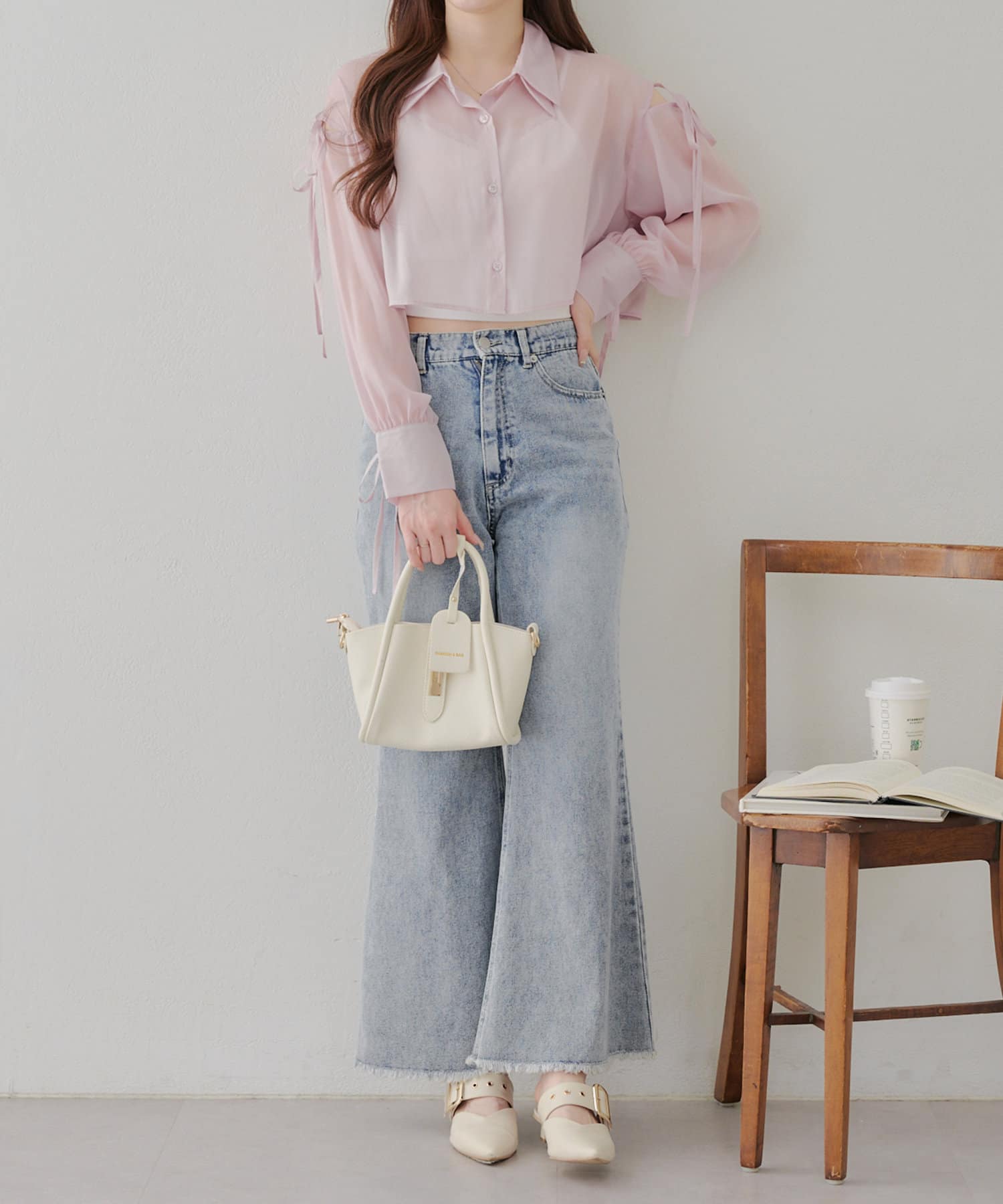 【RMAF】【MARCHES】肩リボンクロップドシャツ