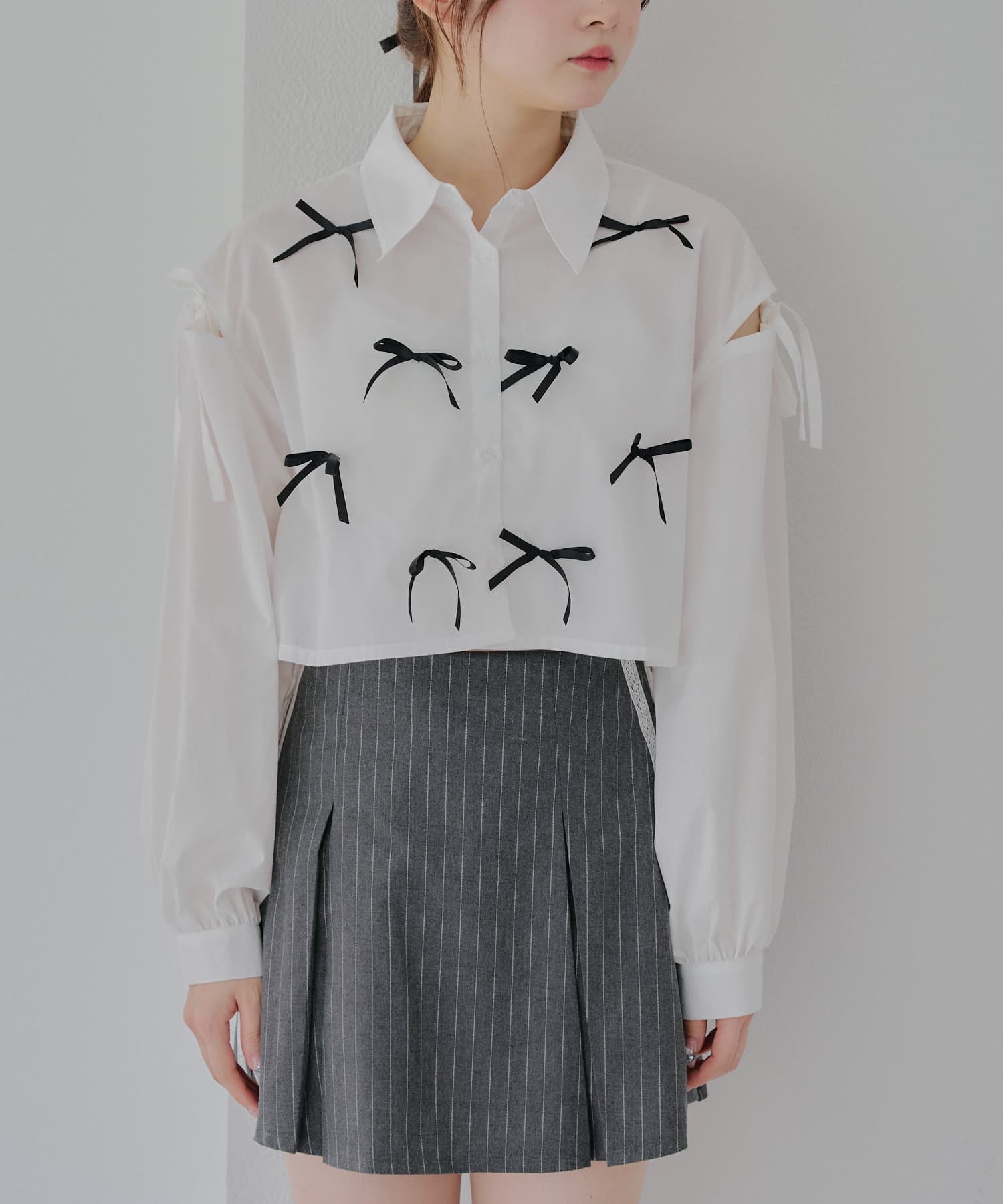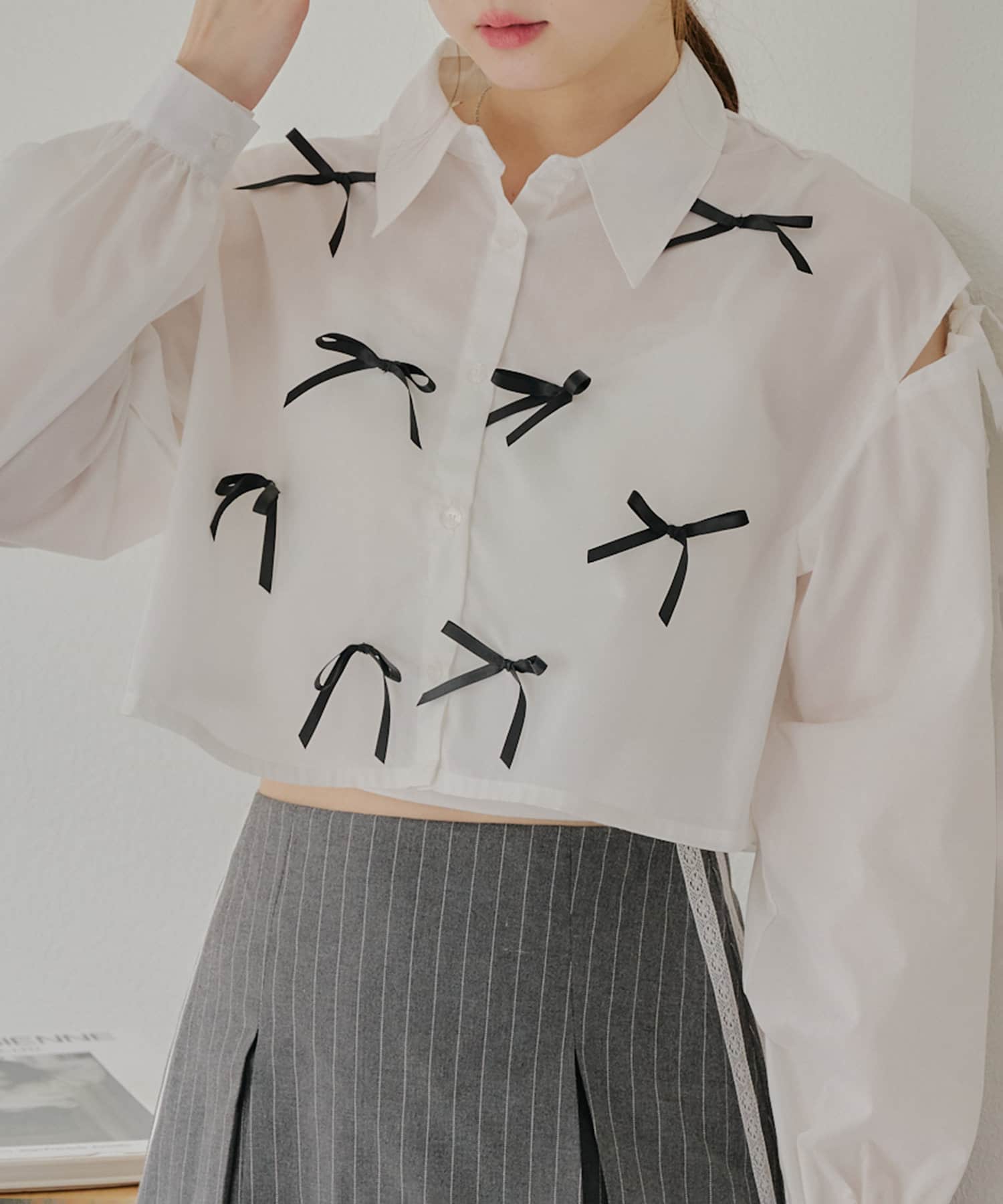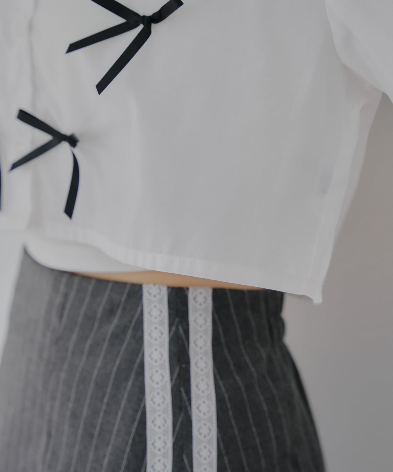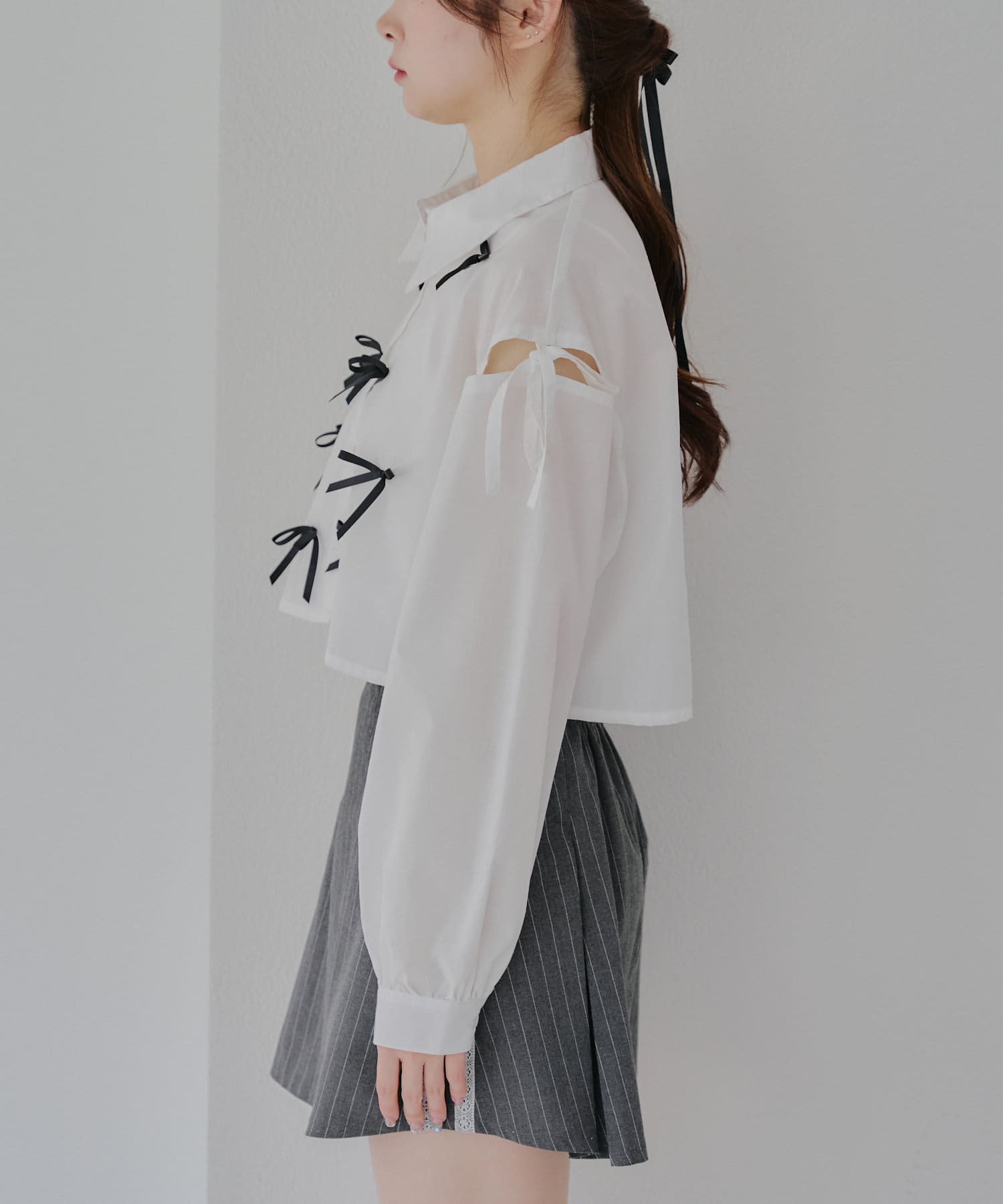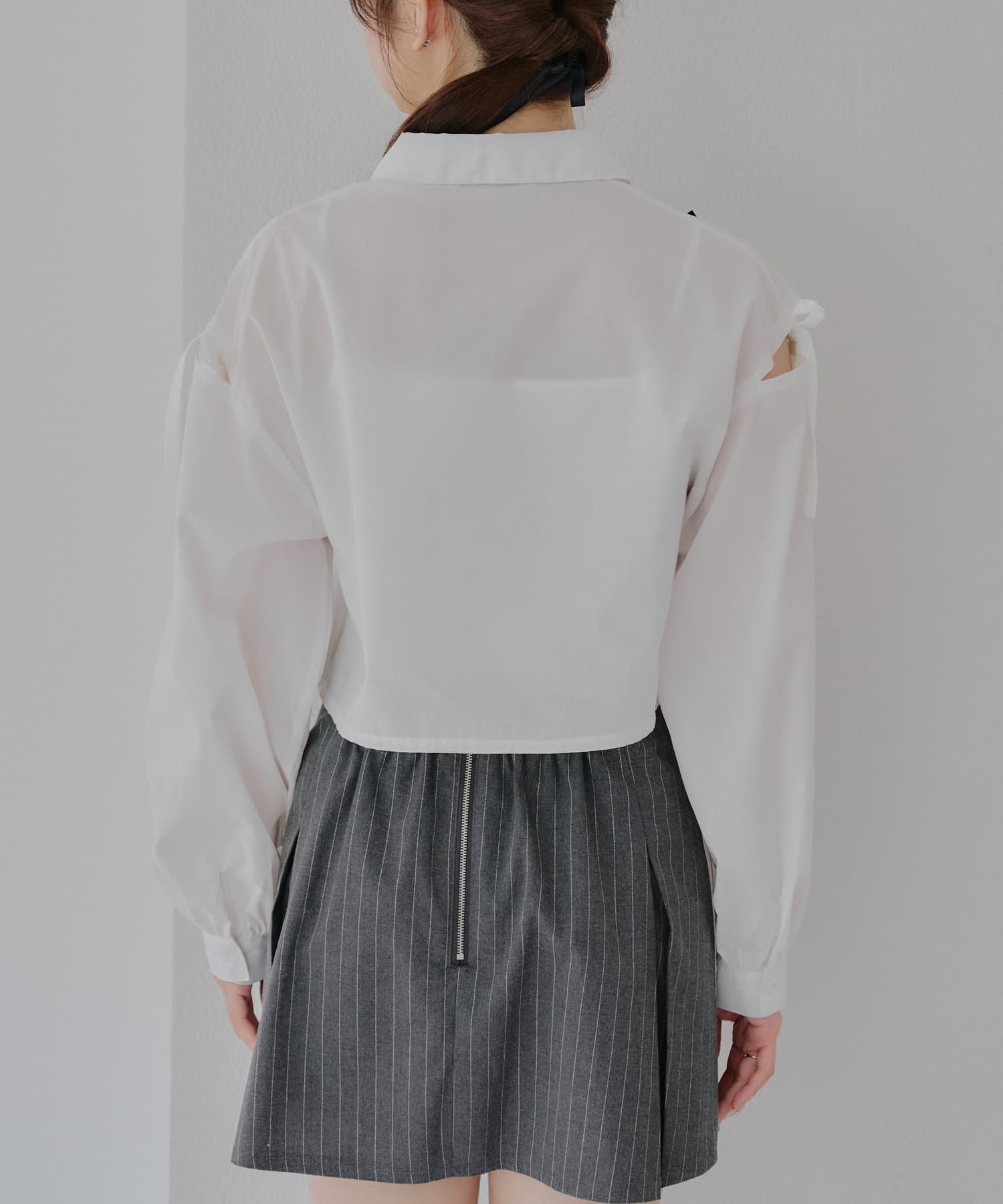 【RMAF】【MARCHES】肩あきリボン短丈シャツ
