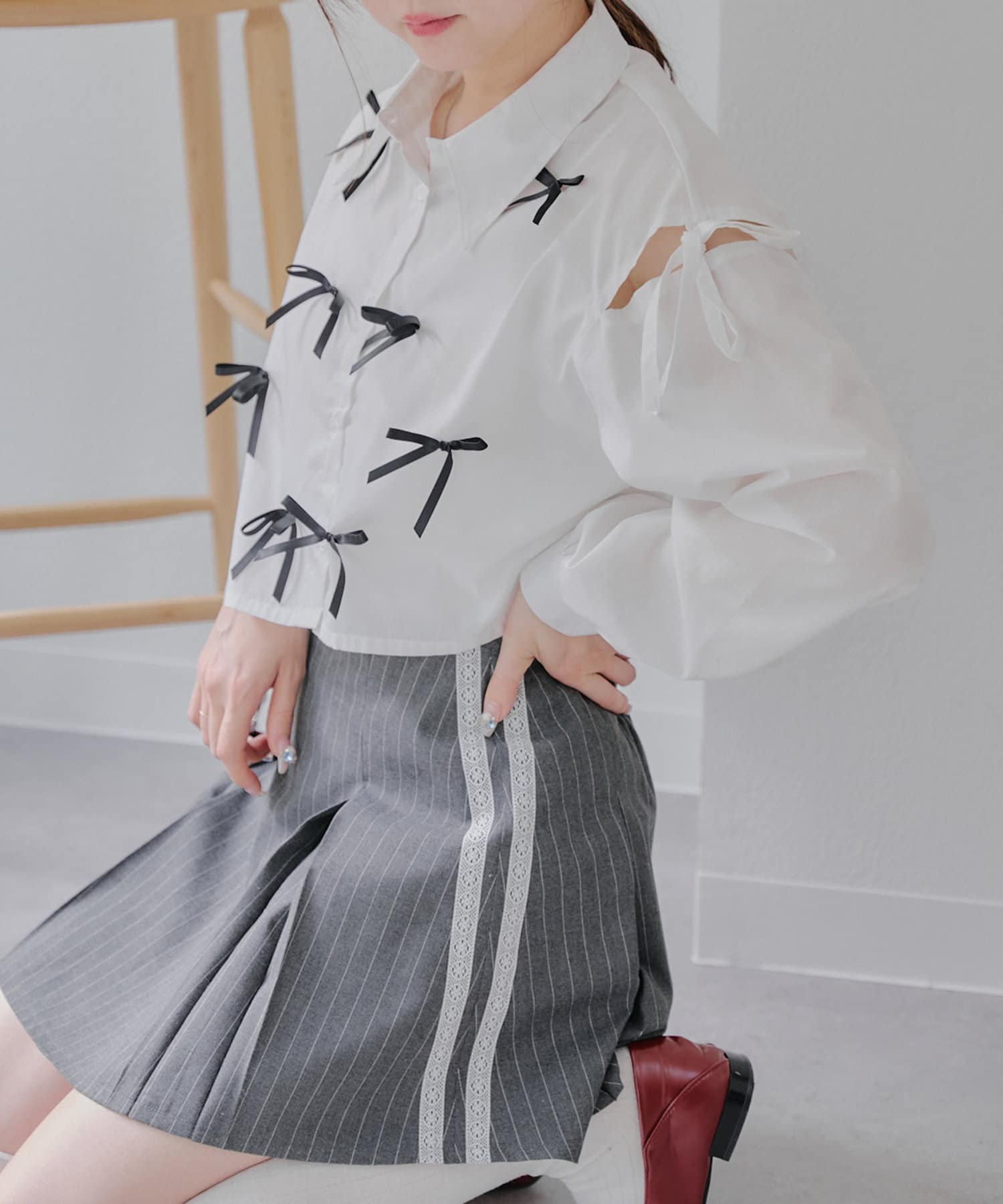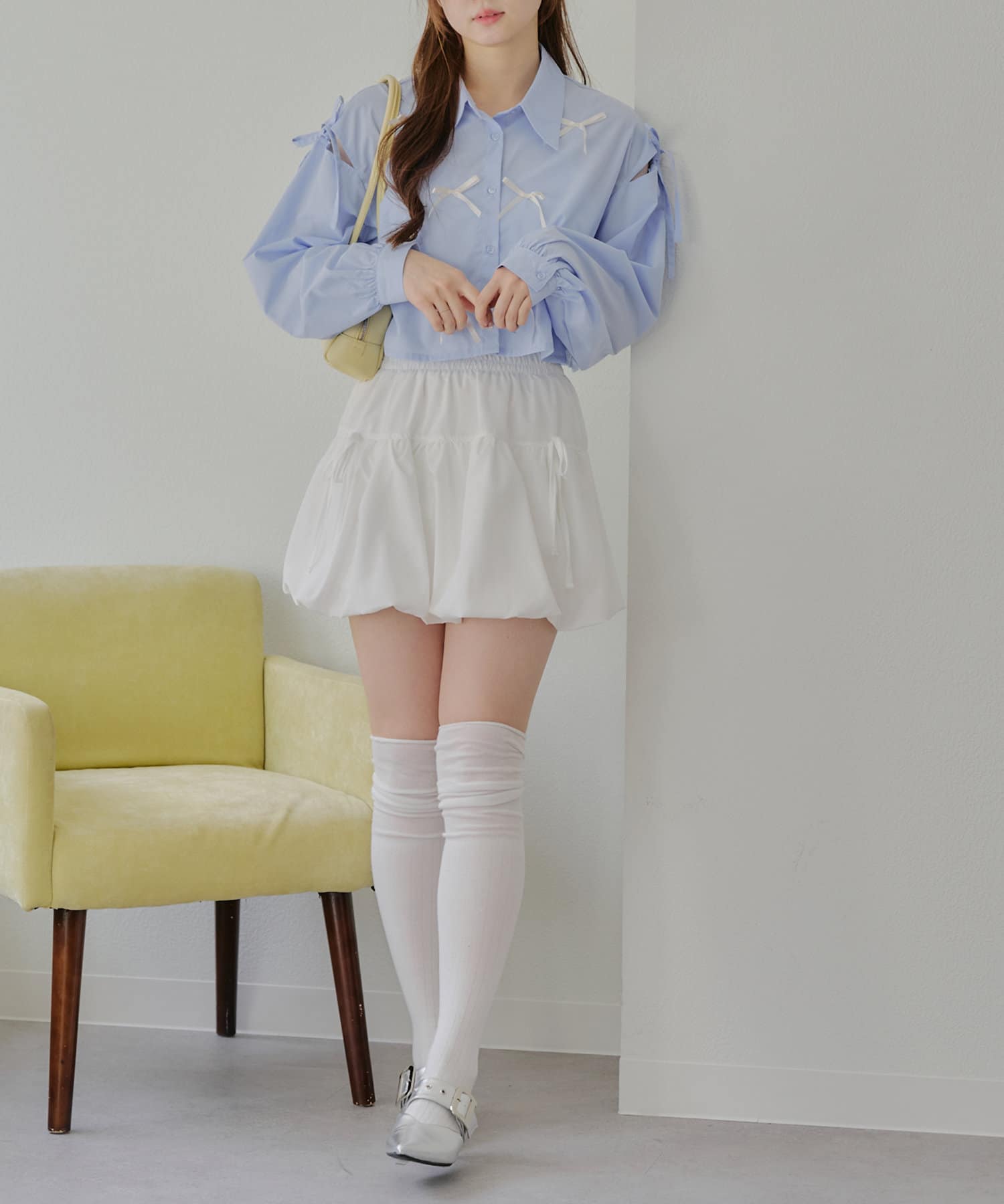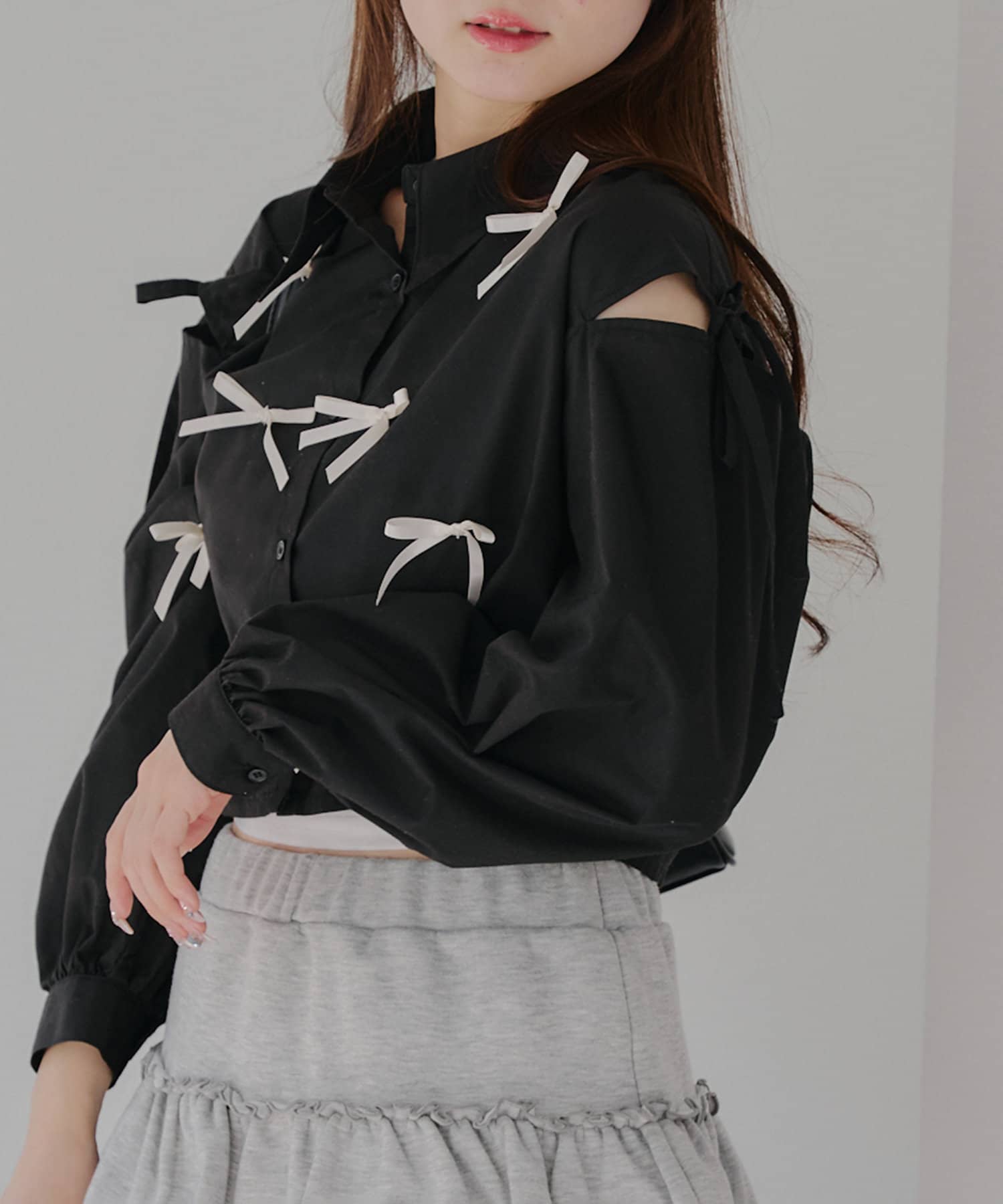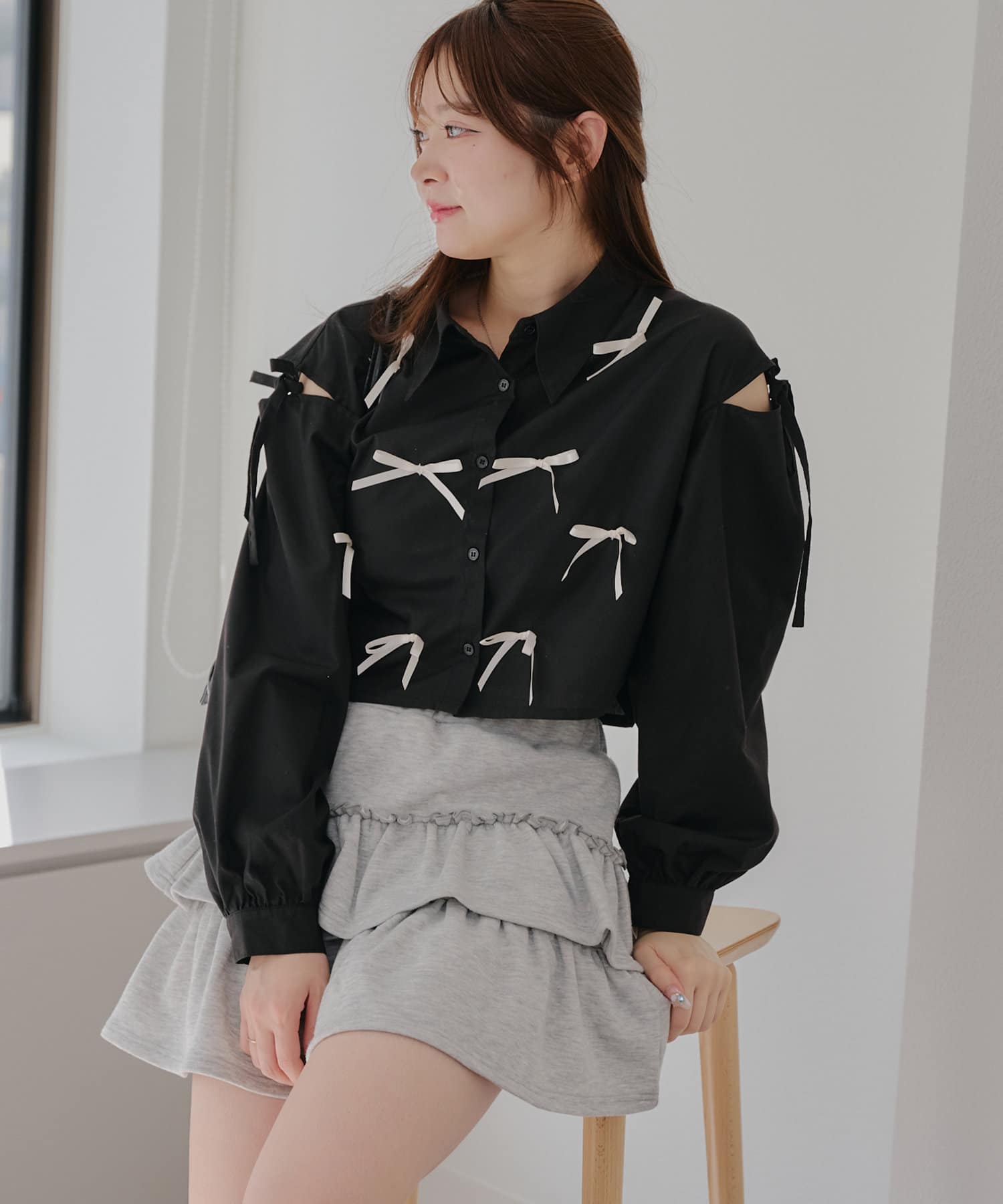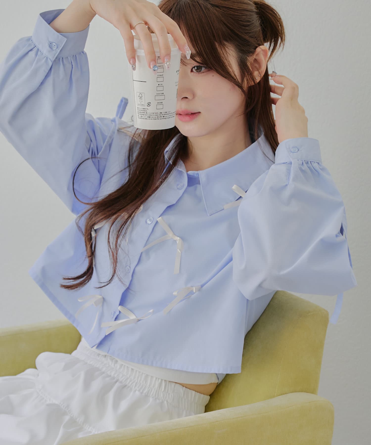 【RMAF】【MARCHES】肩あきリボン短丈シャツ