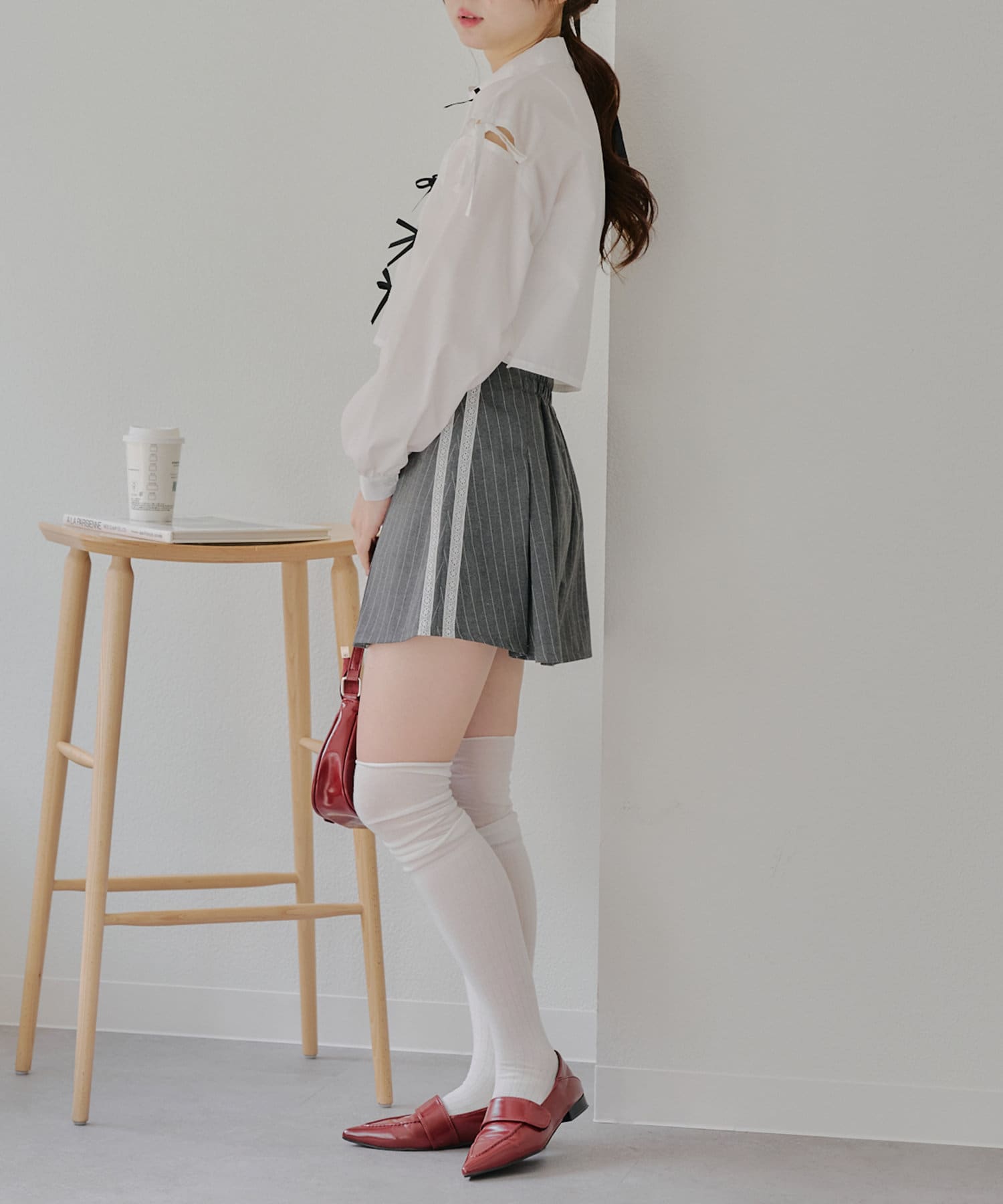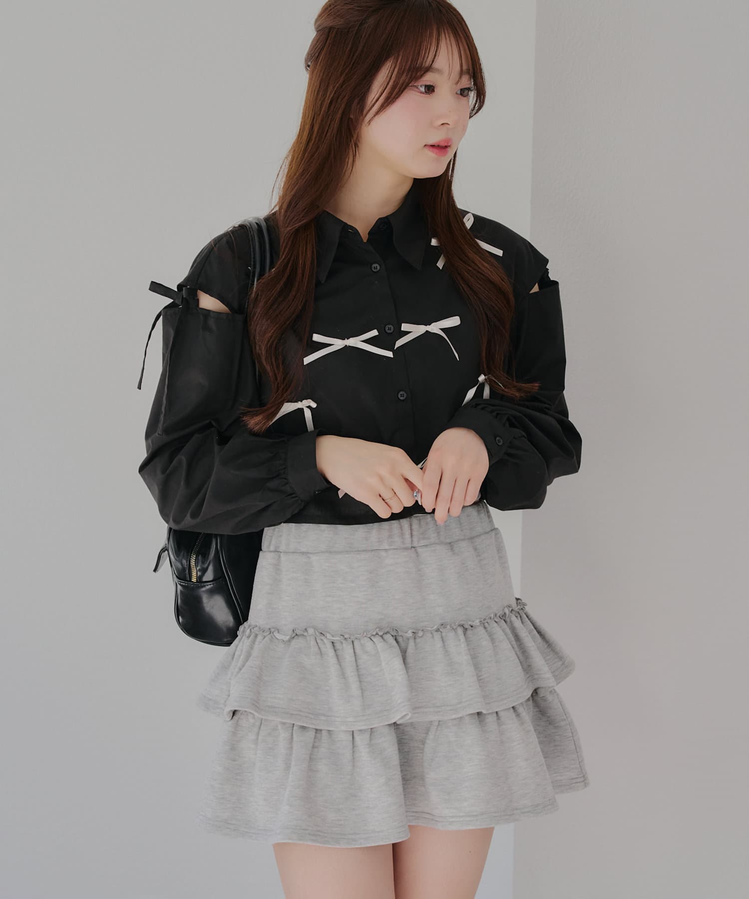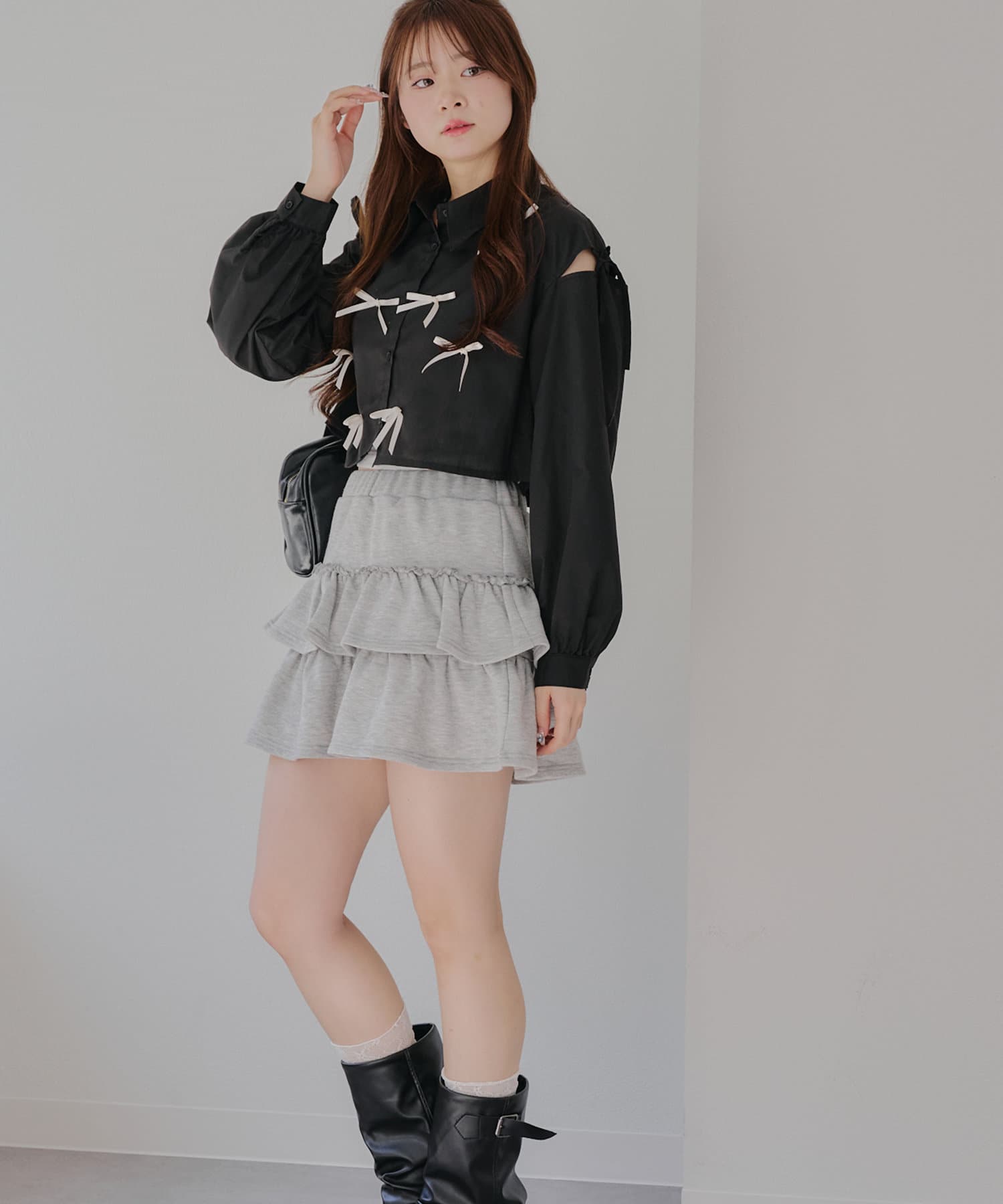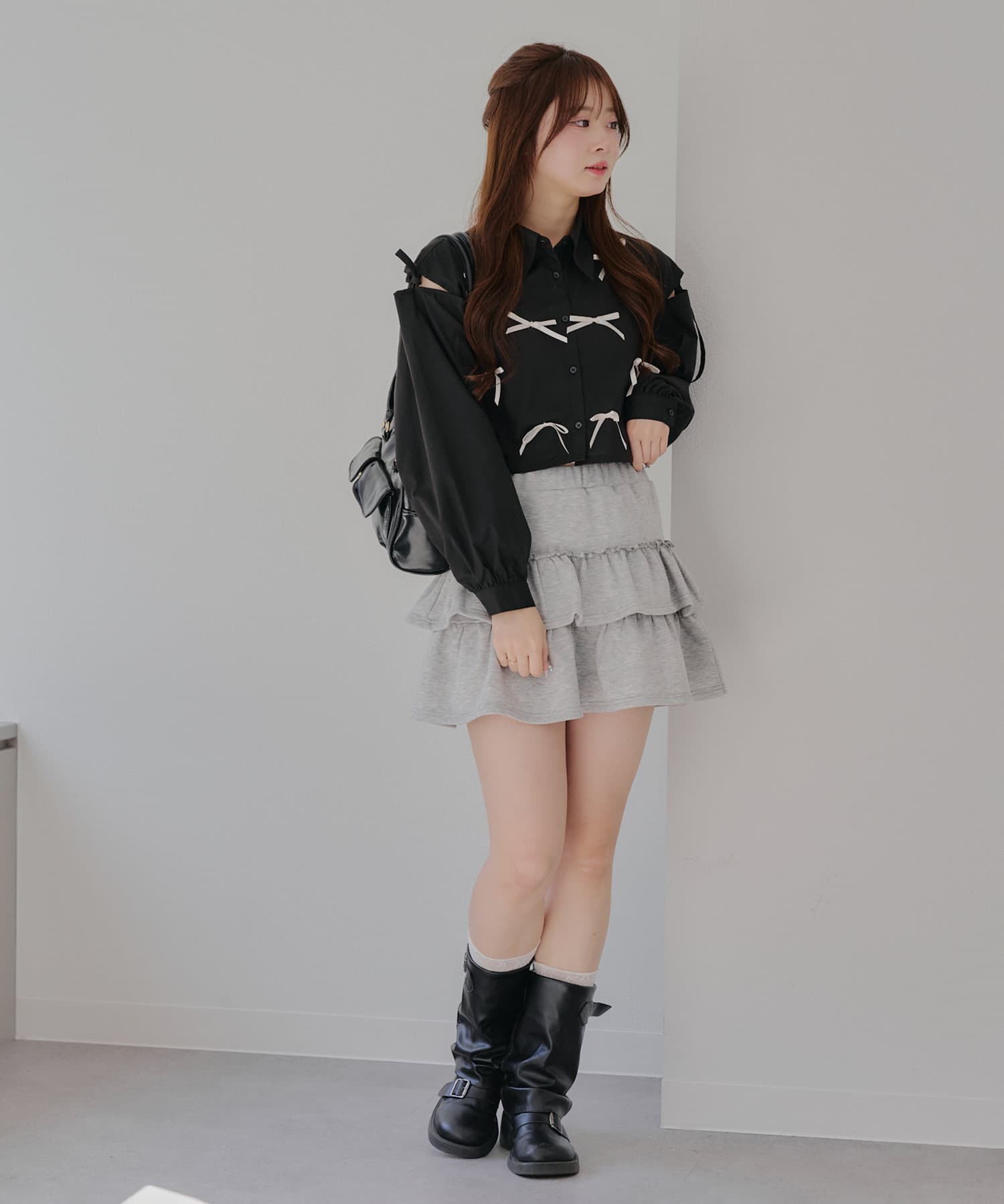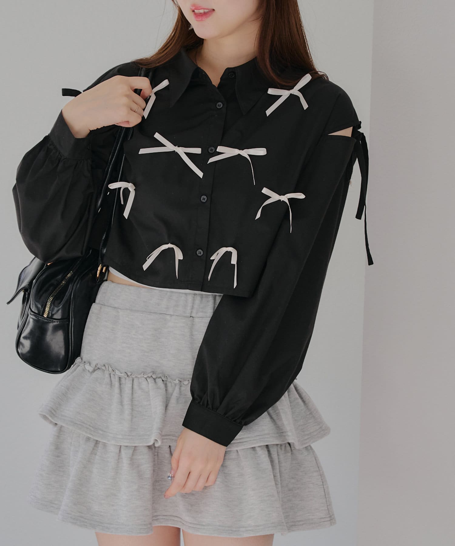 【RMAF】【MARCHES】肩あきリボン短丈シャツ
