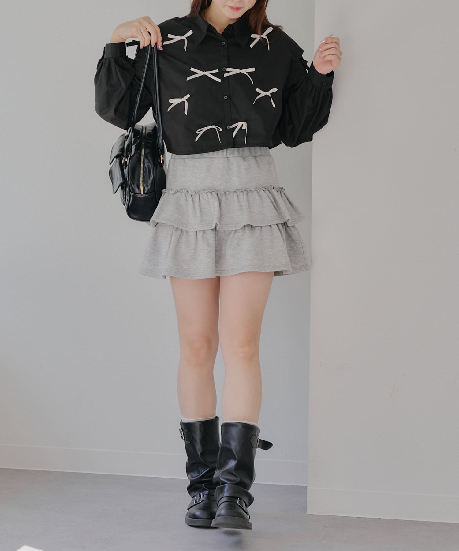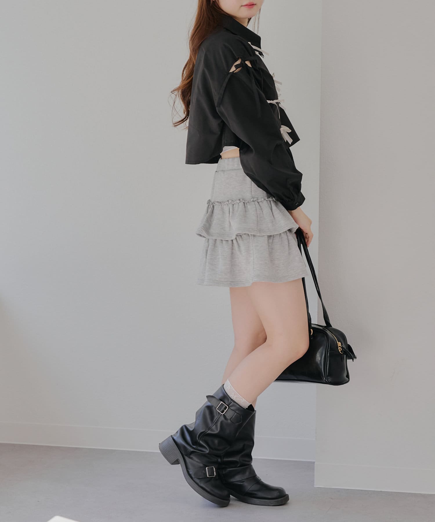 ・ティアードやプリーツ、トレンドのバルーンなどのミニスカ合わせが旬なコーデに
