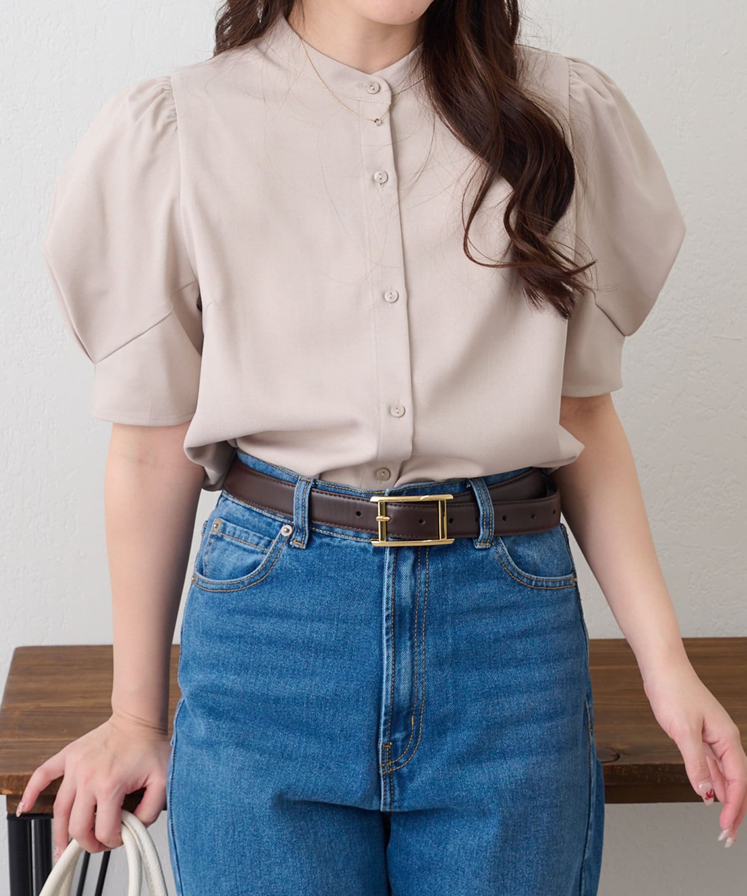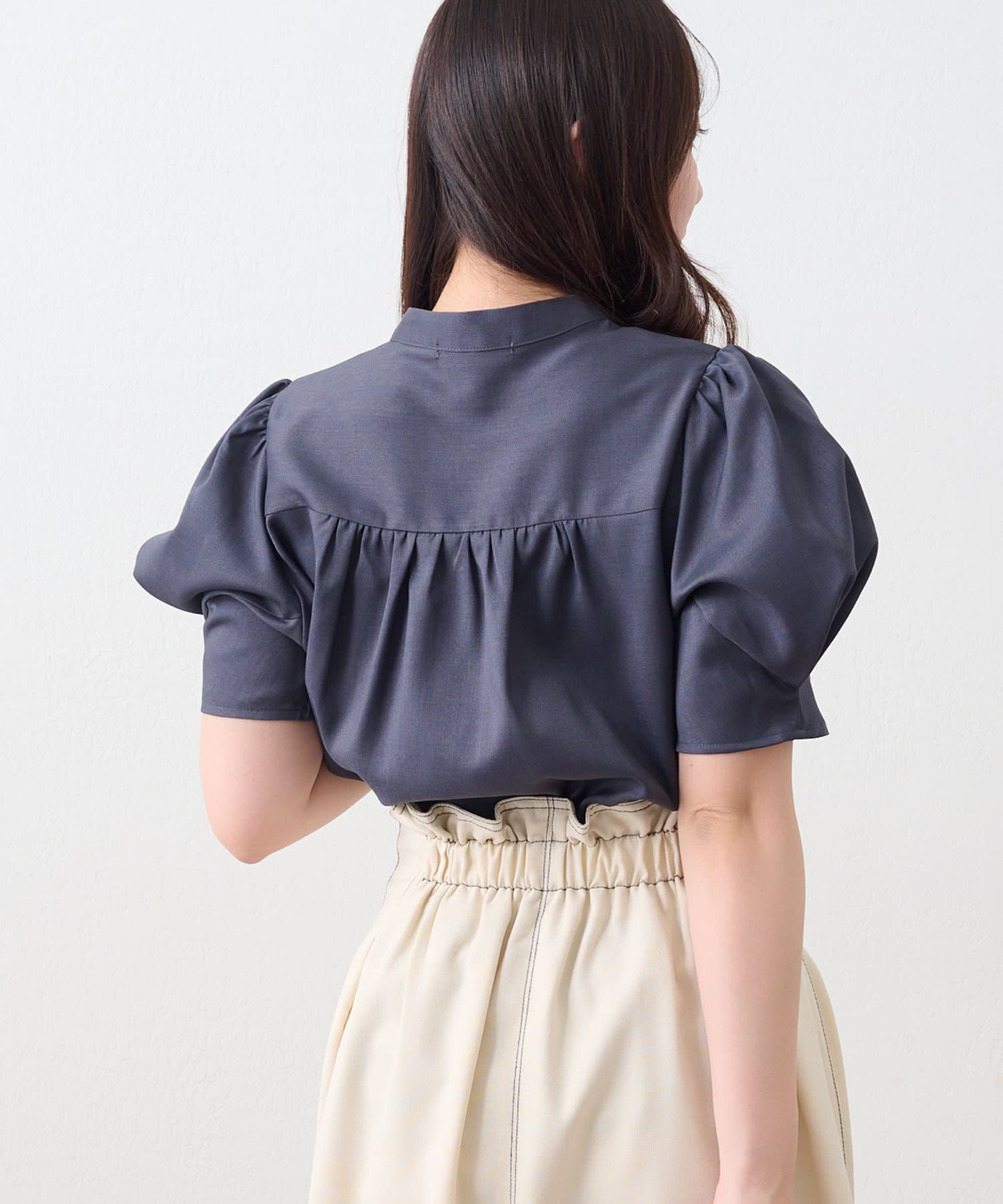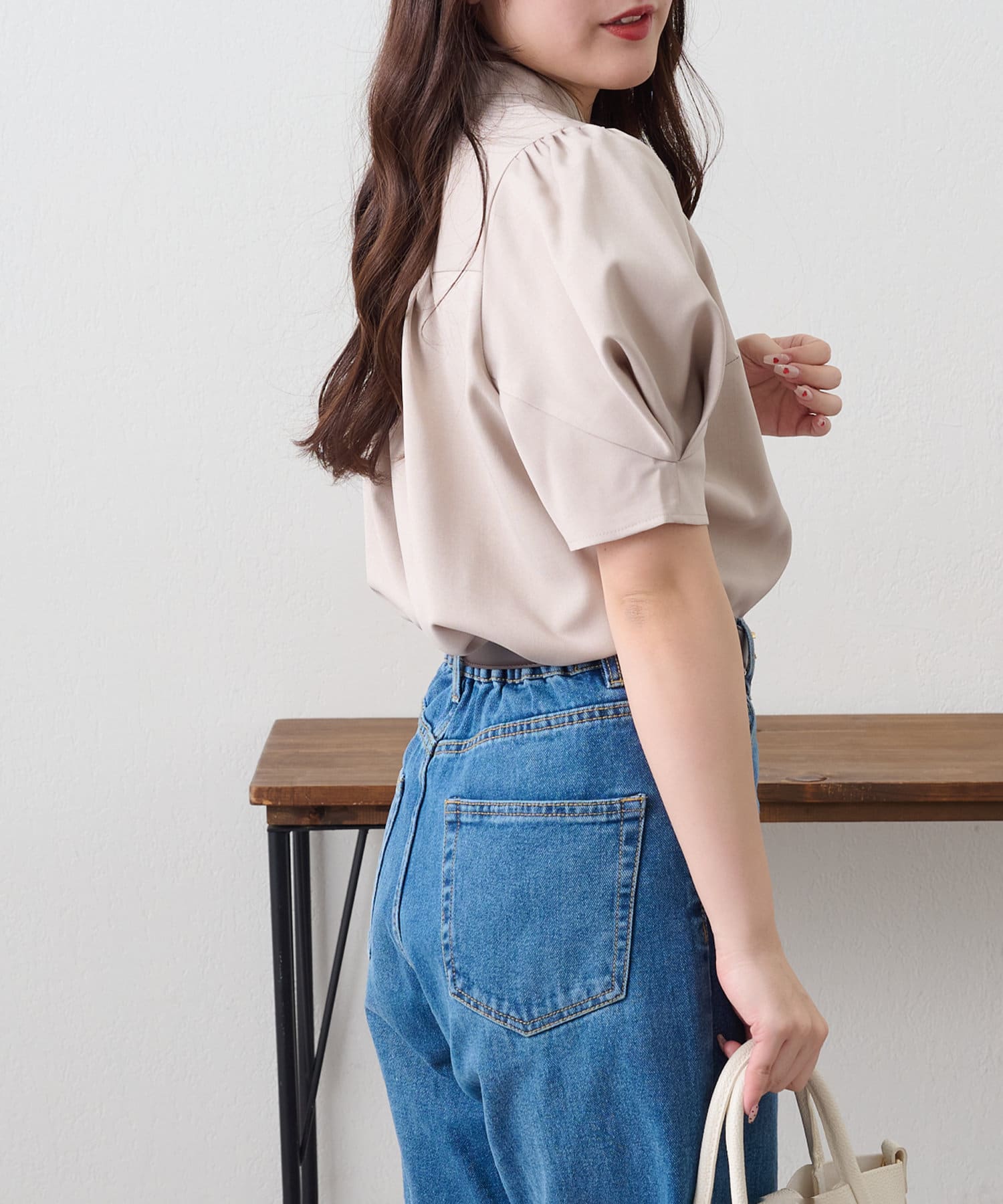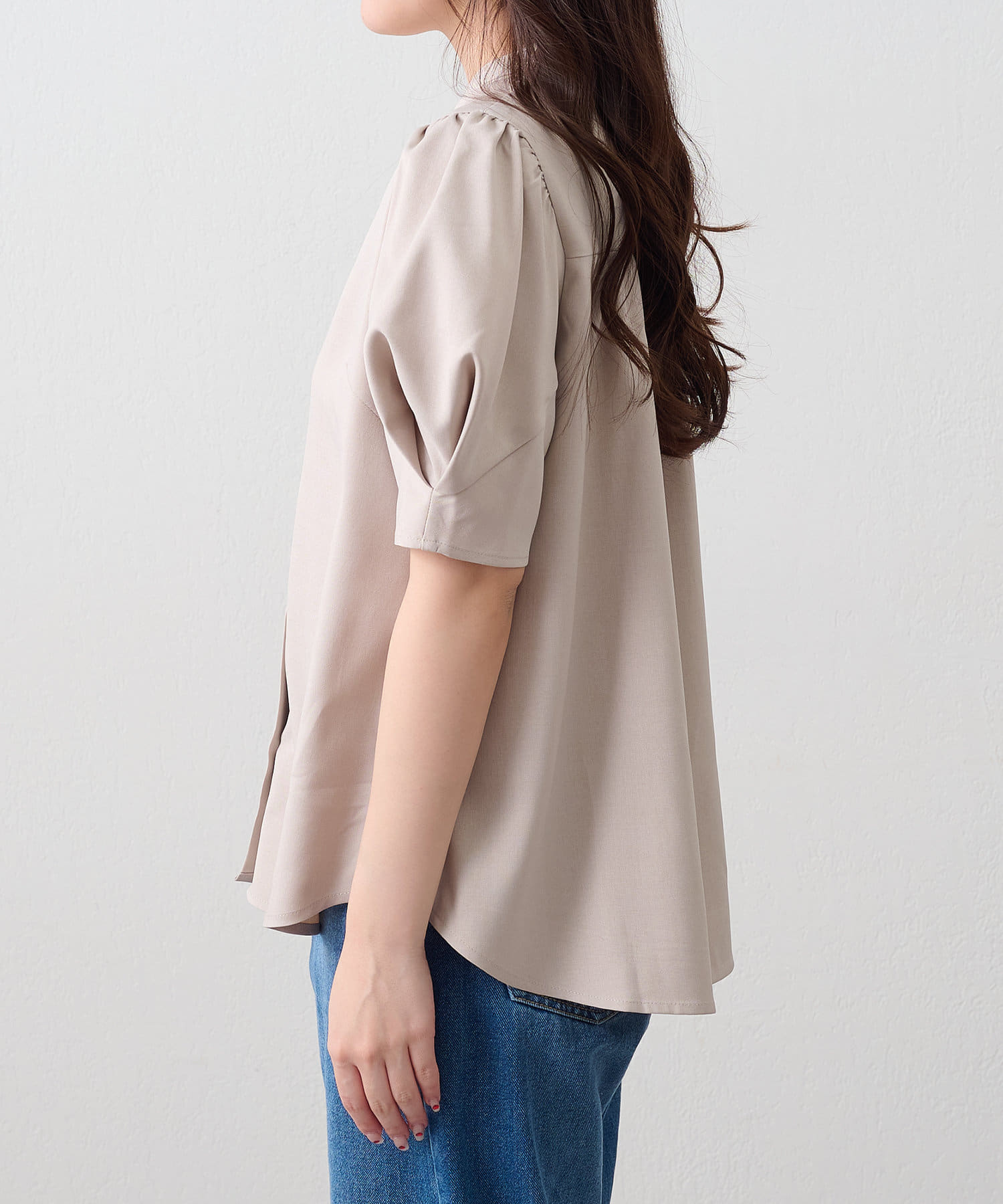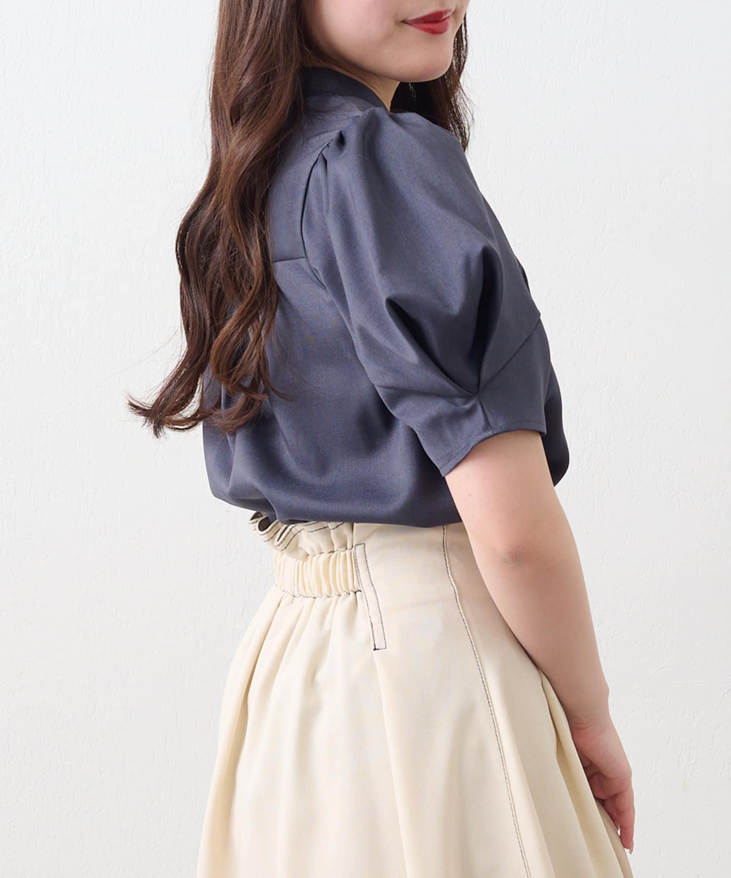 ・女性らしいシルエットのオリガミ袖デザインのブラウス