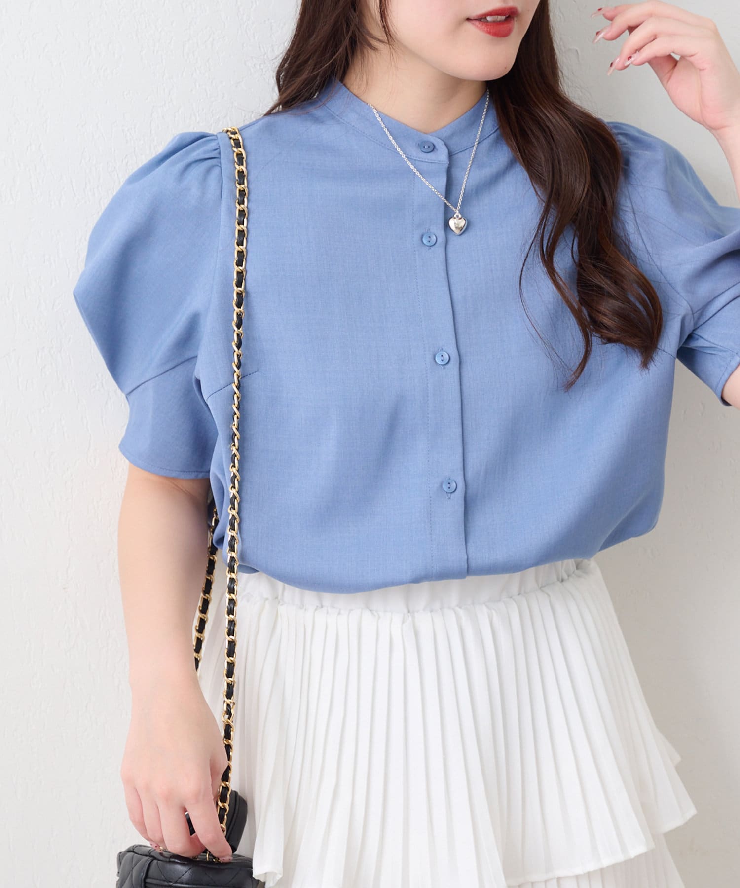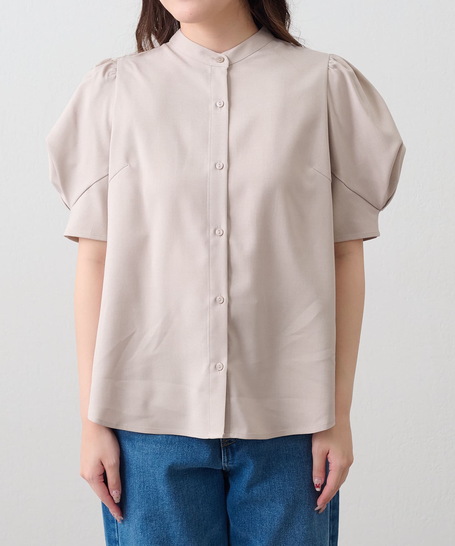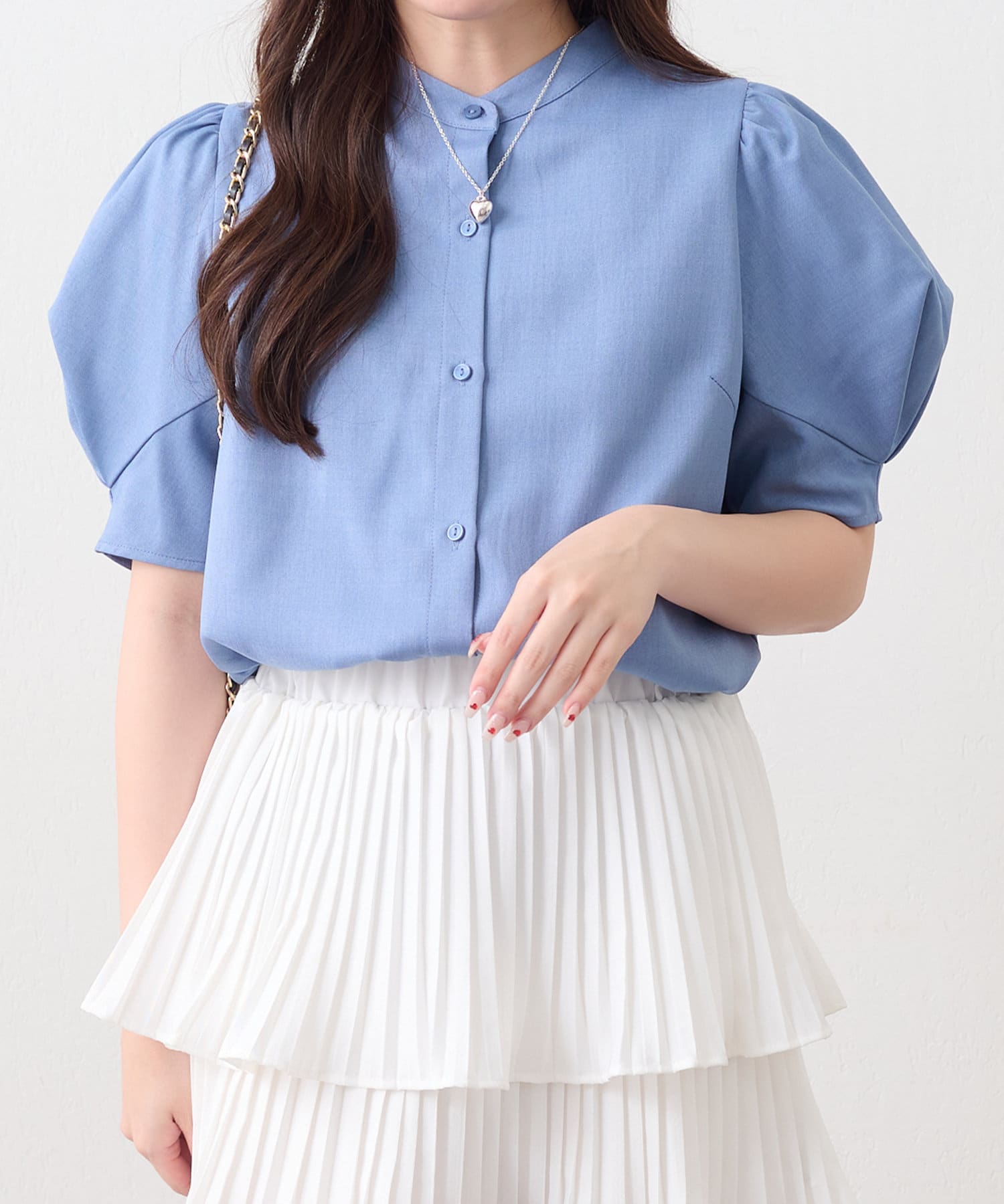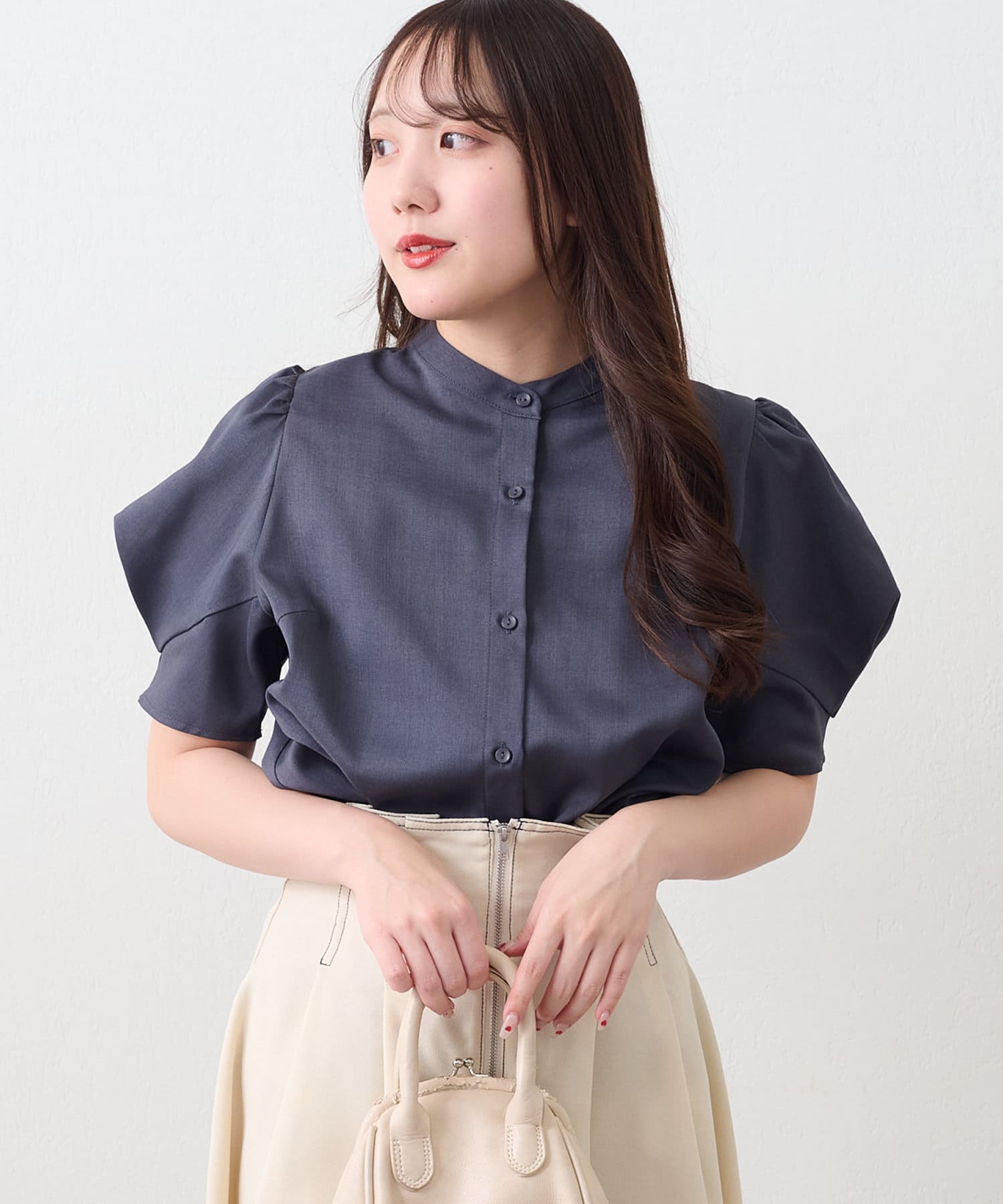 華奢見えデザイン、折り紙袖ブラウス