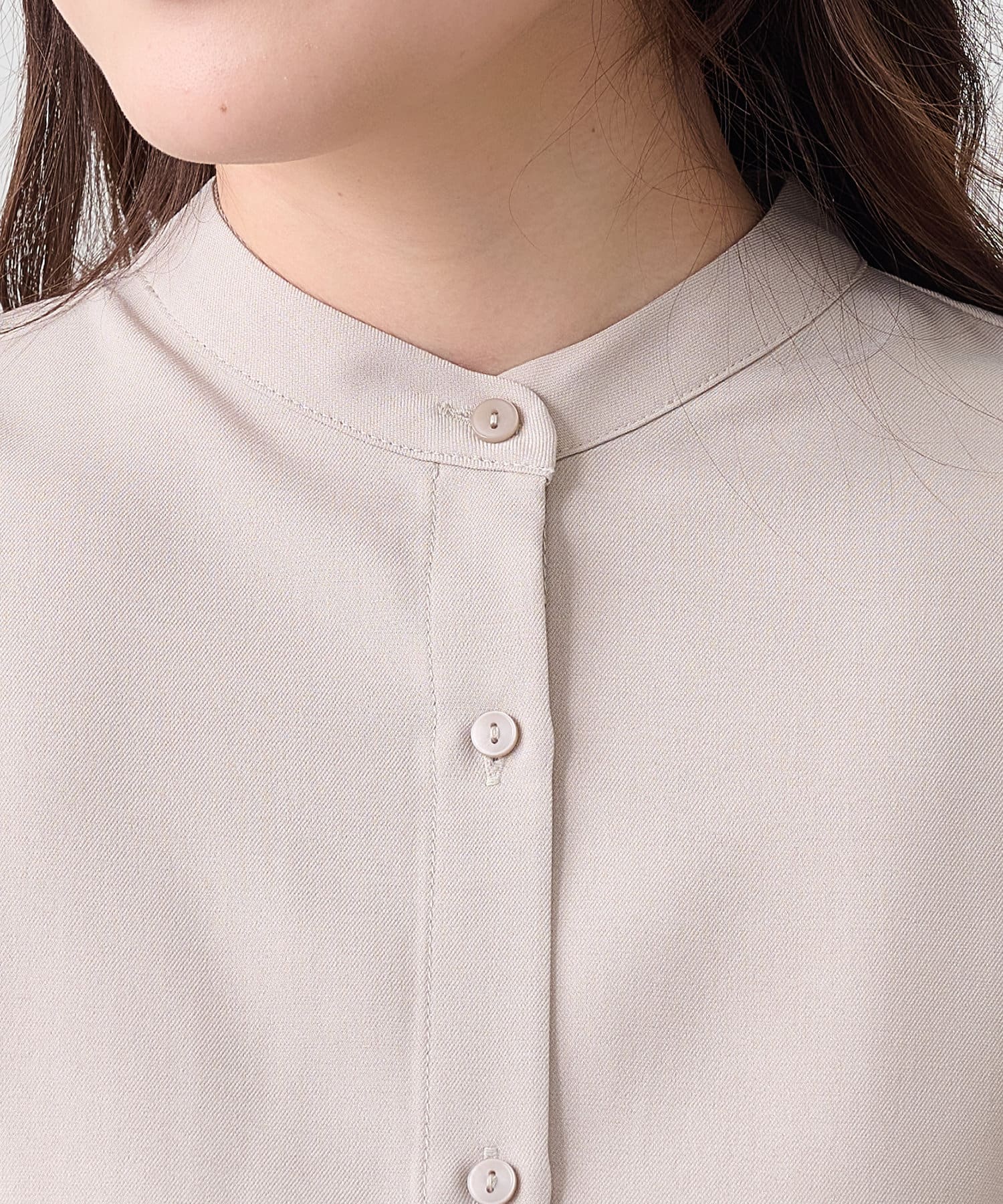 ・ノーカラーで首周りがすっきりと見える一枚
