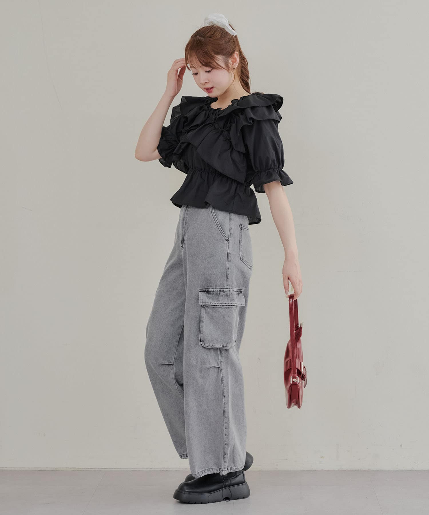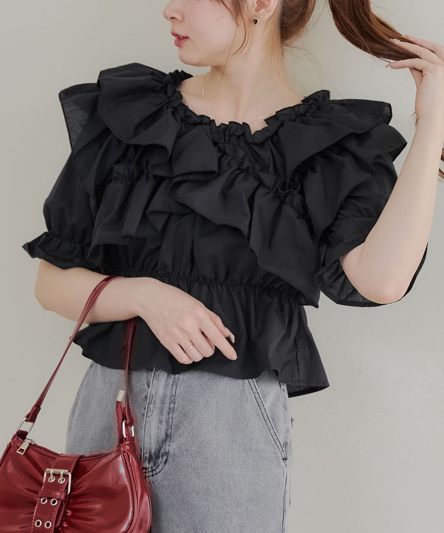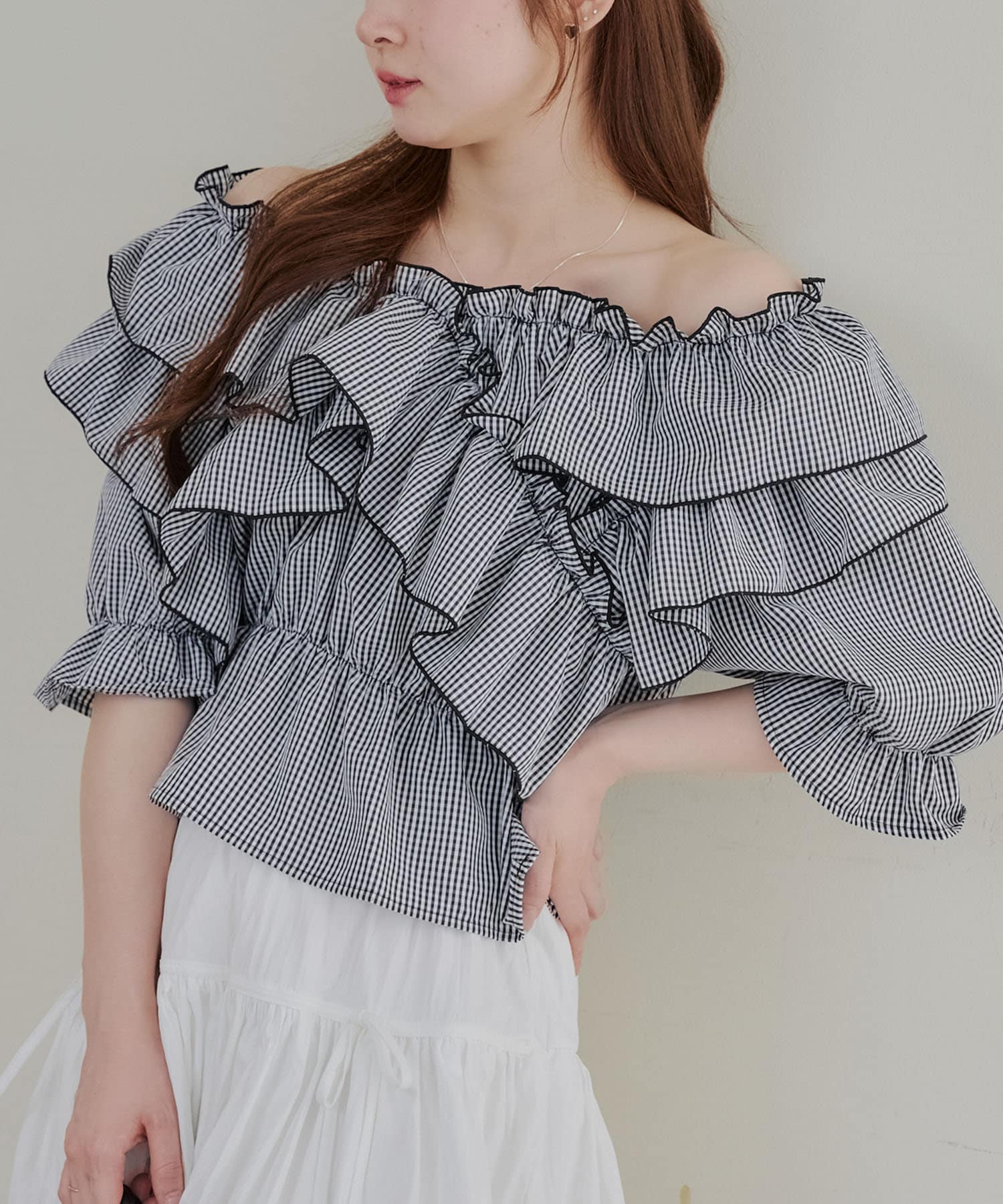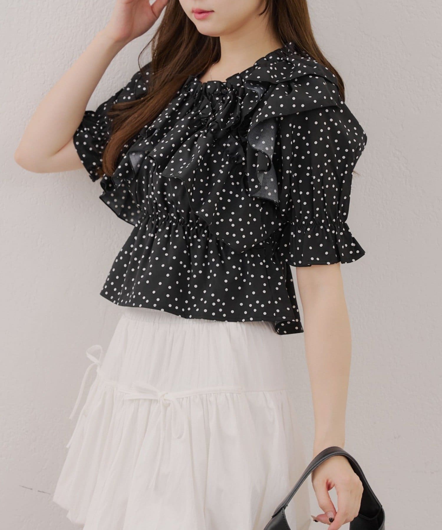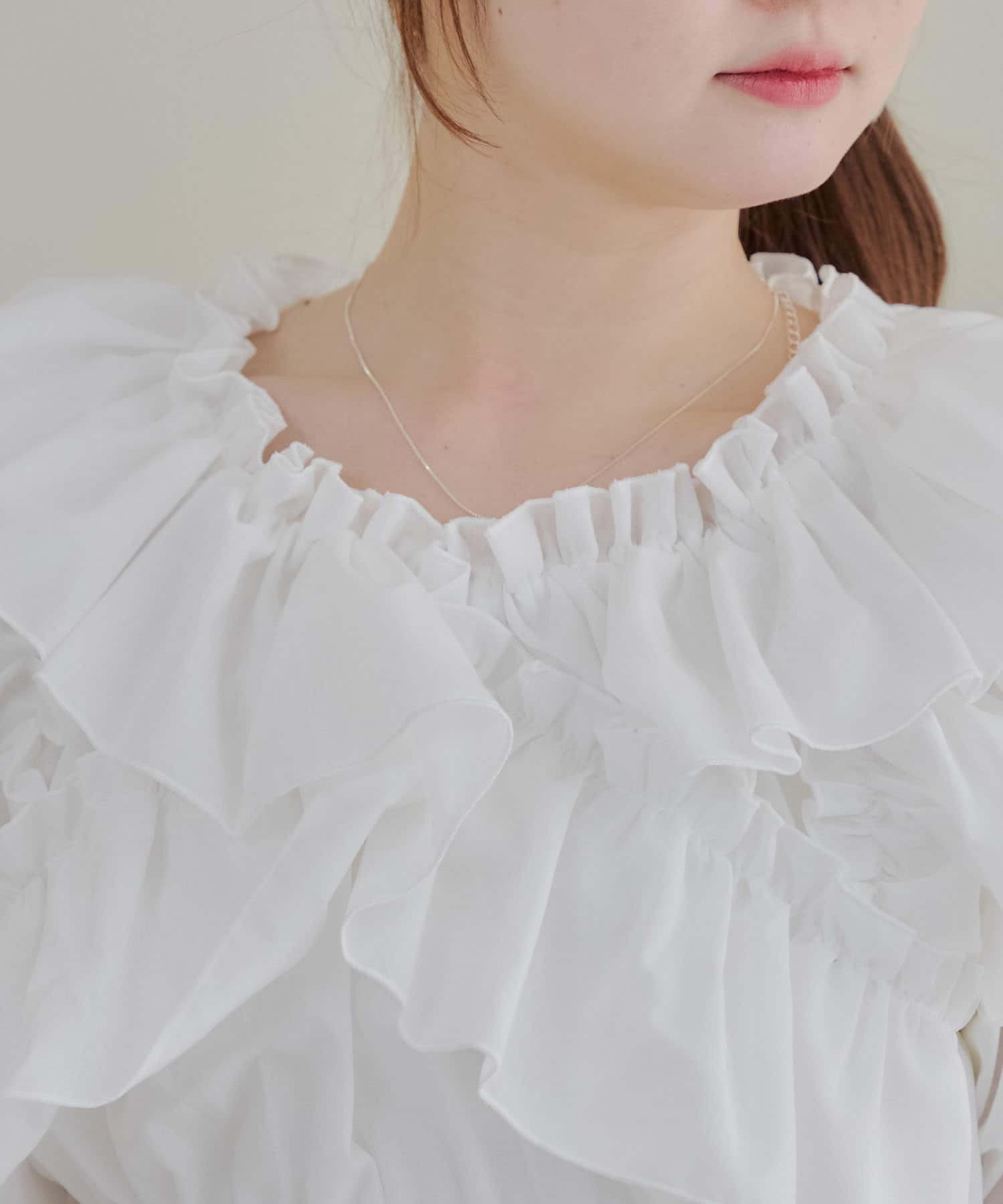 ・フリルは甘くなりすぎず、大人っぽい印象に仕上げています。