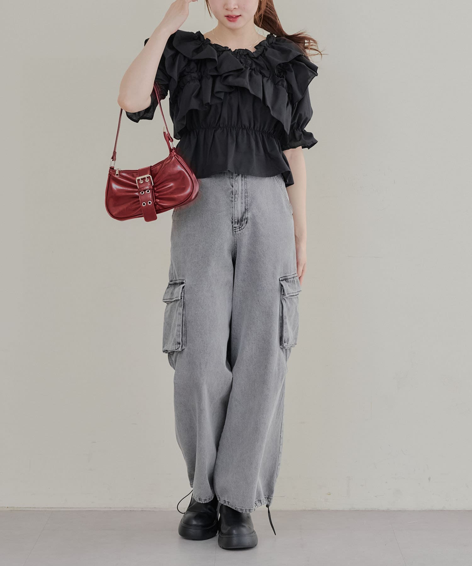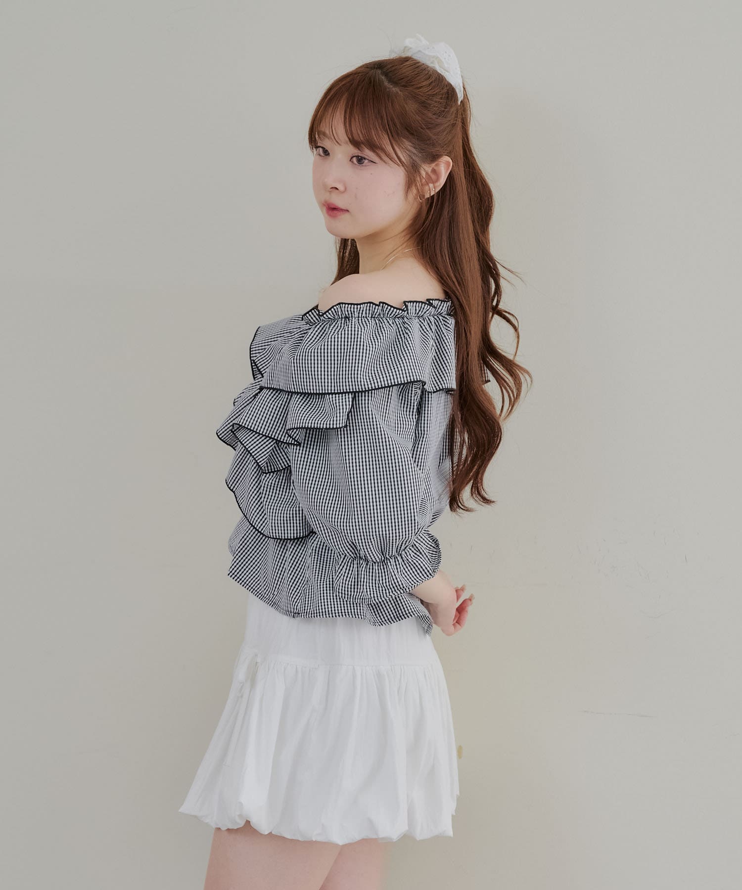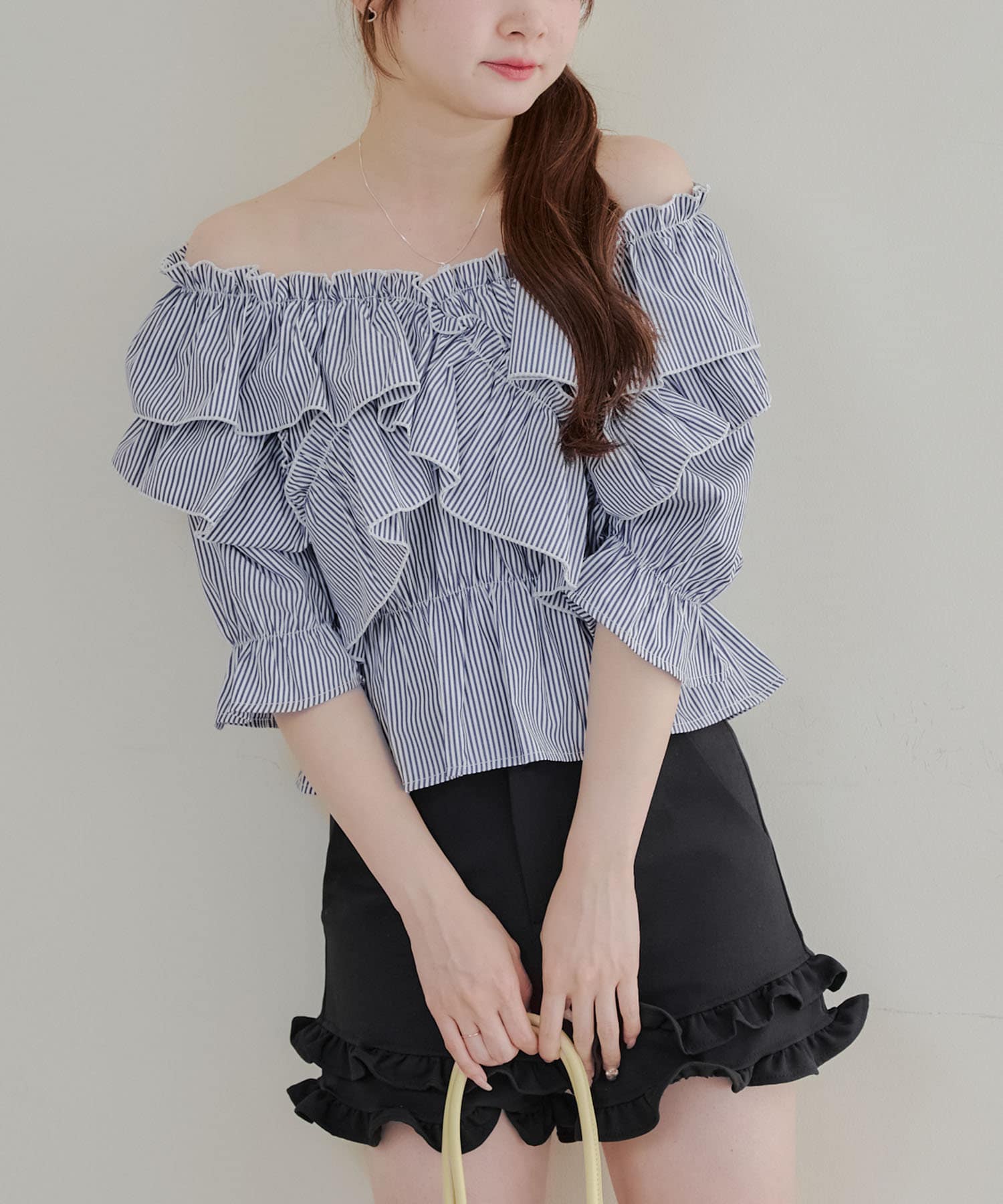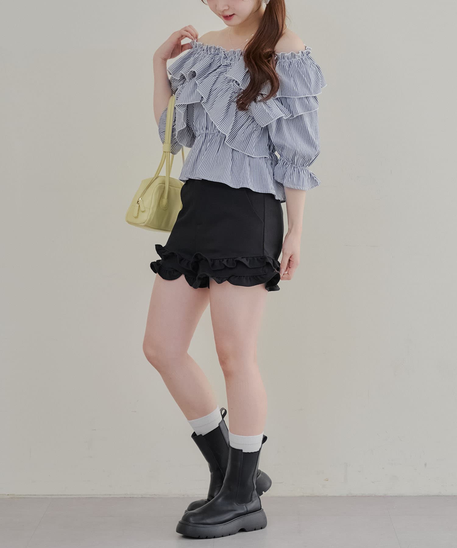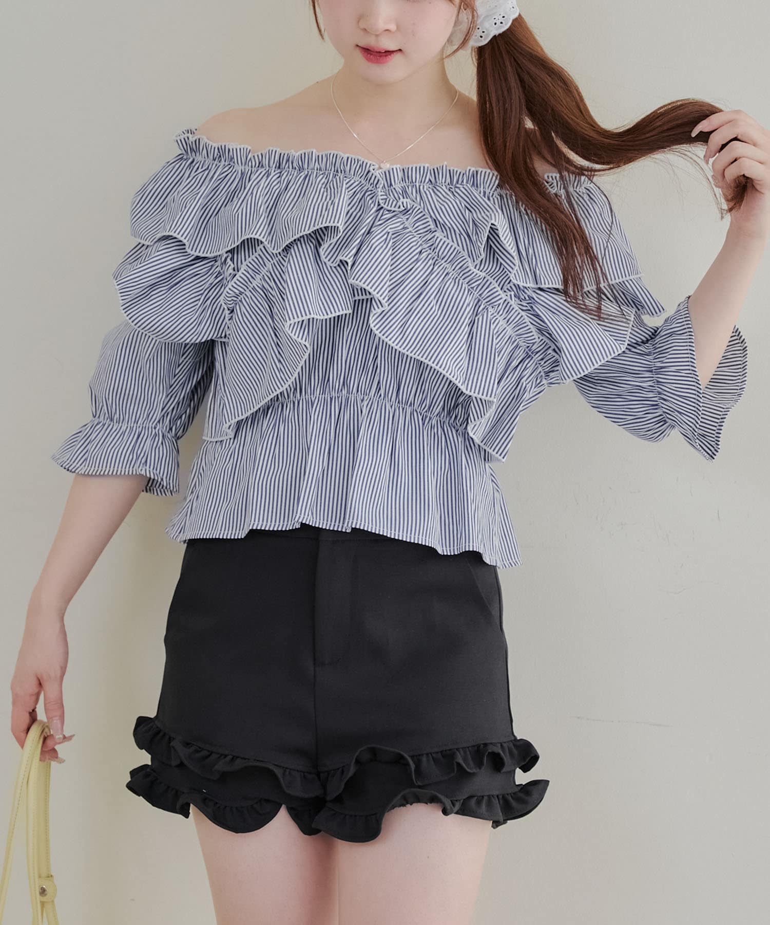 ・フリルは甘くなりすぎず、大人っぽい印象に仕上げています。