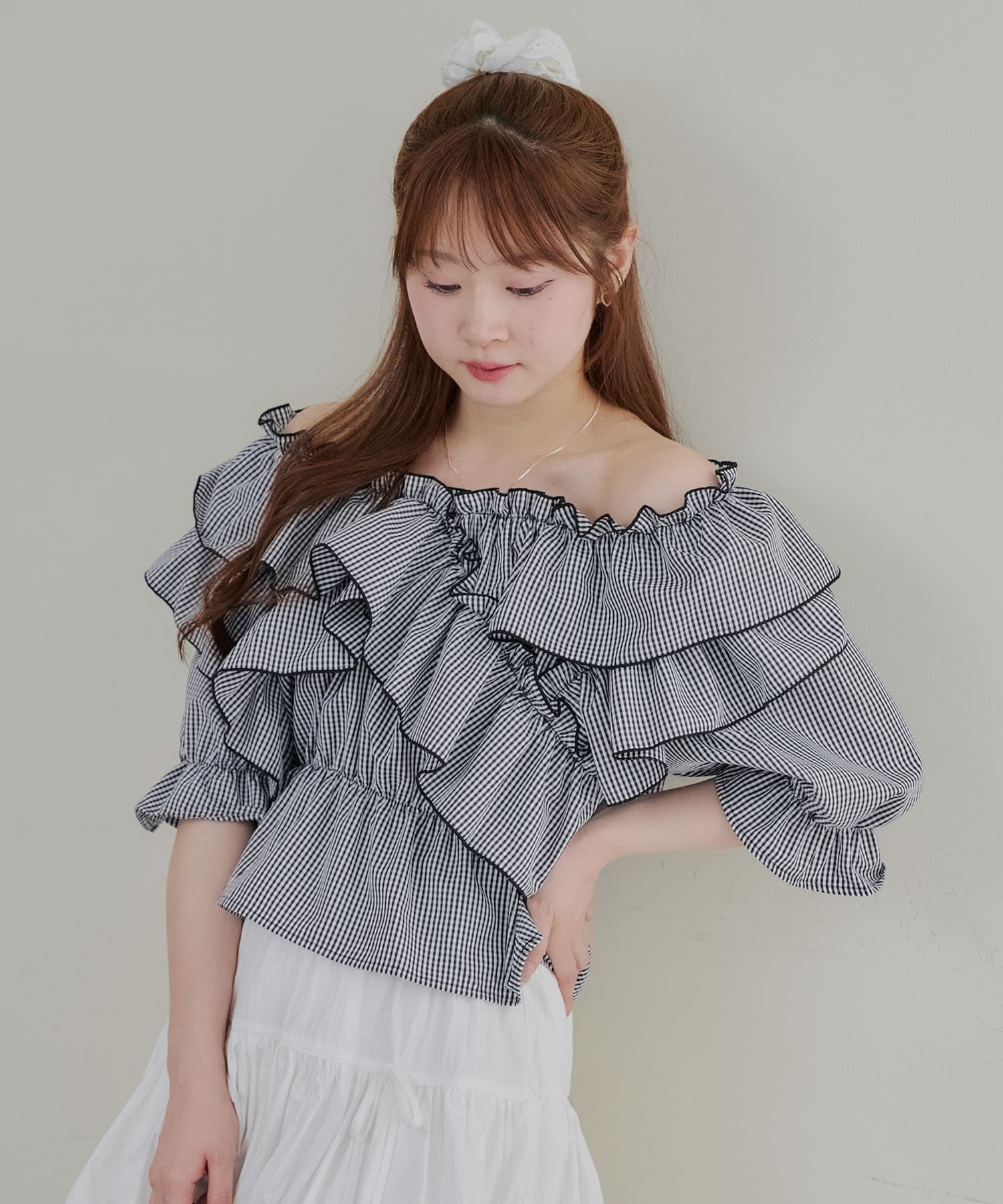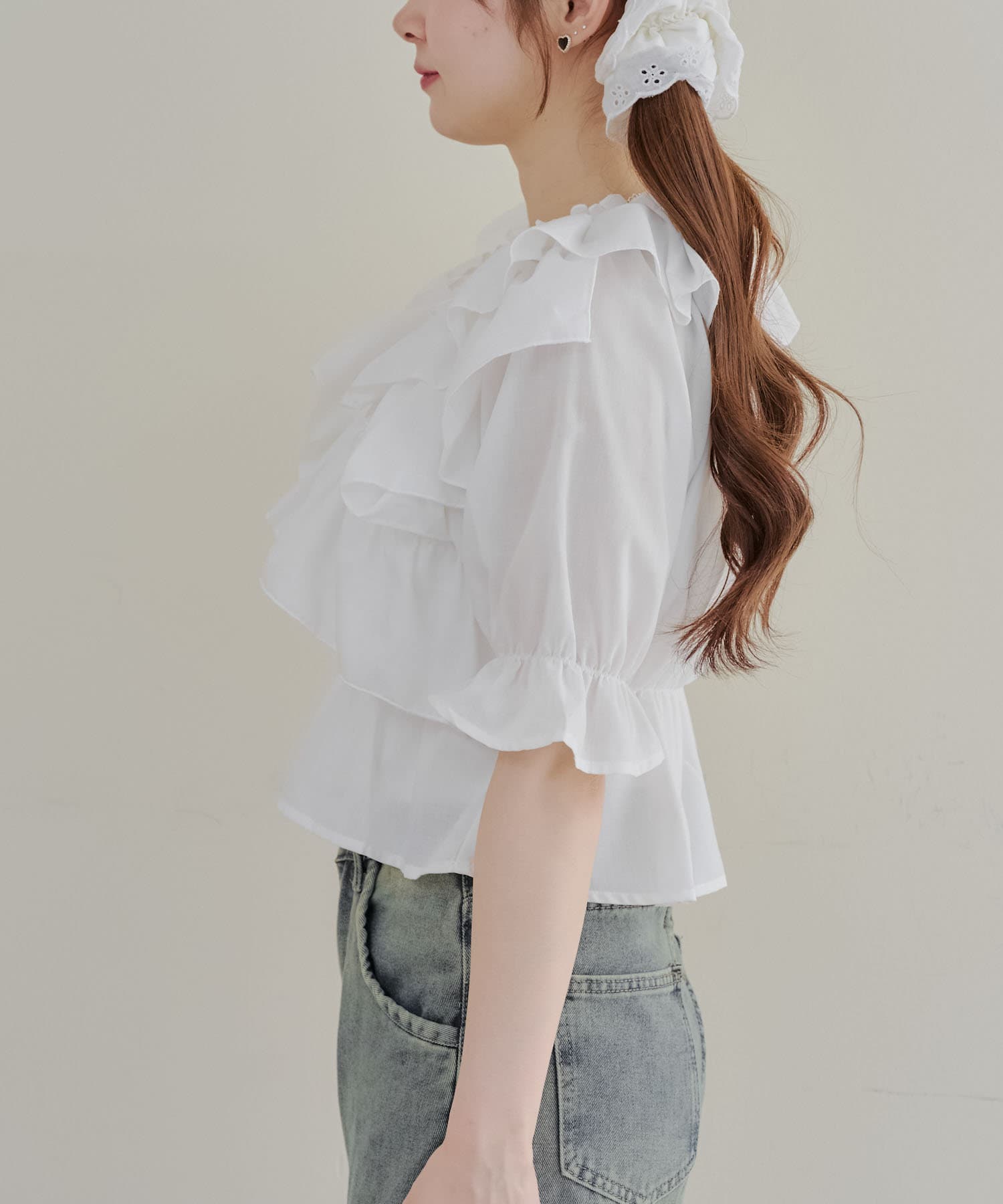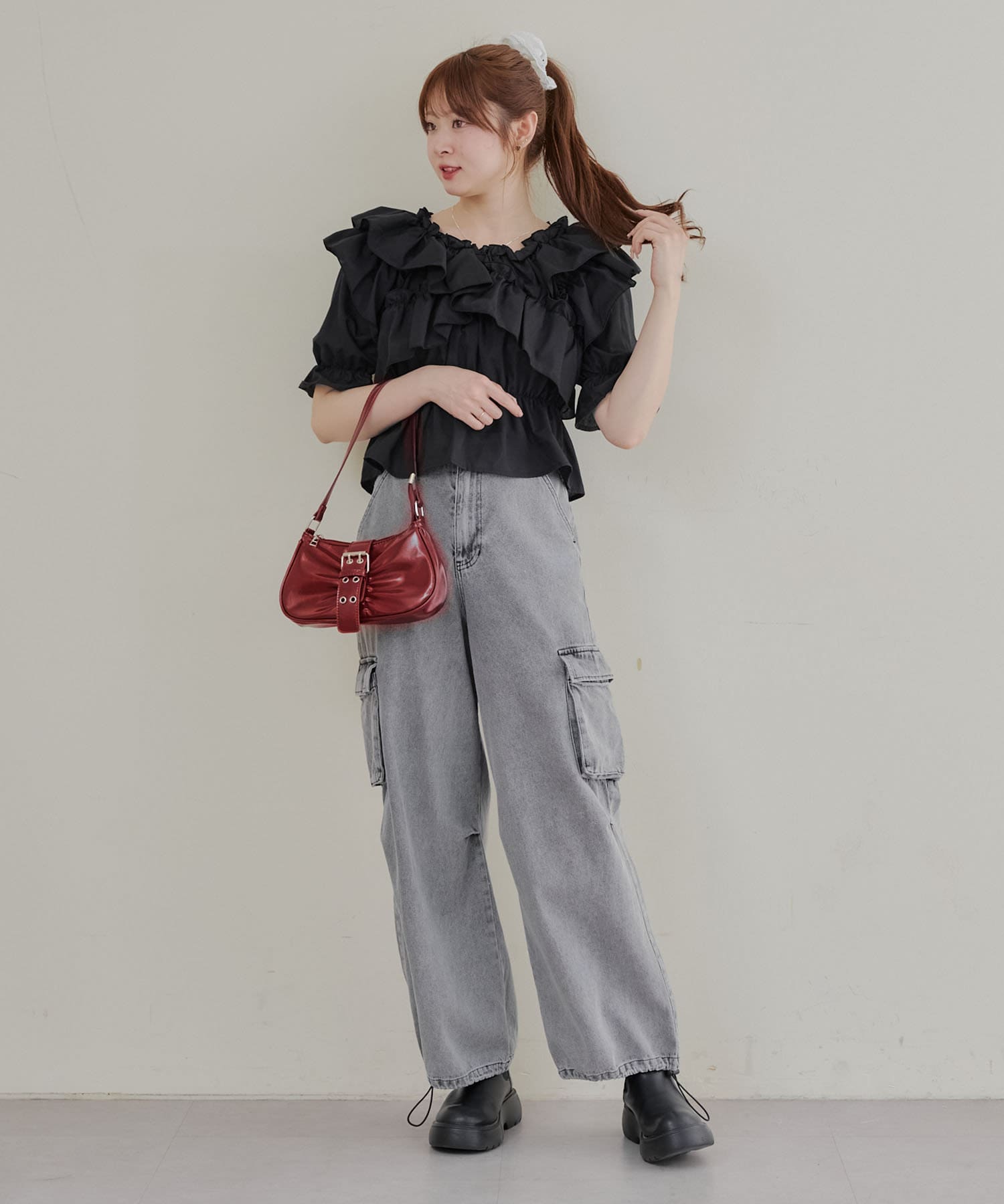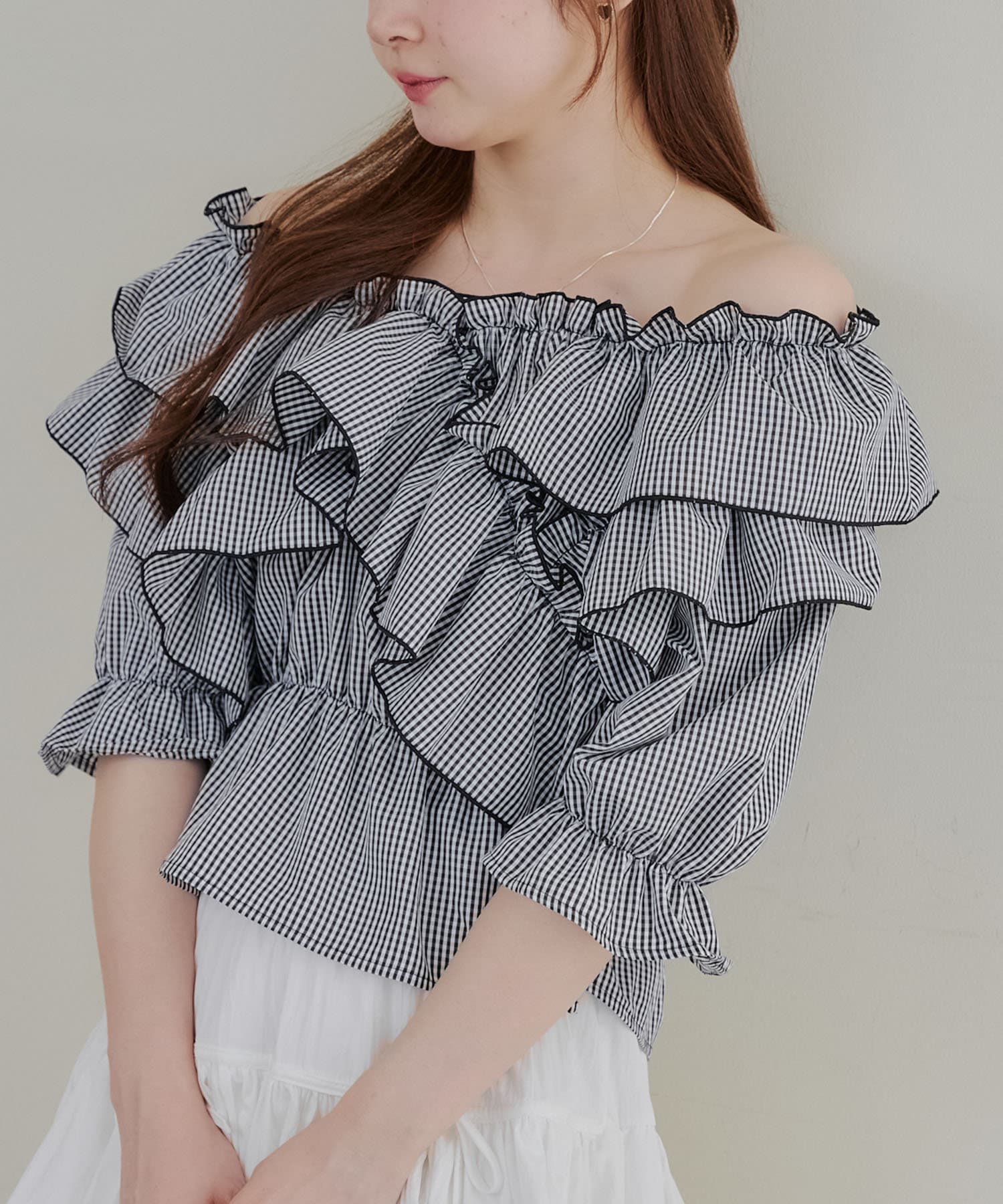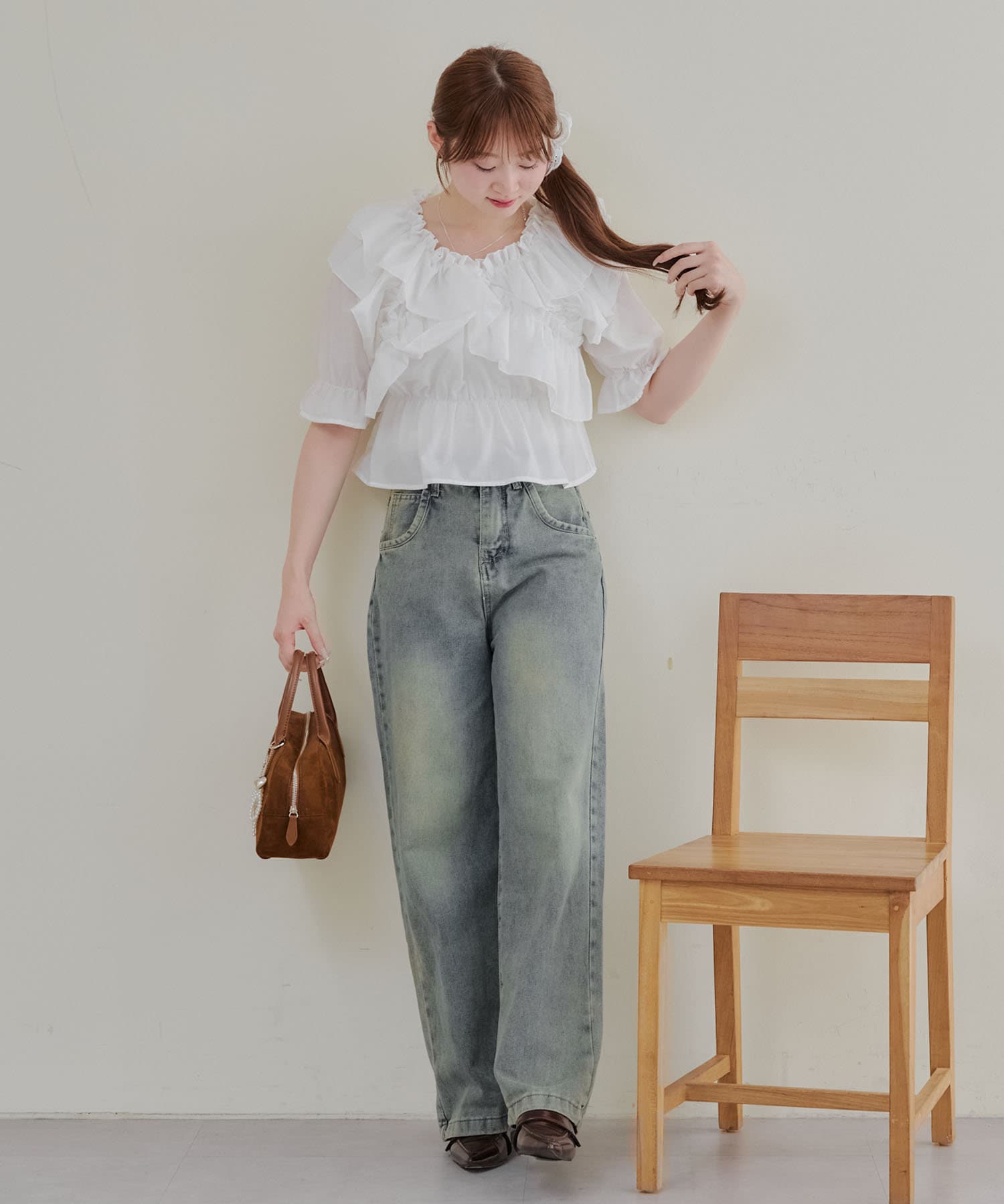 ・フリルは甘くなりすぎず、大人っぽい印象に仕上げています。