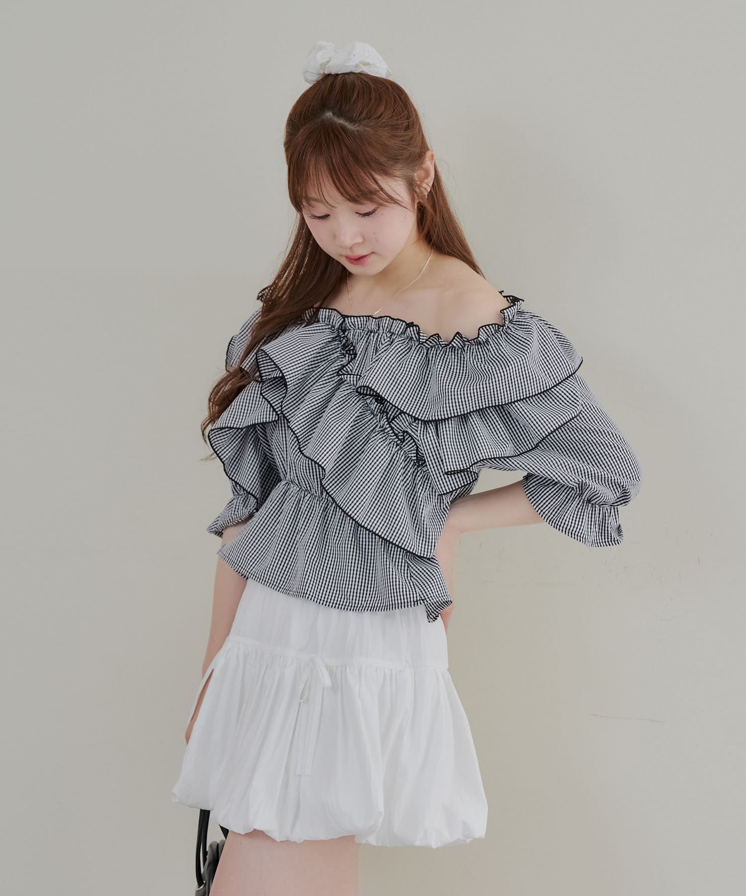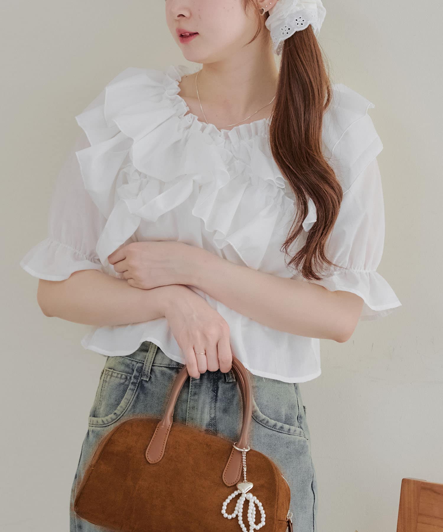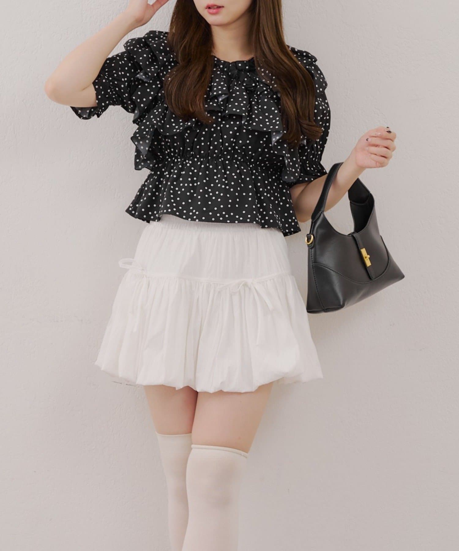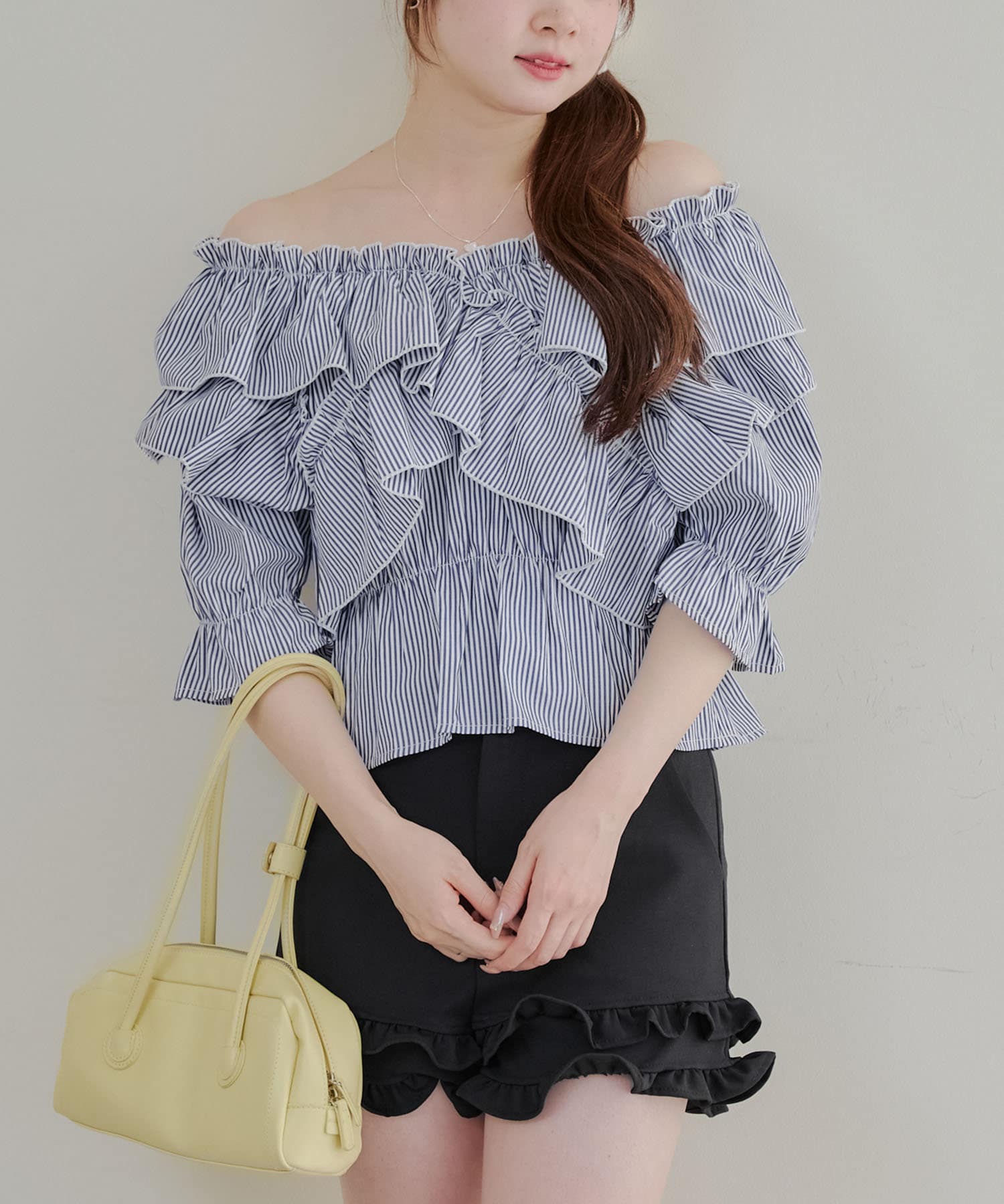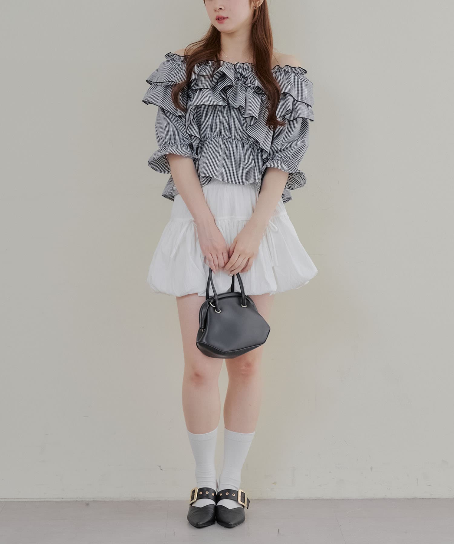 ・フリルは甘くなりすぎず、大人っぽい印象に仕上げています。