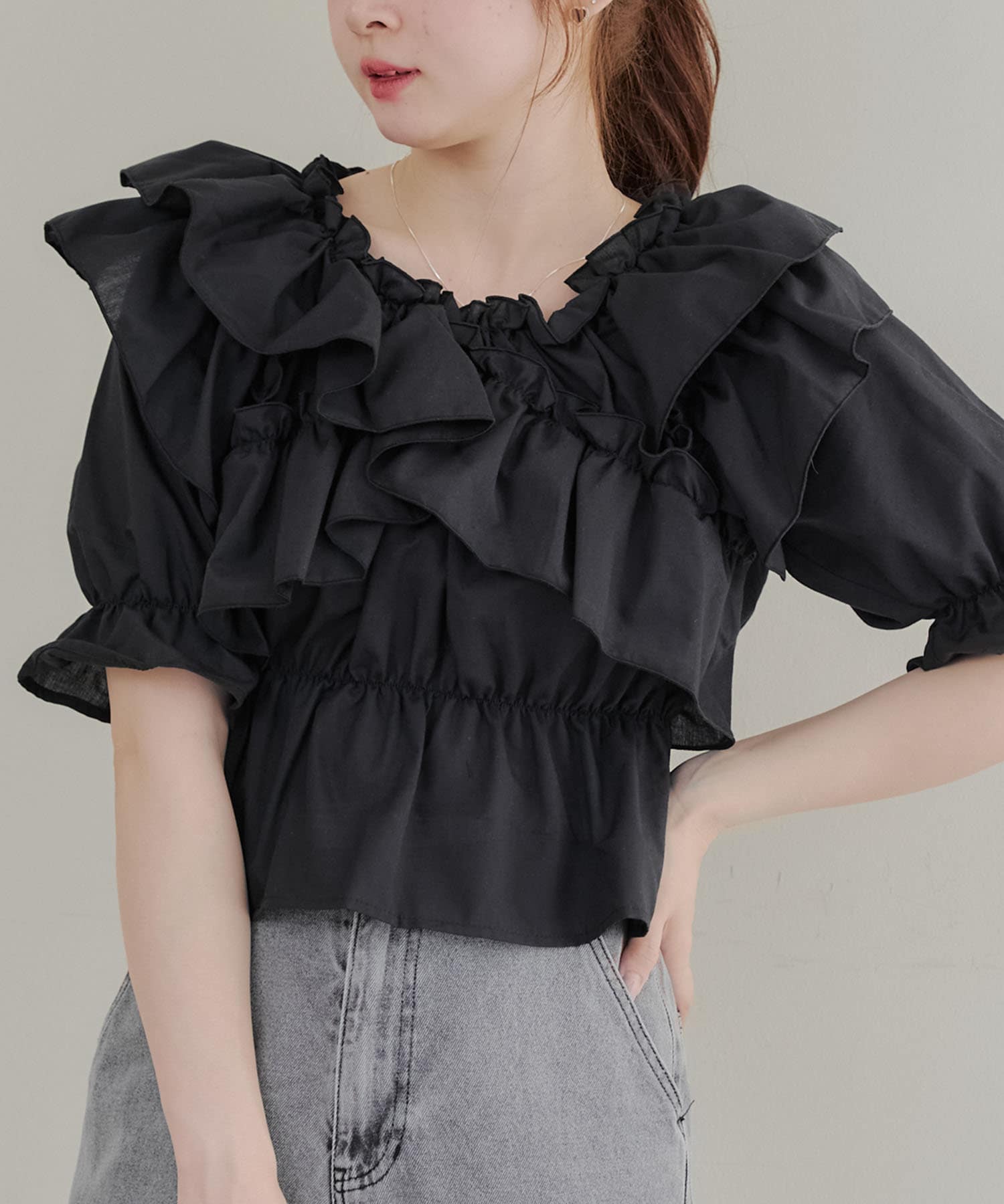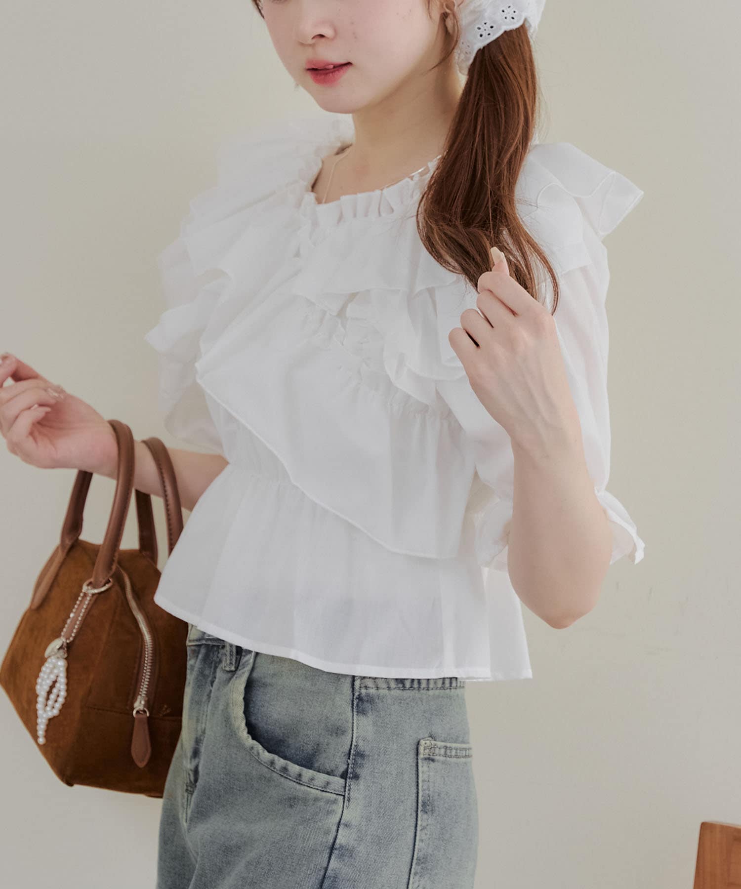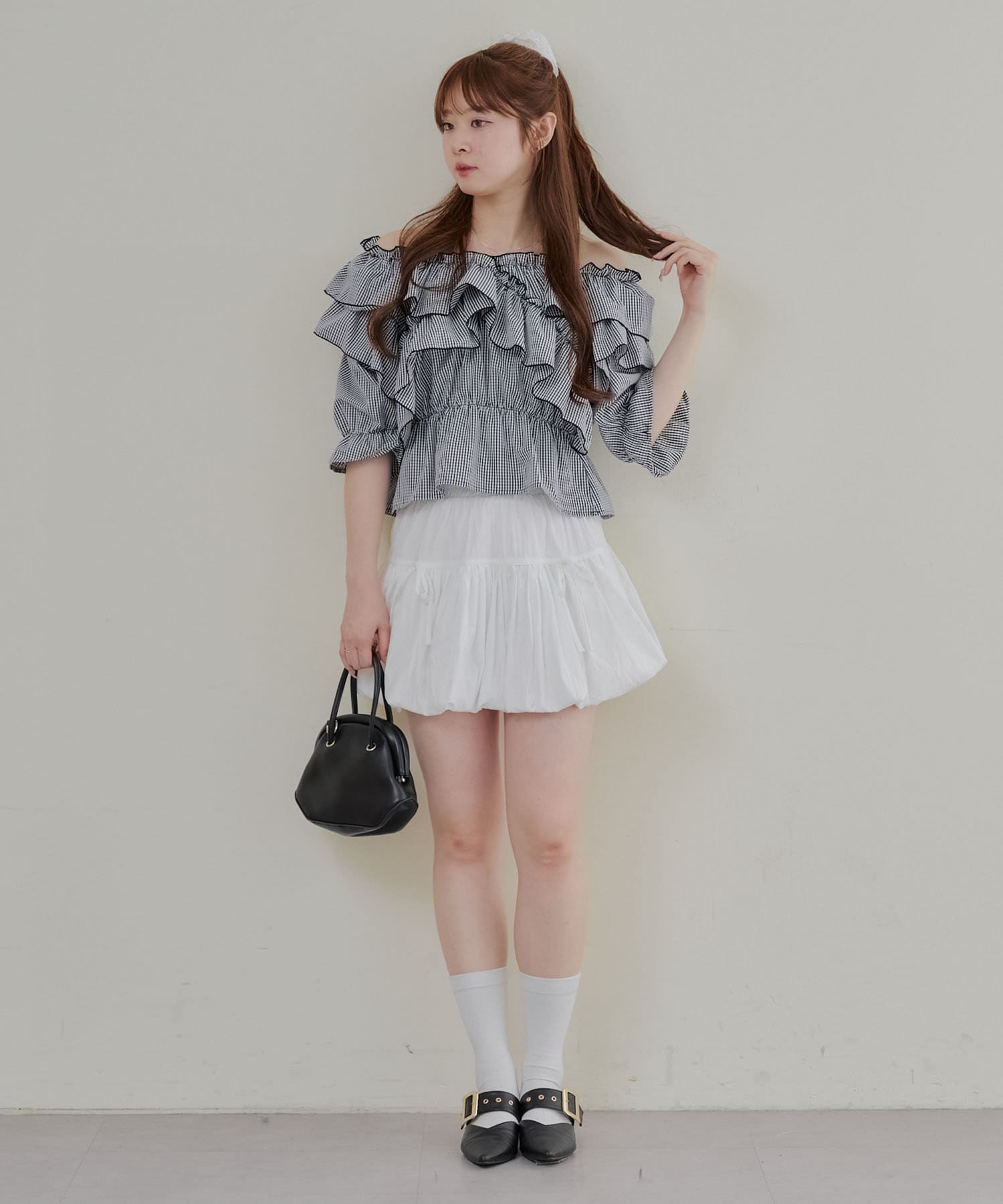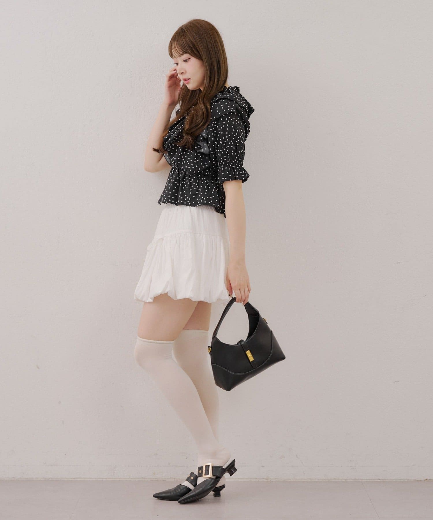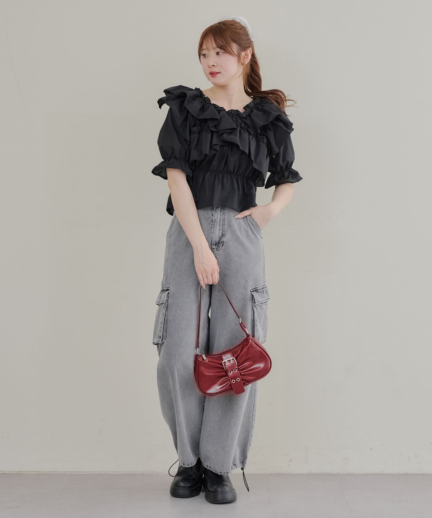 ・フリルは甘くなりすぎず、大人っぽい印象に仕上げています。