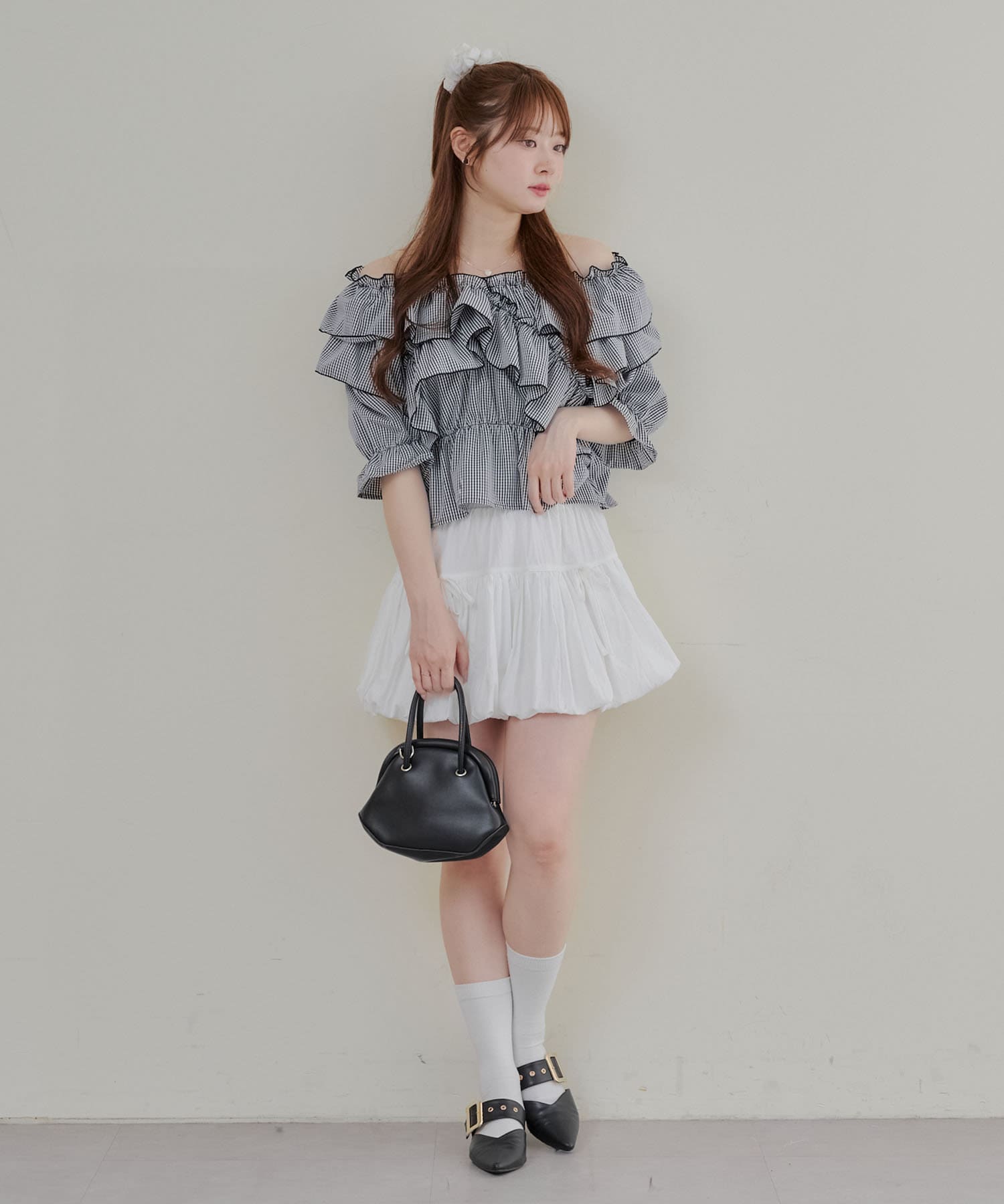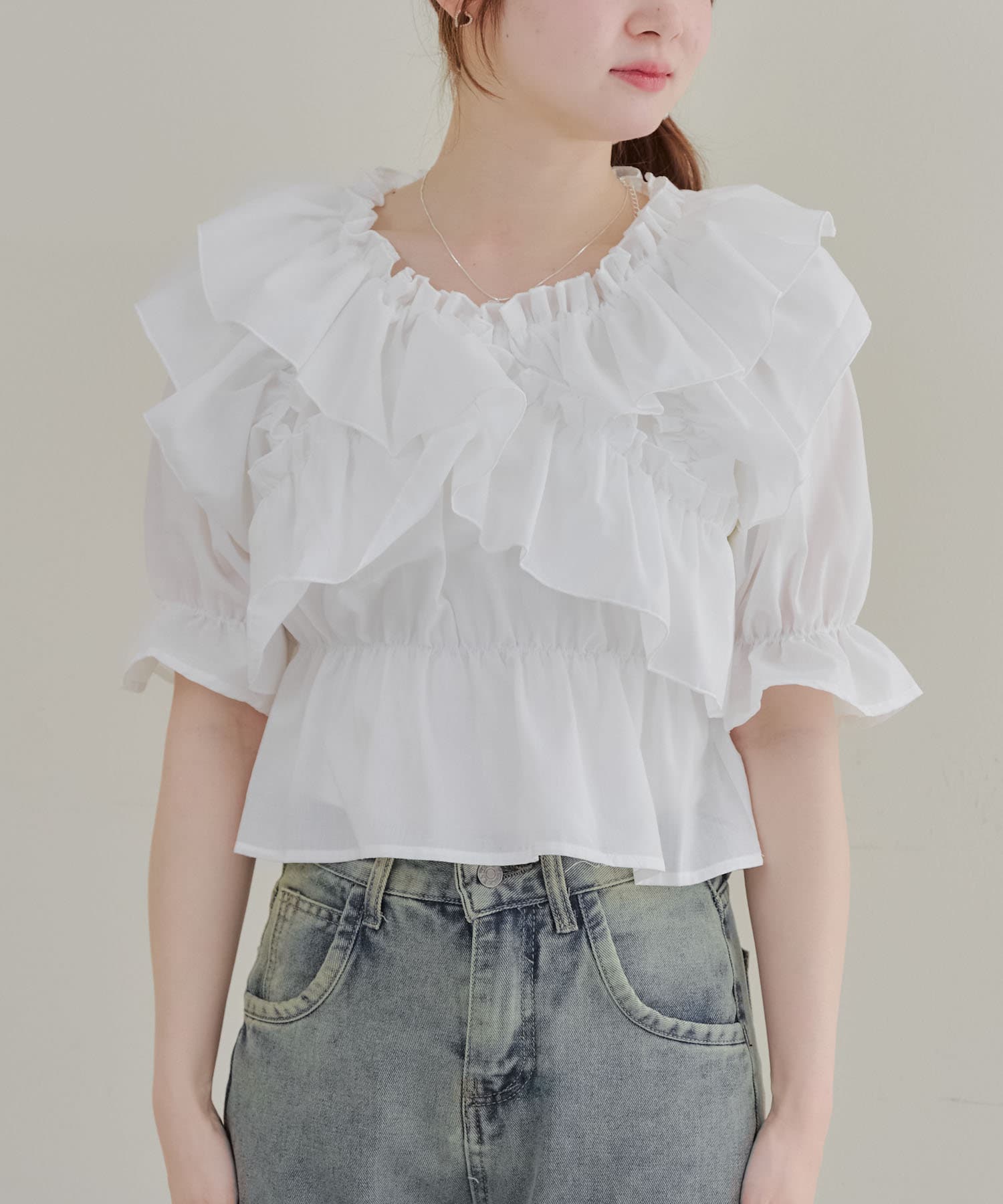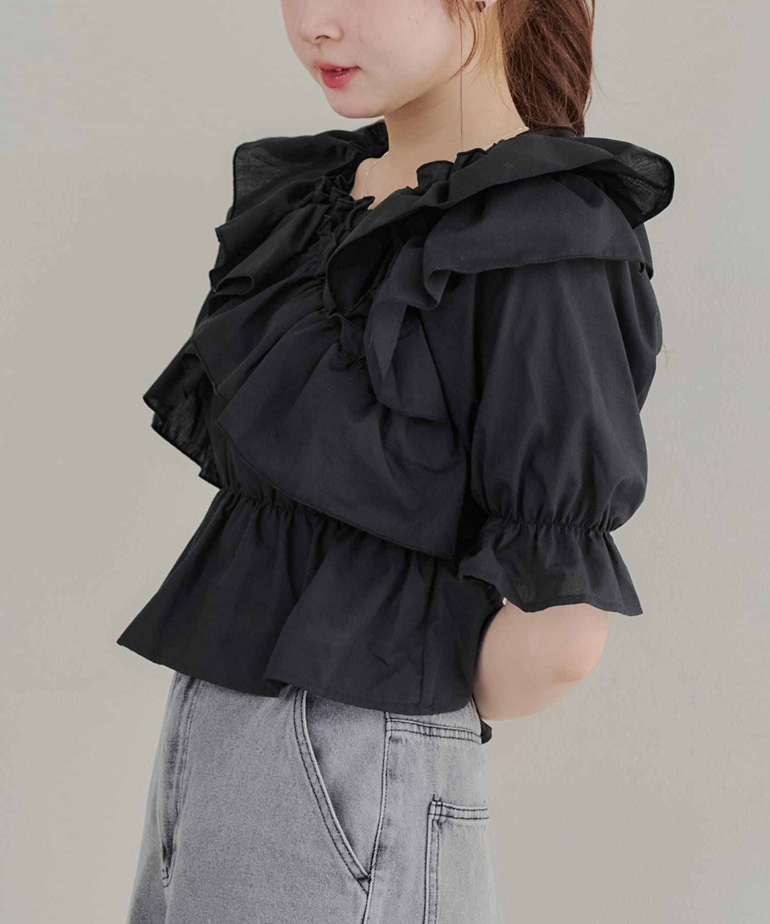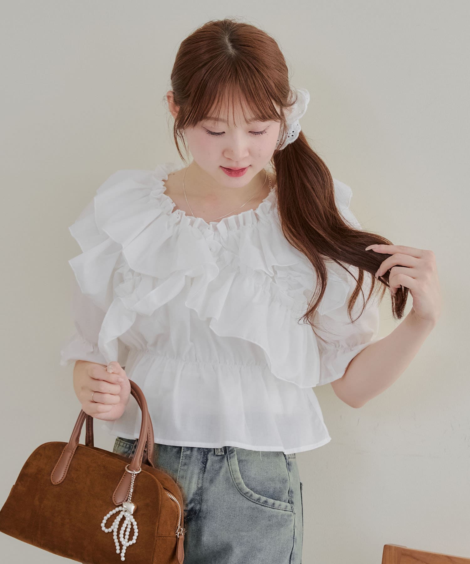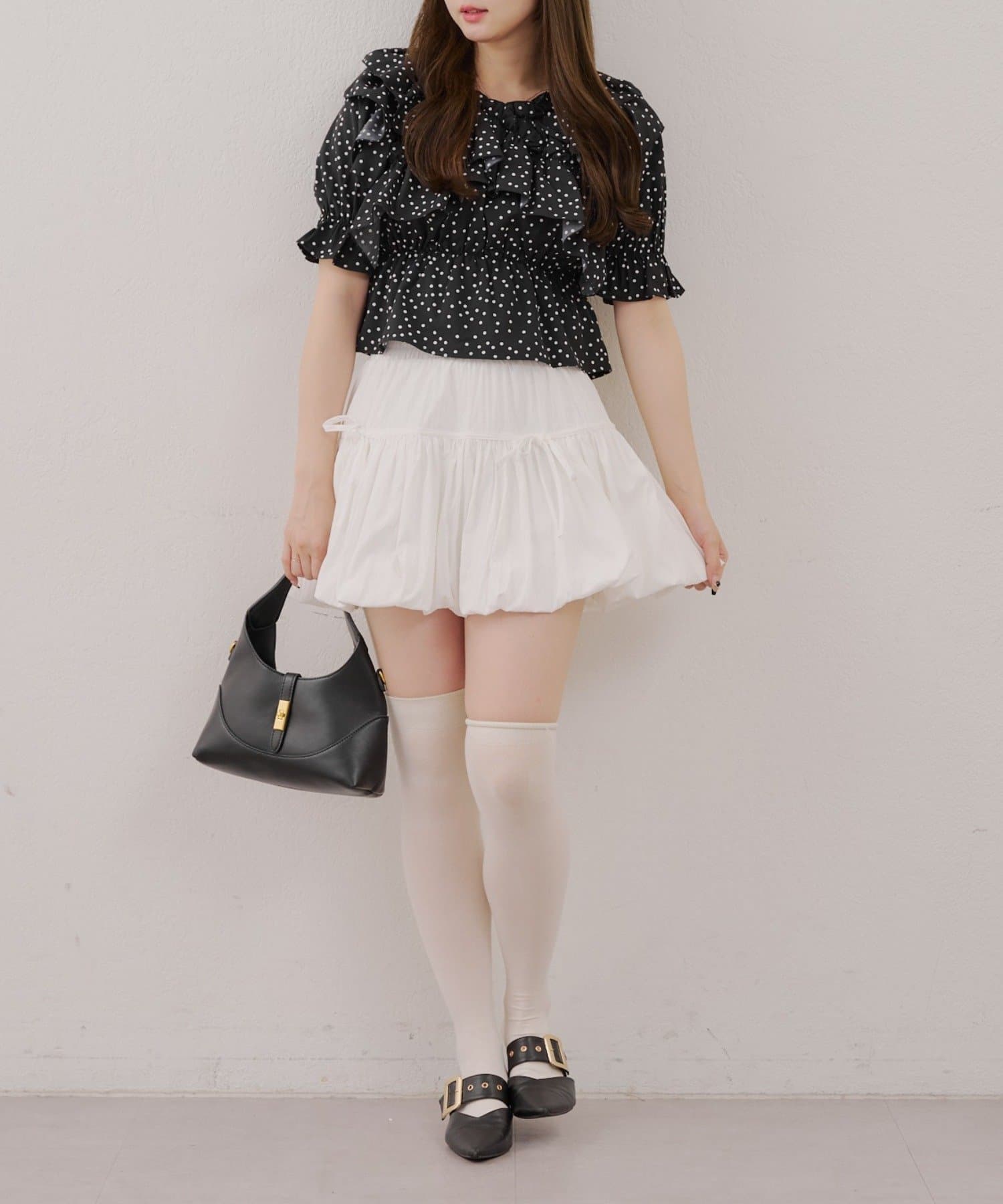 ・フリルは甘くなりすぎず、大人っぽい印象に仕上げています。