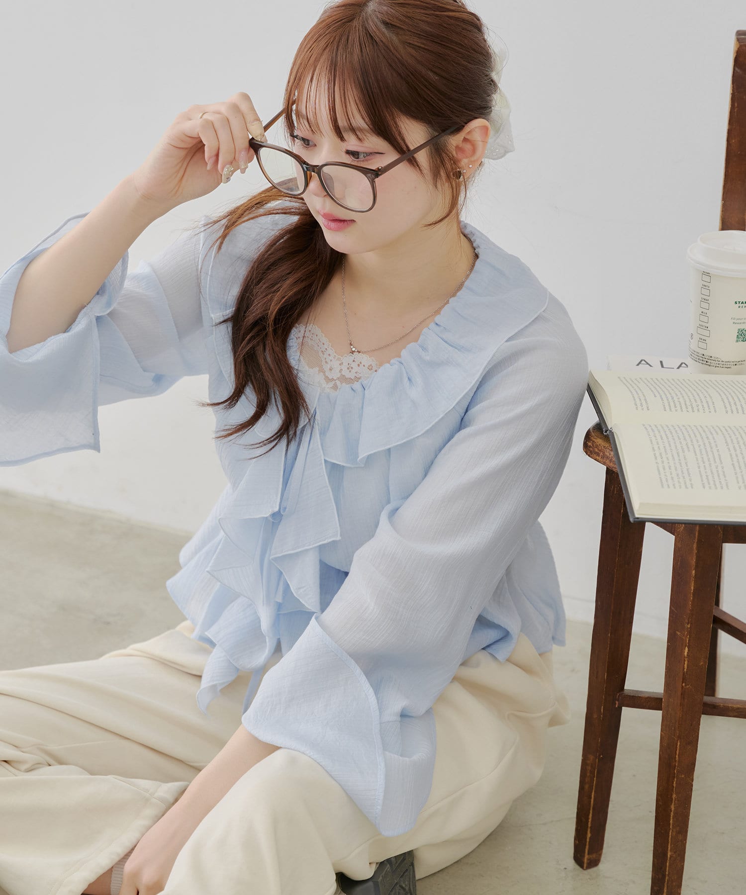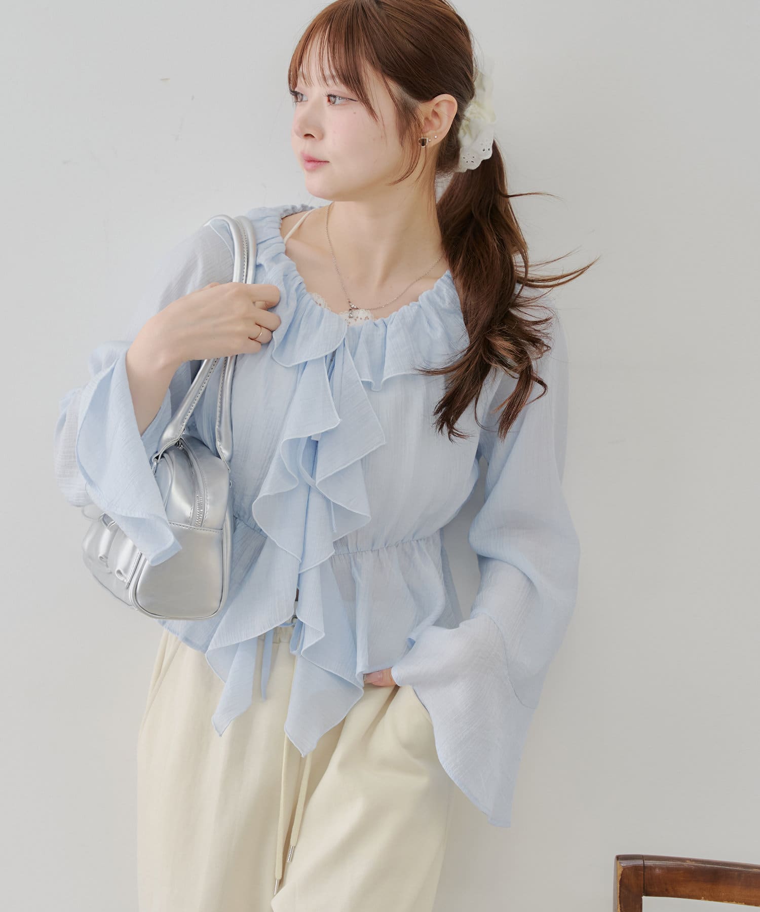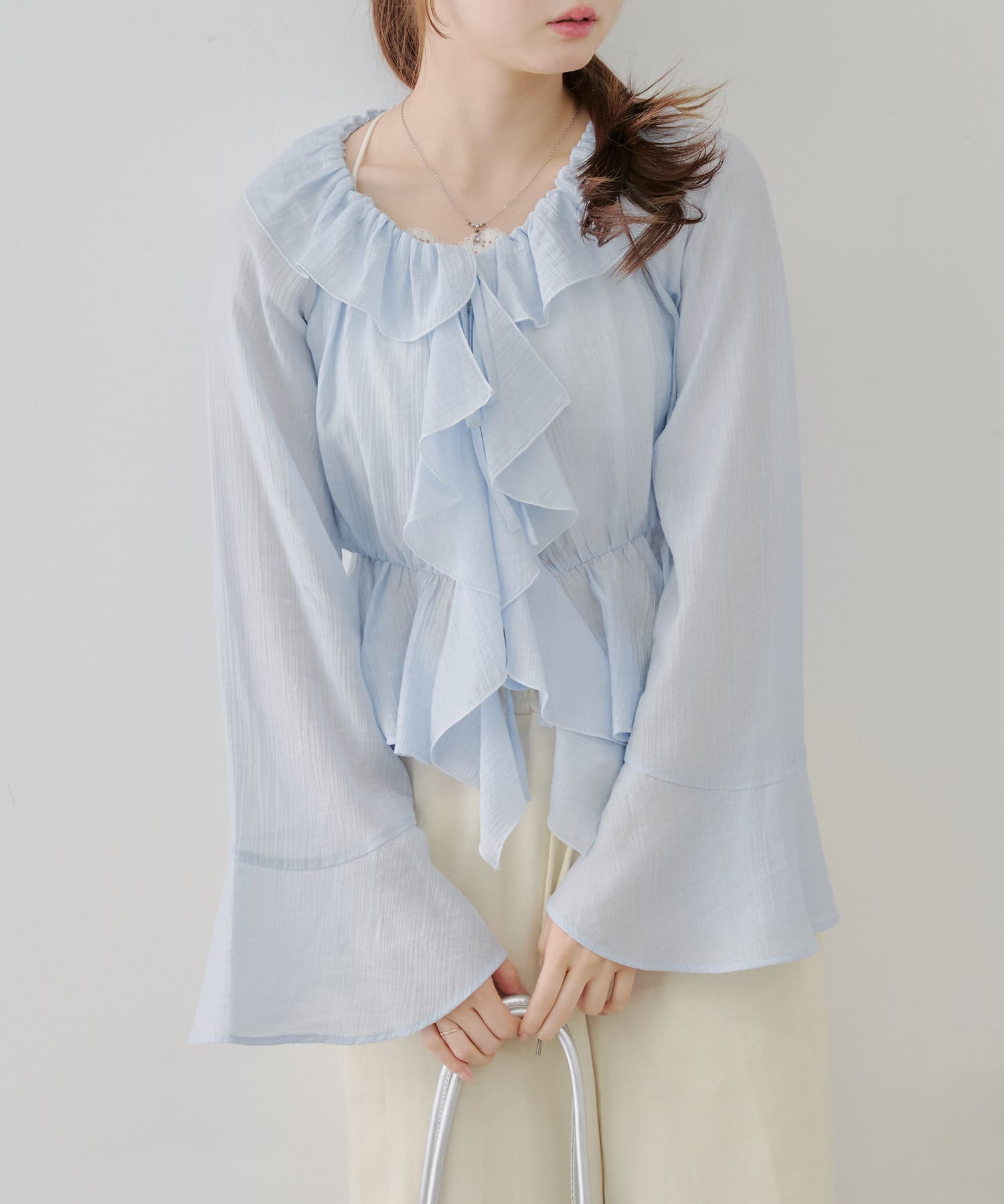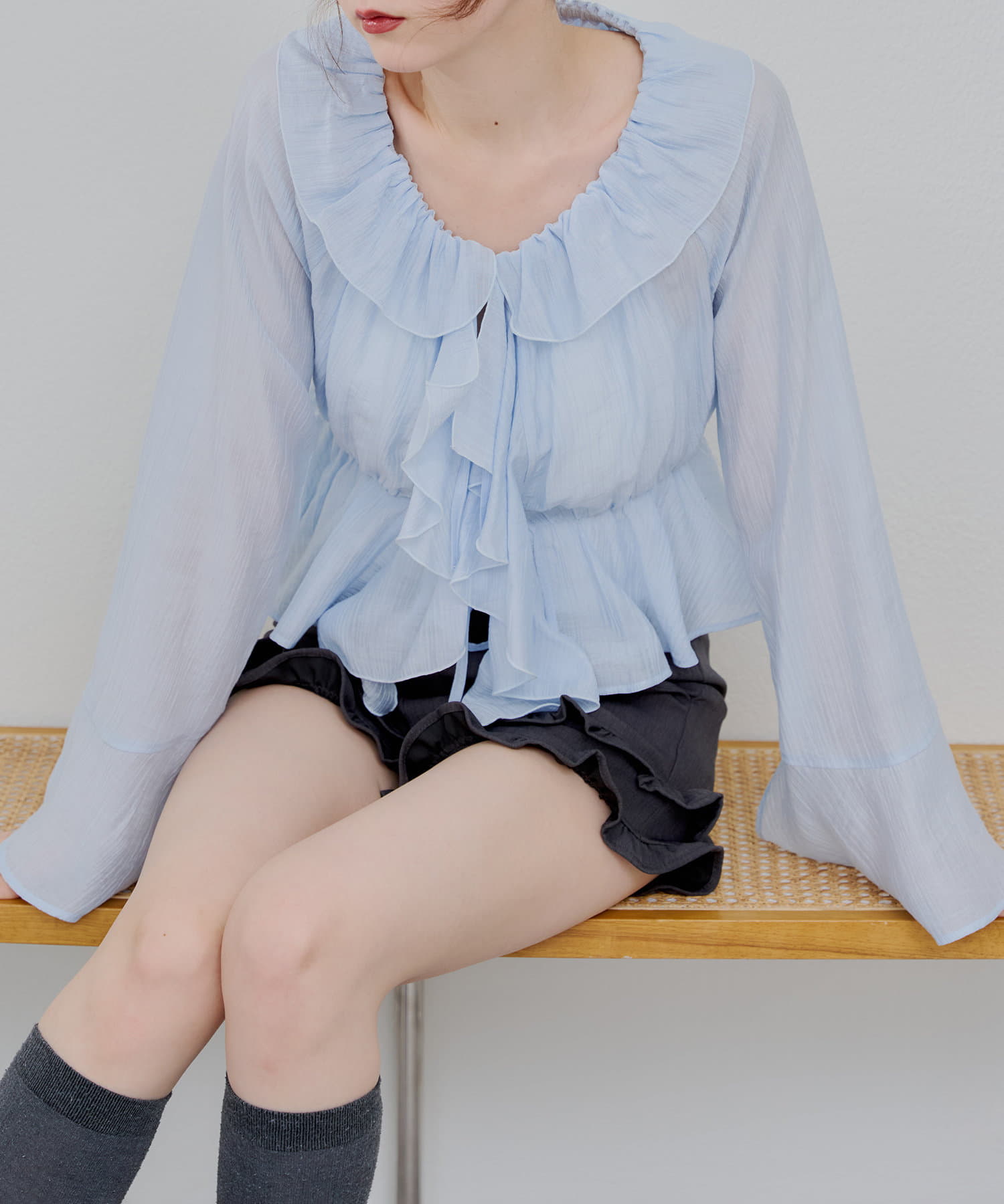 【@_chipi2xセレクト】楊柳シアーラッフルブラウス