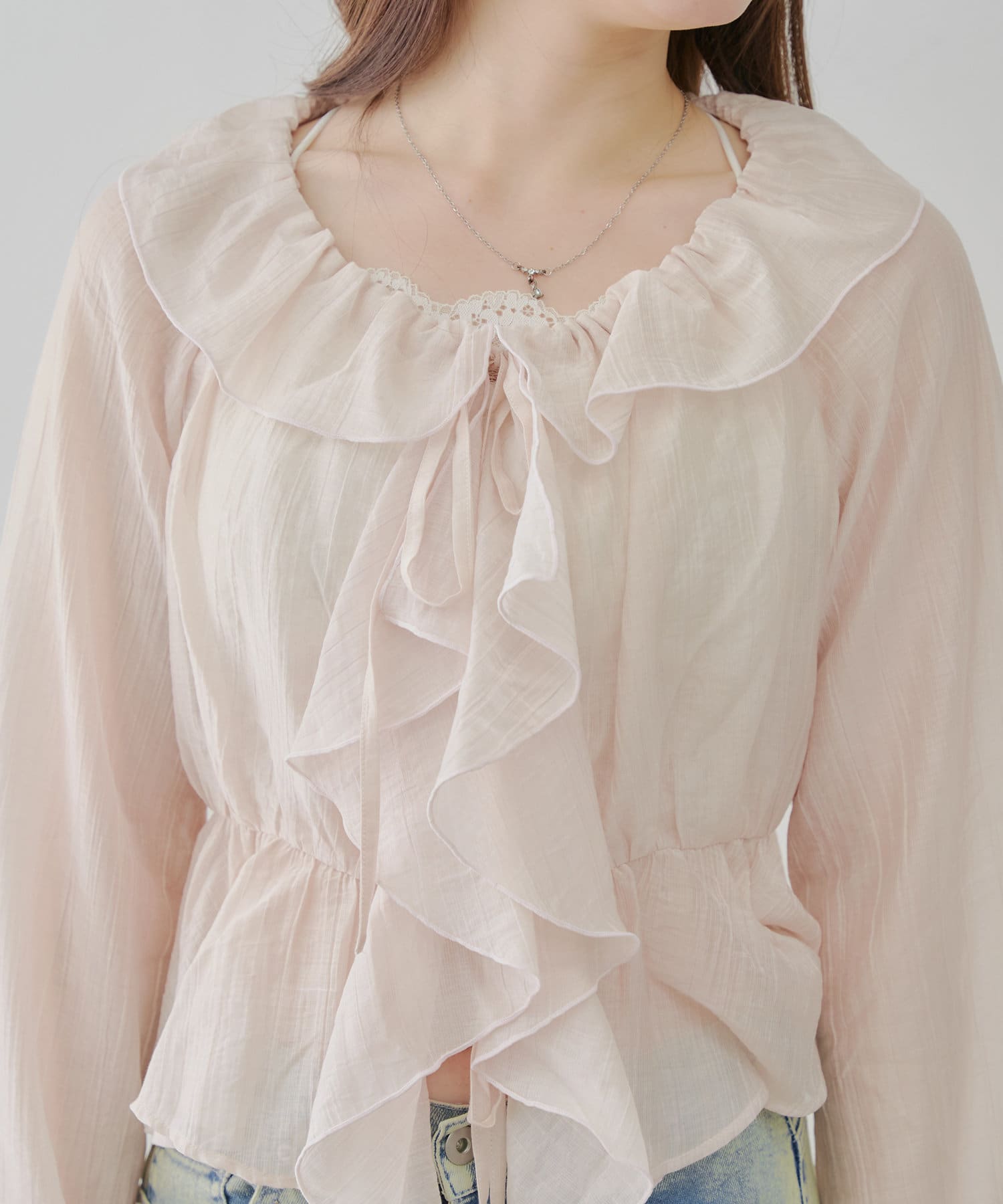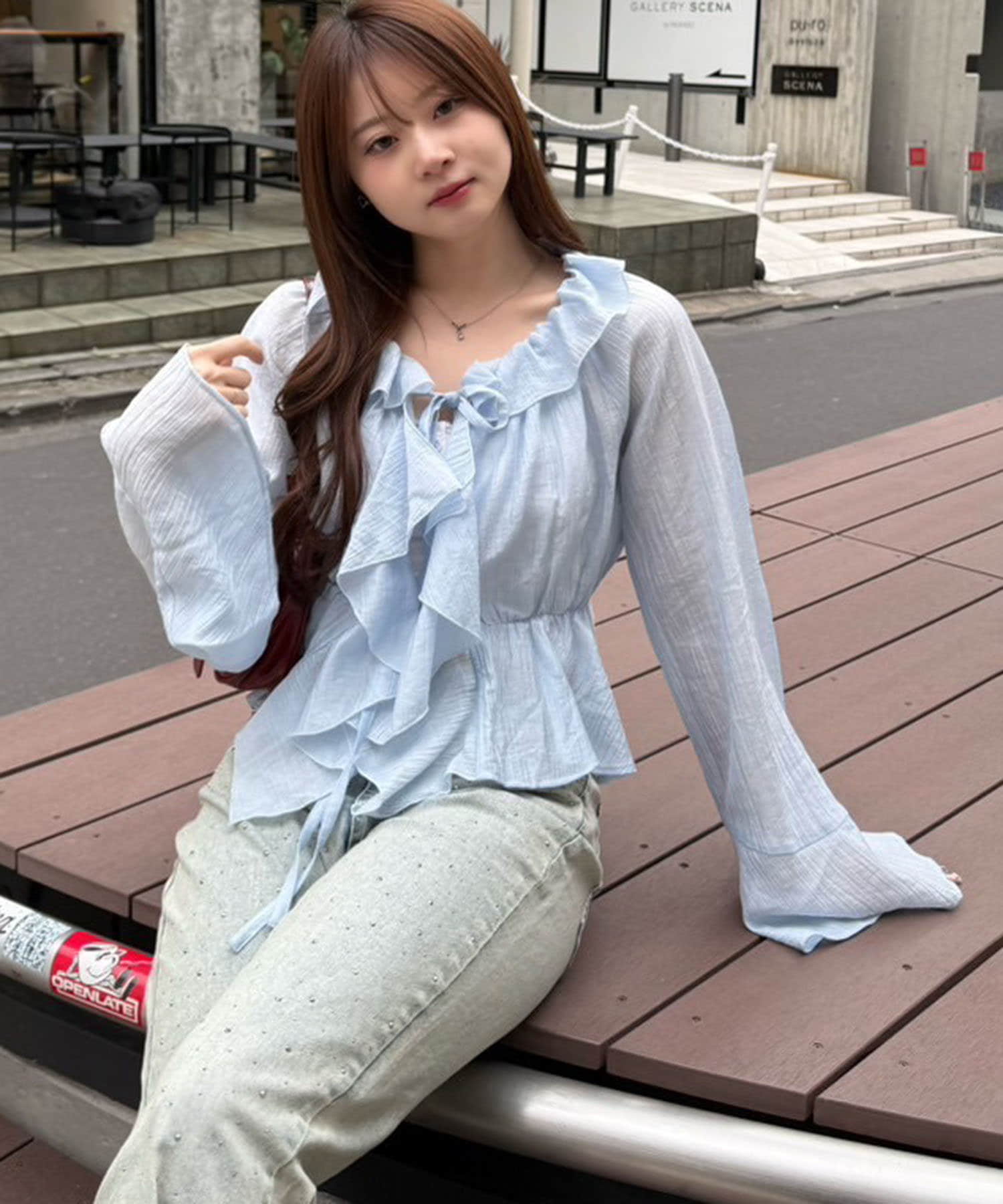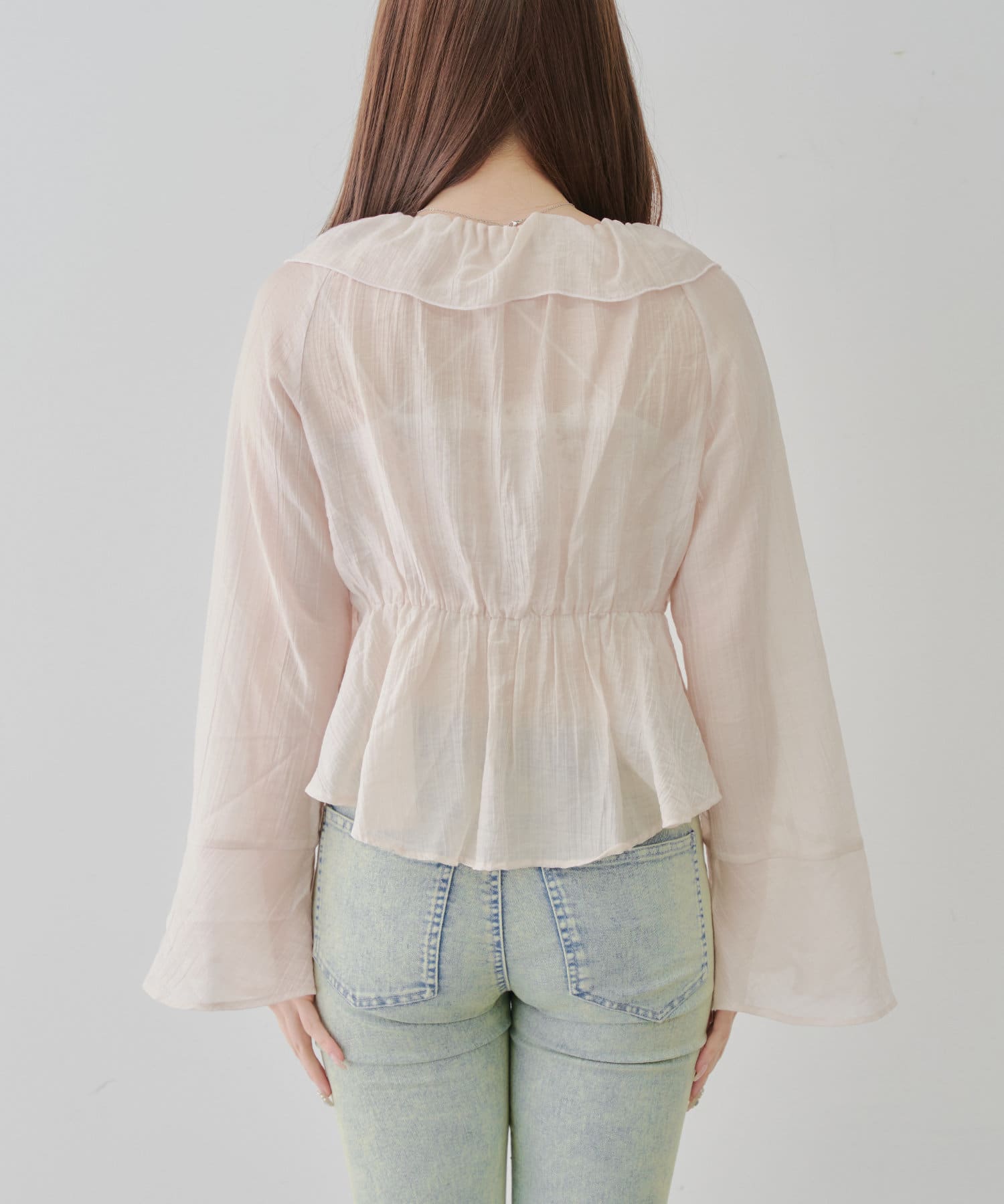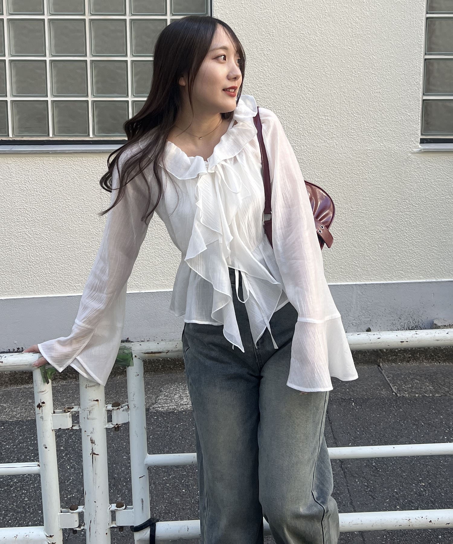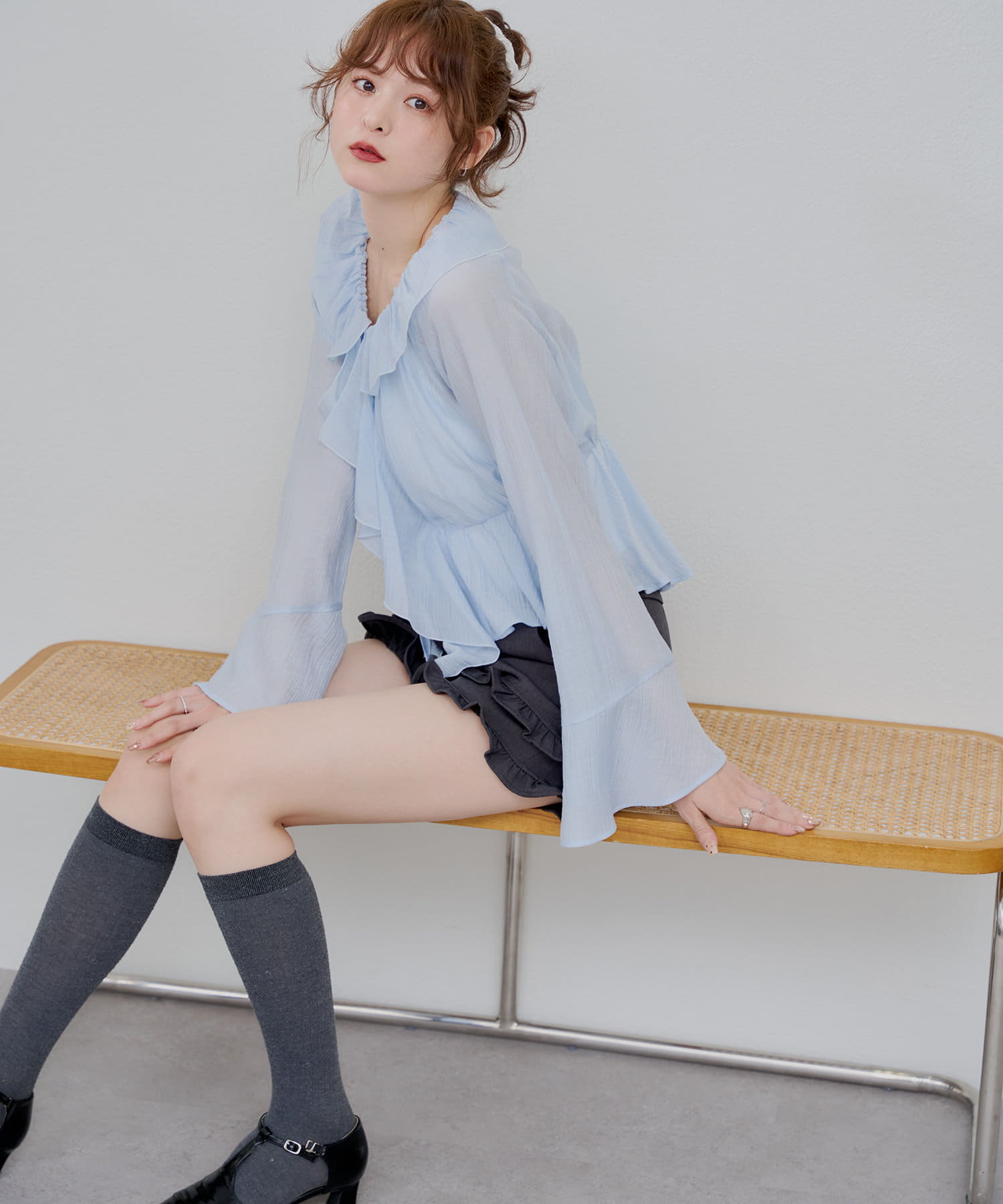 【@_chipi2xセレクト】楊柳シアーラッフルブラウス