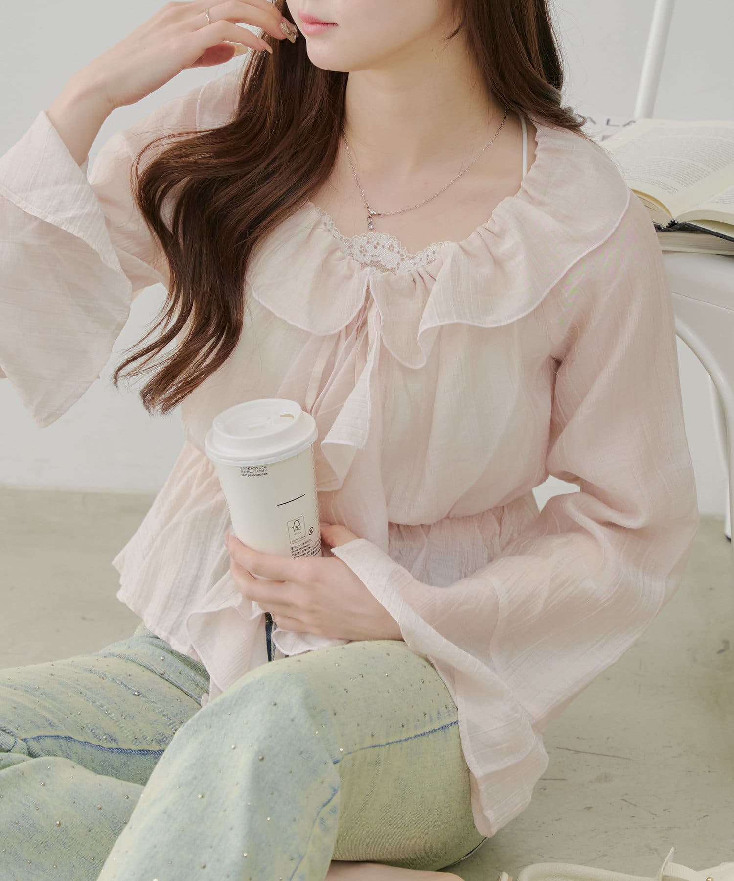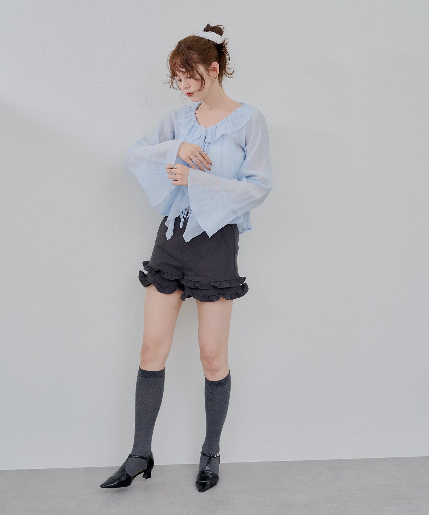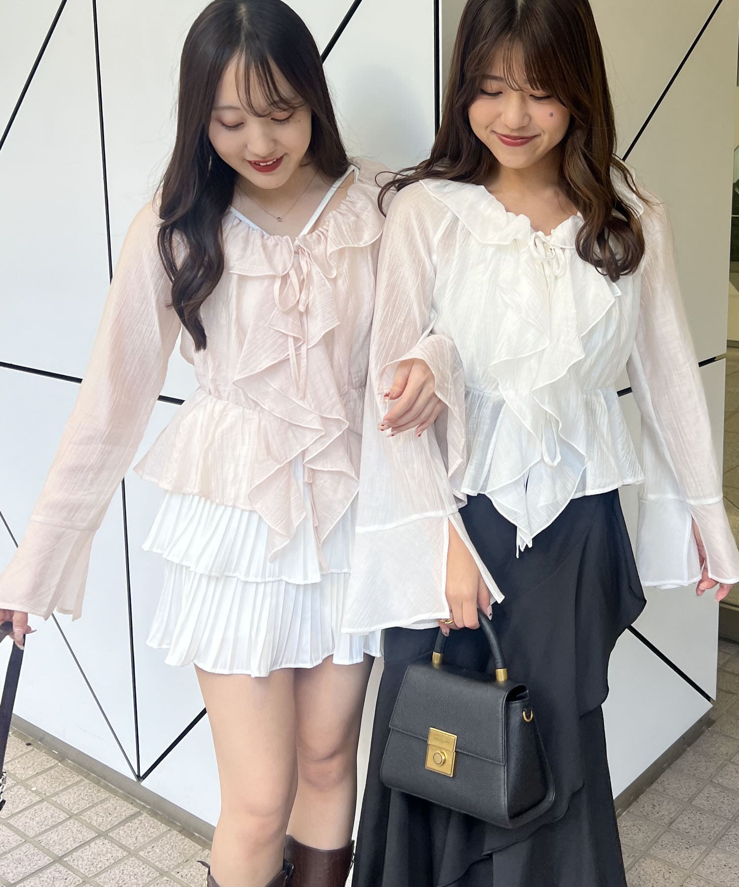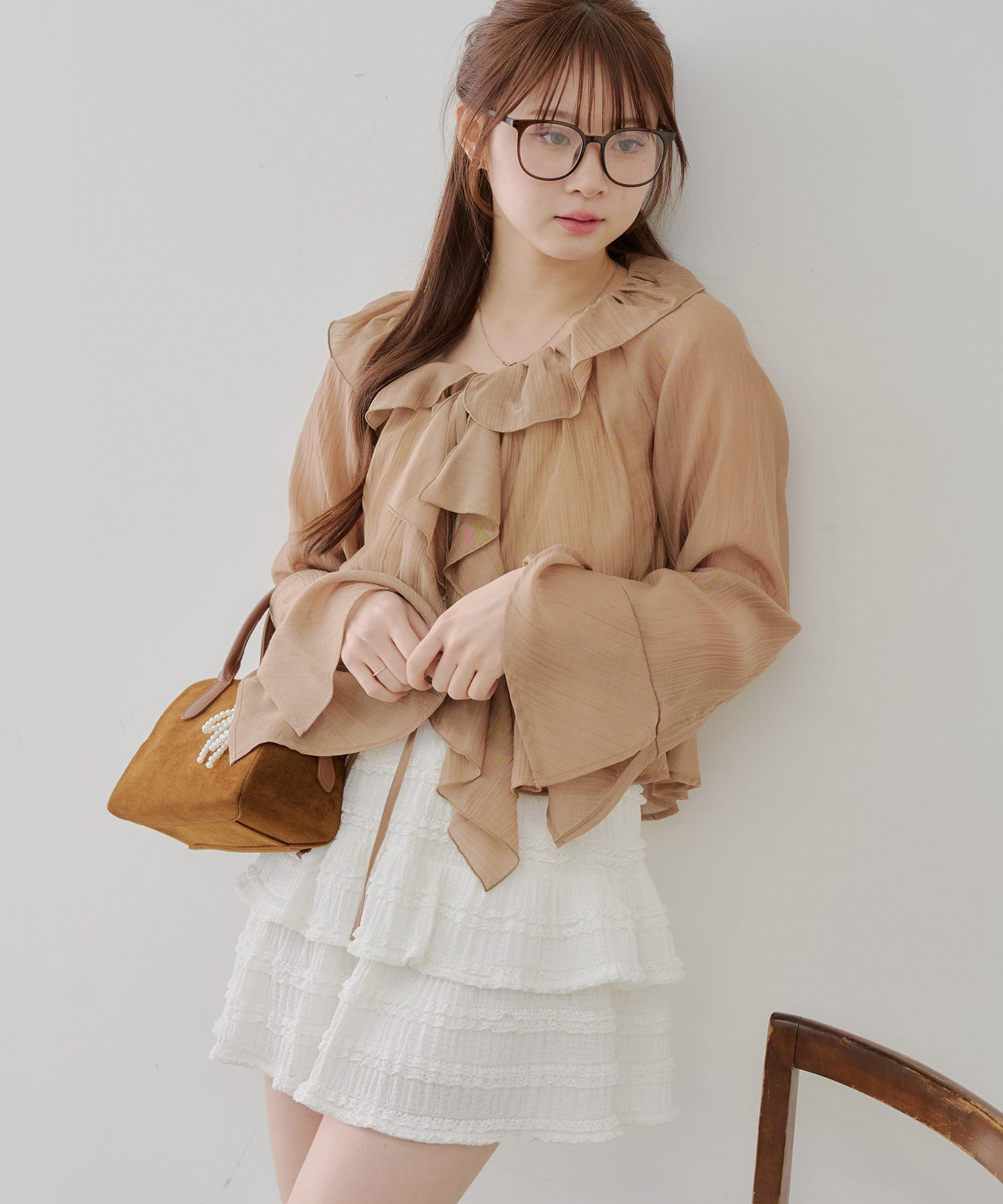 【@_chipi2xセレクト】楊柳シアーラッフルブラウス