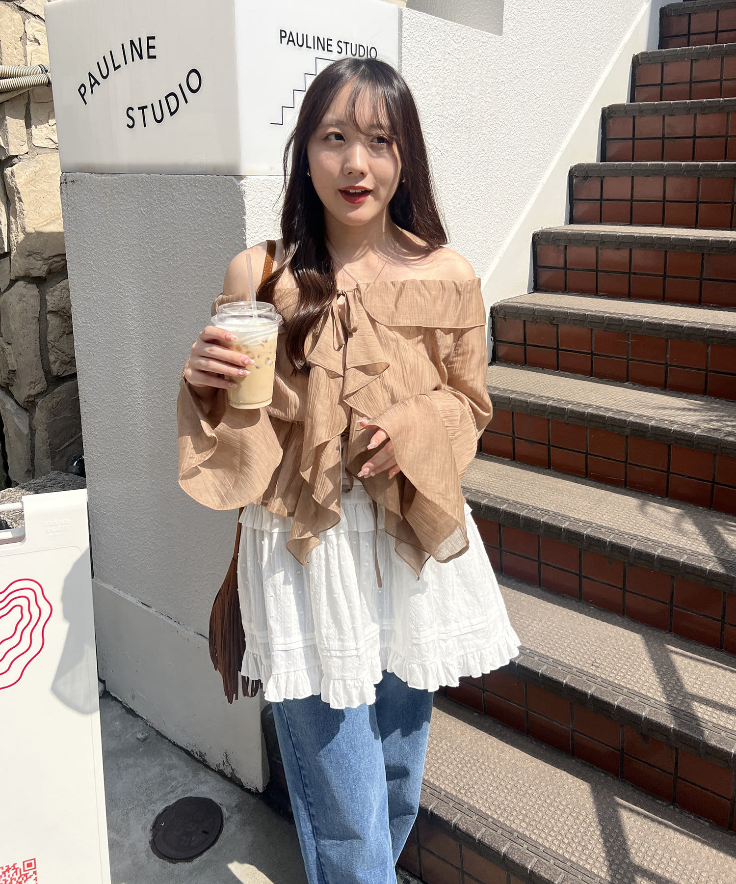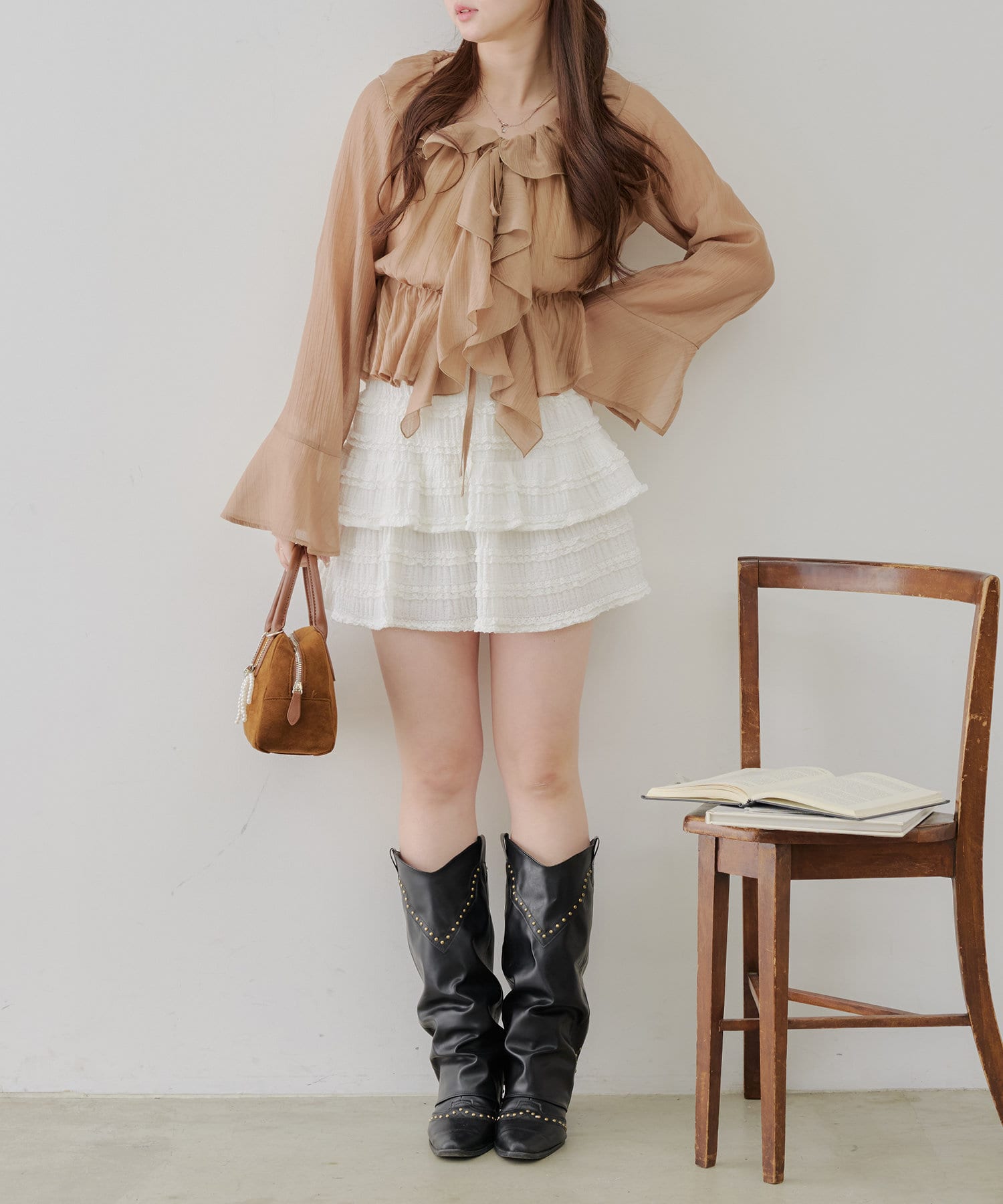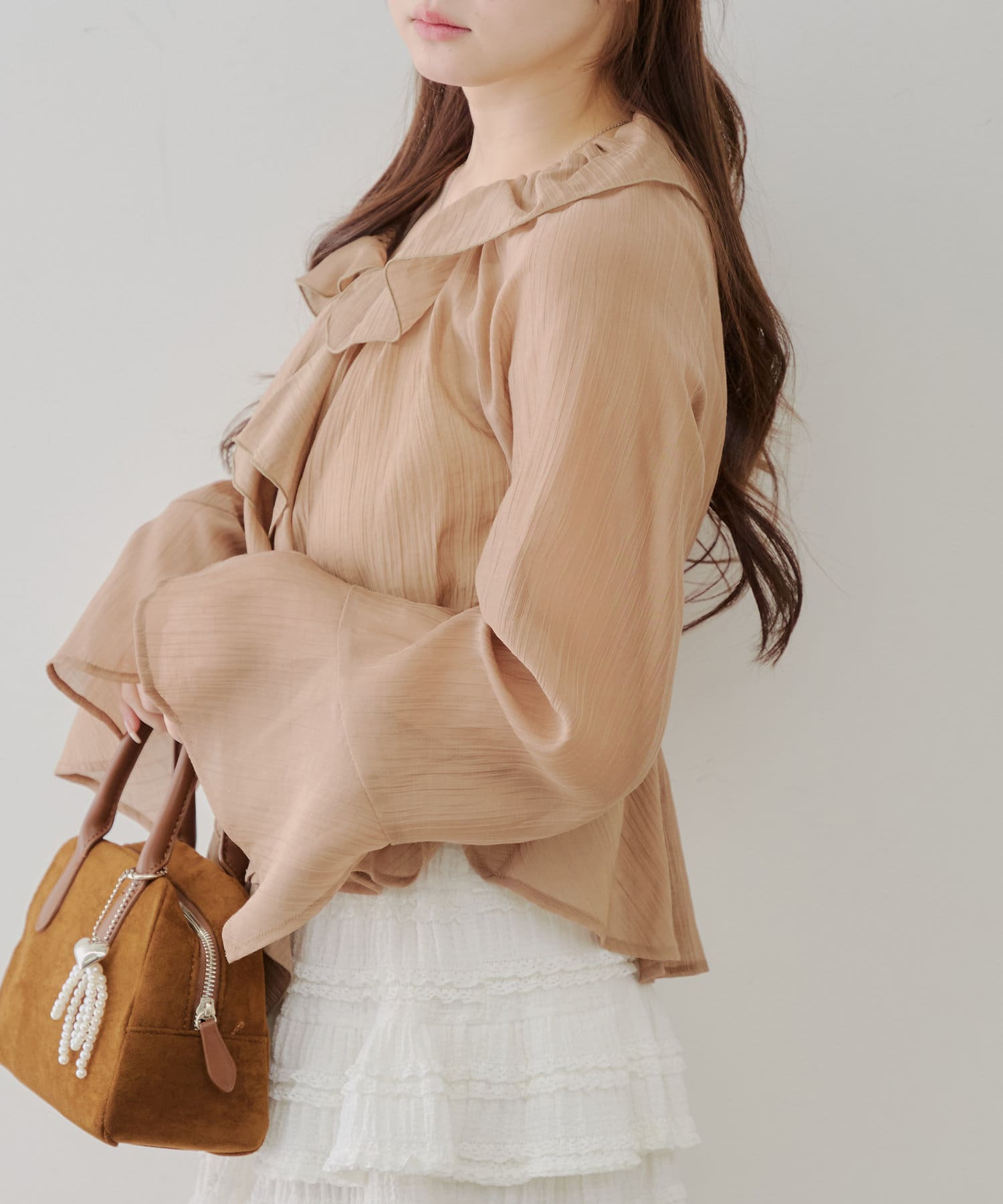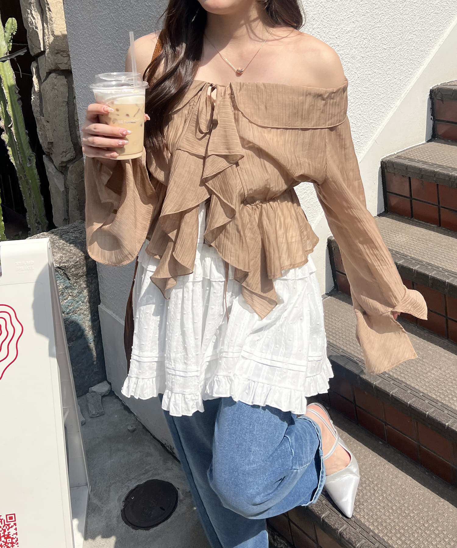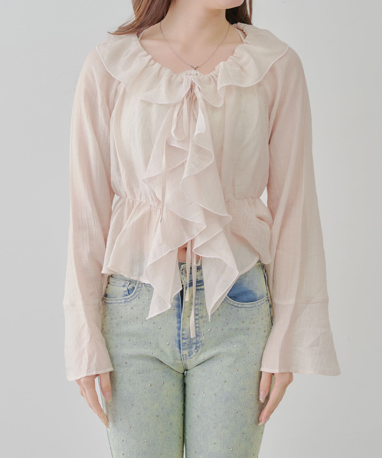【@_chipi2xセレクト】楊柳シアーラッフルブラウス