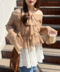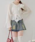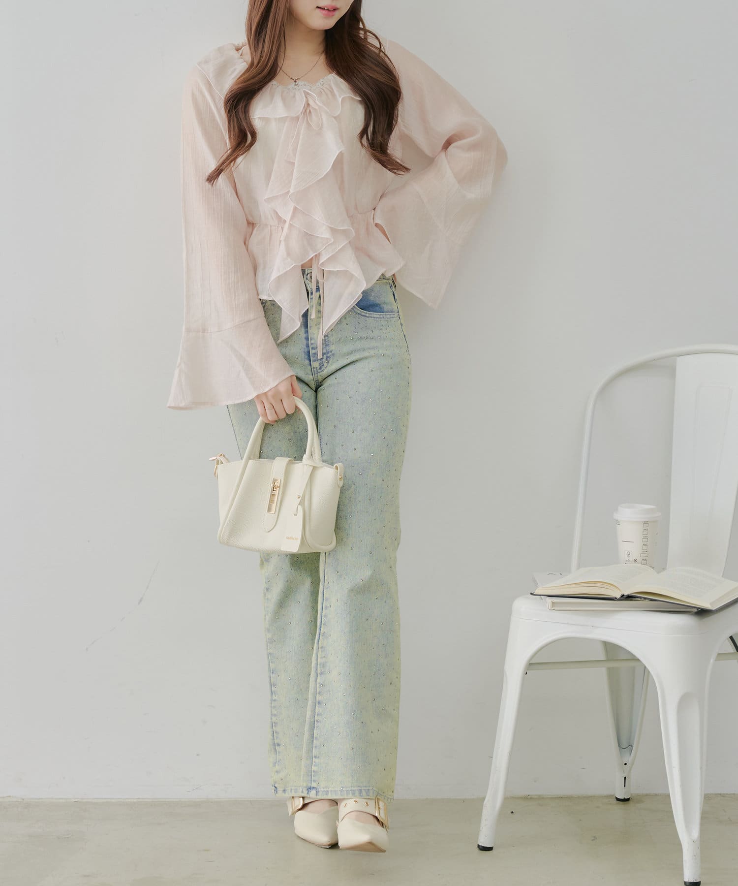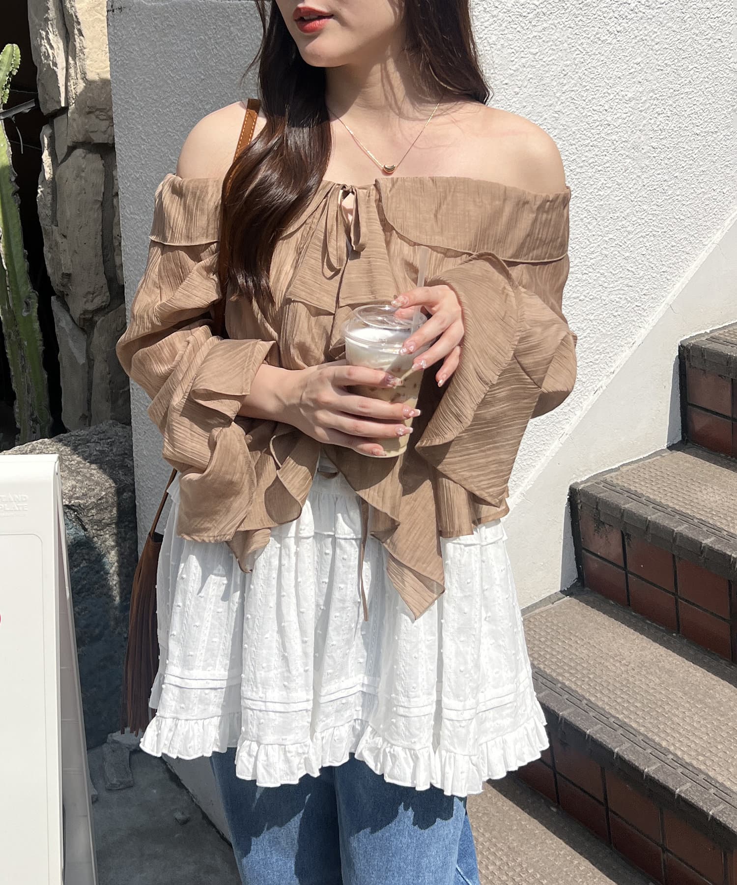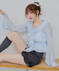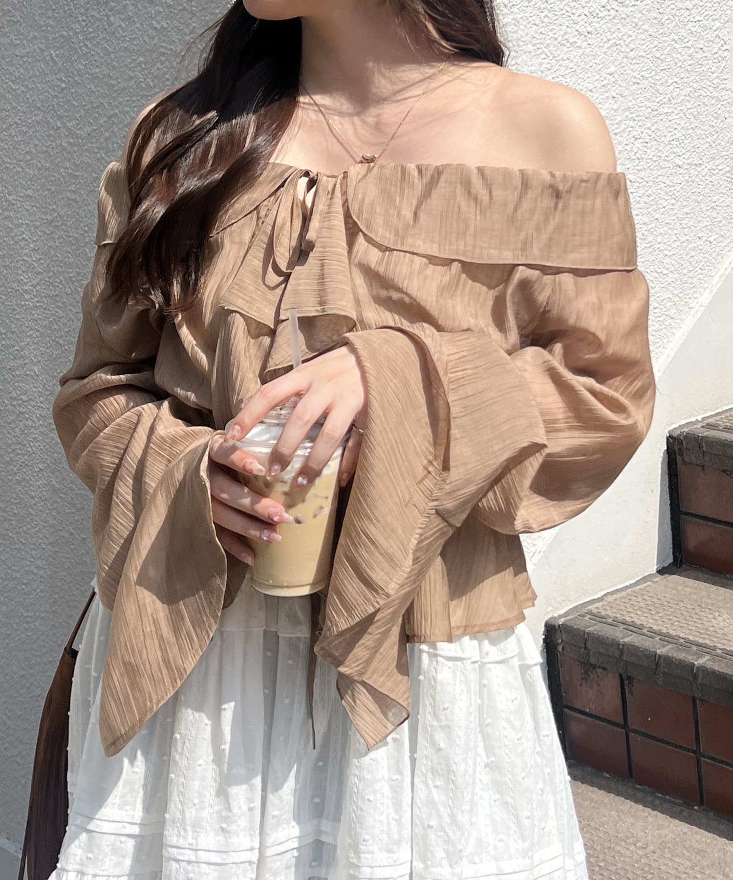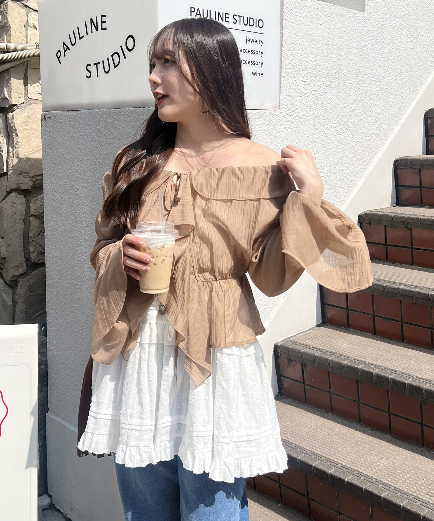 【@_chipi2xセレクト】楊柳シアーラッフルブラウス