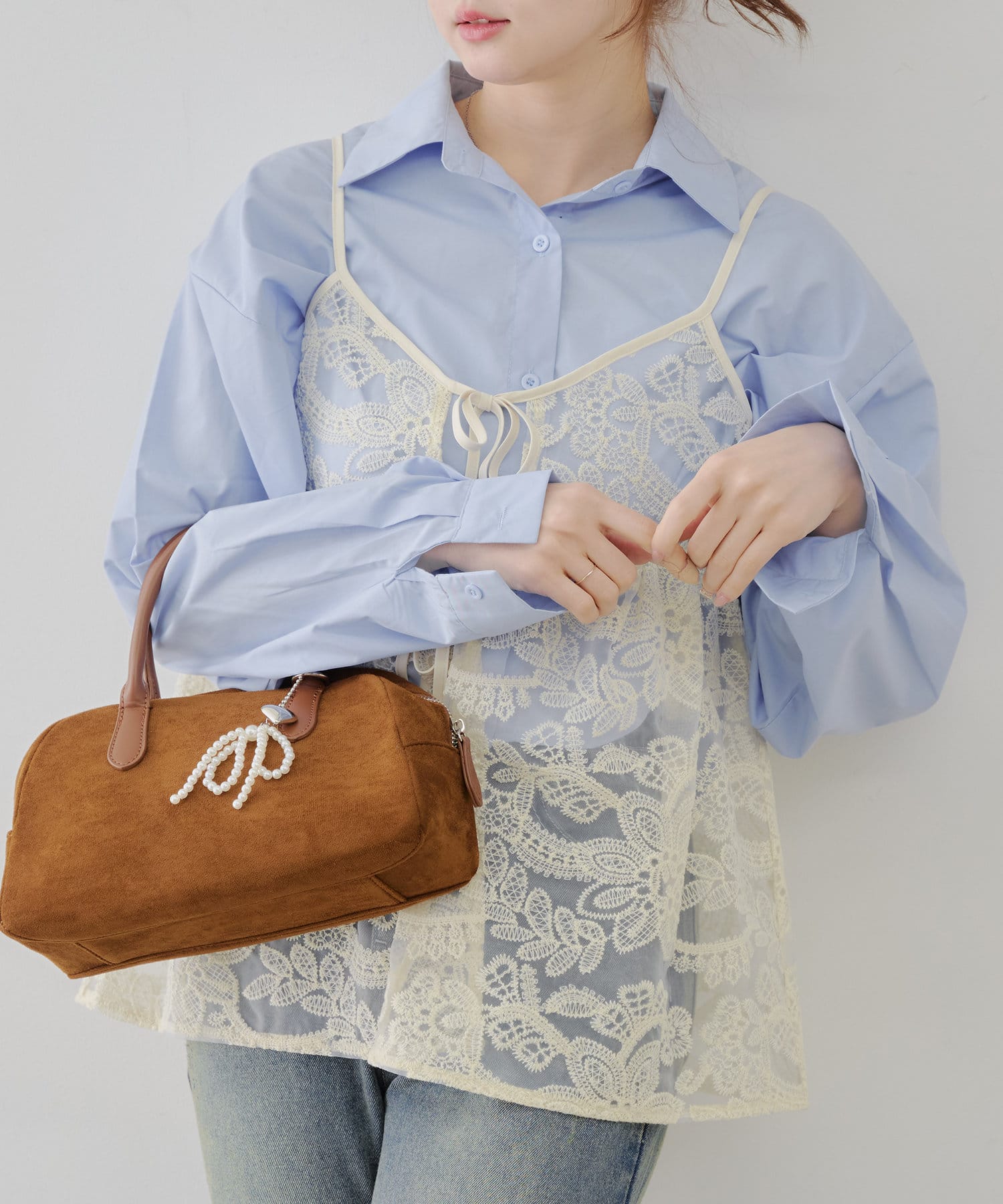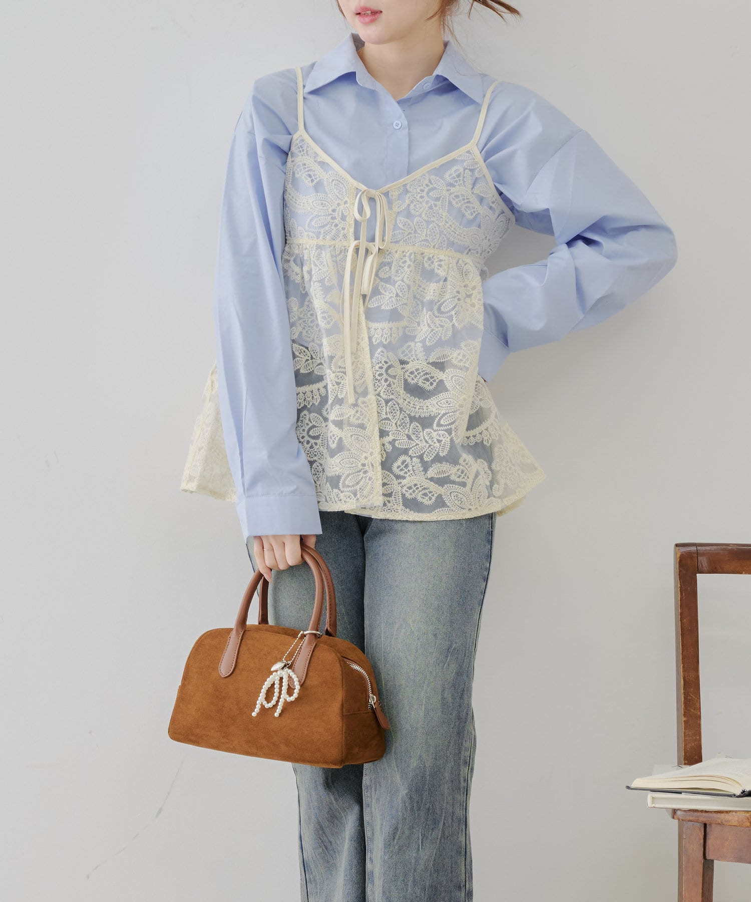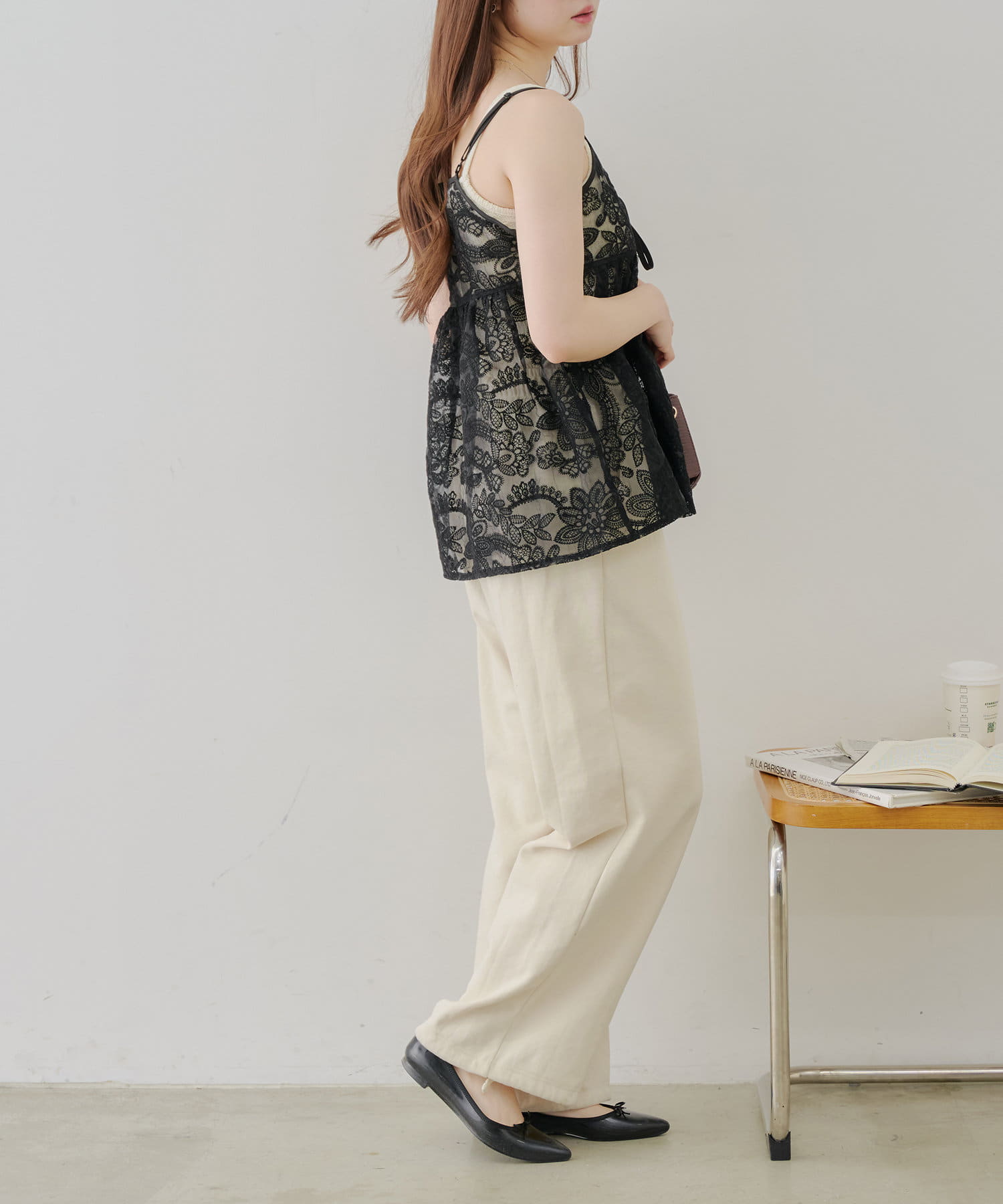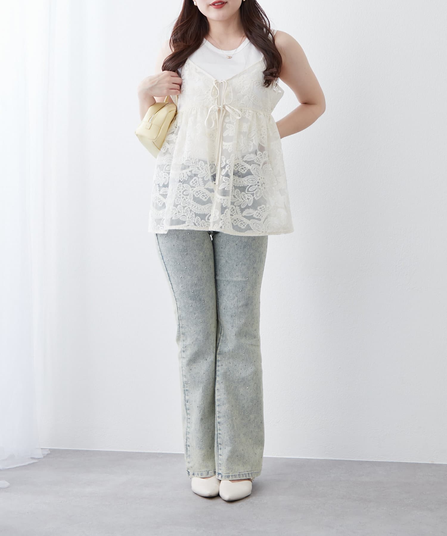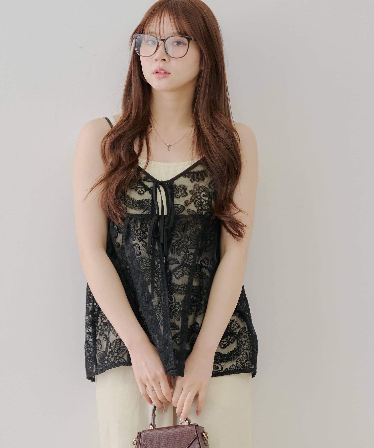 シンプルなコーディネートに足すだけで目を惹くレイヤードスタイルに。透け感のある刺繍デザインが女性らしい雰囲気を演出します。