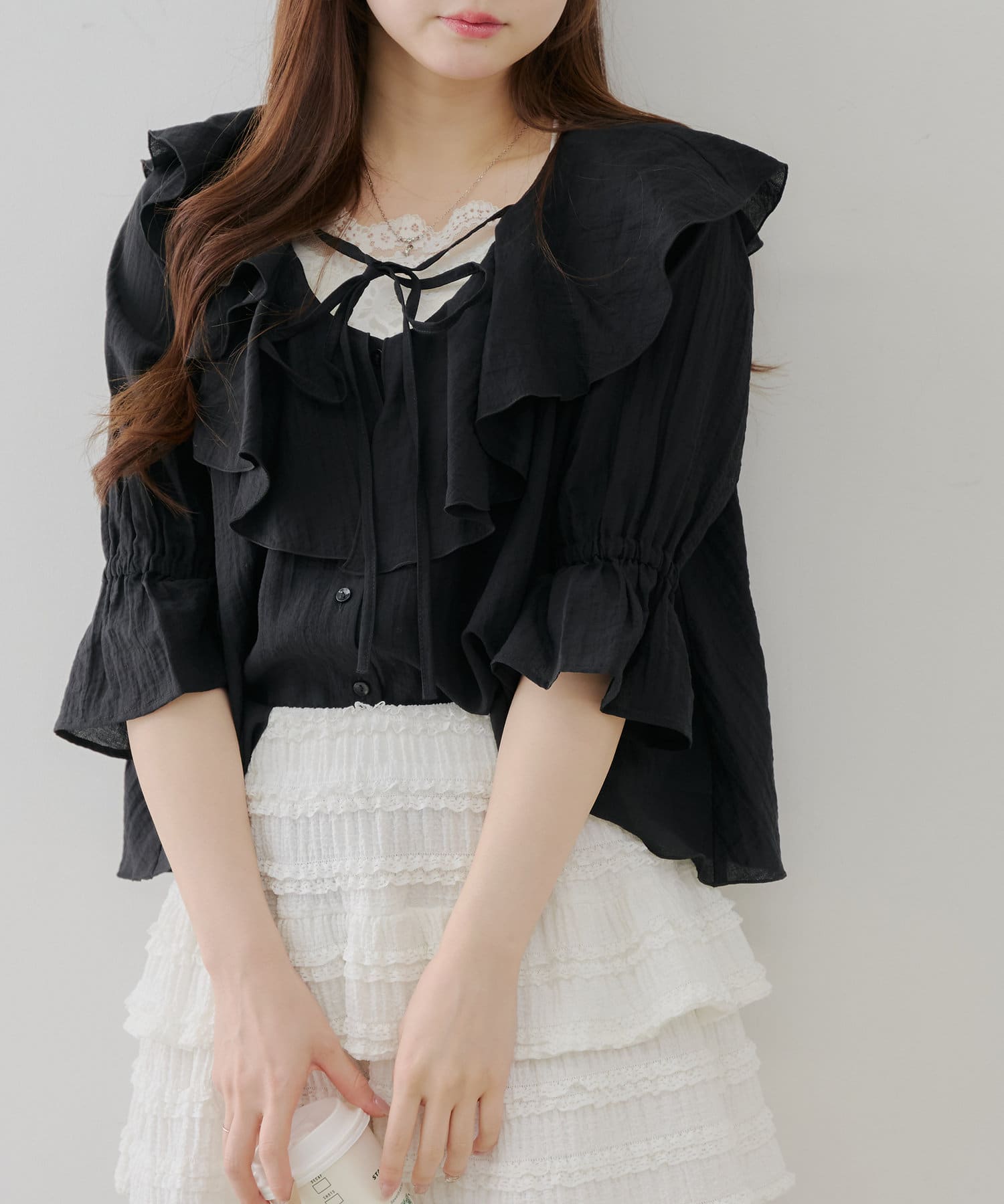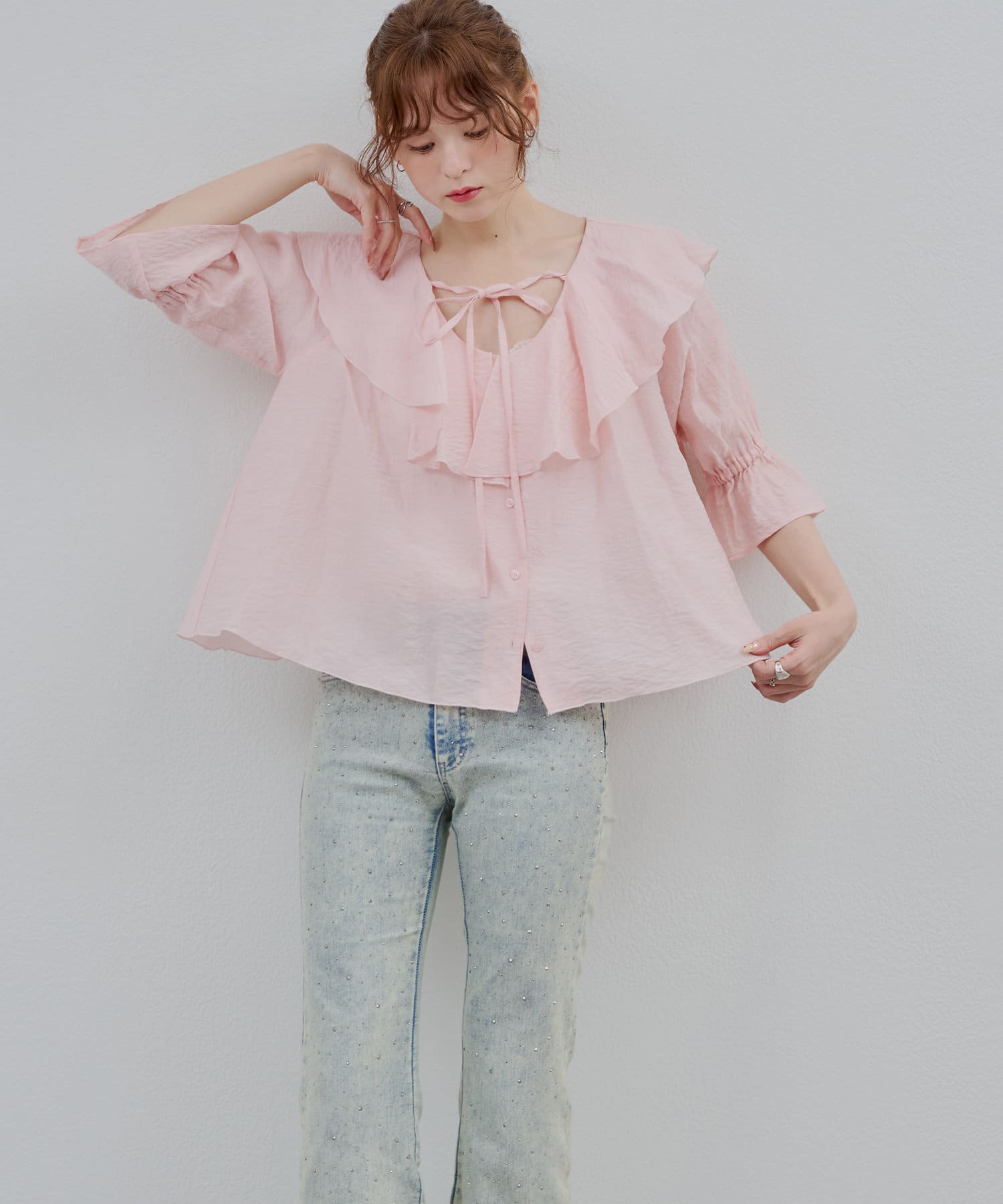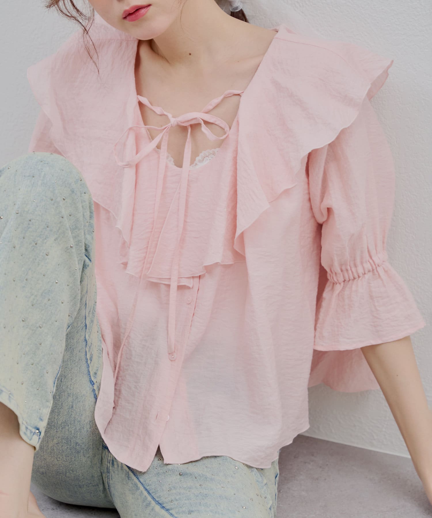 【@_chipi2xセレクト】楊柳ラッフルブラウス