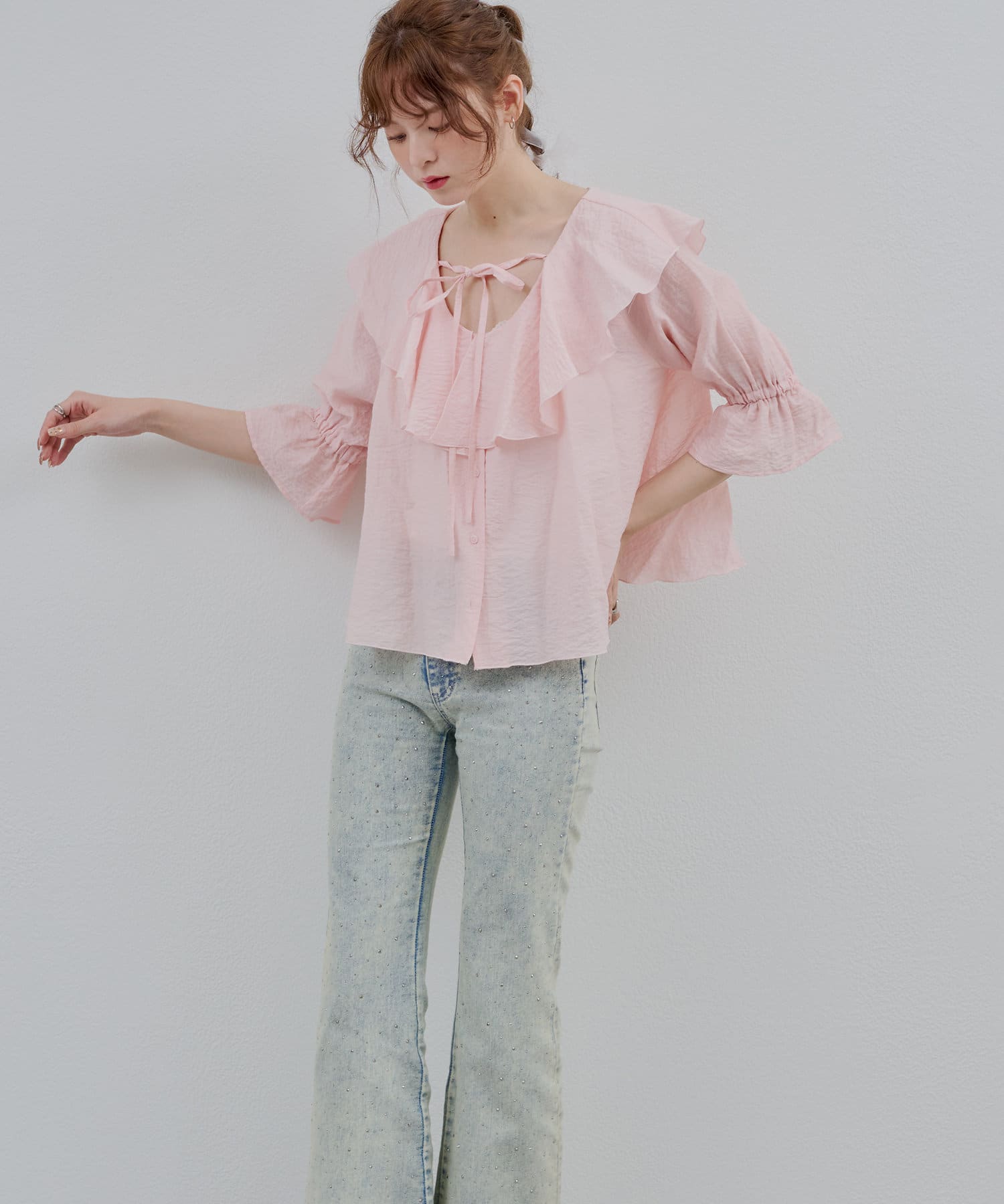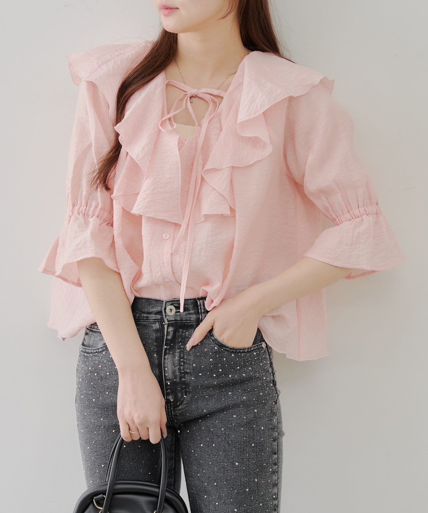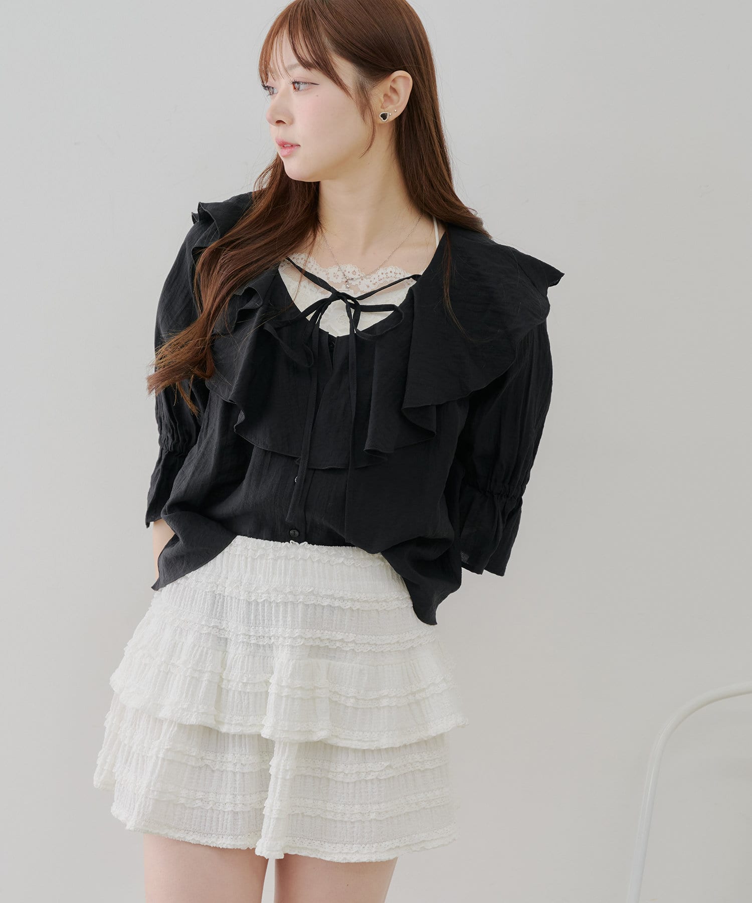 【@_chipi2xセレクト】楊柳ラッフルブラウス