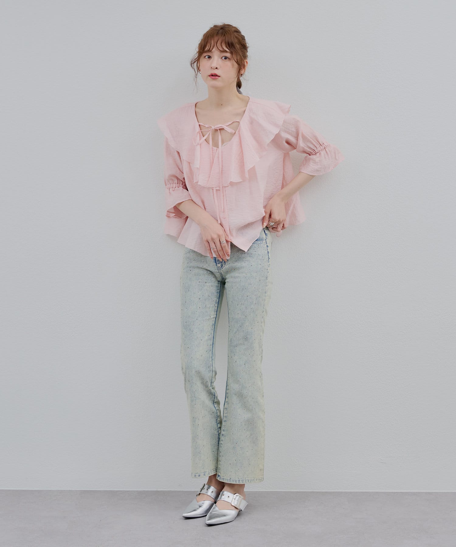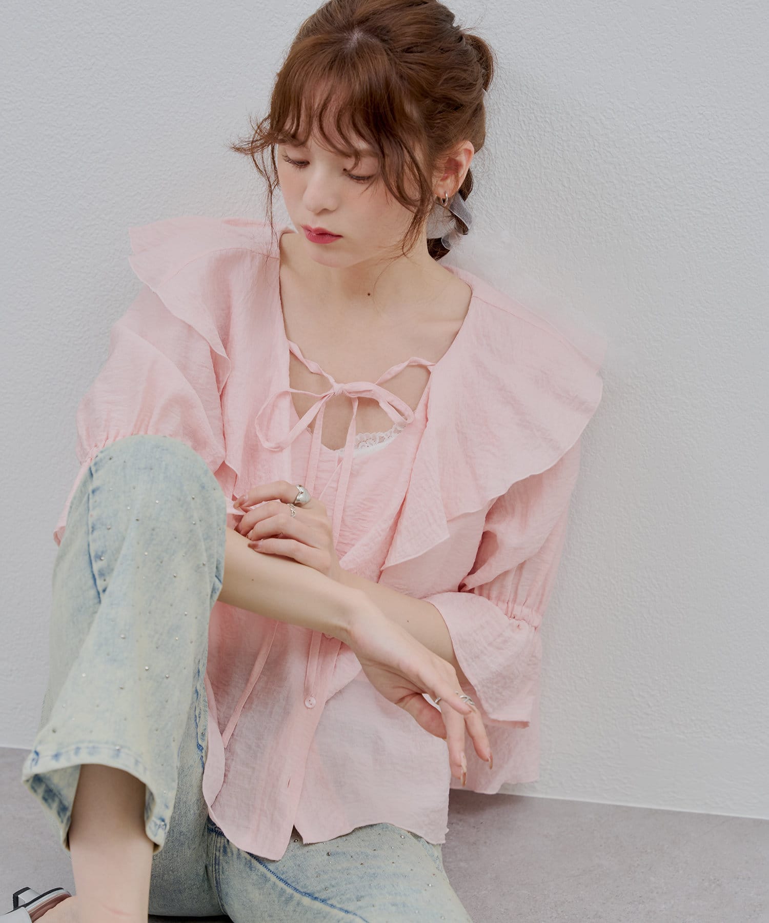 女性らしいフェミニンさを演出させるブラウス