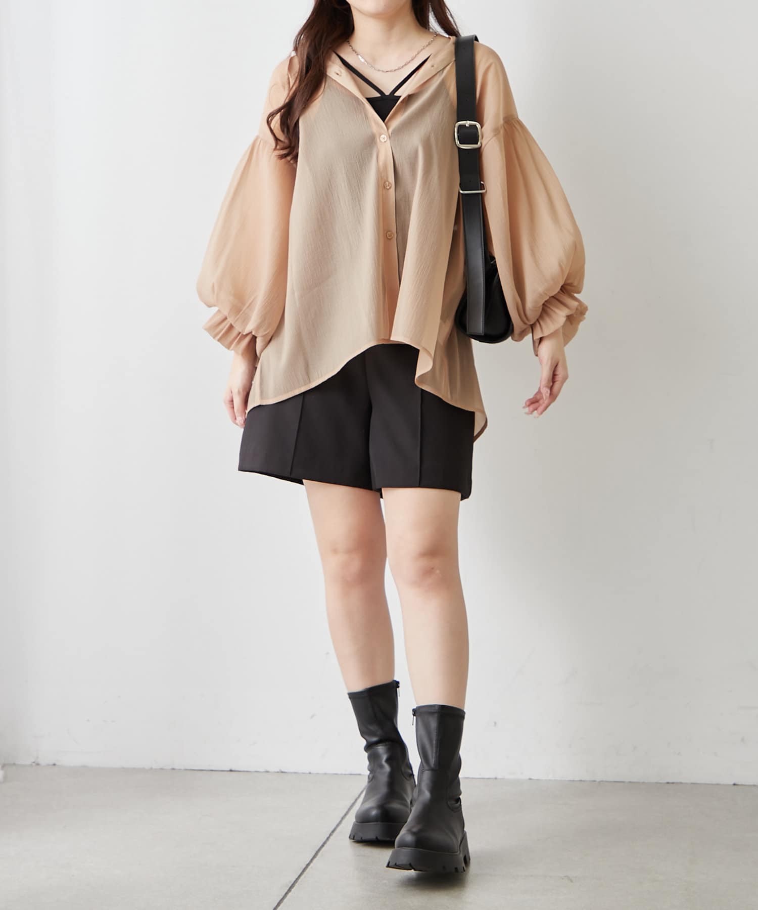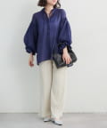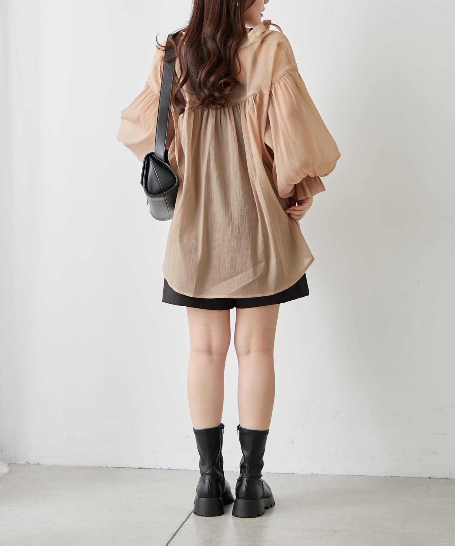 ・袖口はプリーツになっており、ボリューム感あるシルエットで一枚で着映えするデザイン。