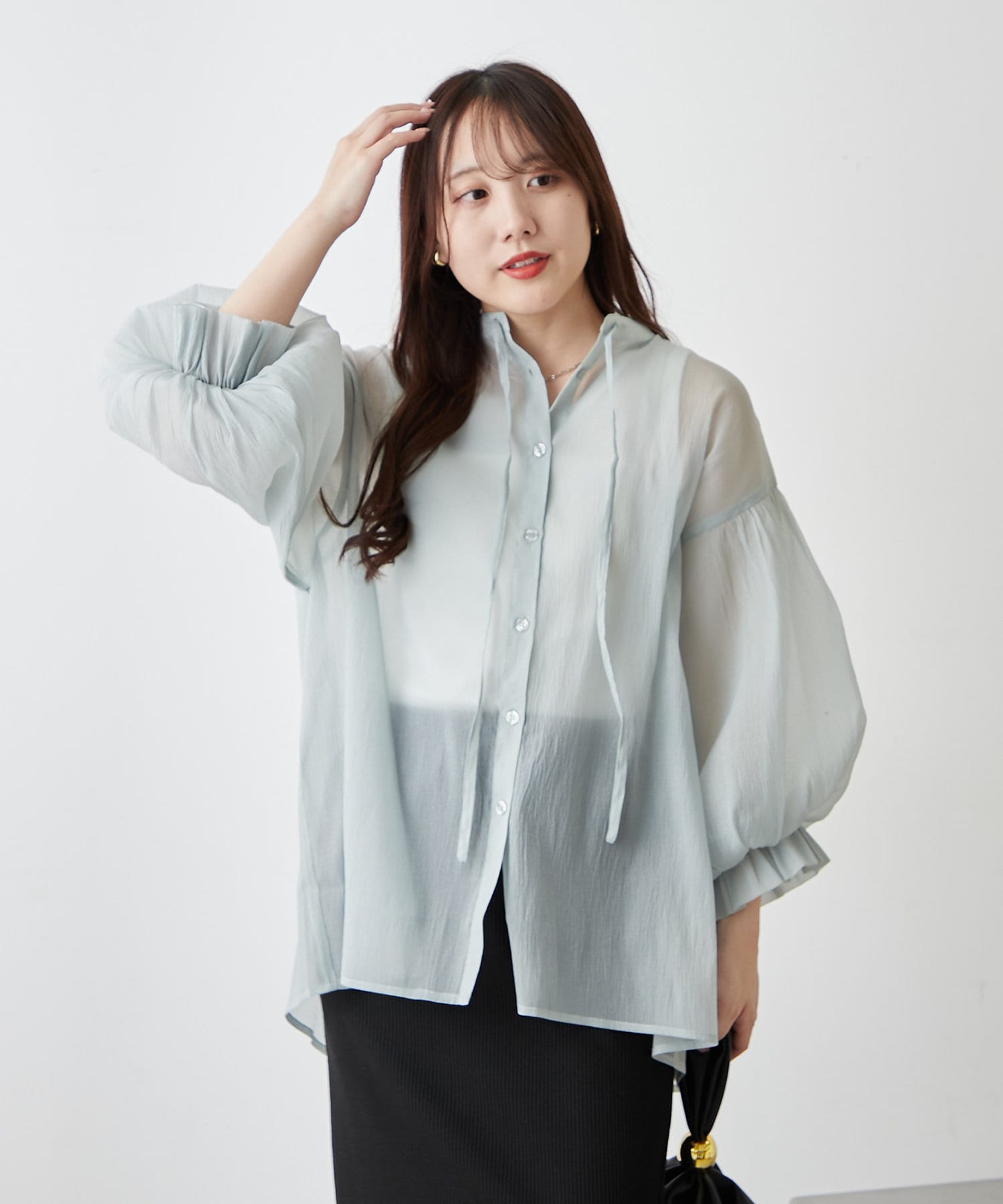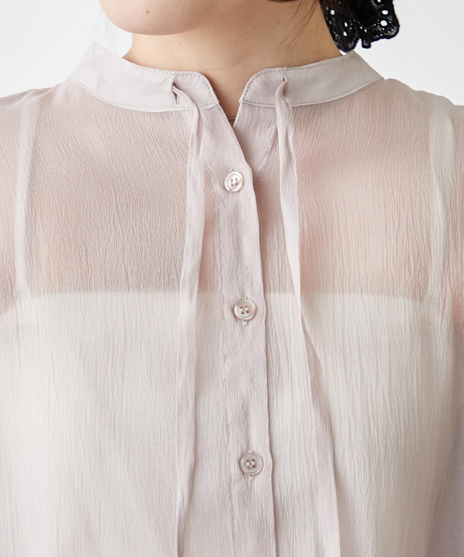 【新色追加!】涼し気な印象、シアー楊柳スキッパー2枚袖ブラウス