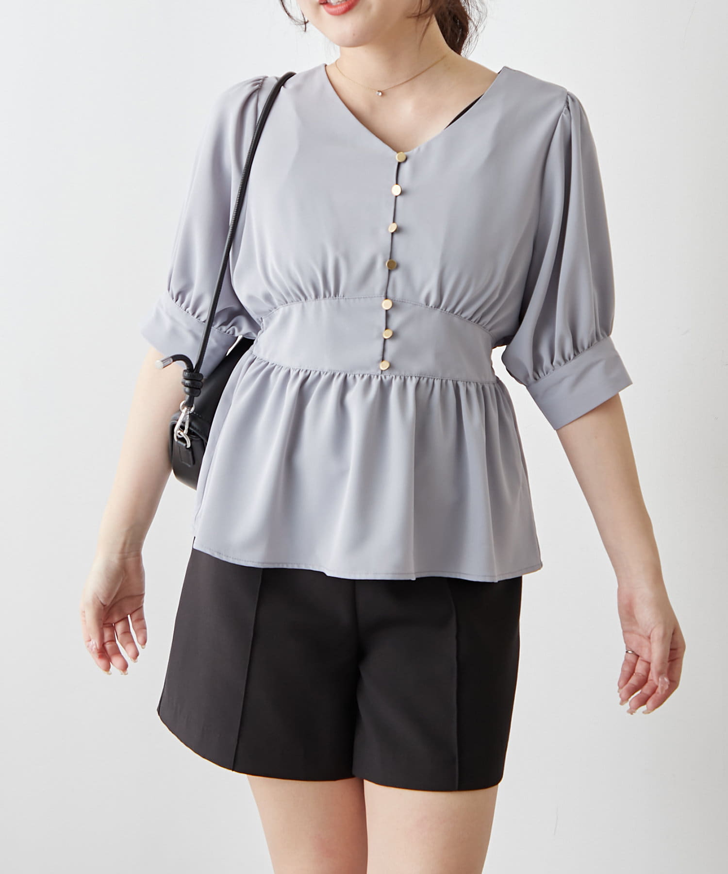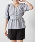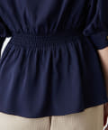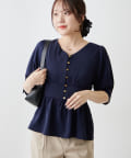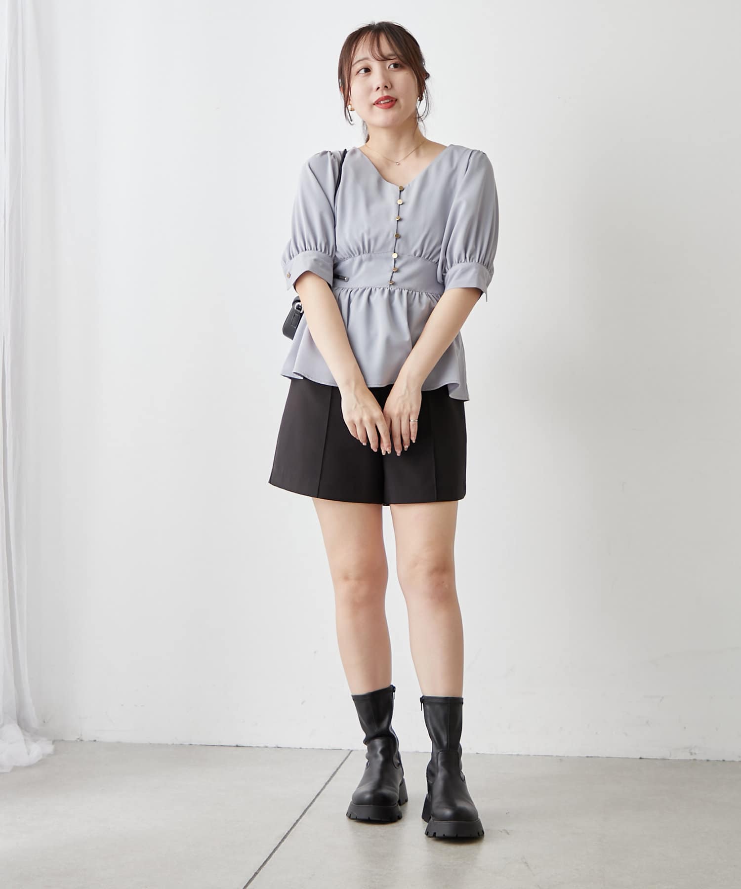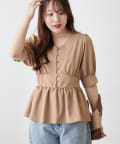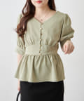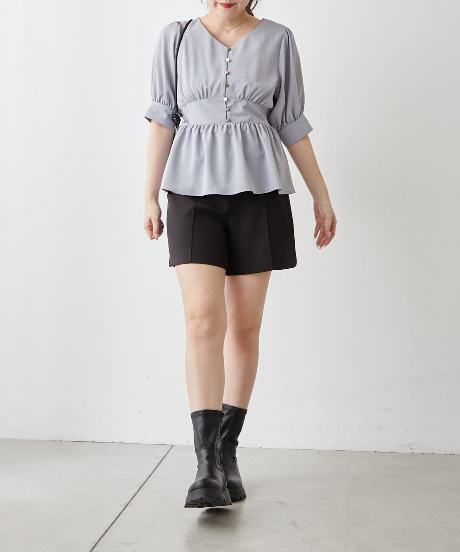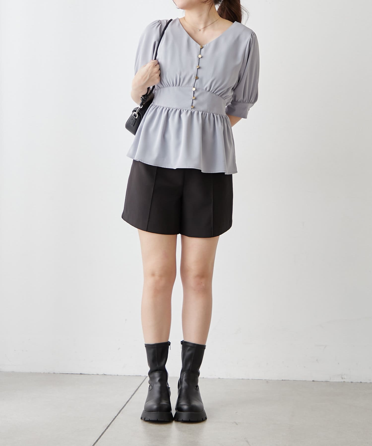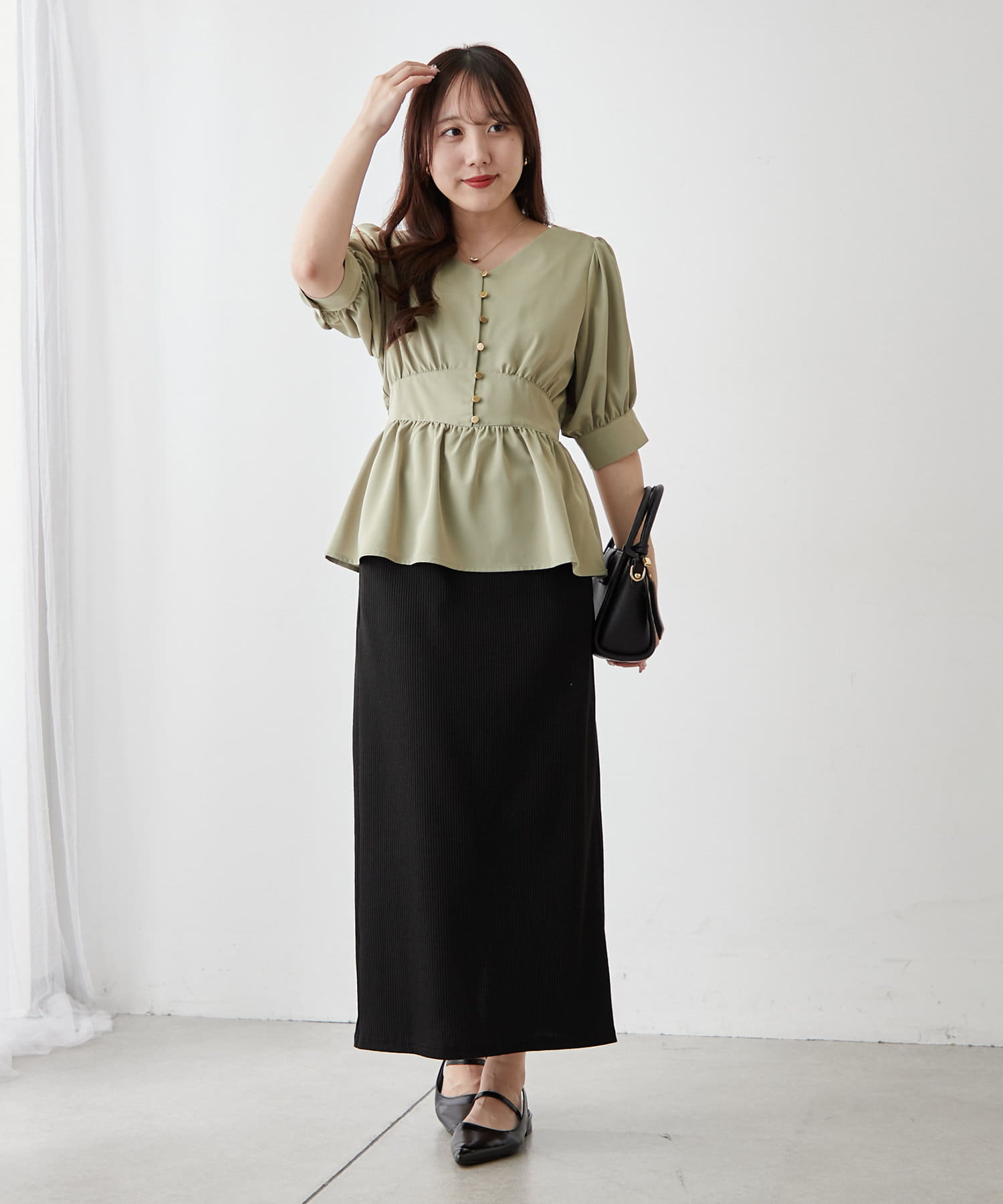 ・ウエスト切替位置を高めに設定し、ペプラムのふわっと感で細見えが叶うシルエットに。