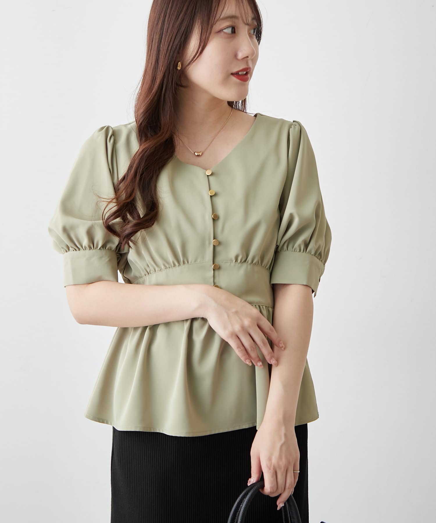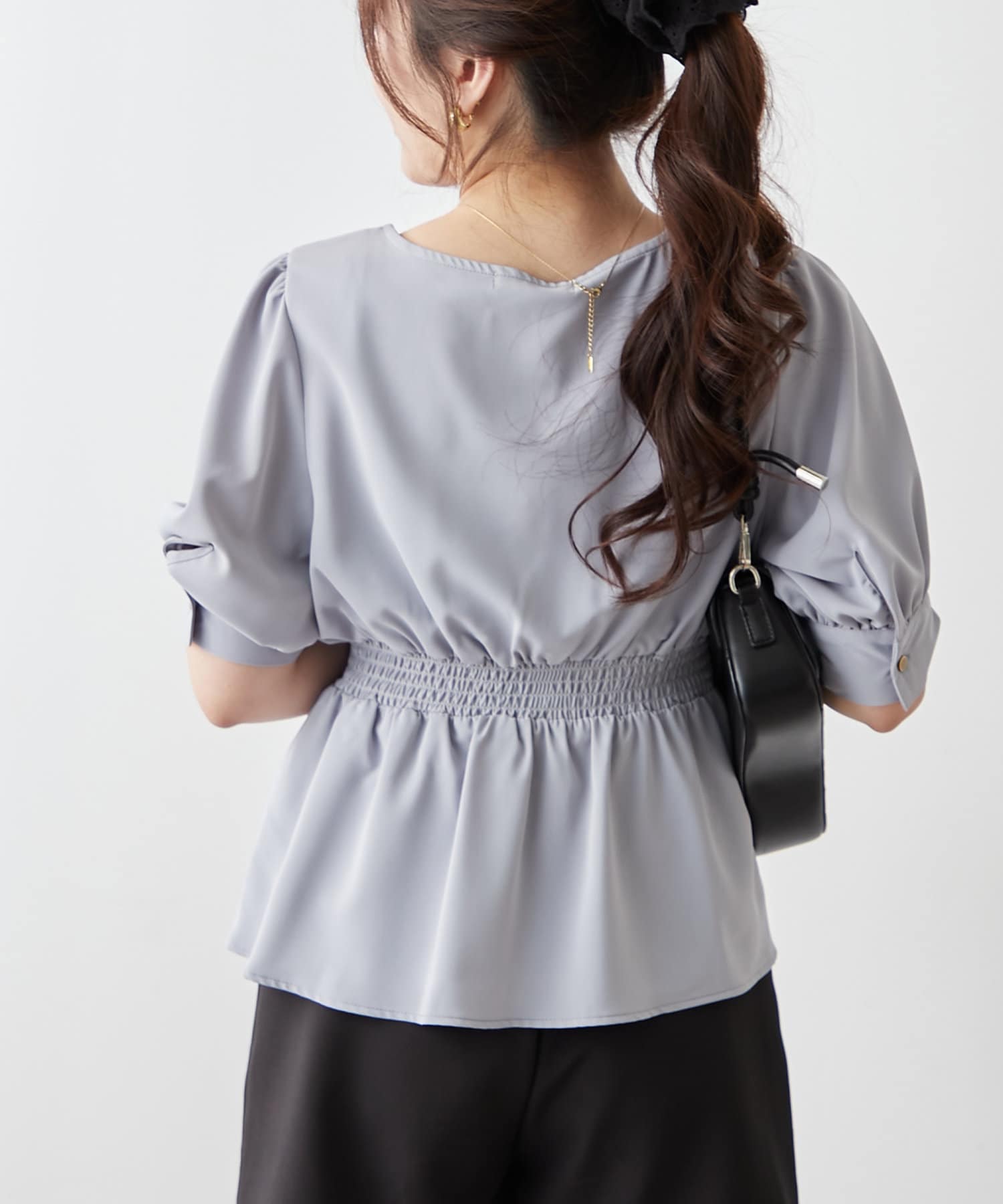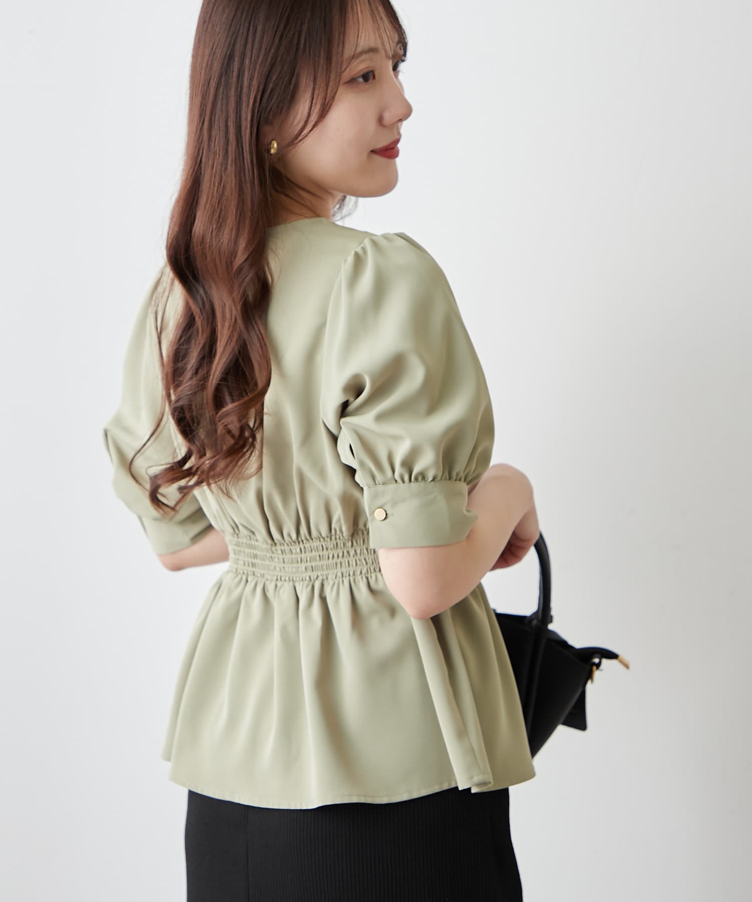 ・パフスリーブデザインで二の腕カバーもでき華奢見え◎
