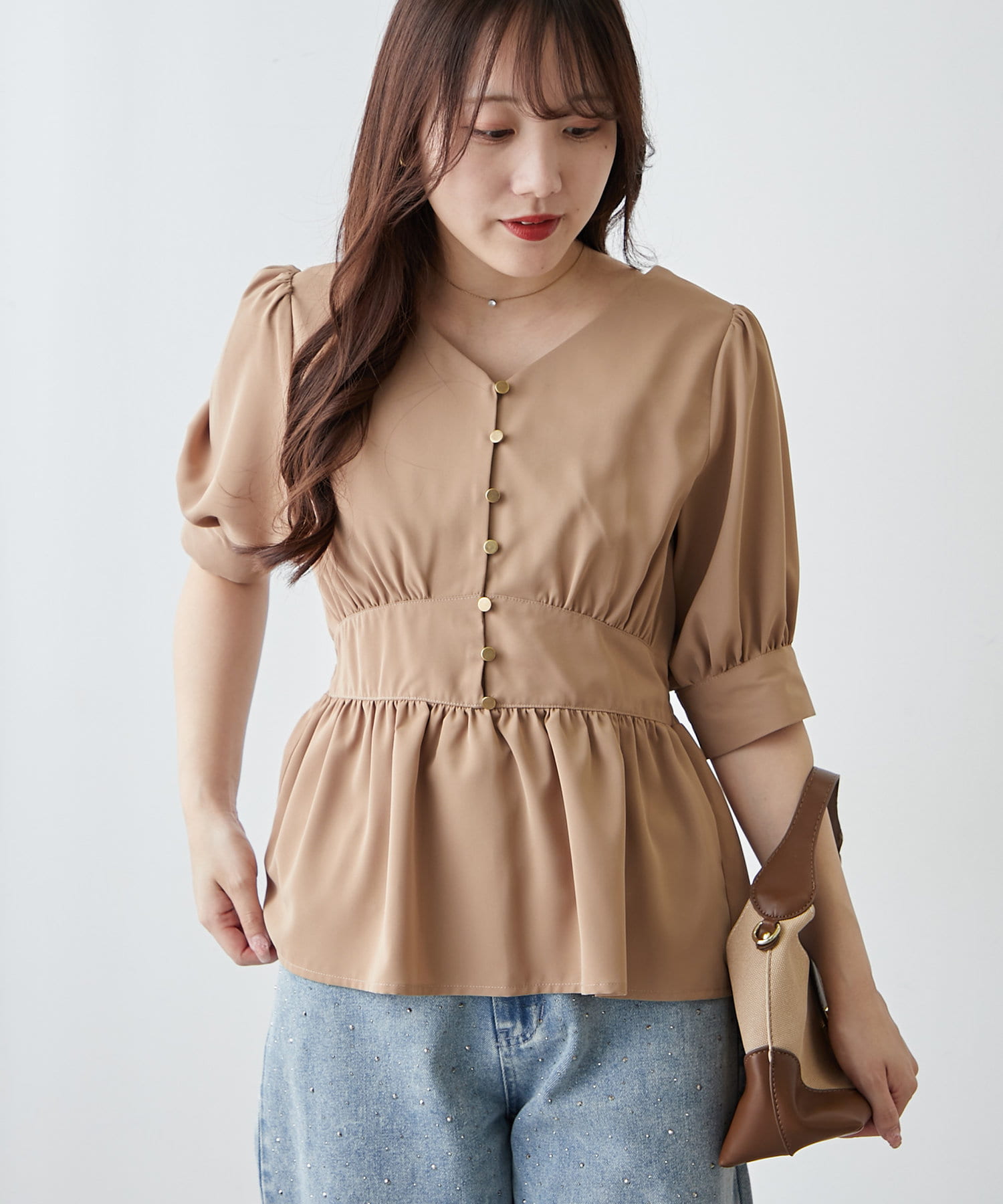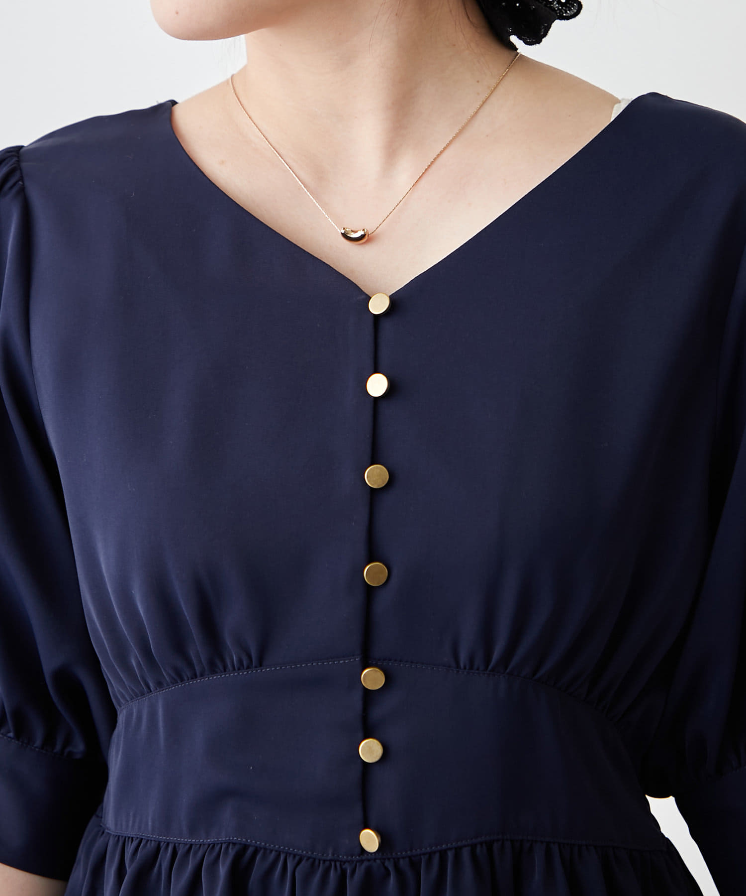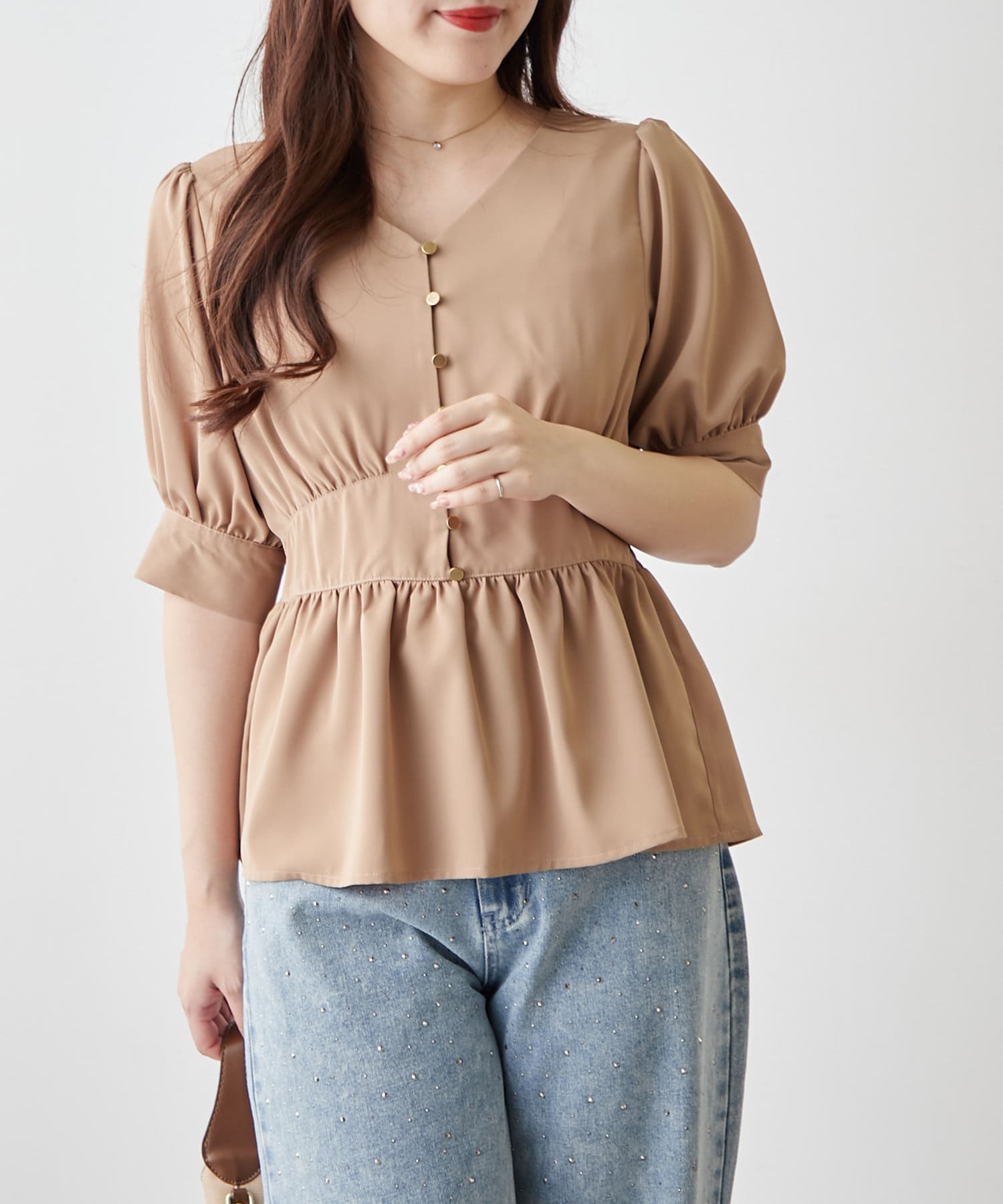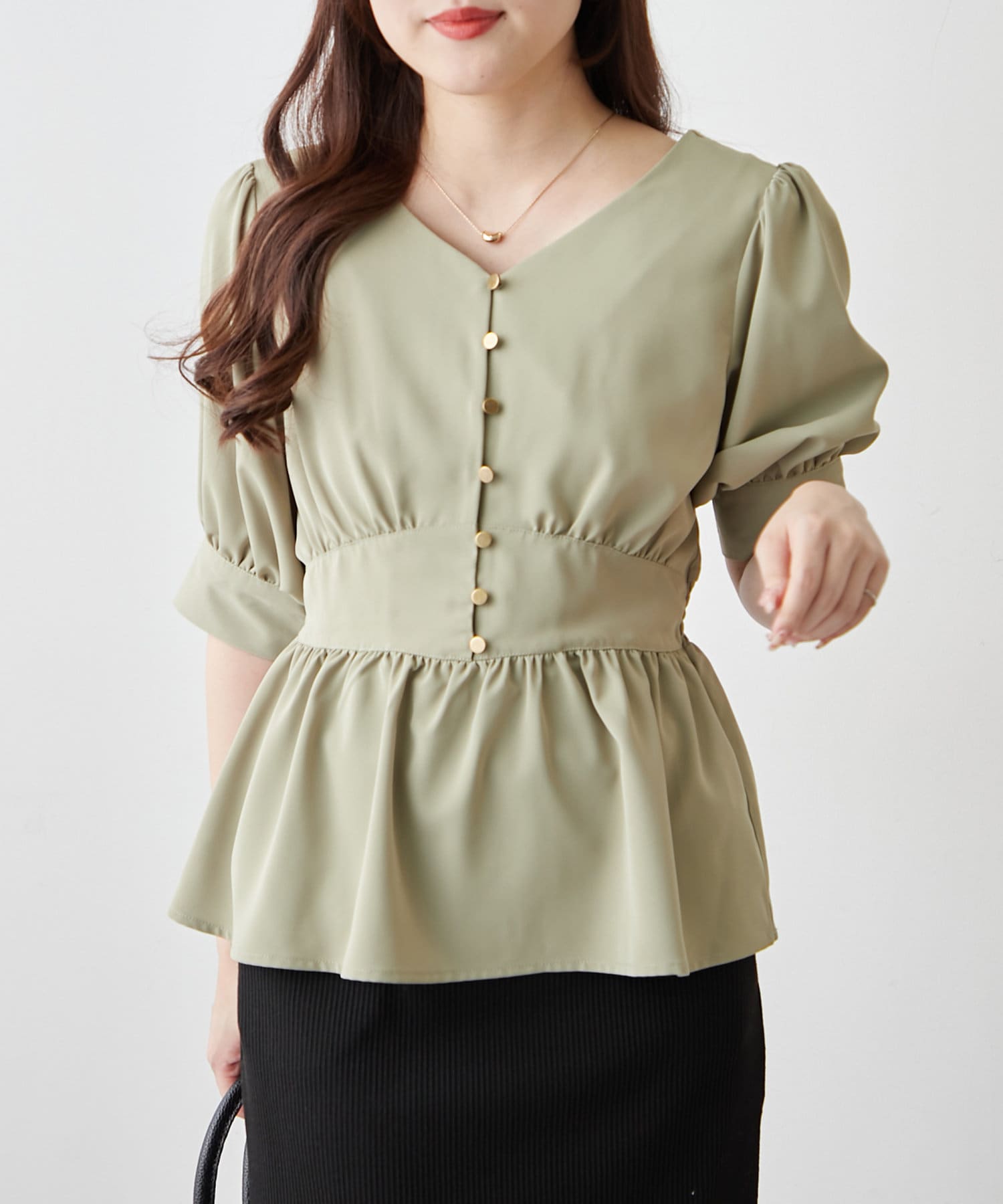 ・パフスリーブデザインで二の腕カバーもでき華奢見え◎