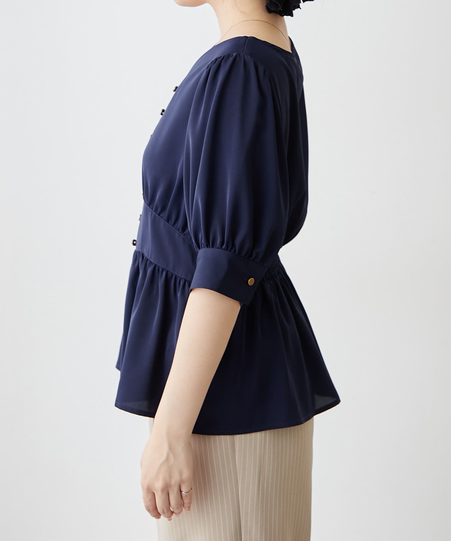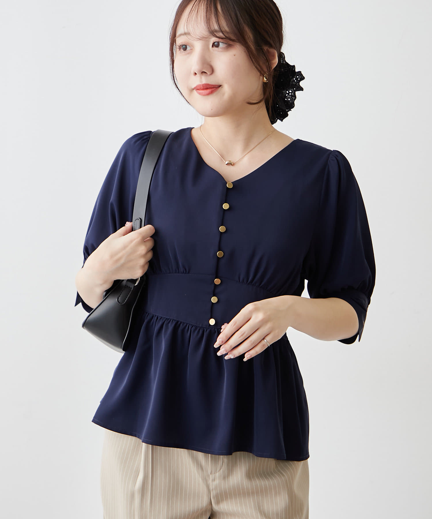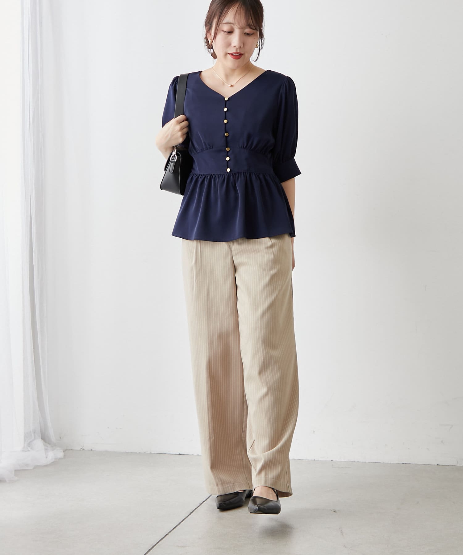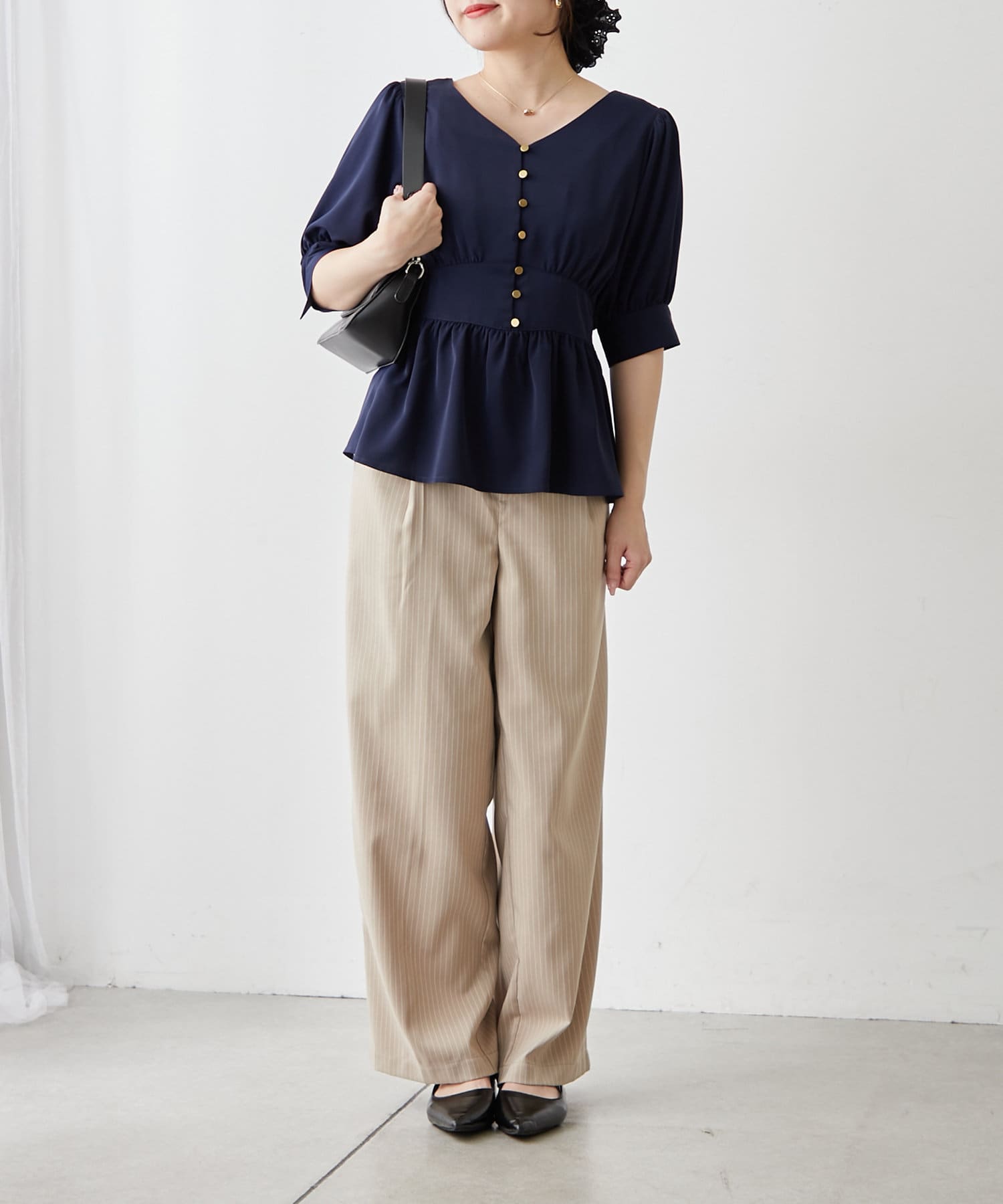 ・パンツスタイルだけでなく、Iラインスカートとも相性抜群なブラウスです。