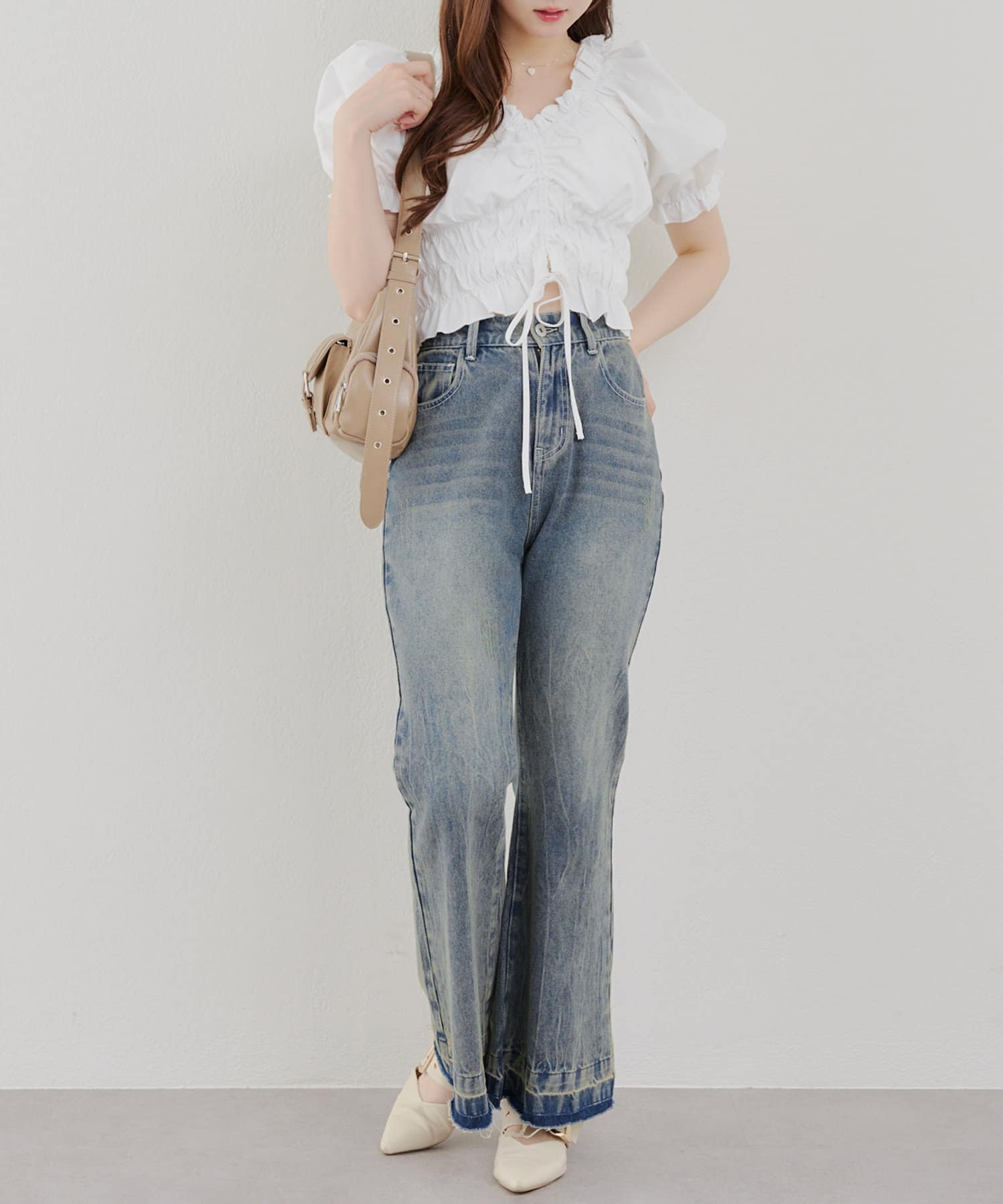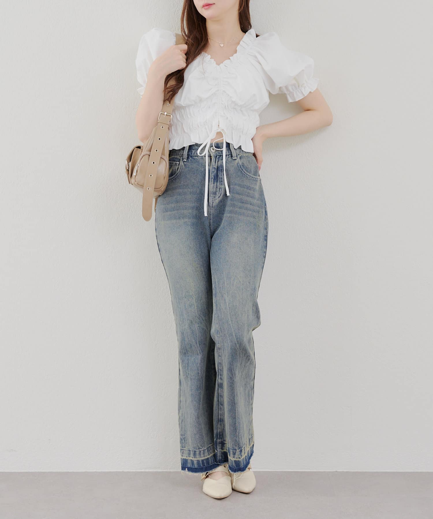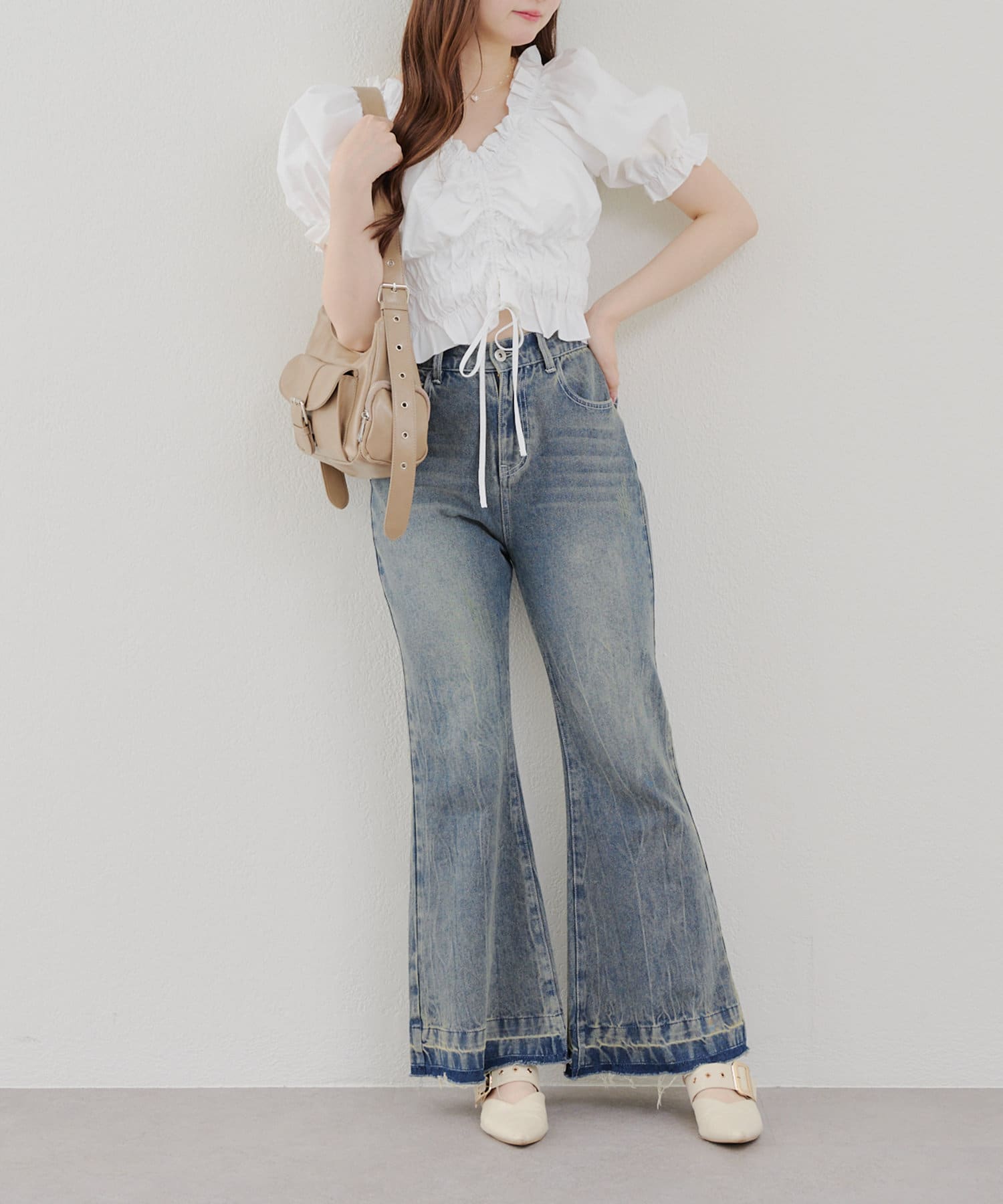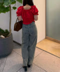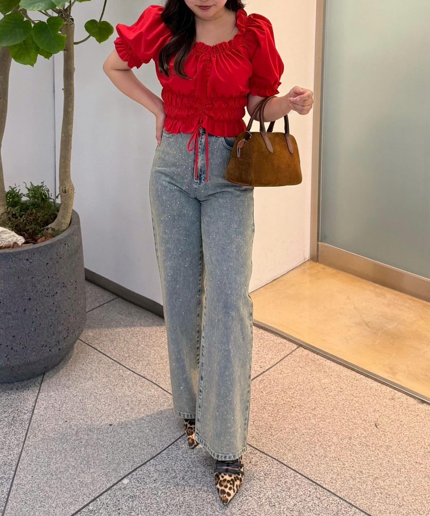 ・ガーリーな印象のブラウスなので、デニムとの相性が抜群です。