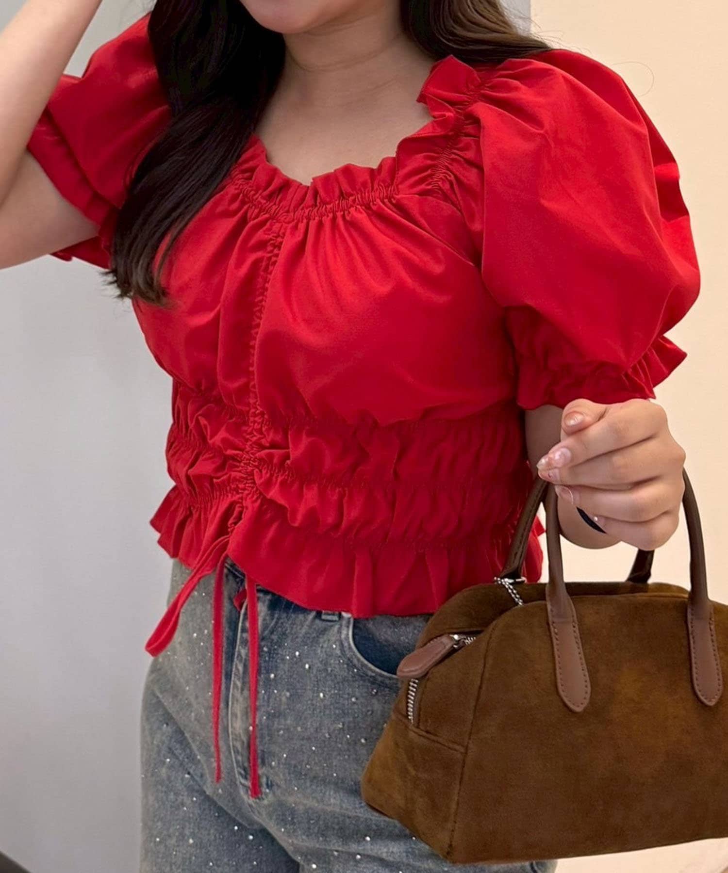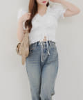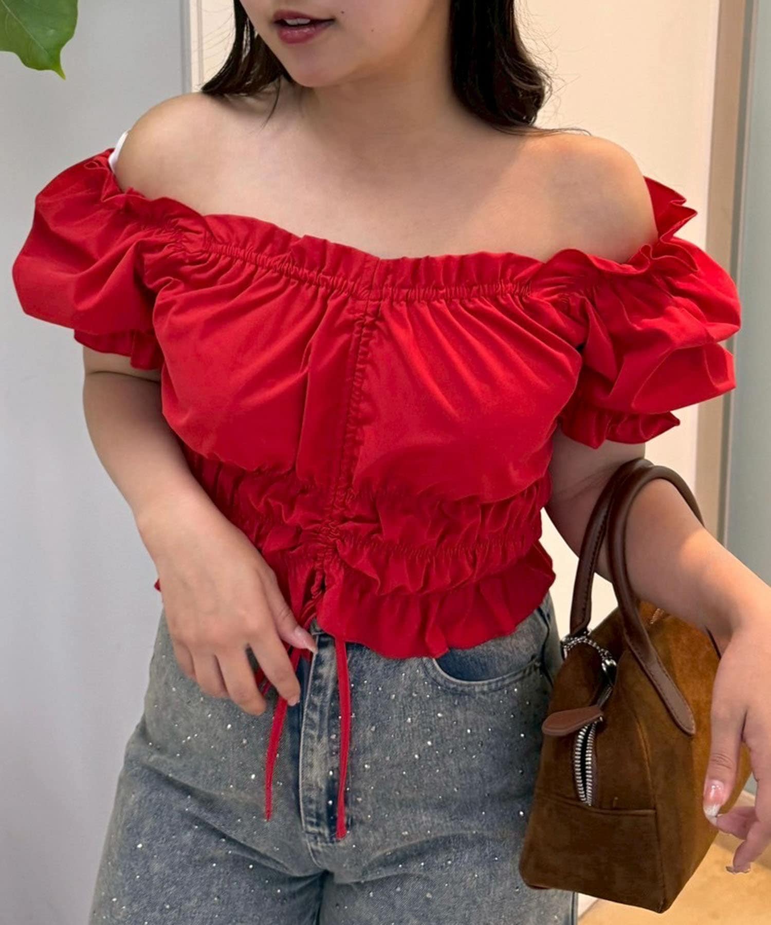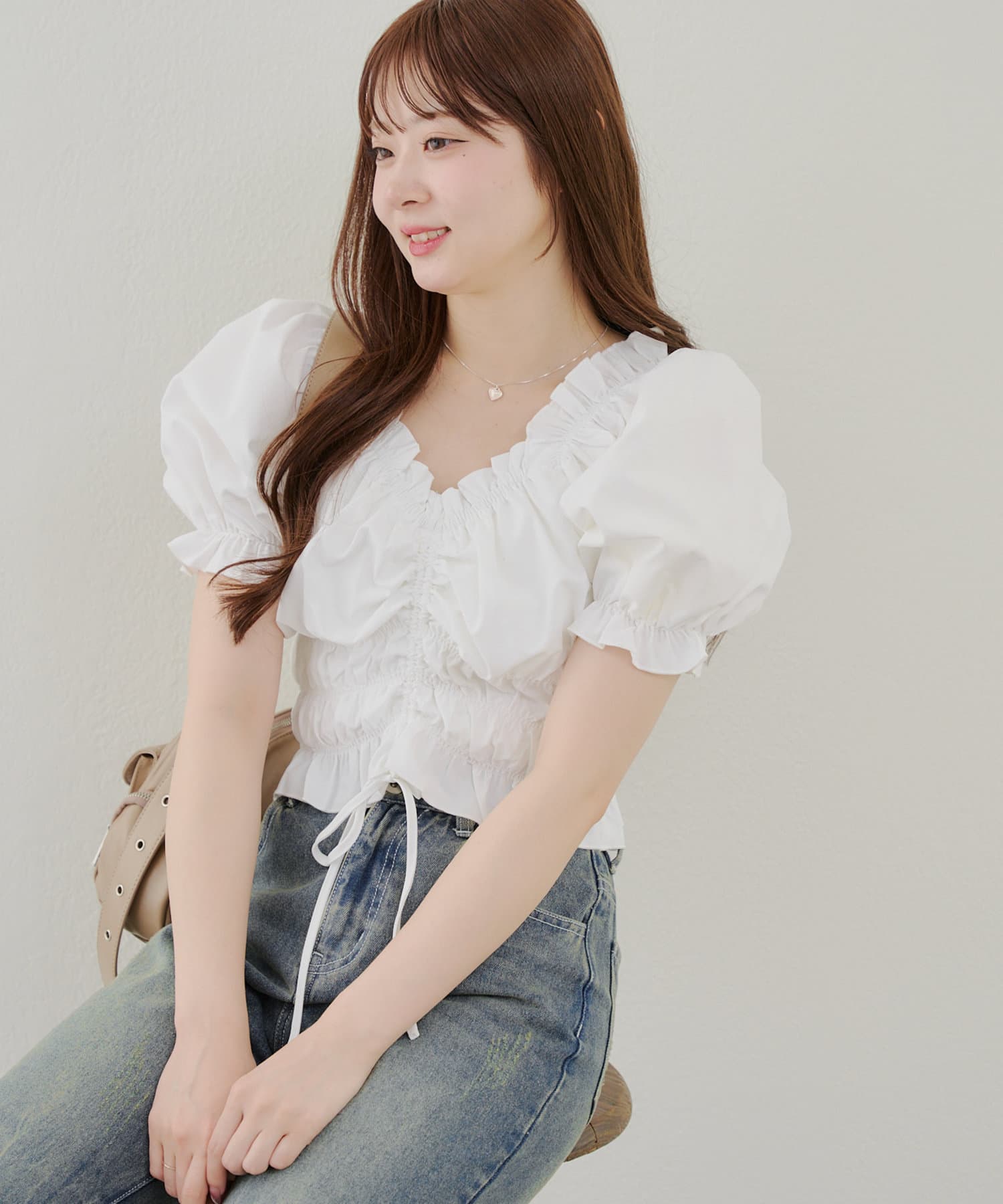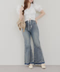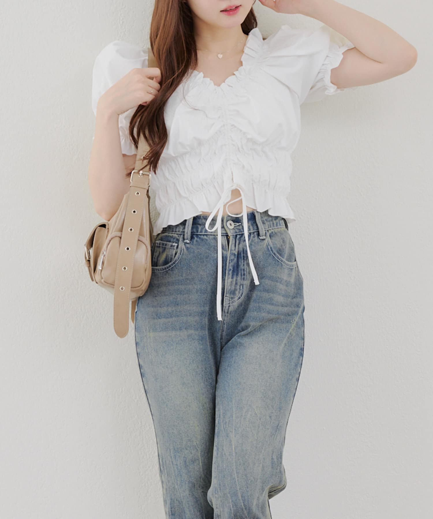 ・ガーリーな印象のブラウスなので、デニムとの相性が抜群です。