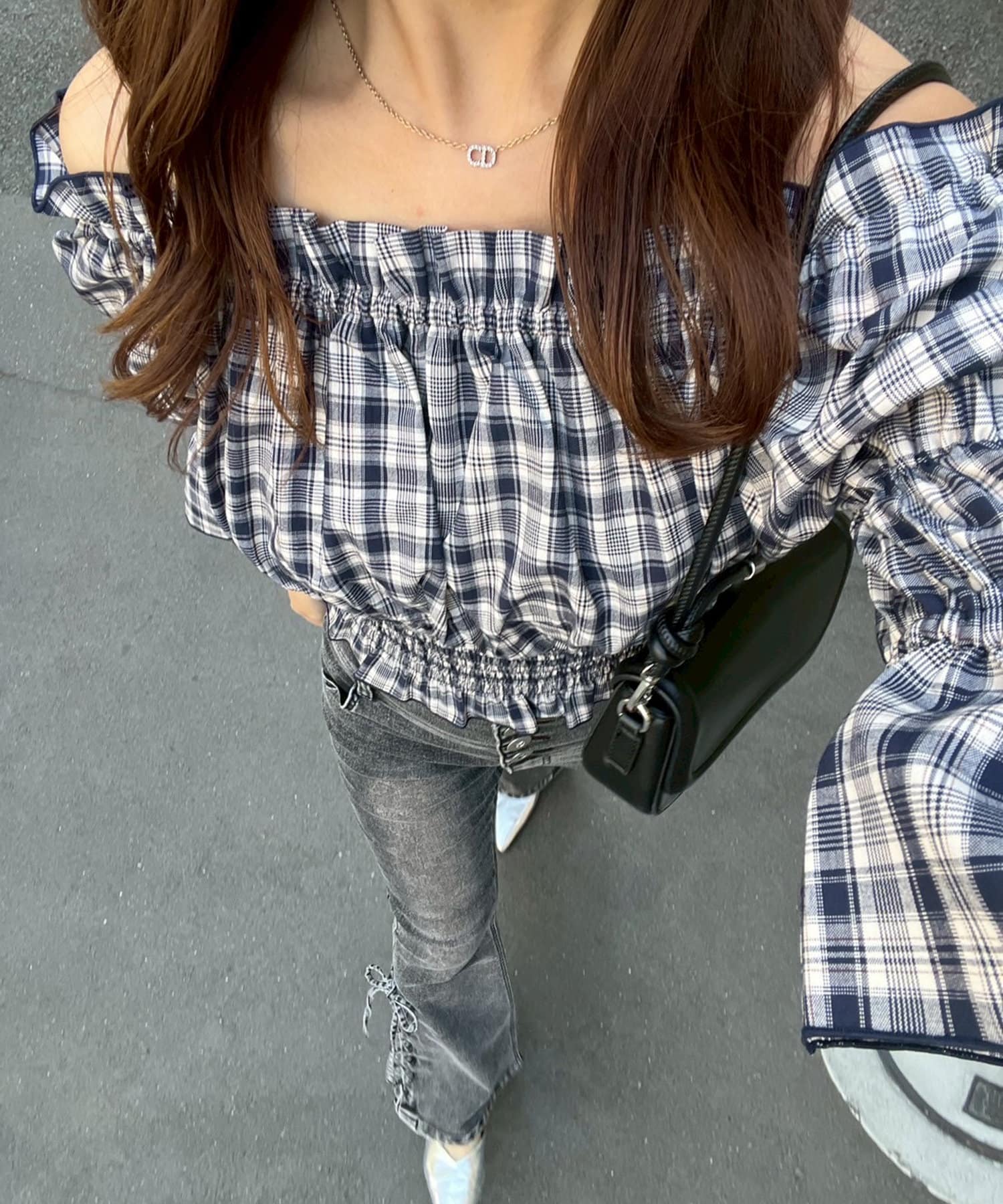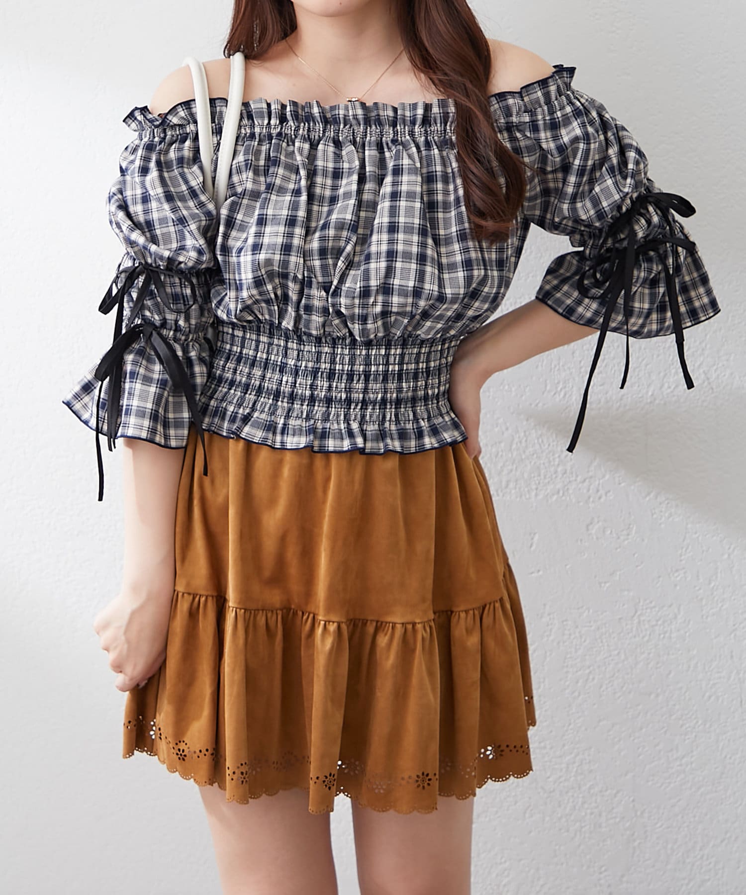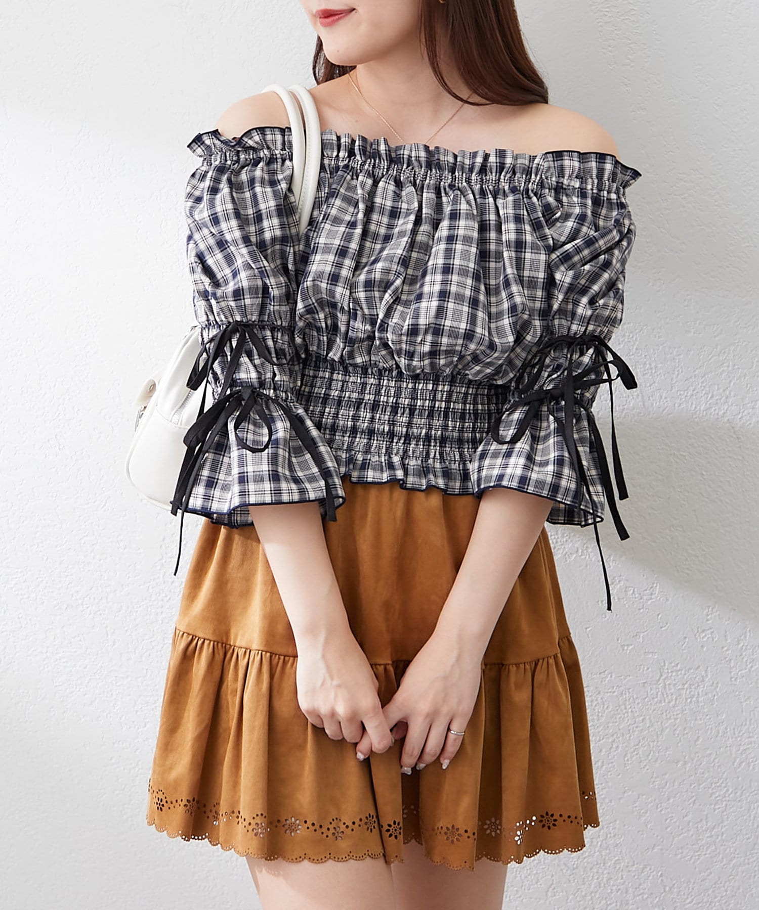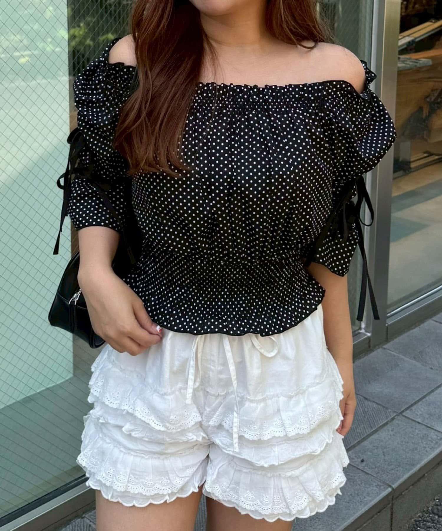 ・ショルダー部分はゴムになっているので、オフショルとしても着用可能です!