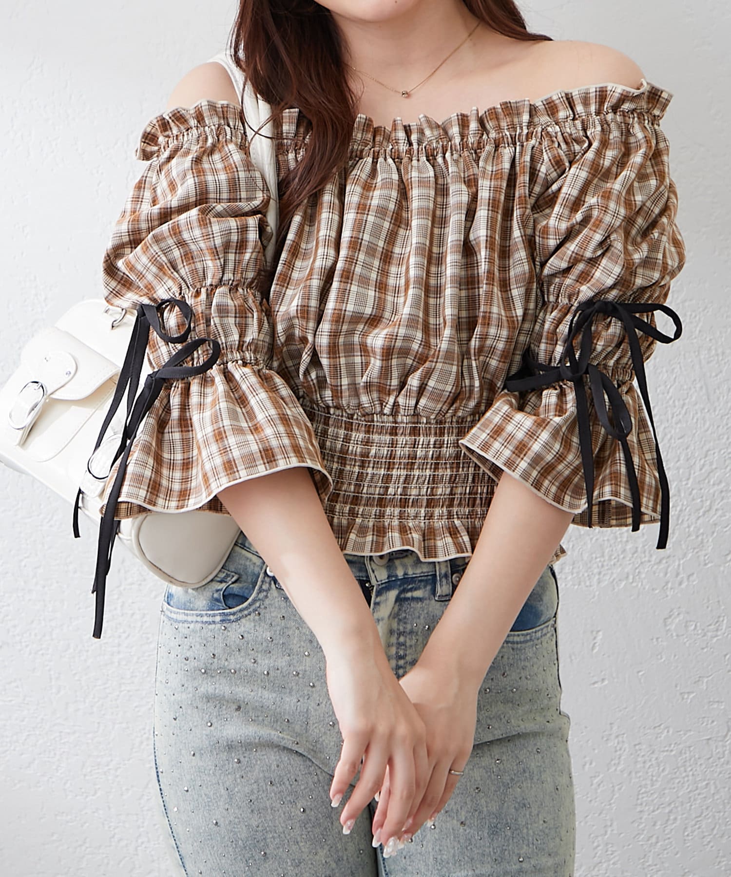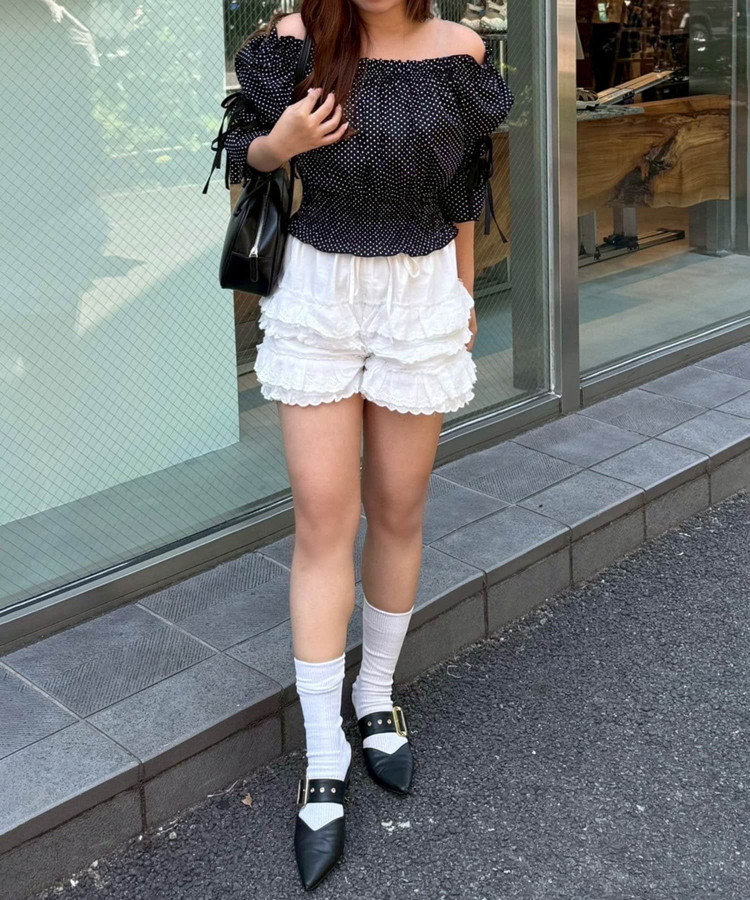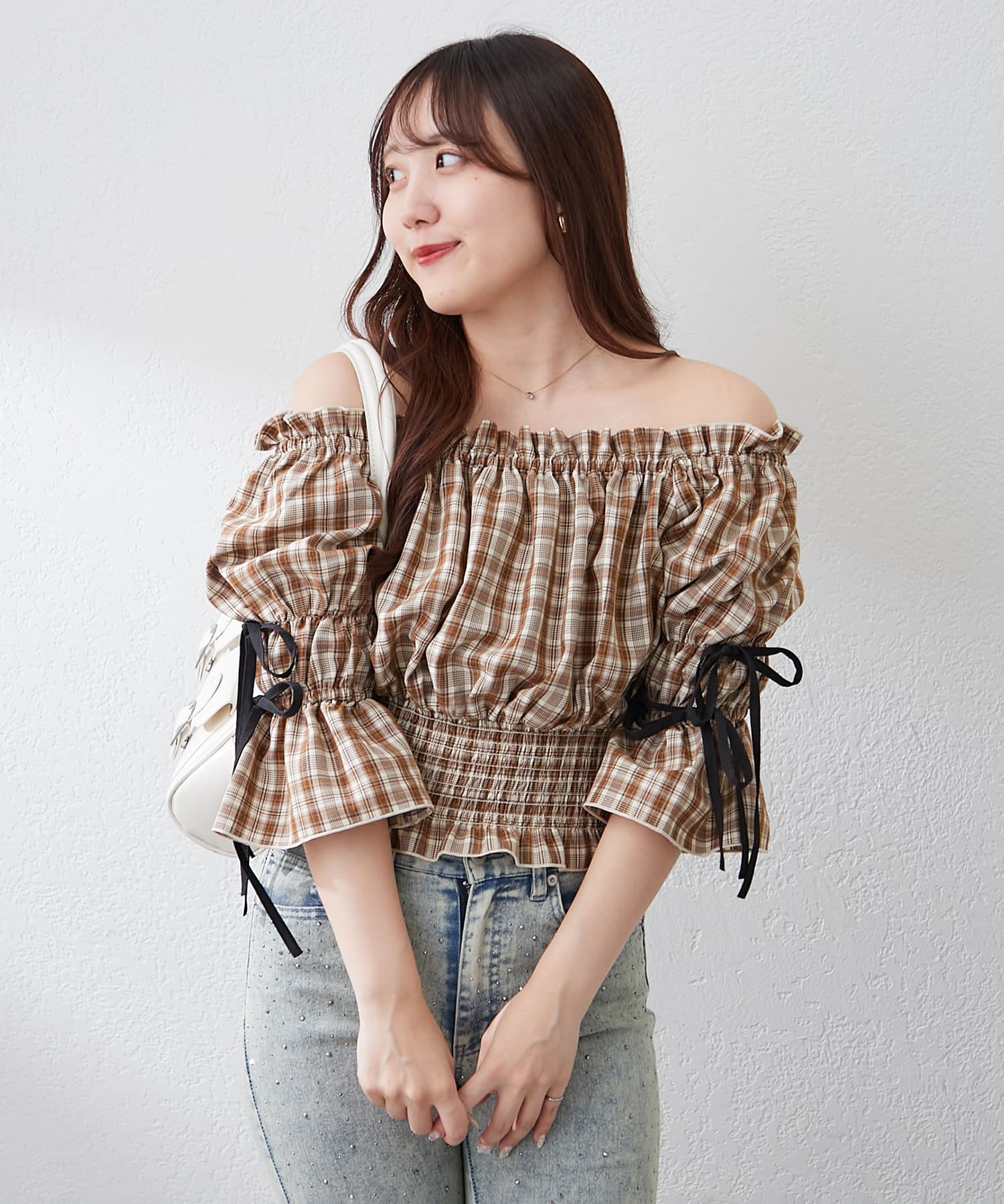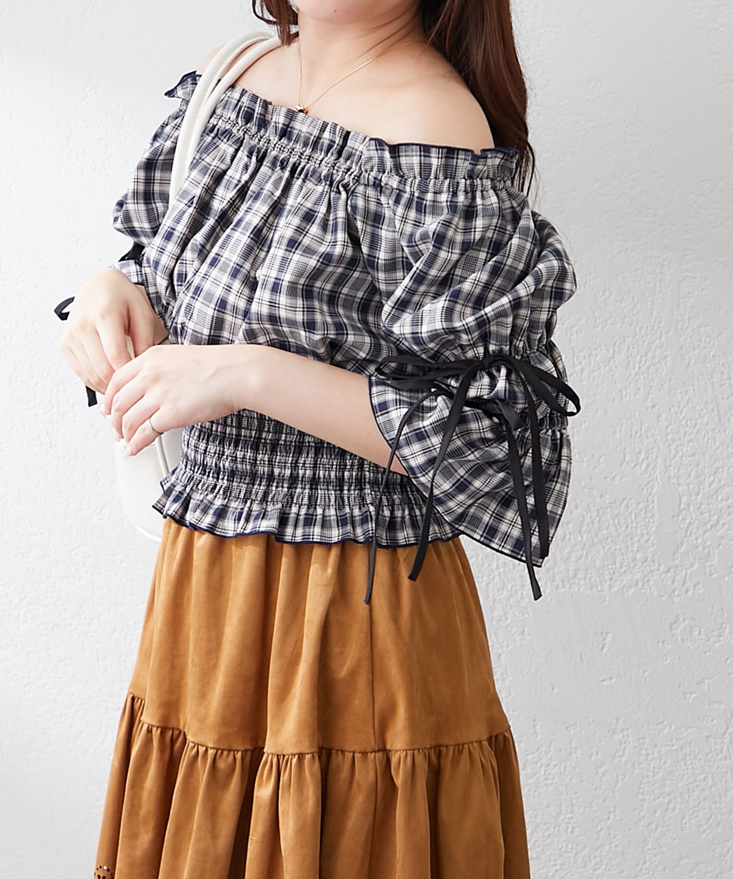 ・ショルダー部分はゴムになっているので、オフショルとしても着用可能です!