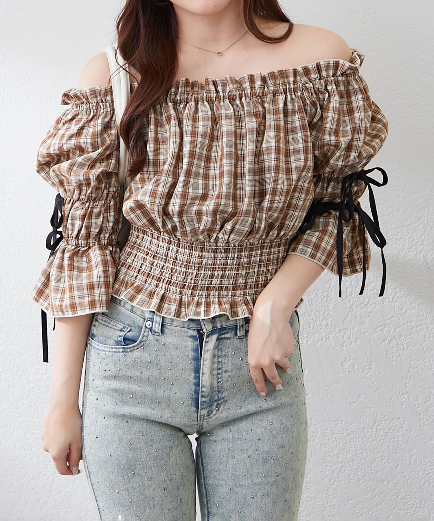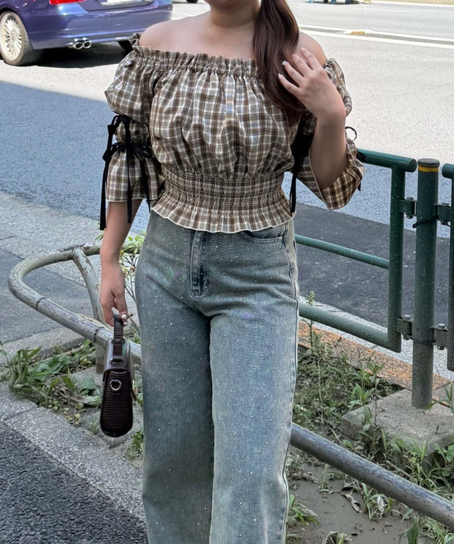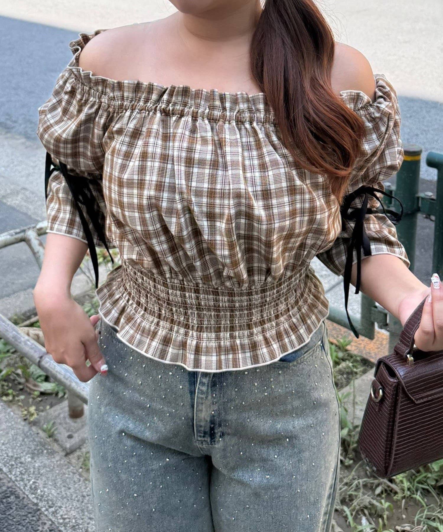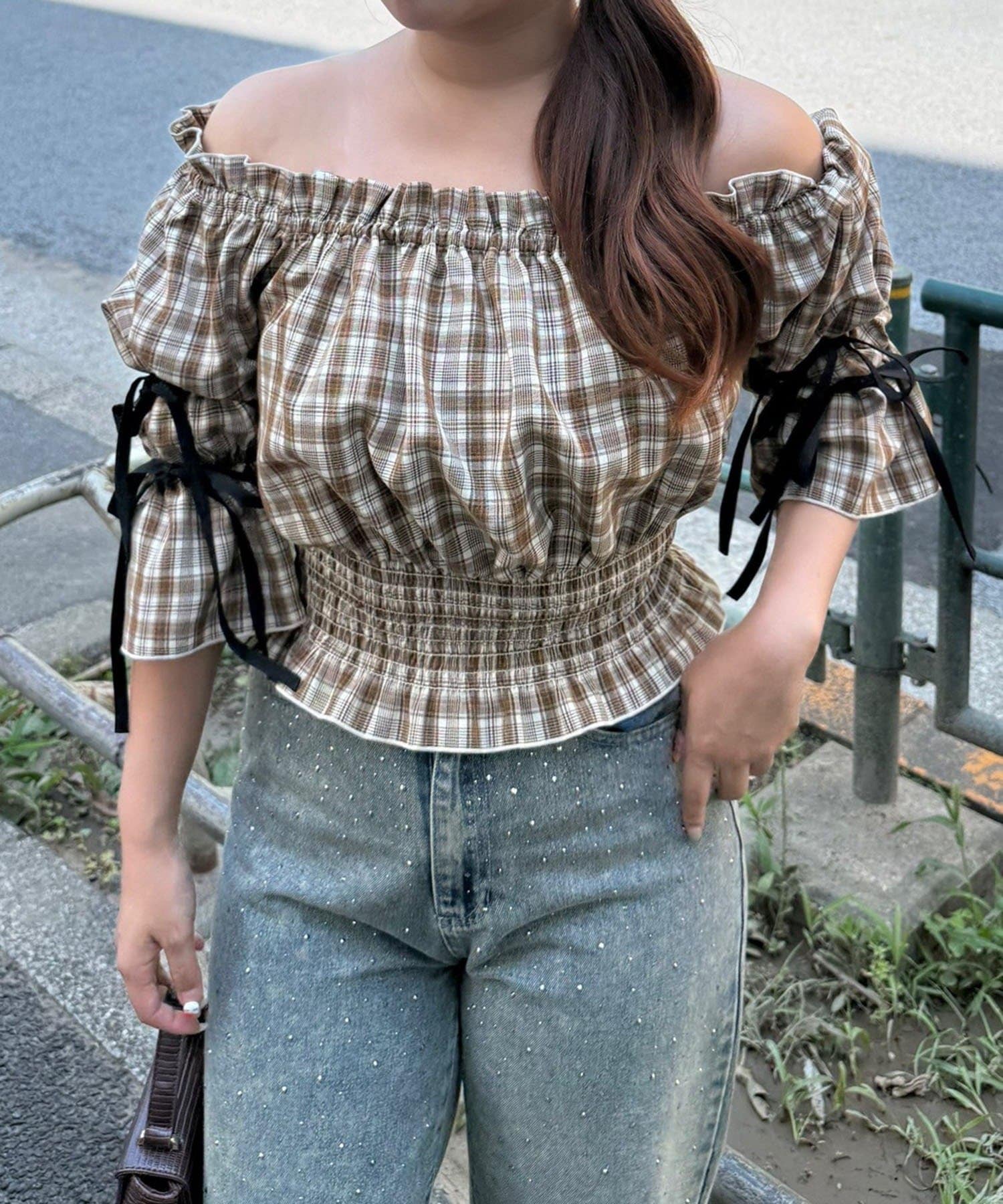 ・ショルダー部分はゴムになっているので、オフショルとしても着用可能です!