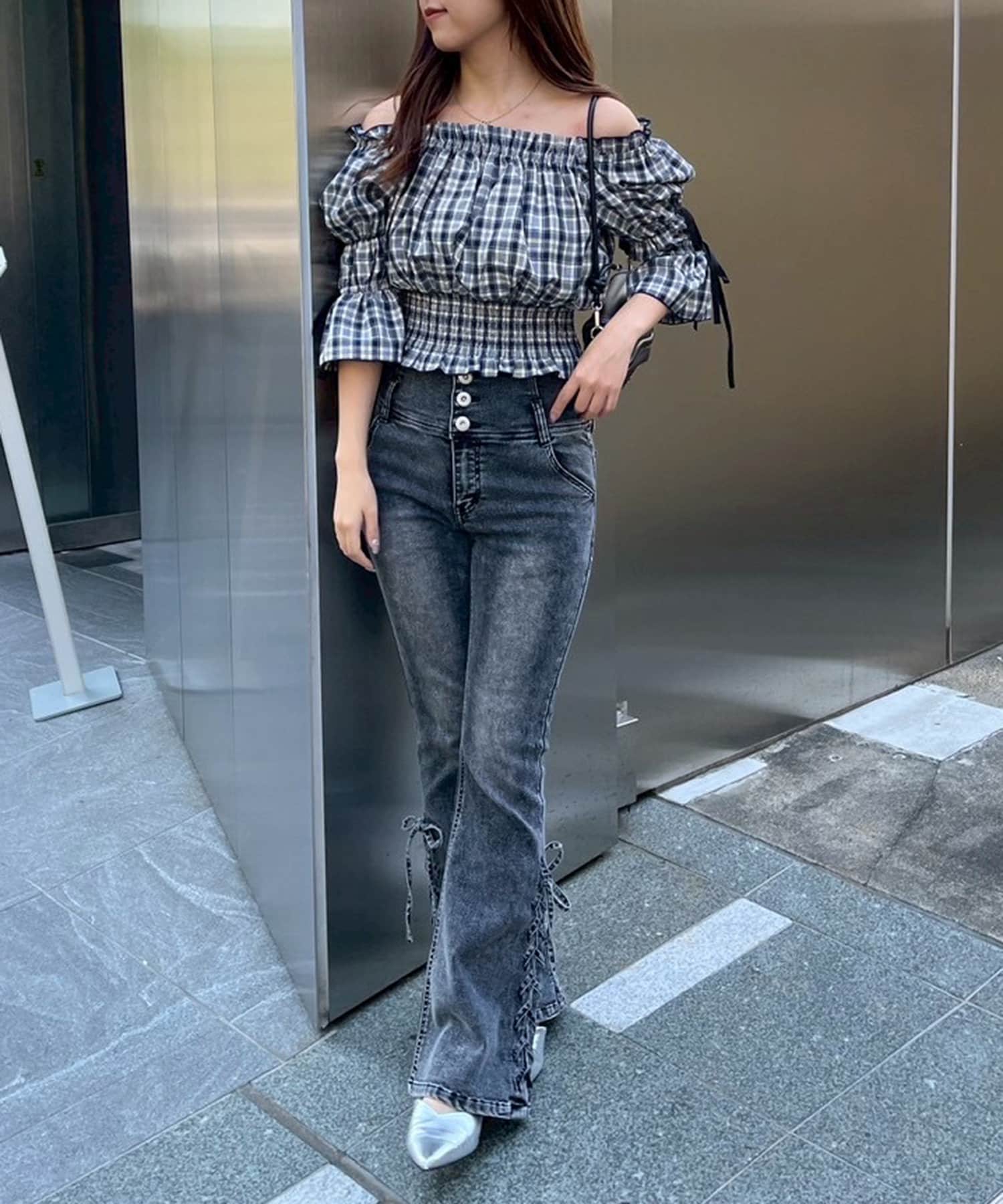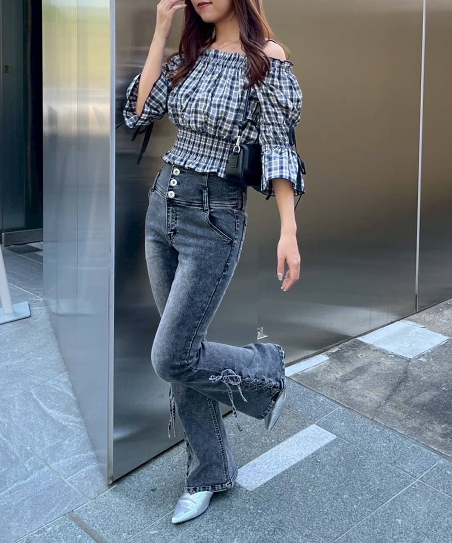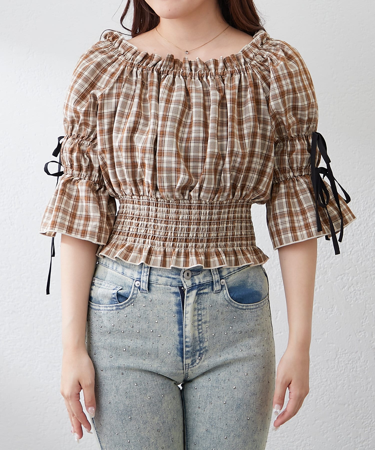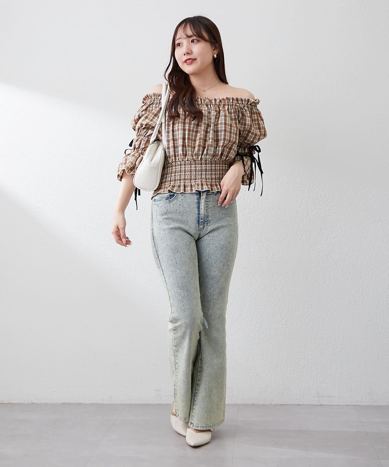 ・ショルダー部分はゴムになっているので、オフショルとしても着用可能です!