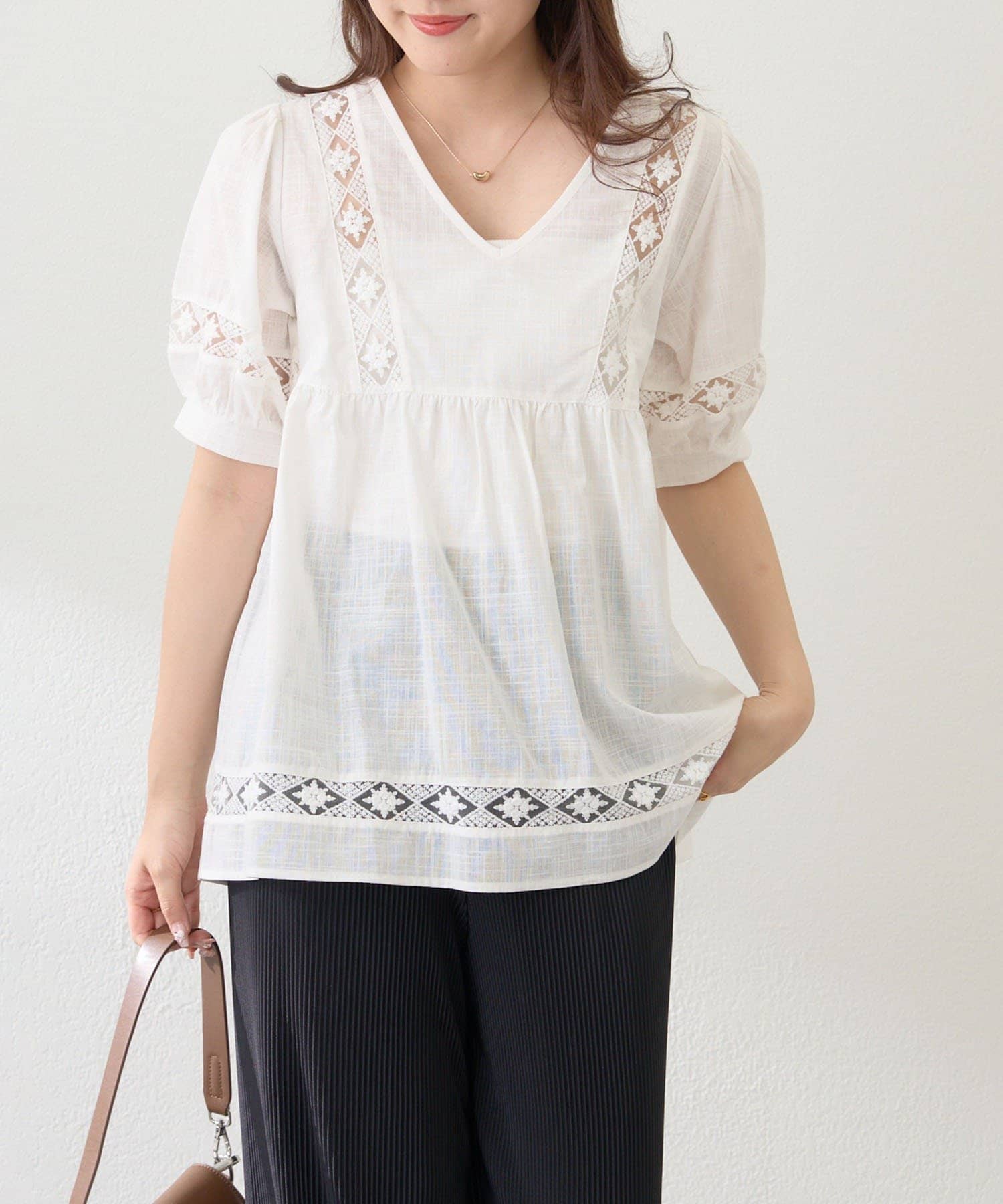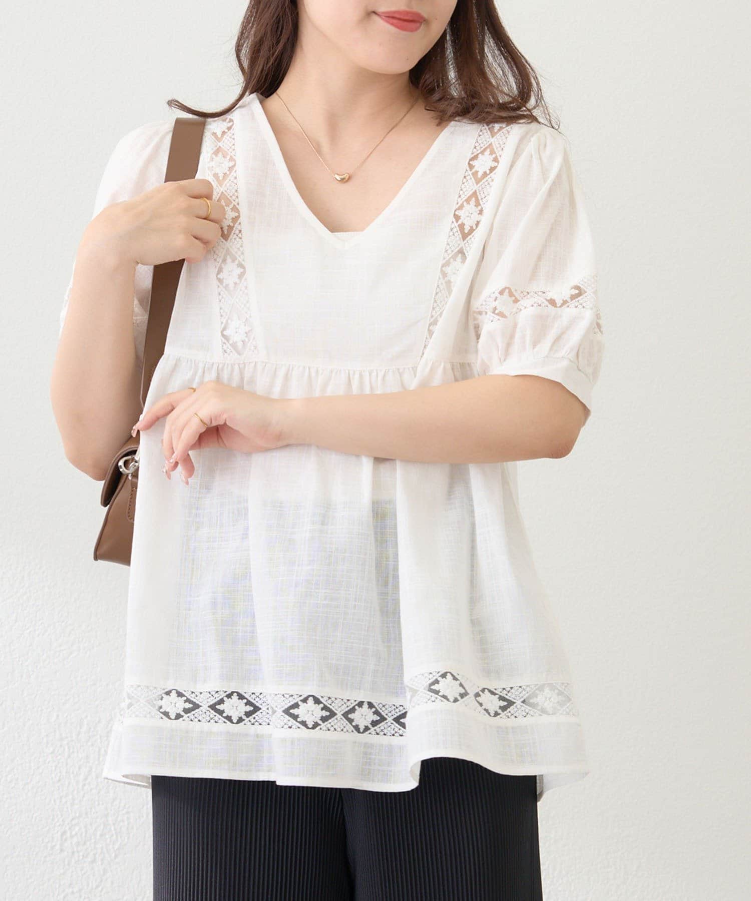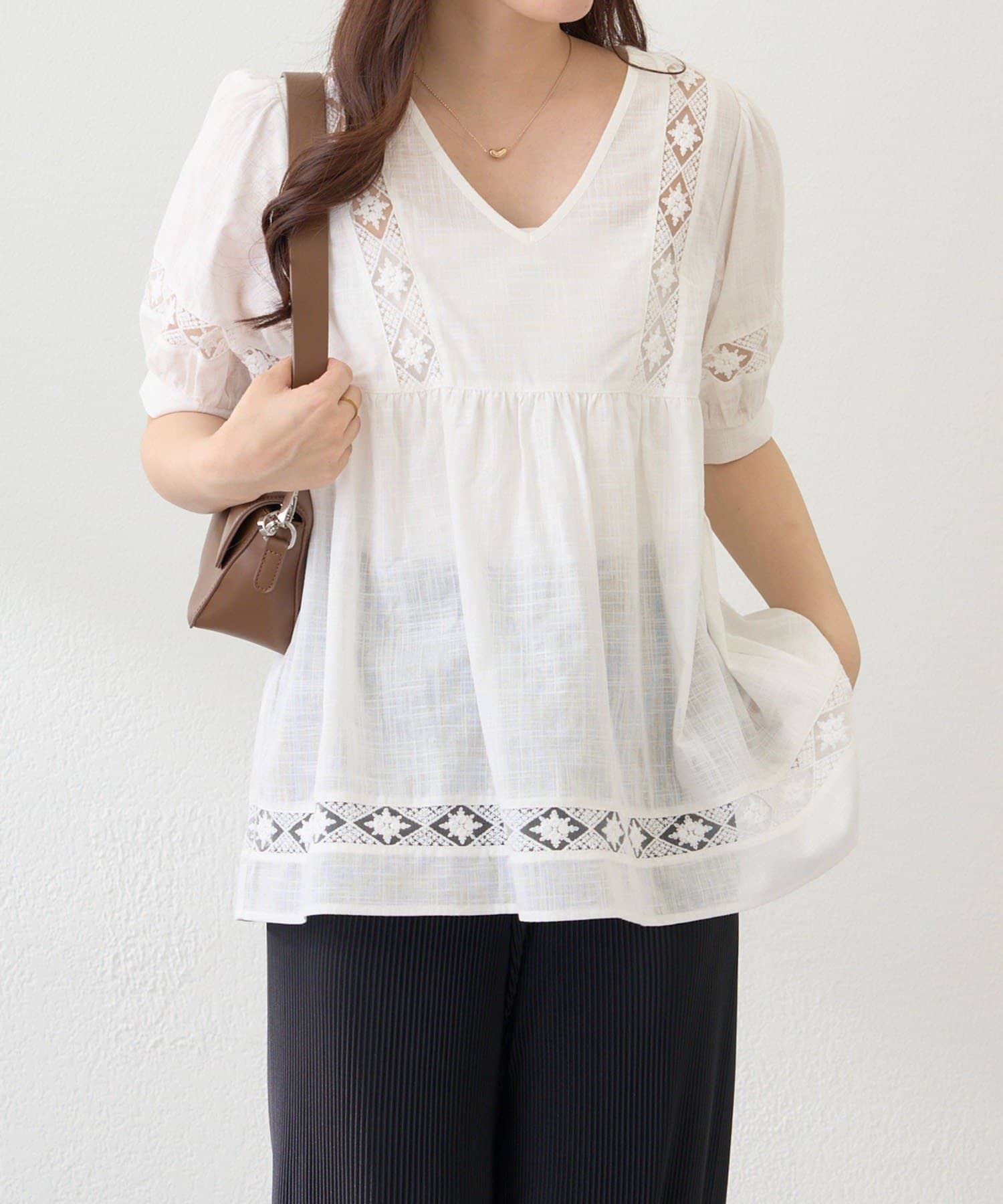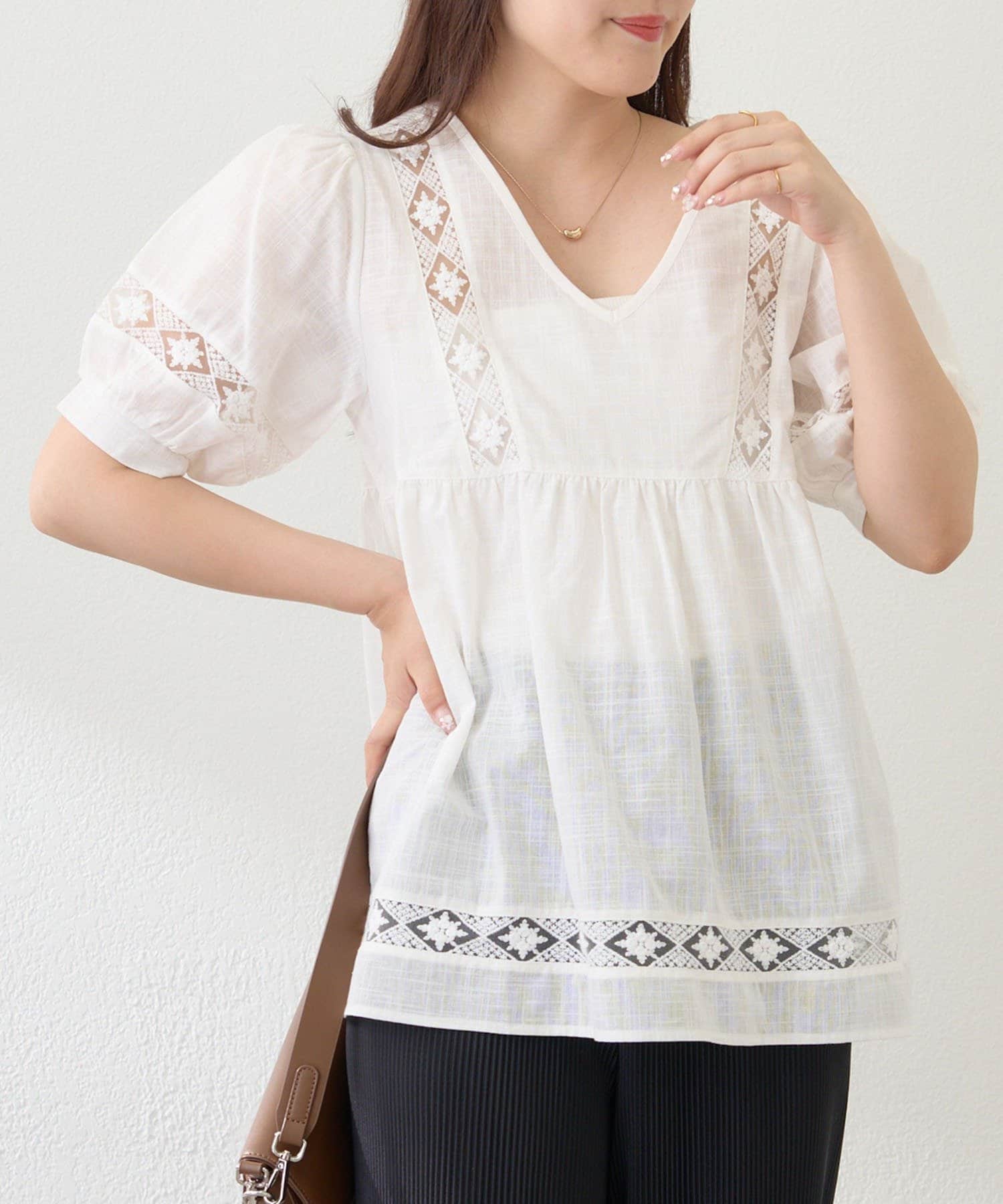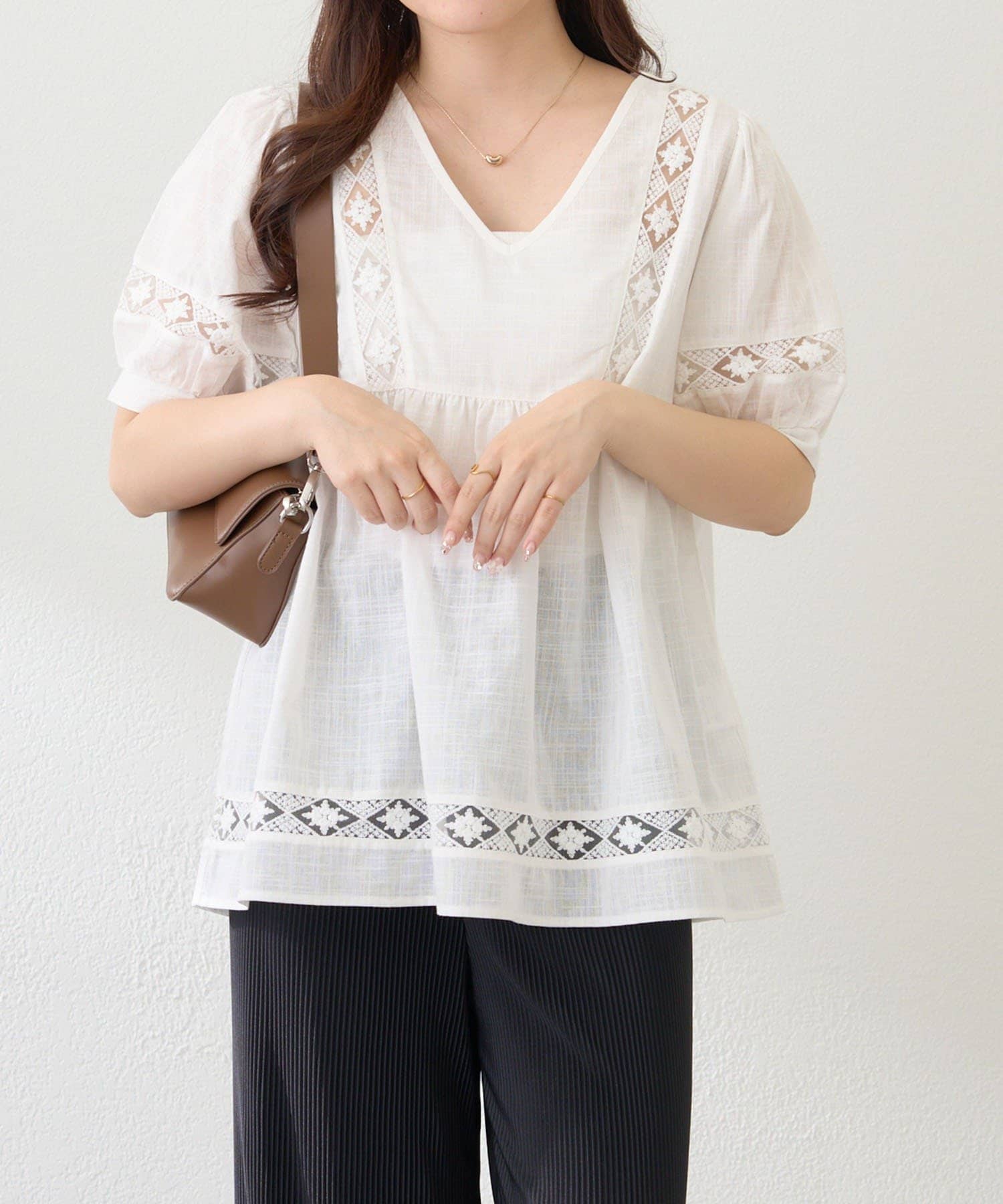 TOP > Remind me and forever > レディース > トップス > シャツ/ブラウス(ボタン) > ハシゴレース切替ブラウス