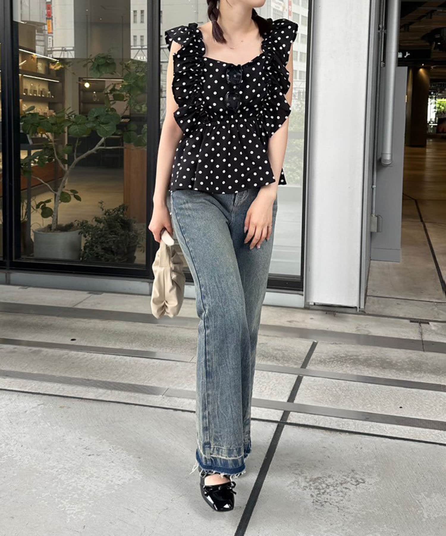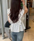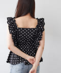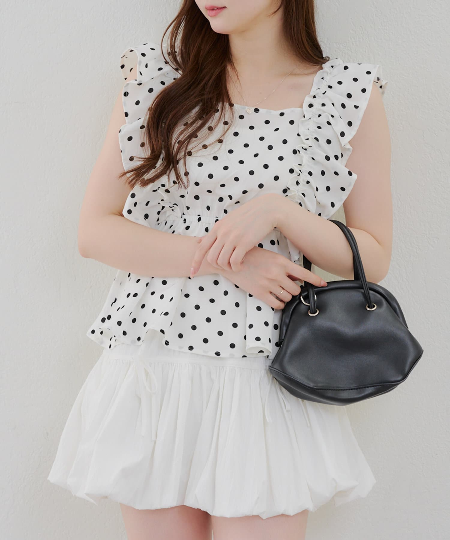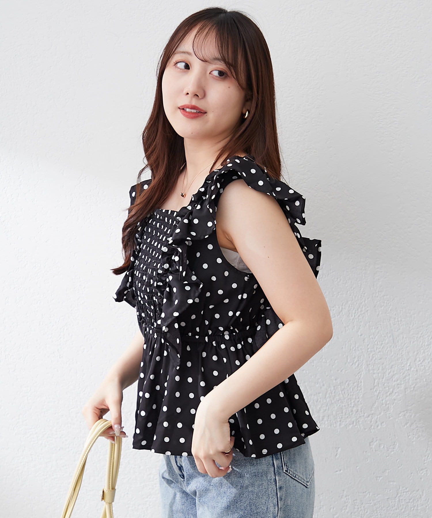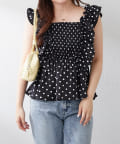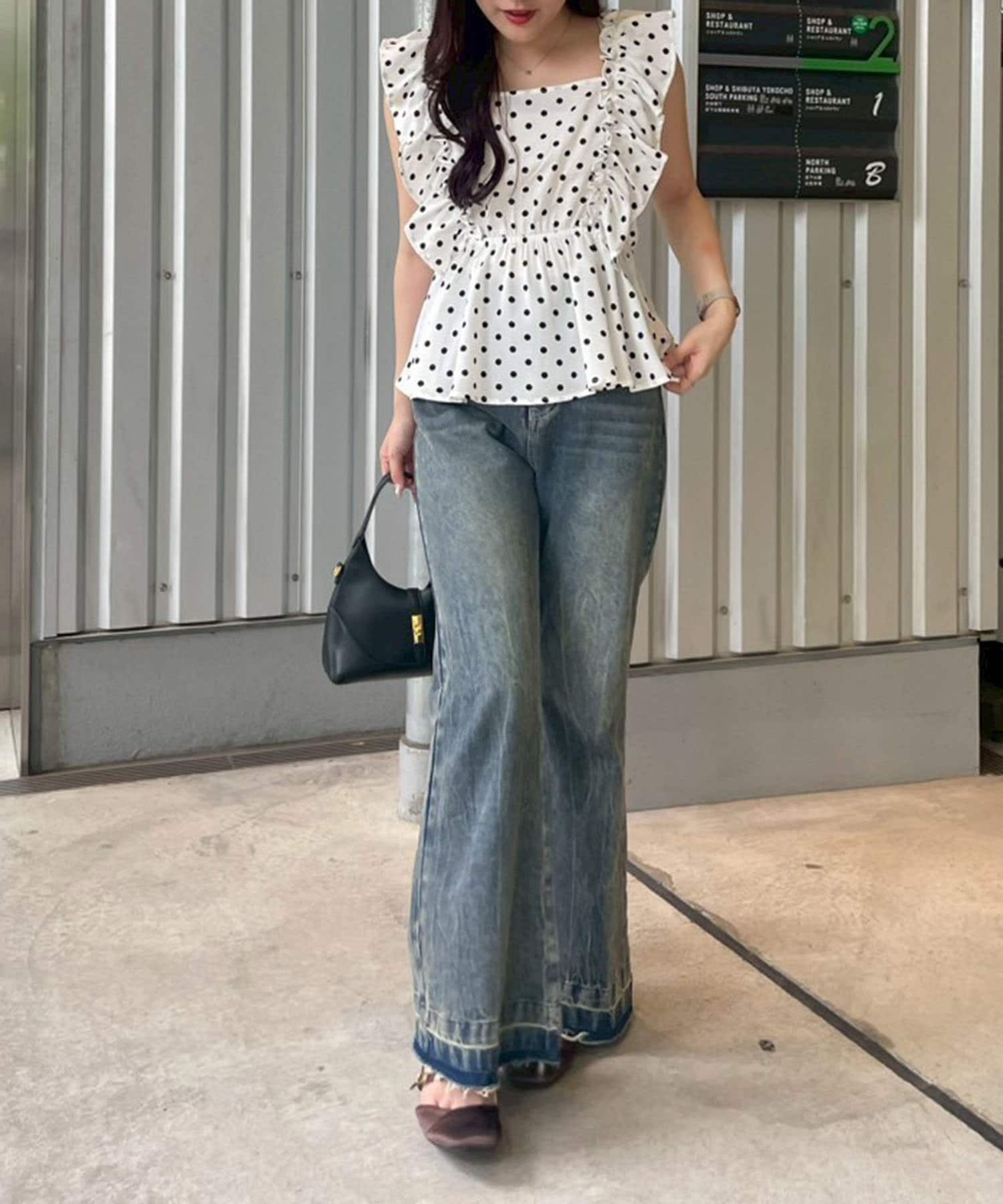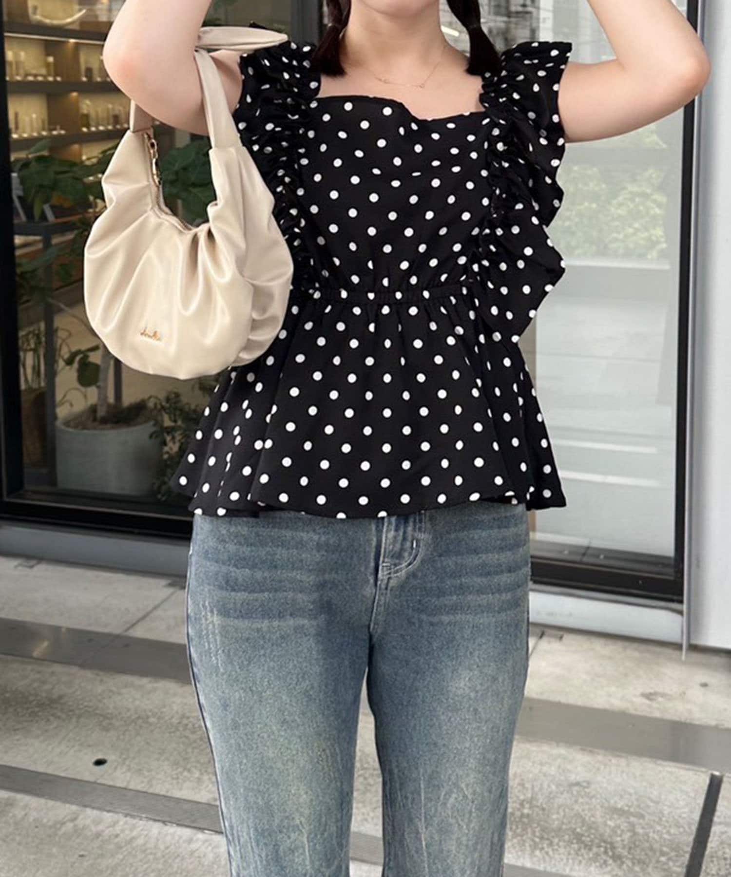 ・コーデの主役になるドット柄のガーリーなブラウス。