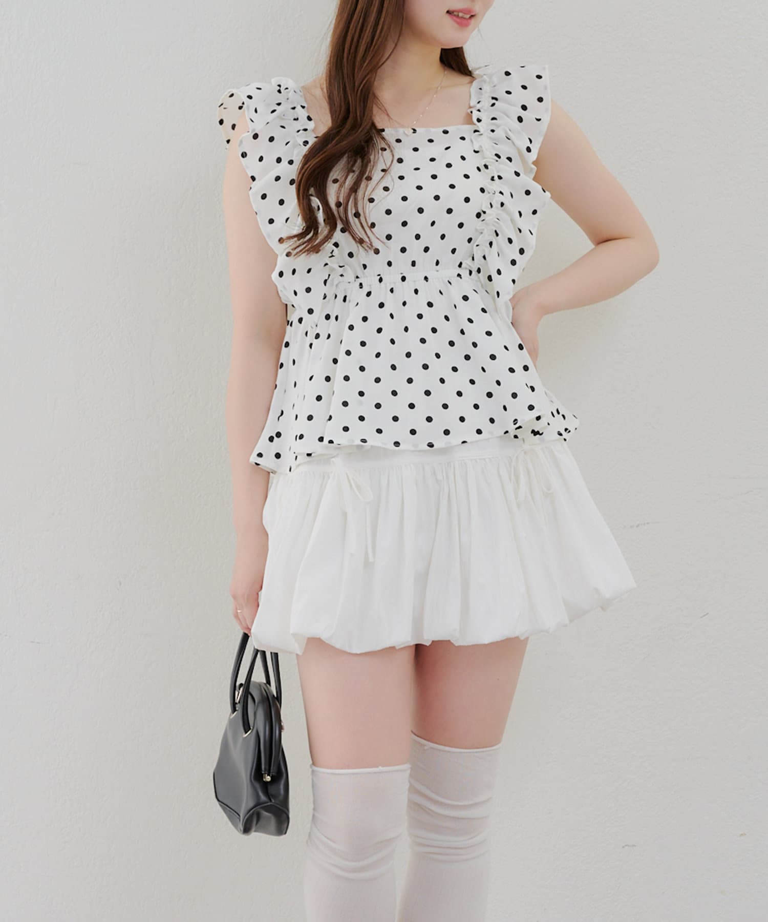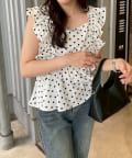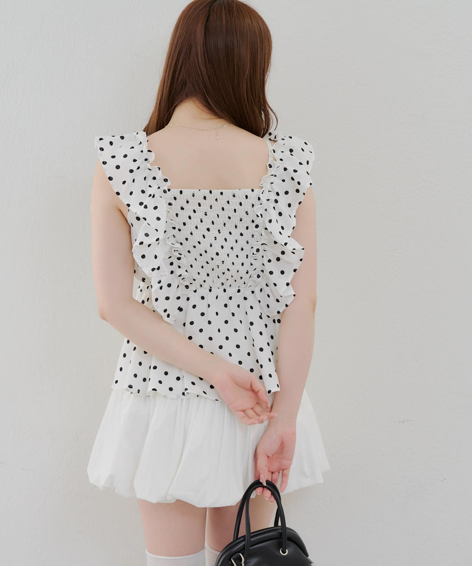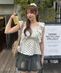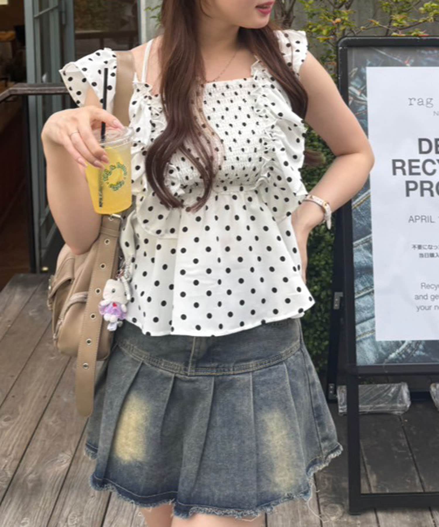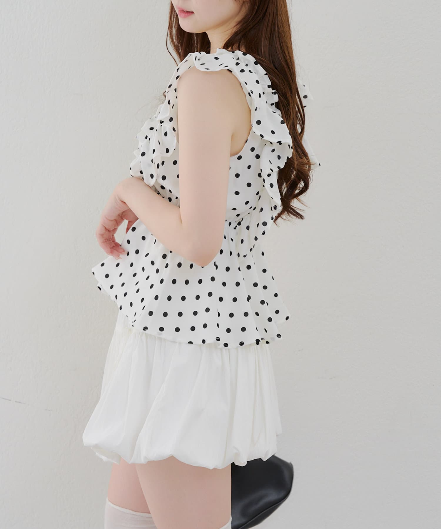 ・コーデの主役になるドット柄のガーリーなブラウス。