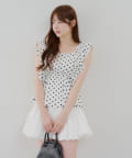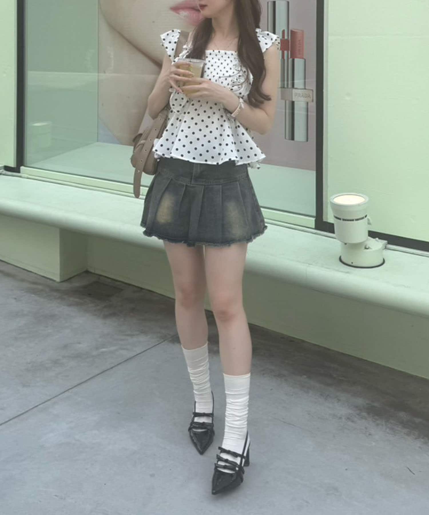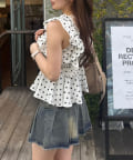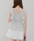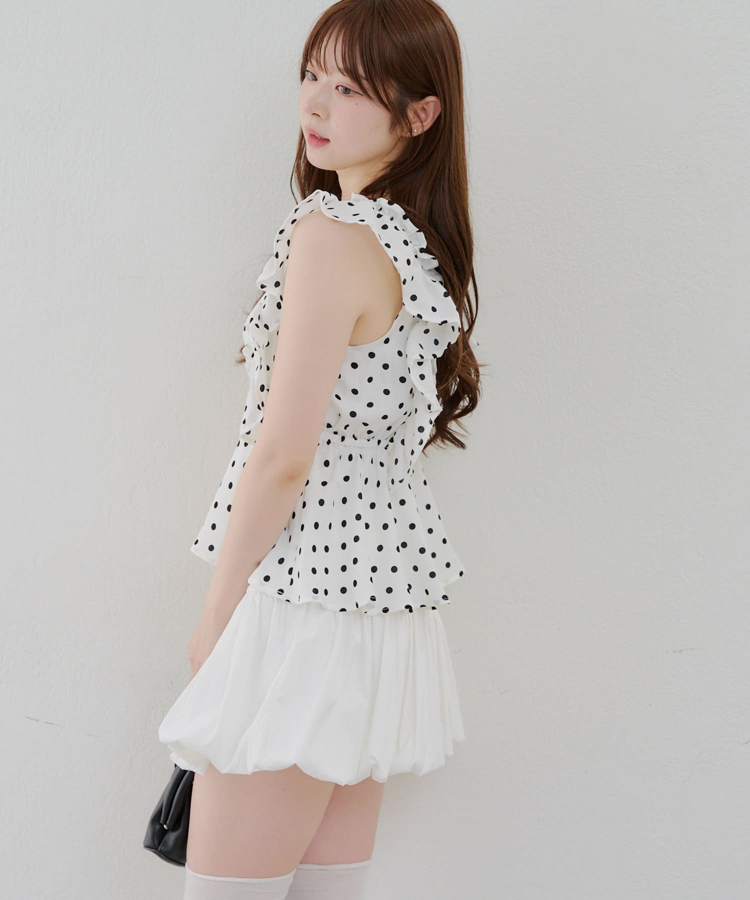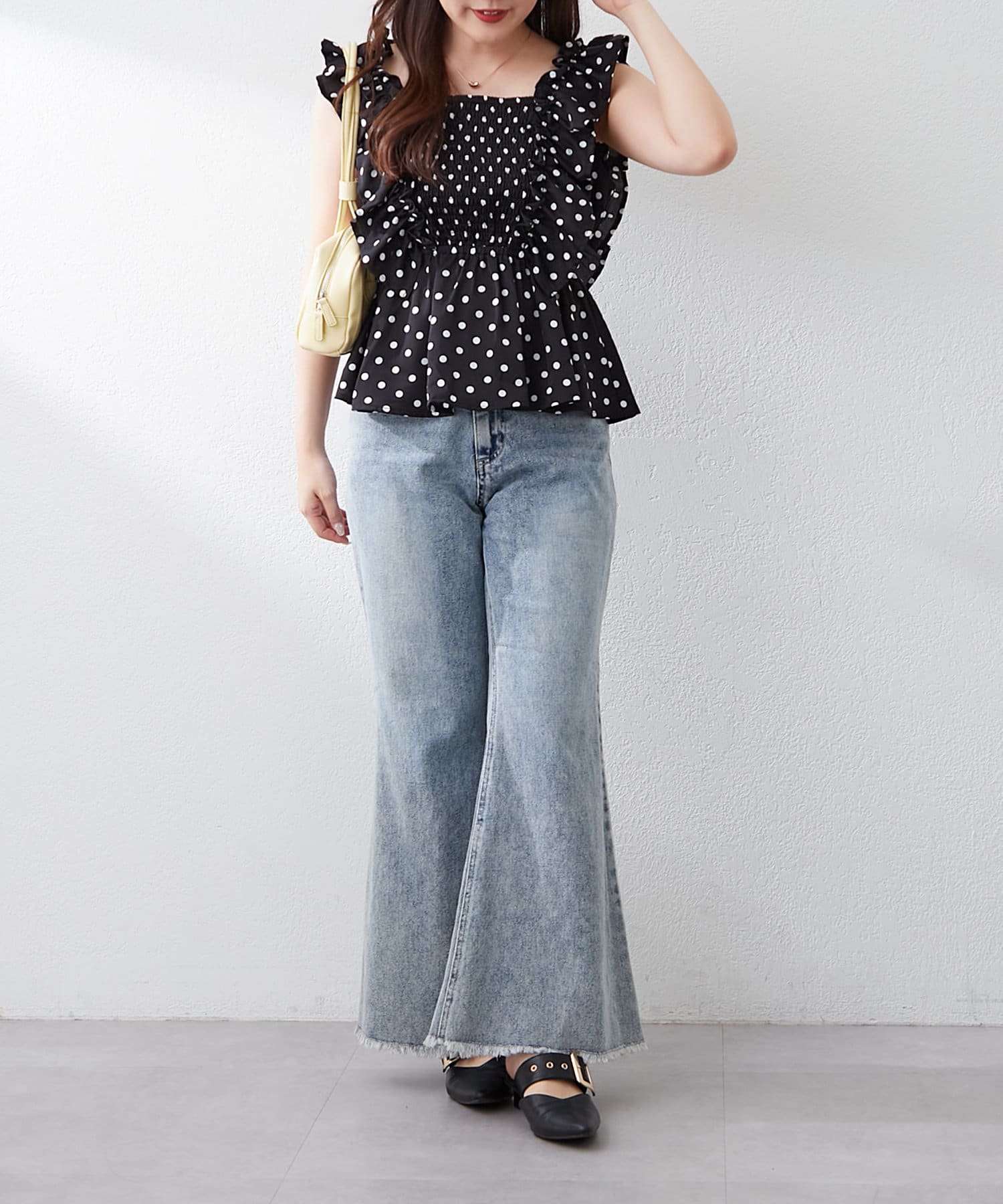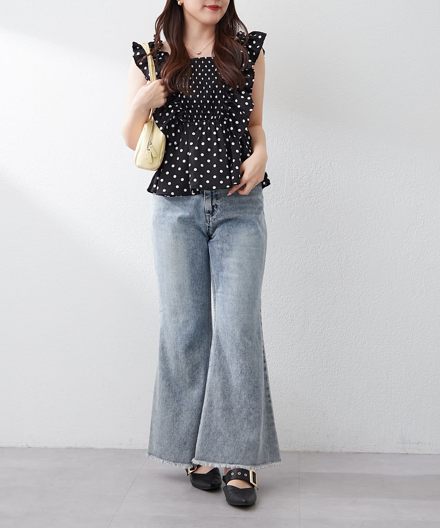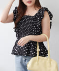 ・コーデの主役になるドット柄のガーリーなブラウス。