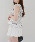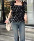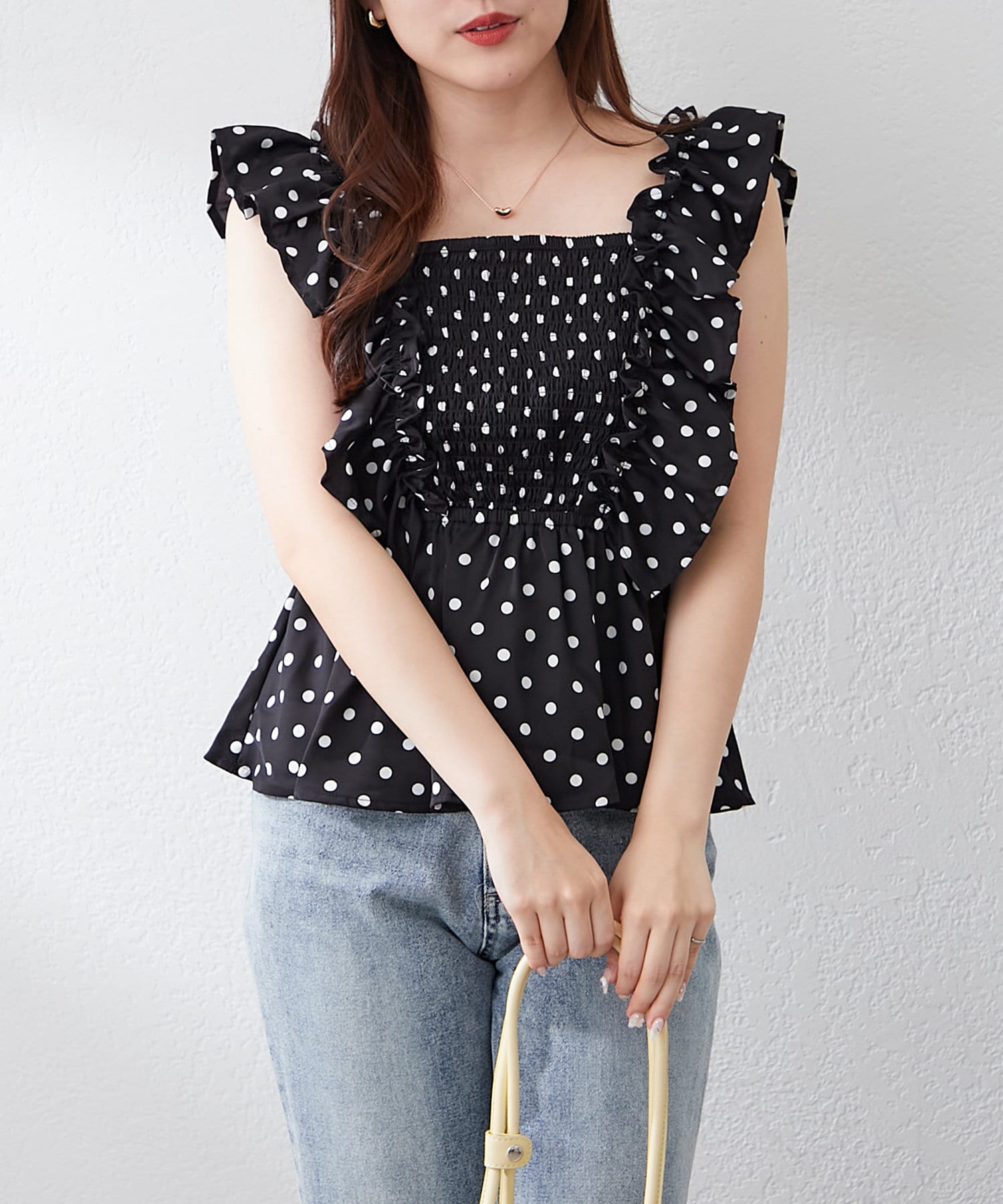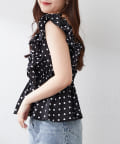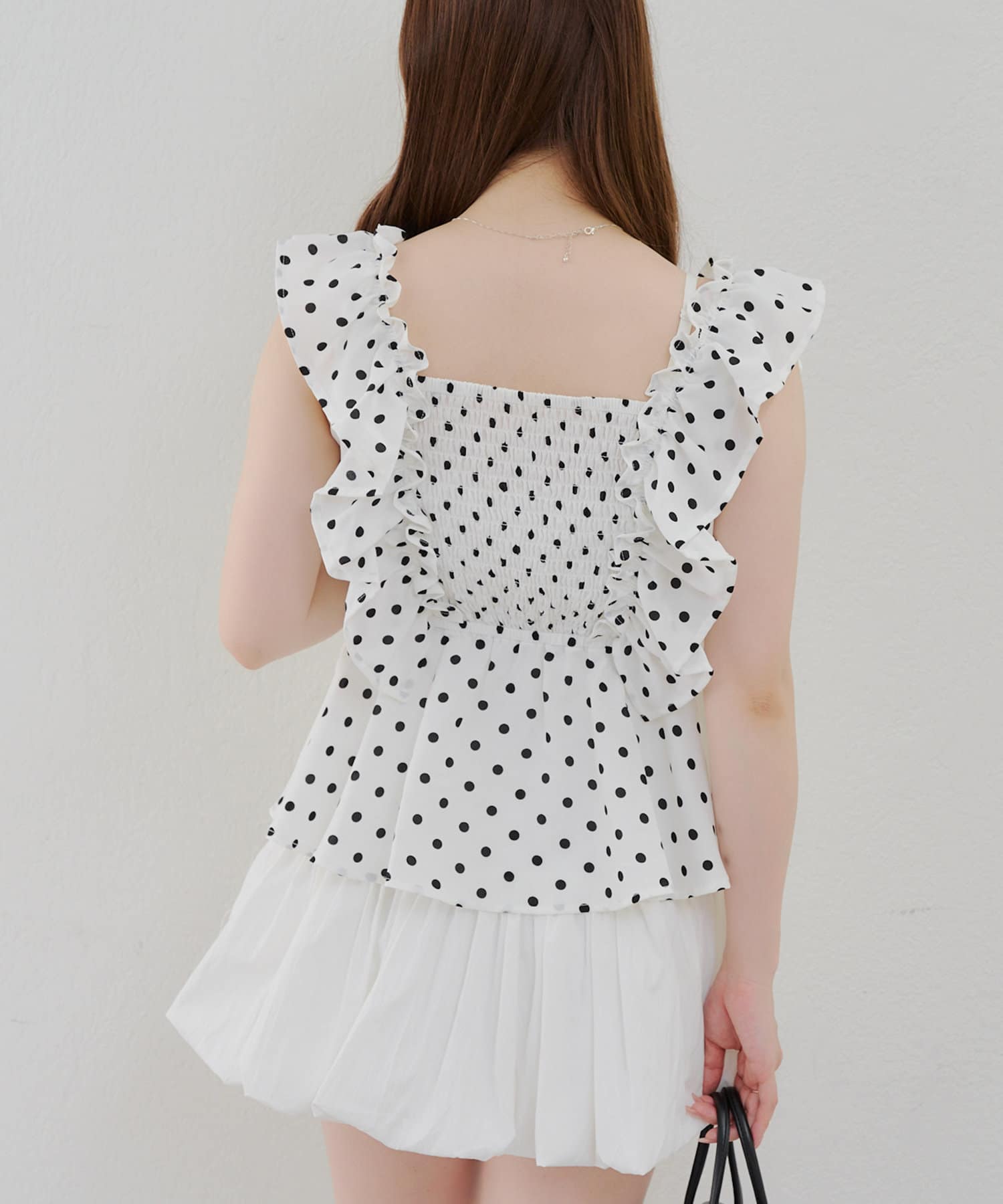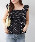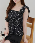 【前後2WAY/ドット柄】シャーリングドット柄ブラウス