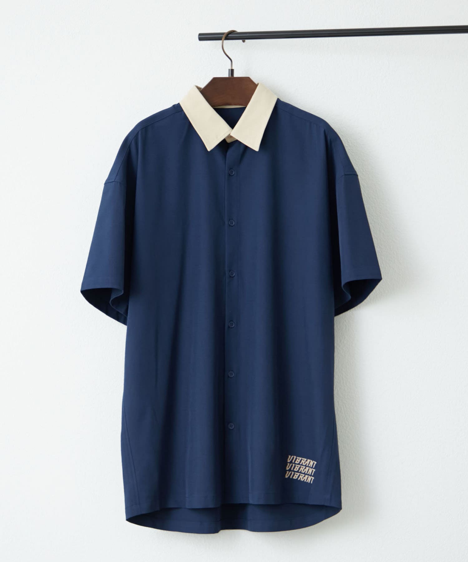 ・シンプルなシャツブラウスデザインながら、衿を異素材配色にしアクセント