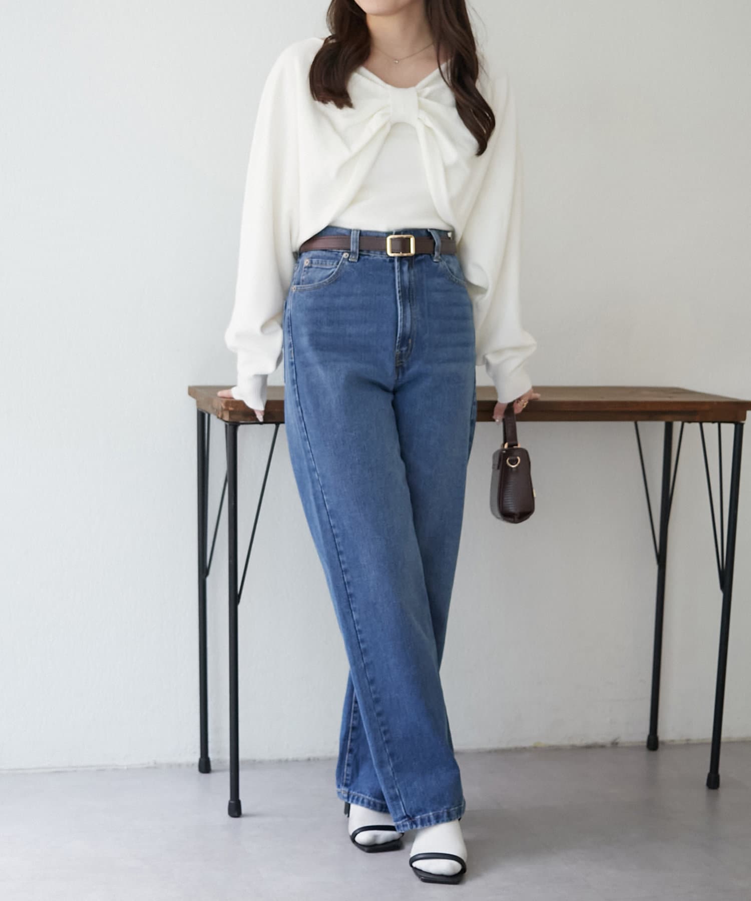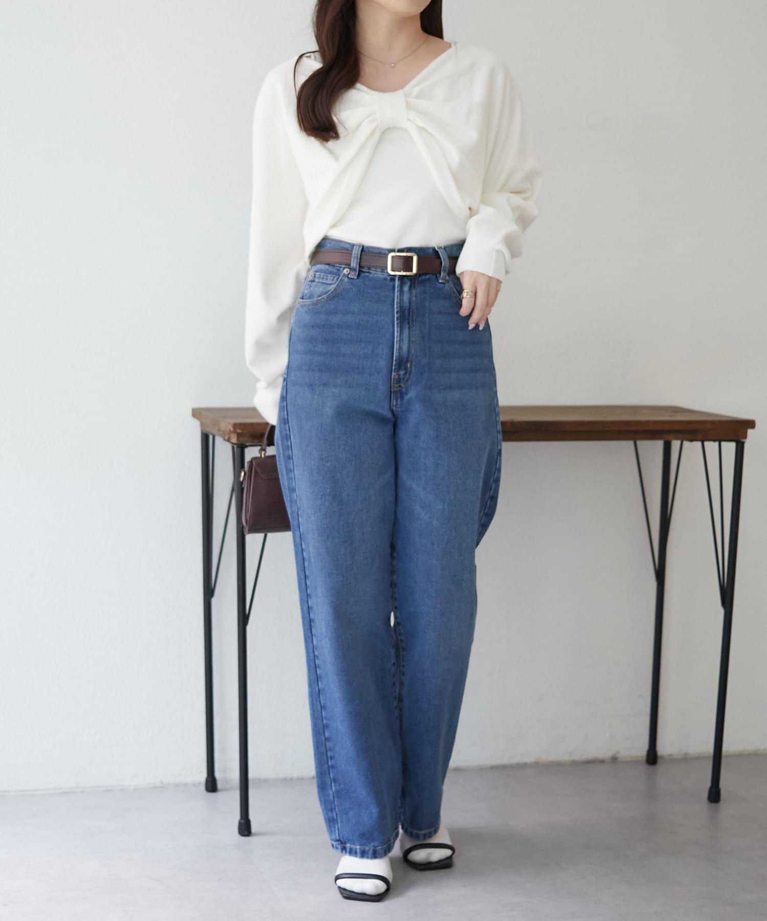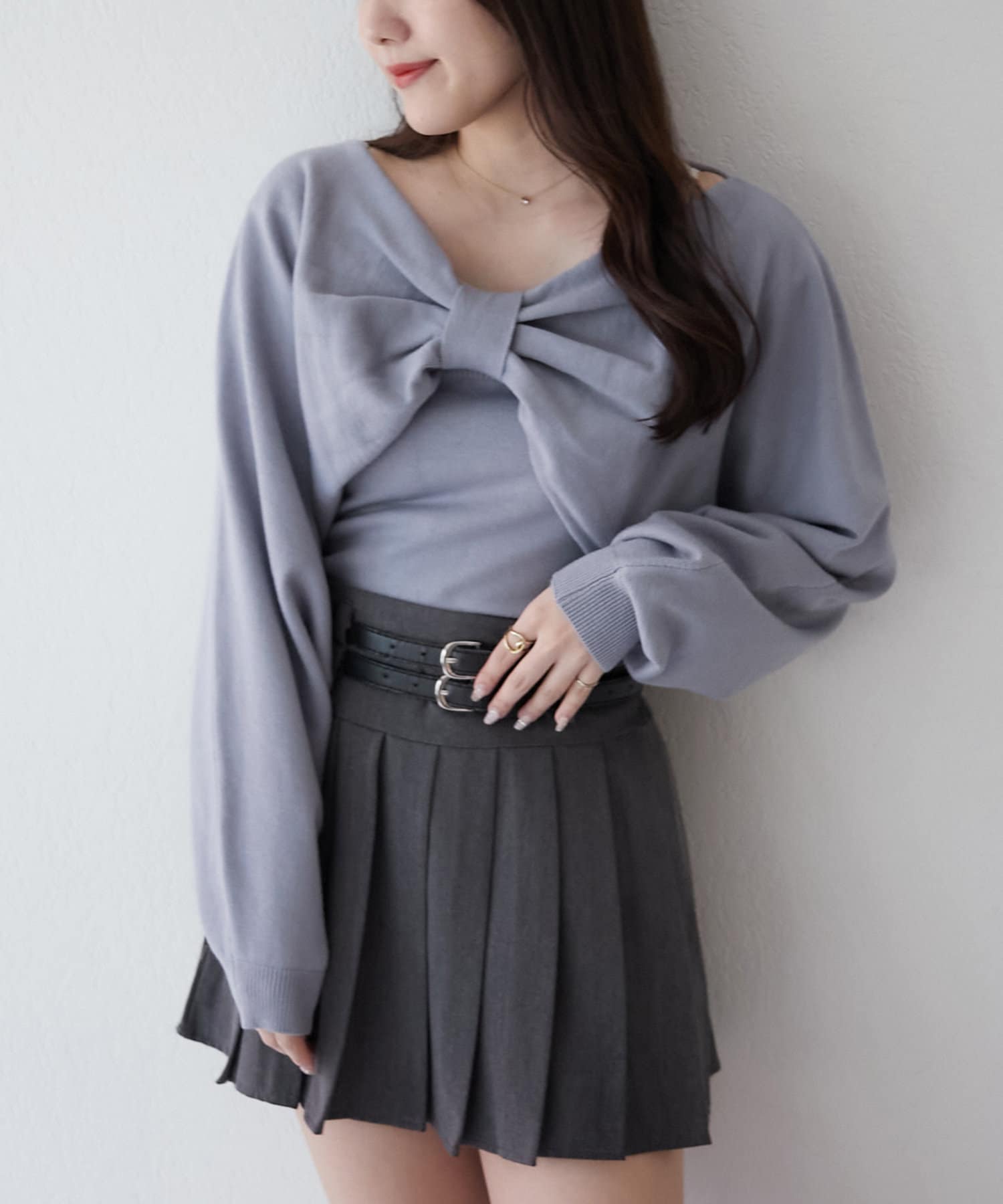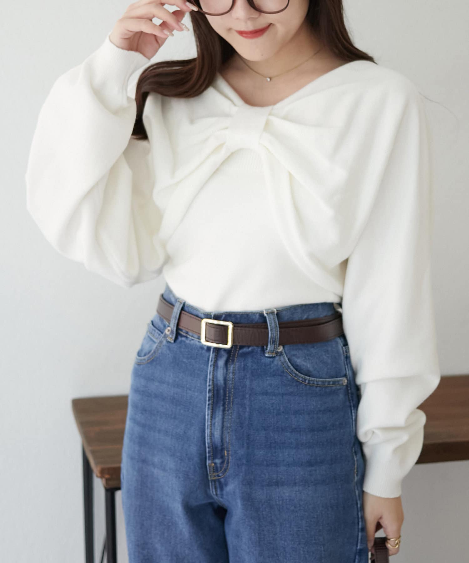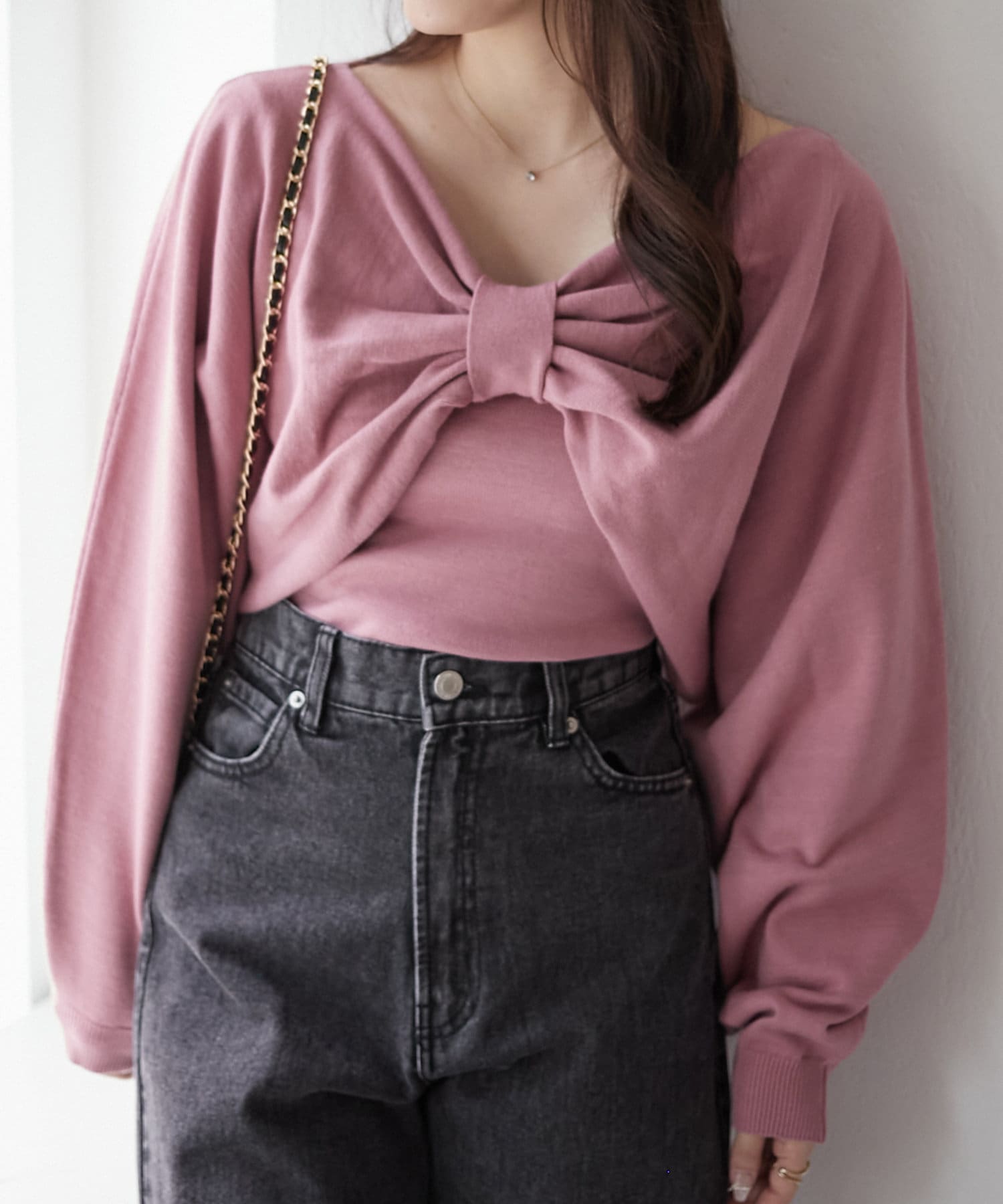 ・リボンモチーフが可愛いトップスは前と後ろを逆にしても着用可能で、雰囲気を変えて着られるので着回し力抜群◎