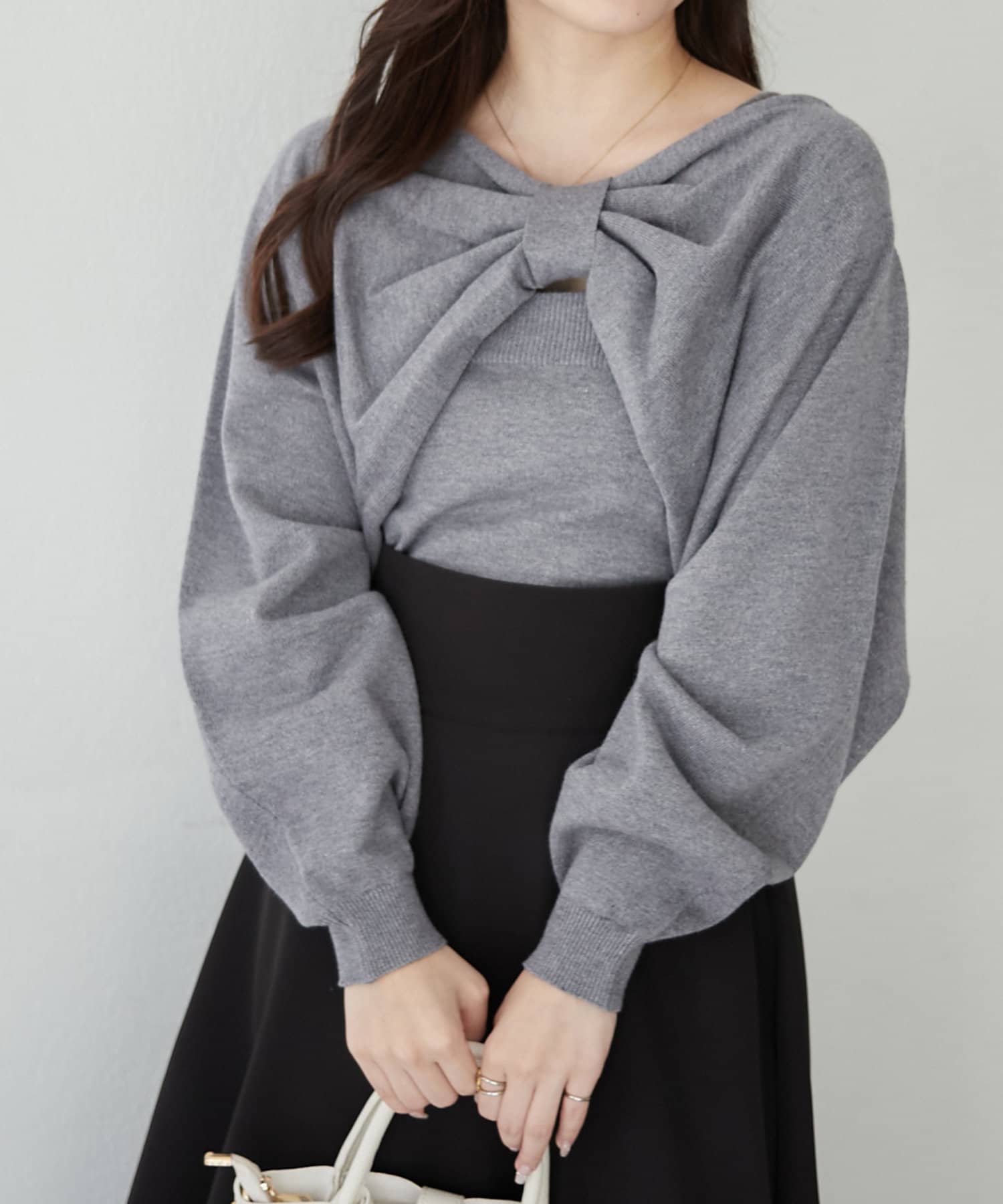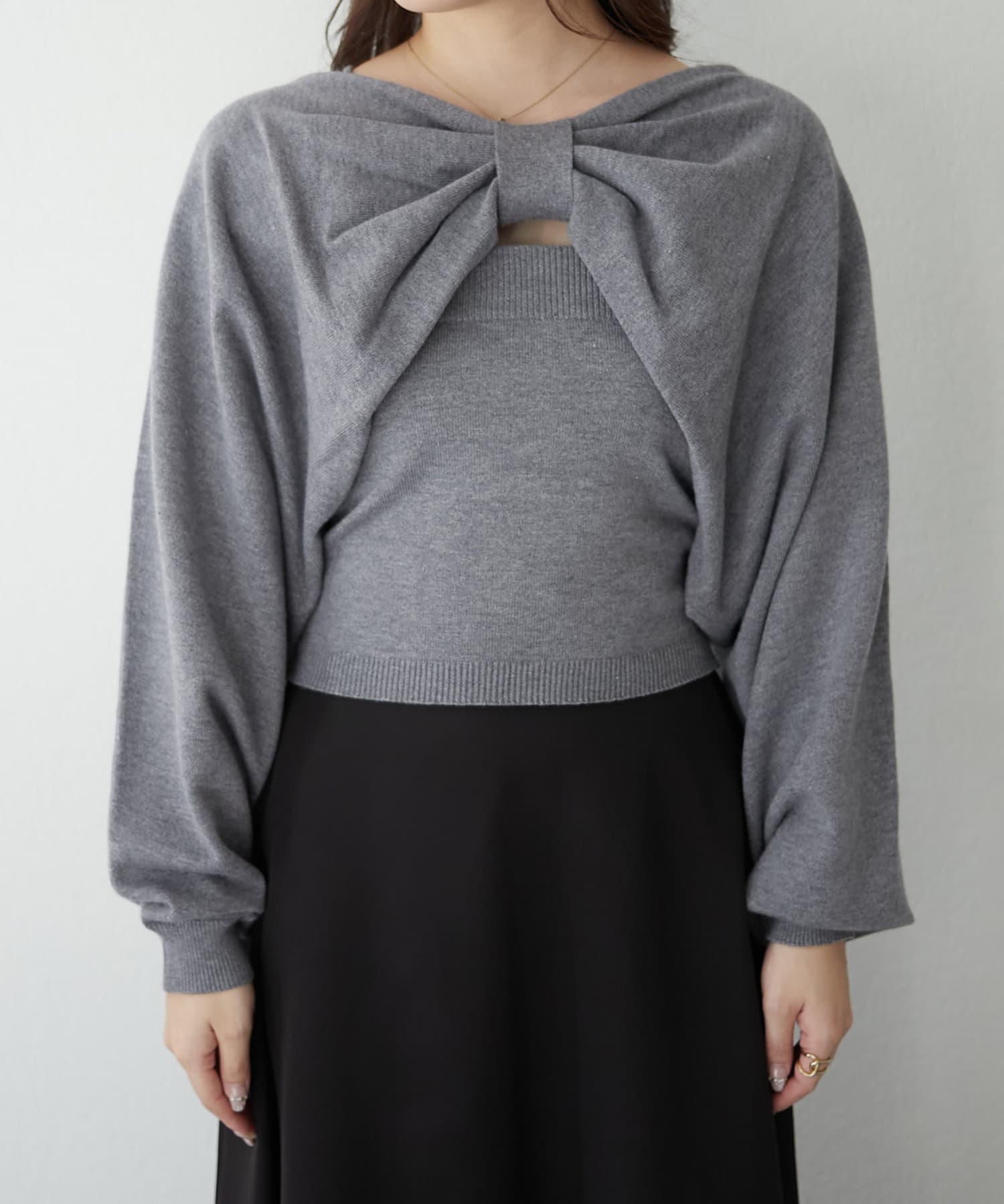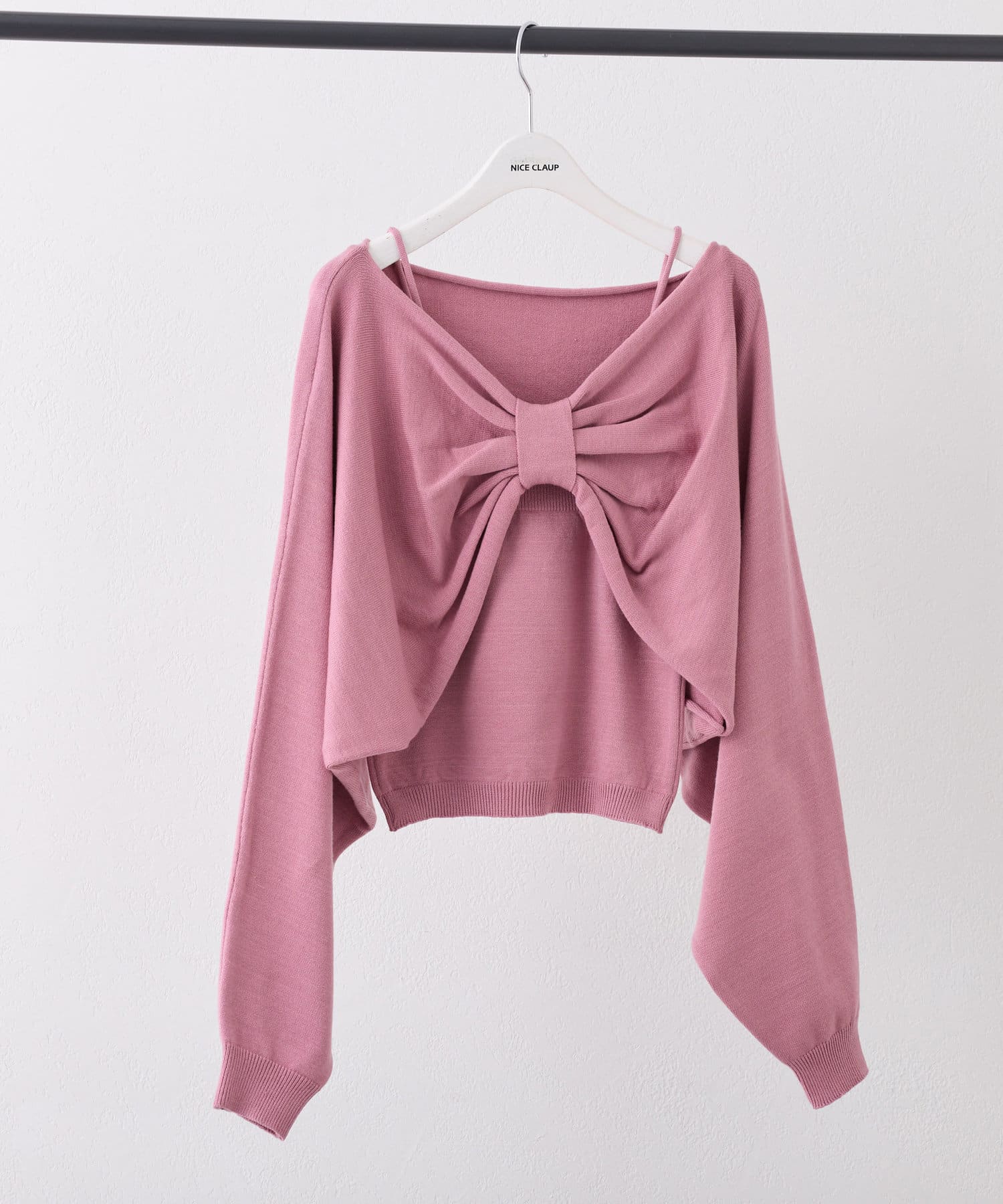 【春の新作】【OUTLET限定】リボンニット+キャミ