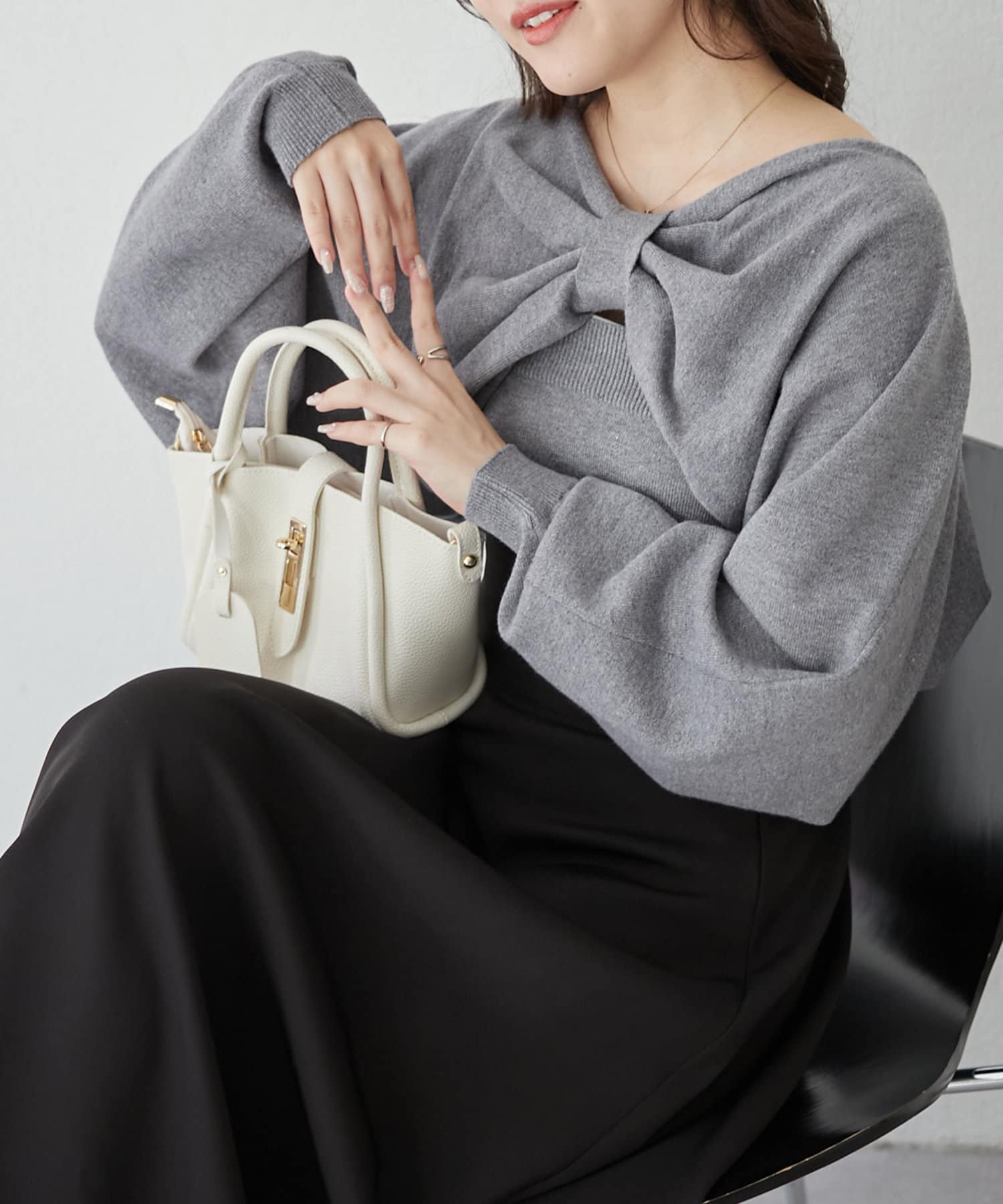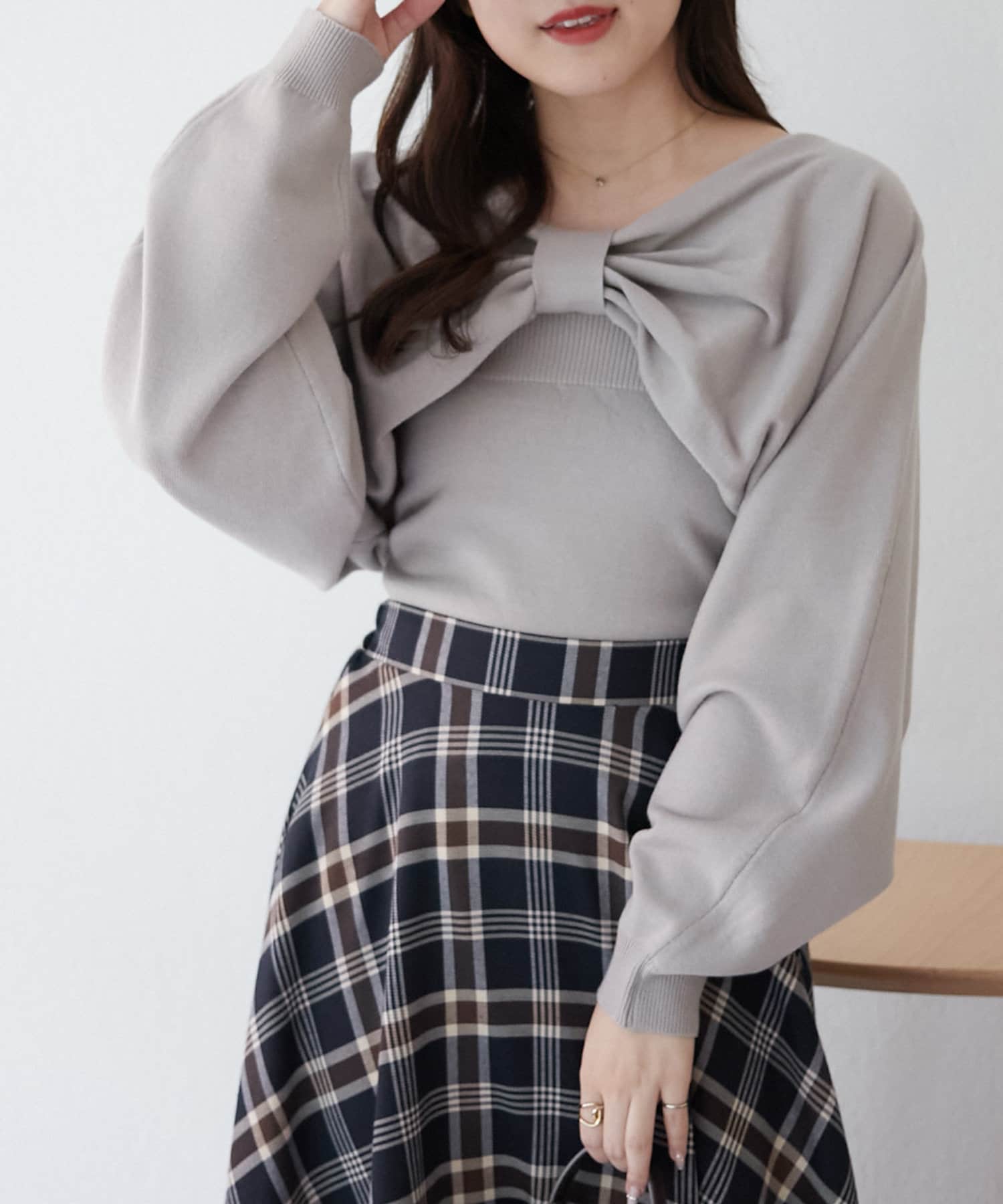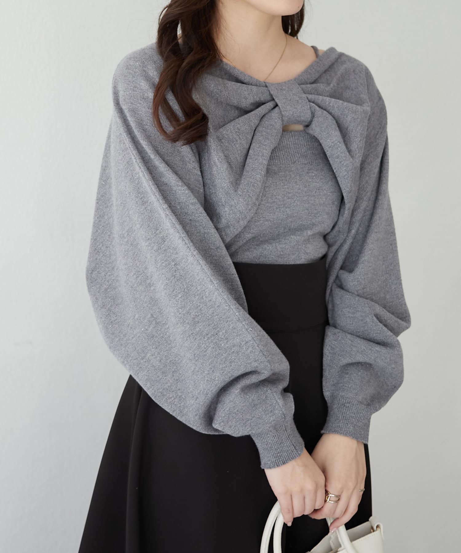 【春の新作】【OUTLET限定】リボンニット+キャミ
