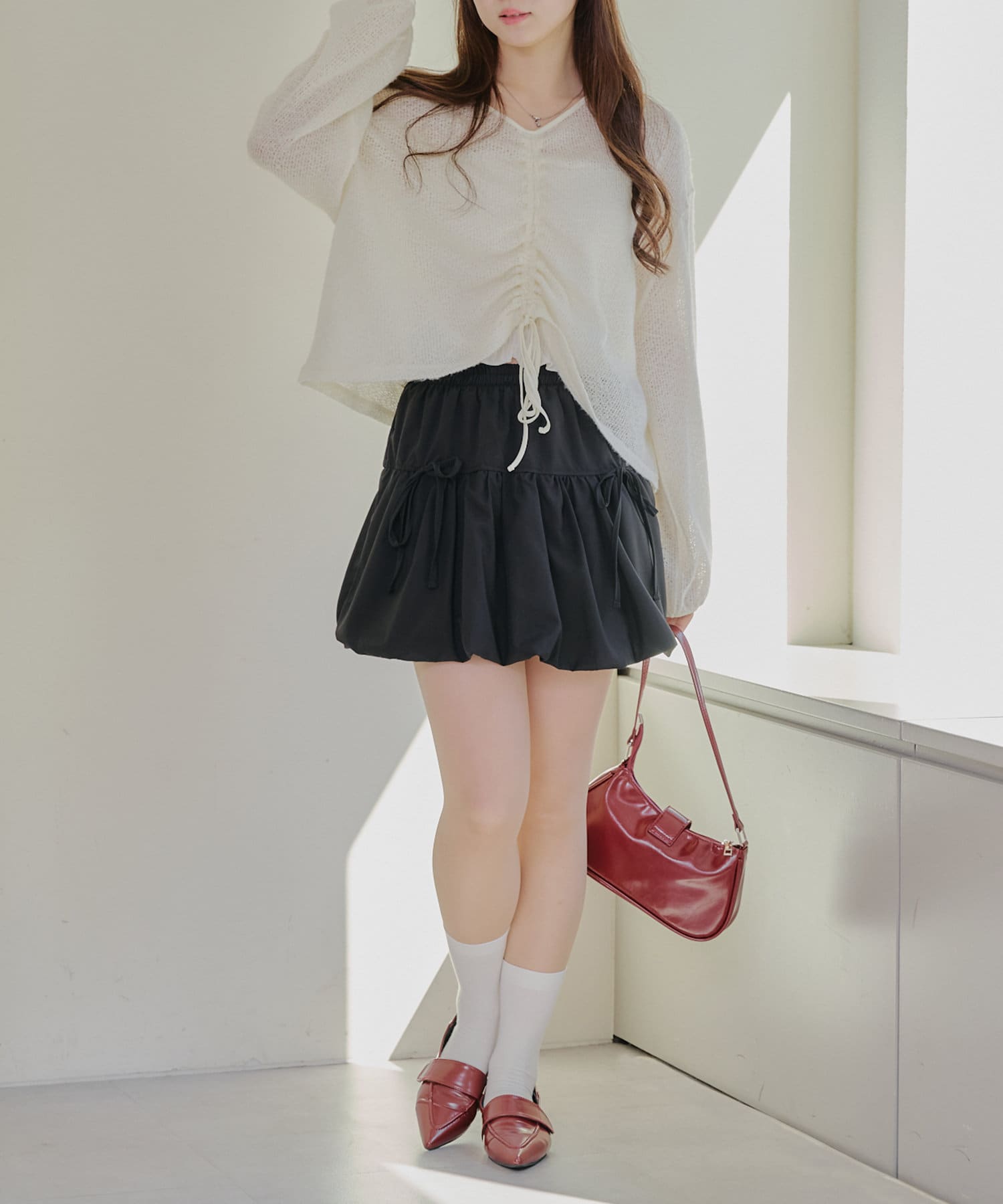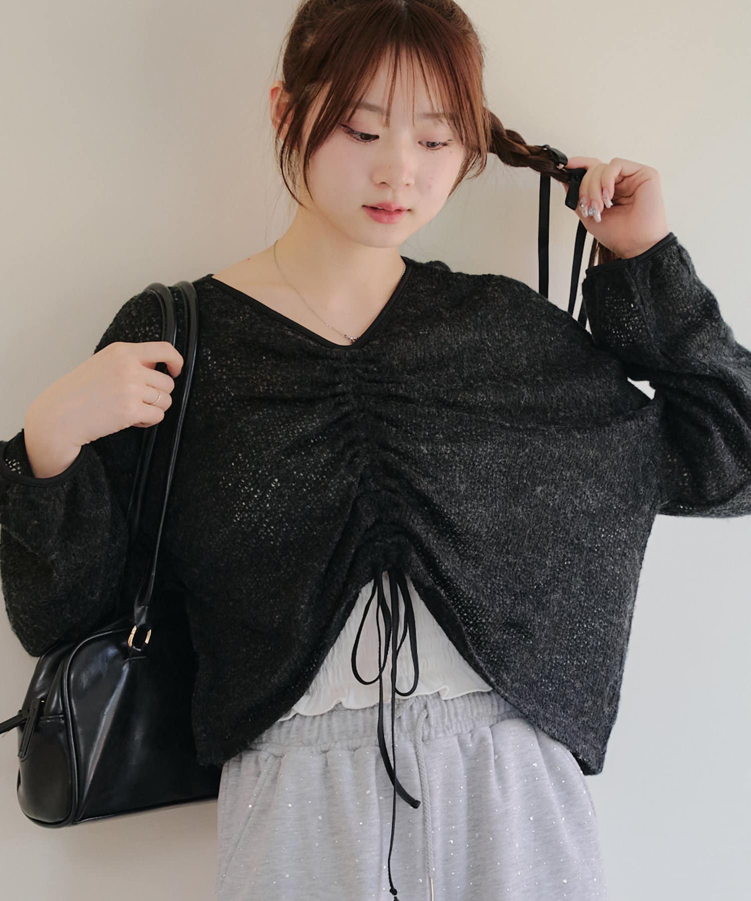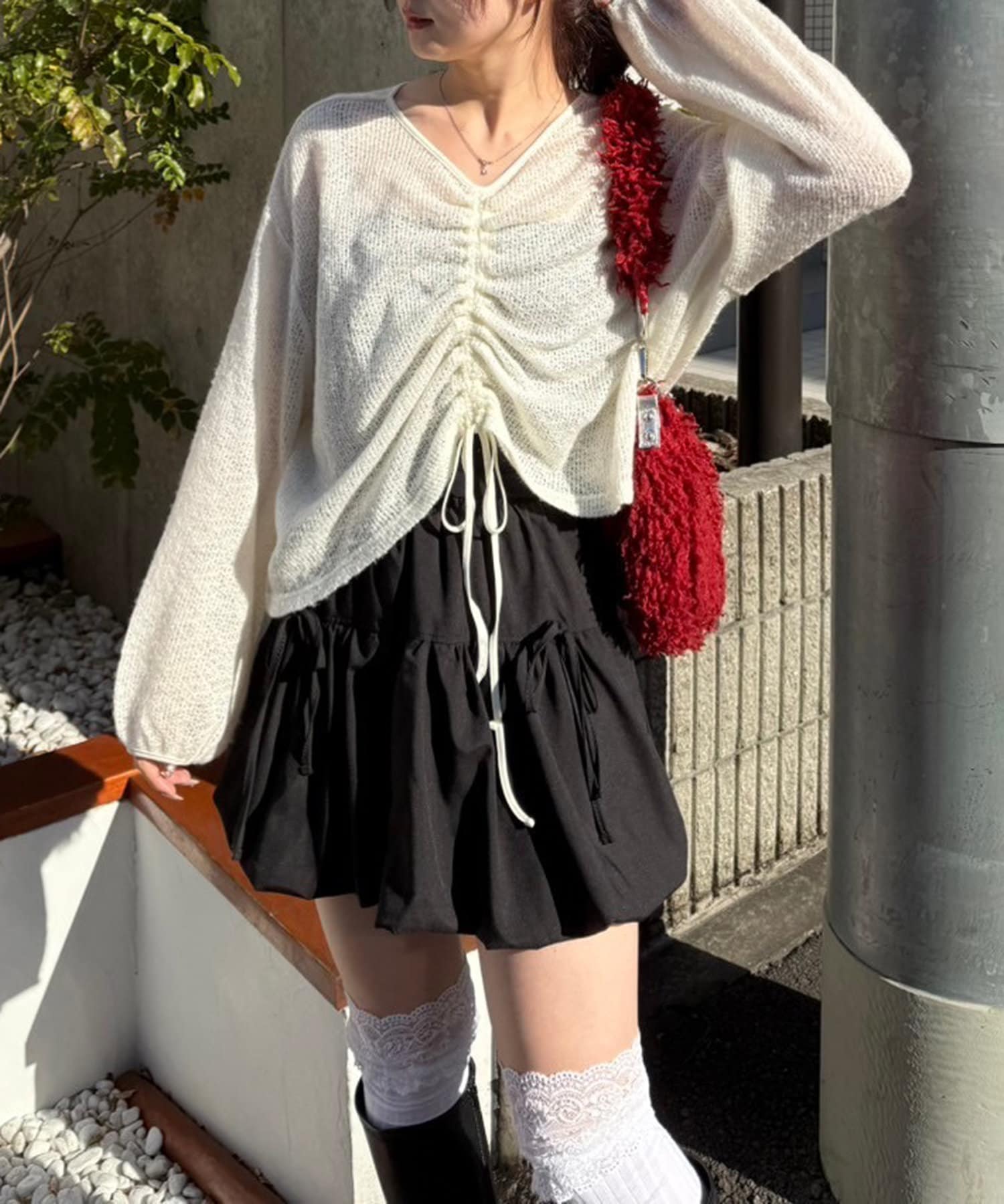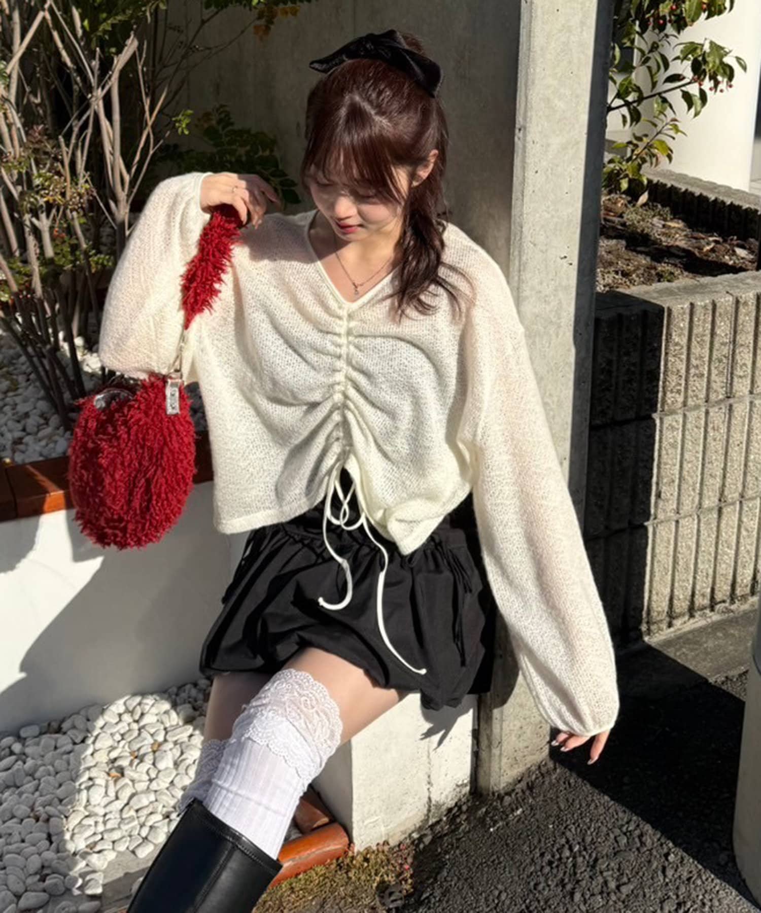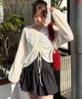・フロントをくしゅっと短くして、ハイウエストのボトムと合わせるのがおすすめ♪