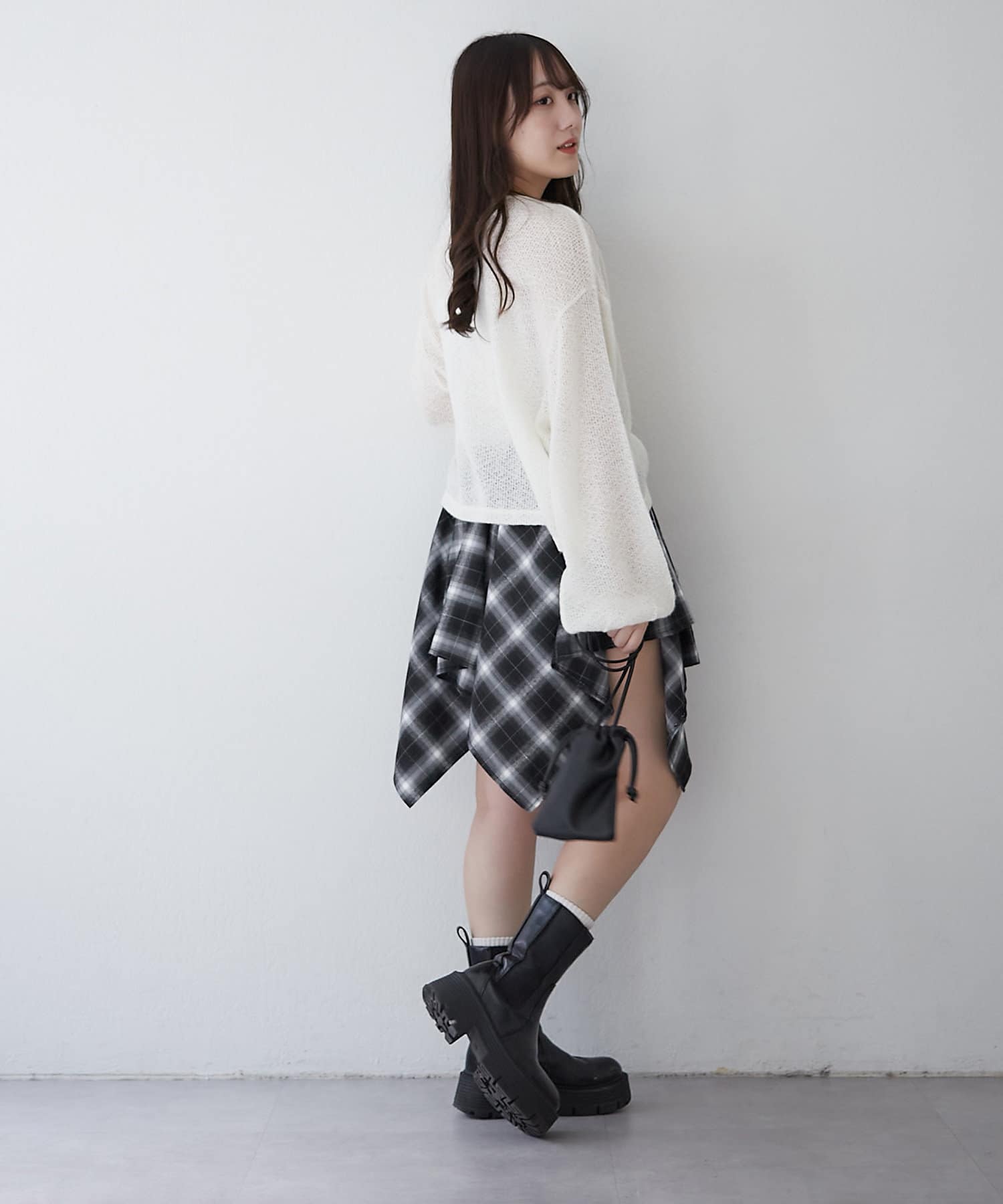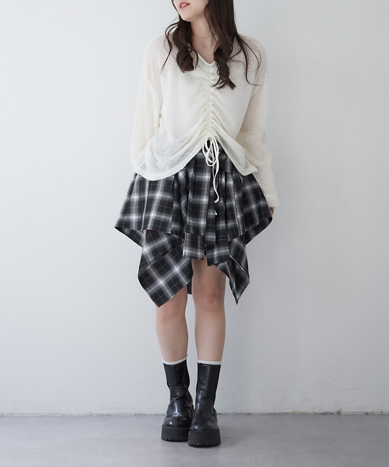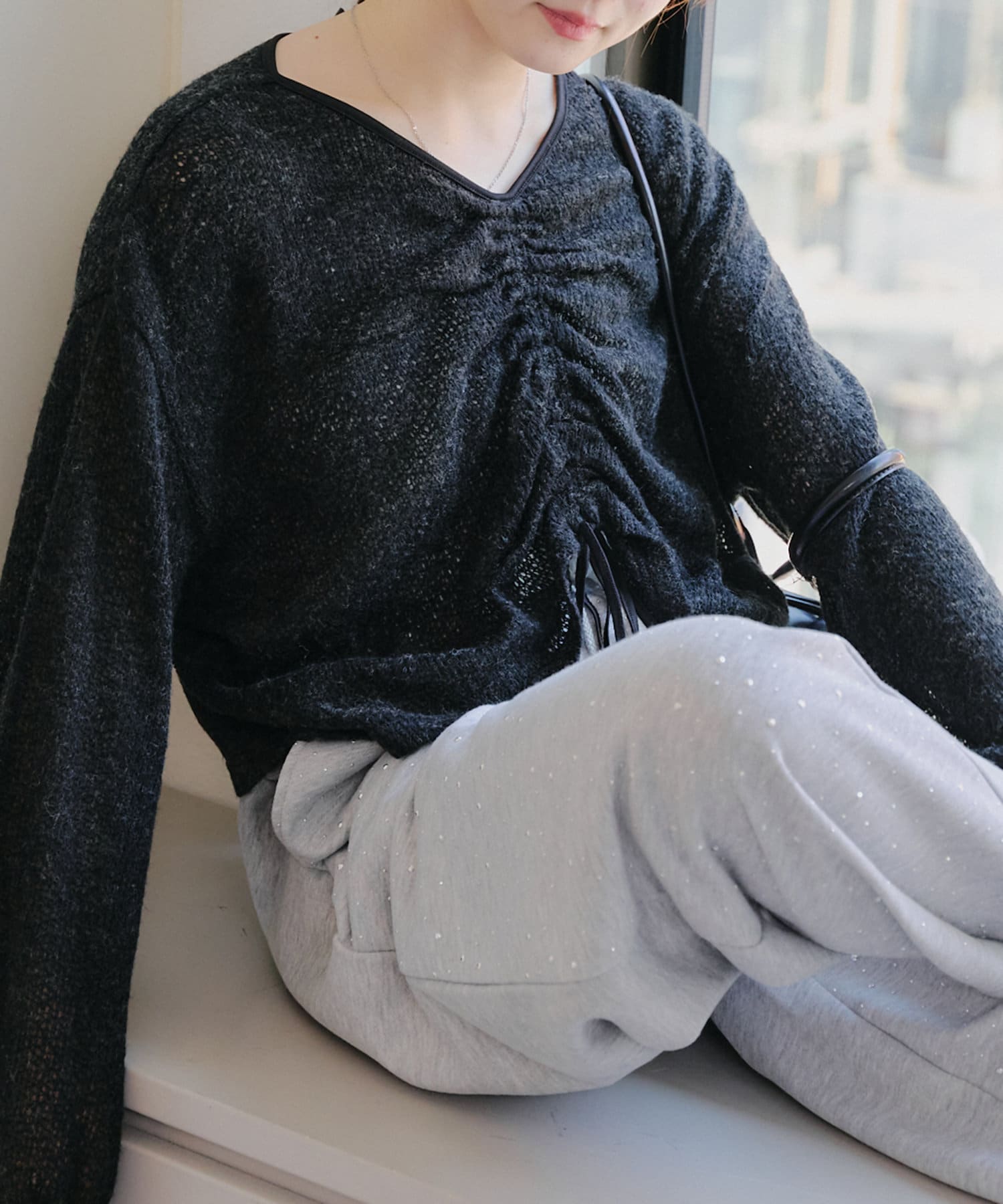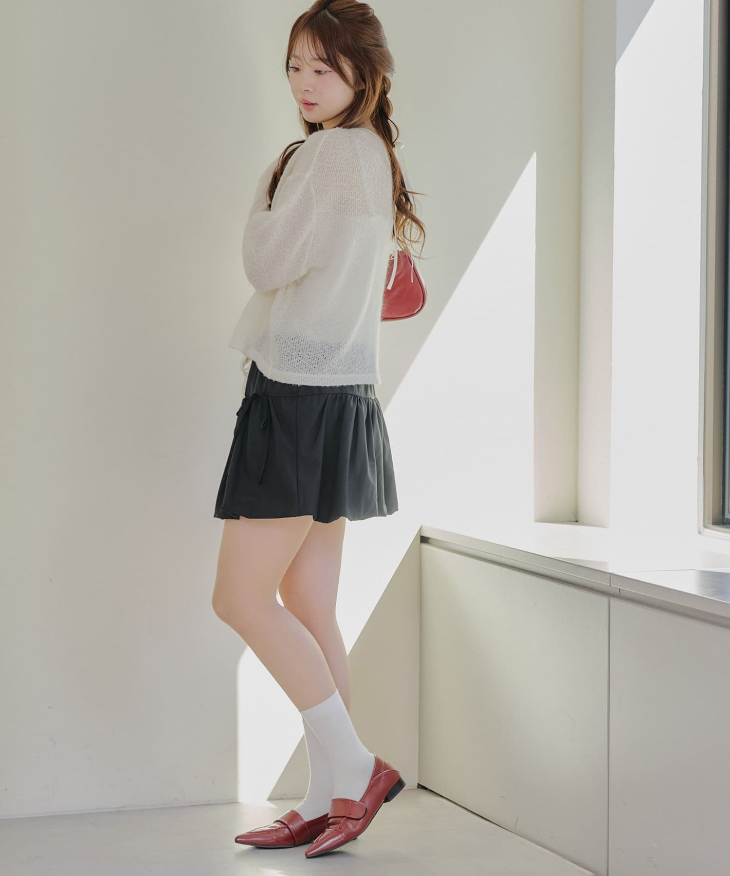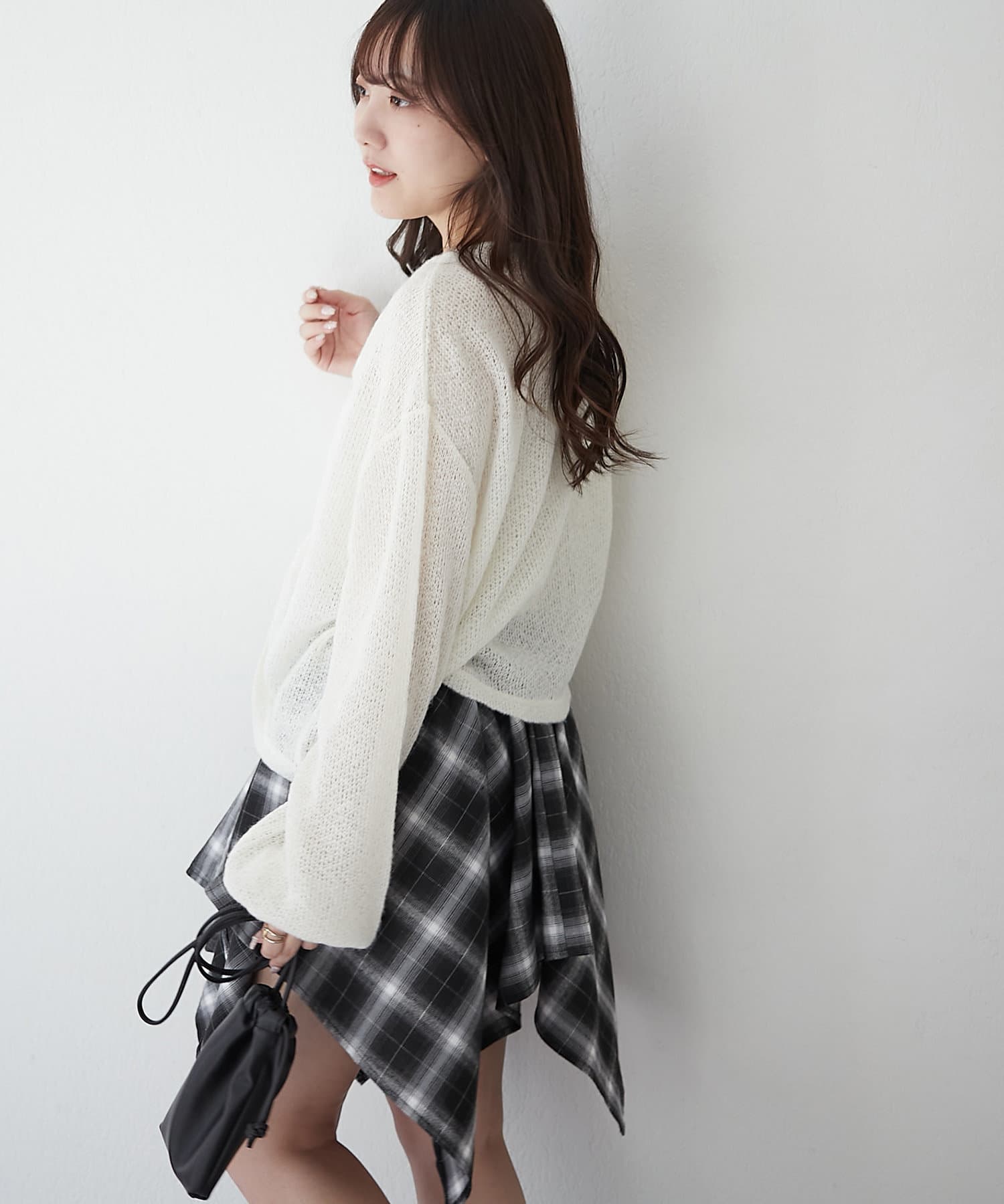 ・フロントをくしゅっと短くして、ハイウエストのボトムと合わせるのがおすすめ♪