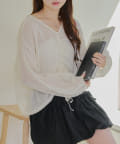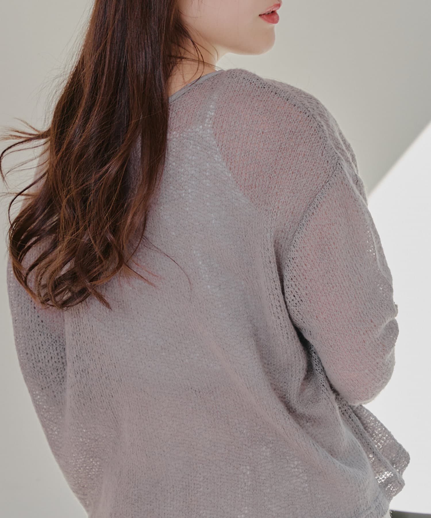 ・透け感のあるニットトップスです。